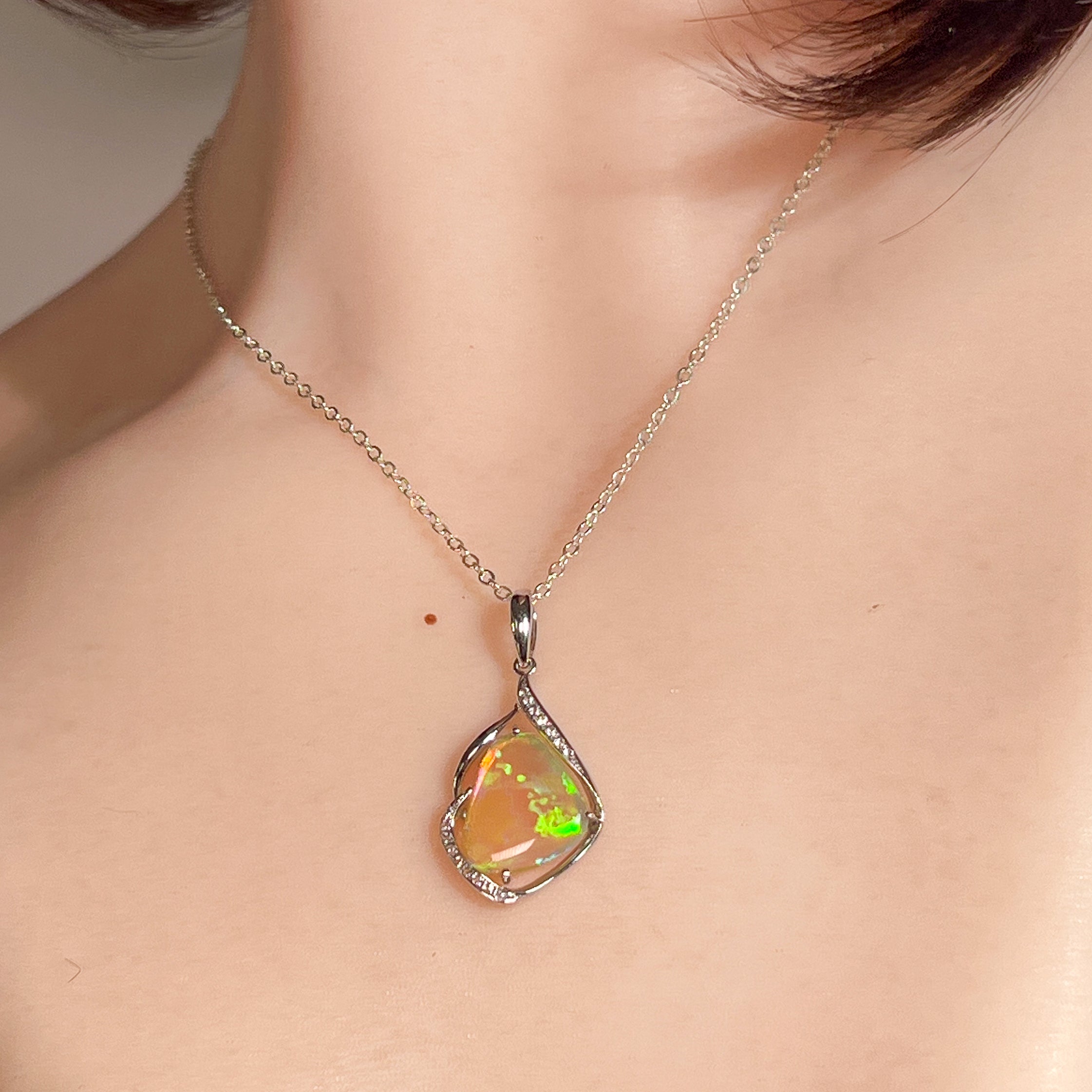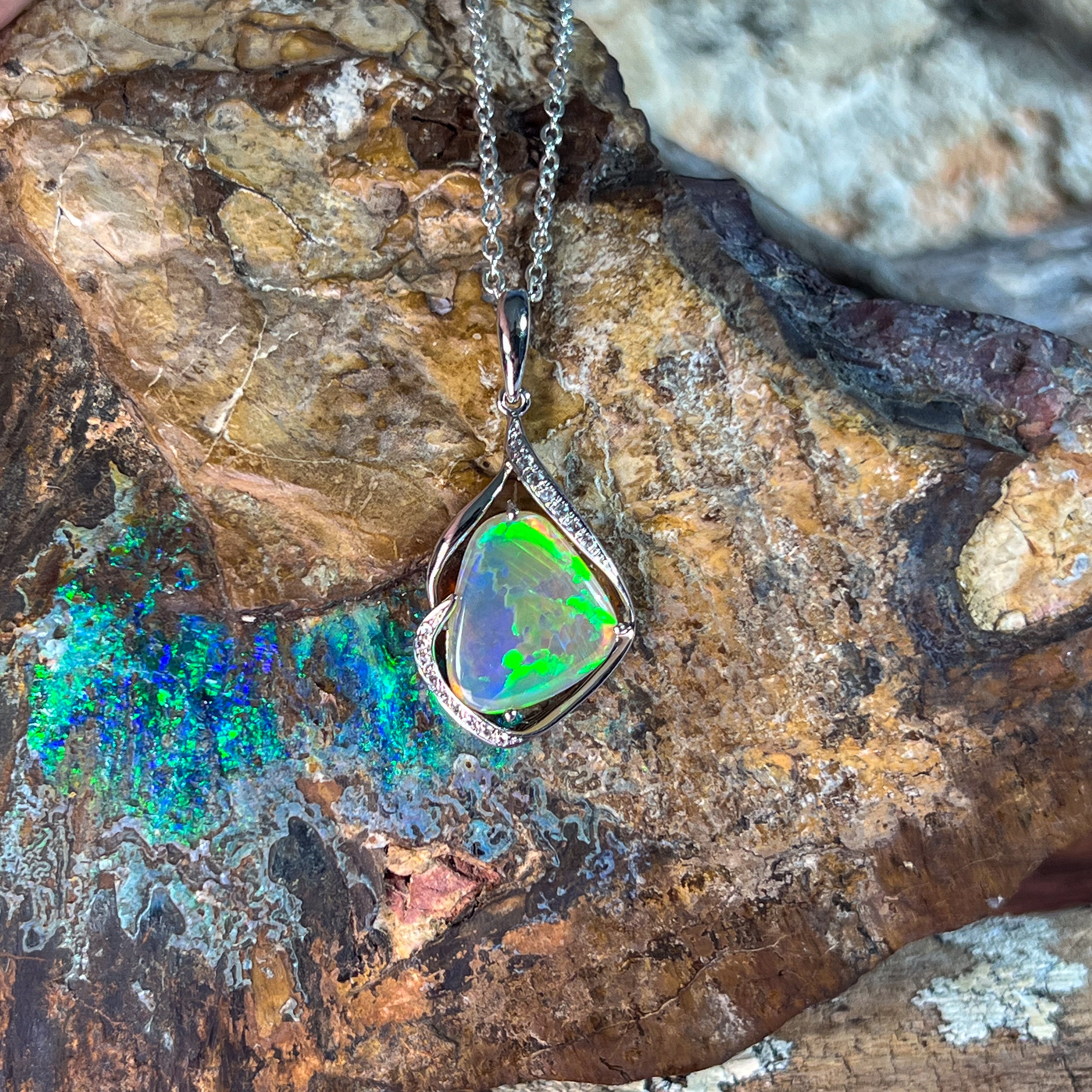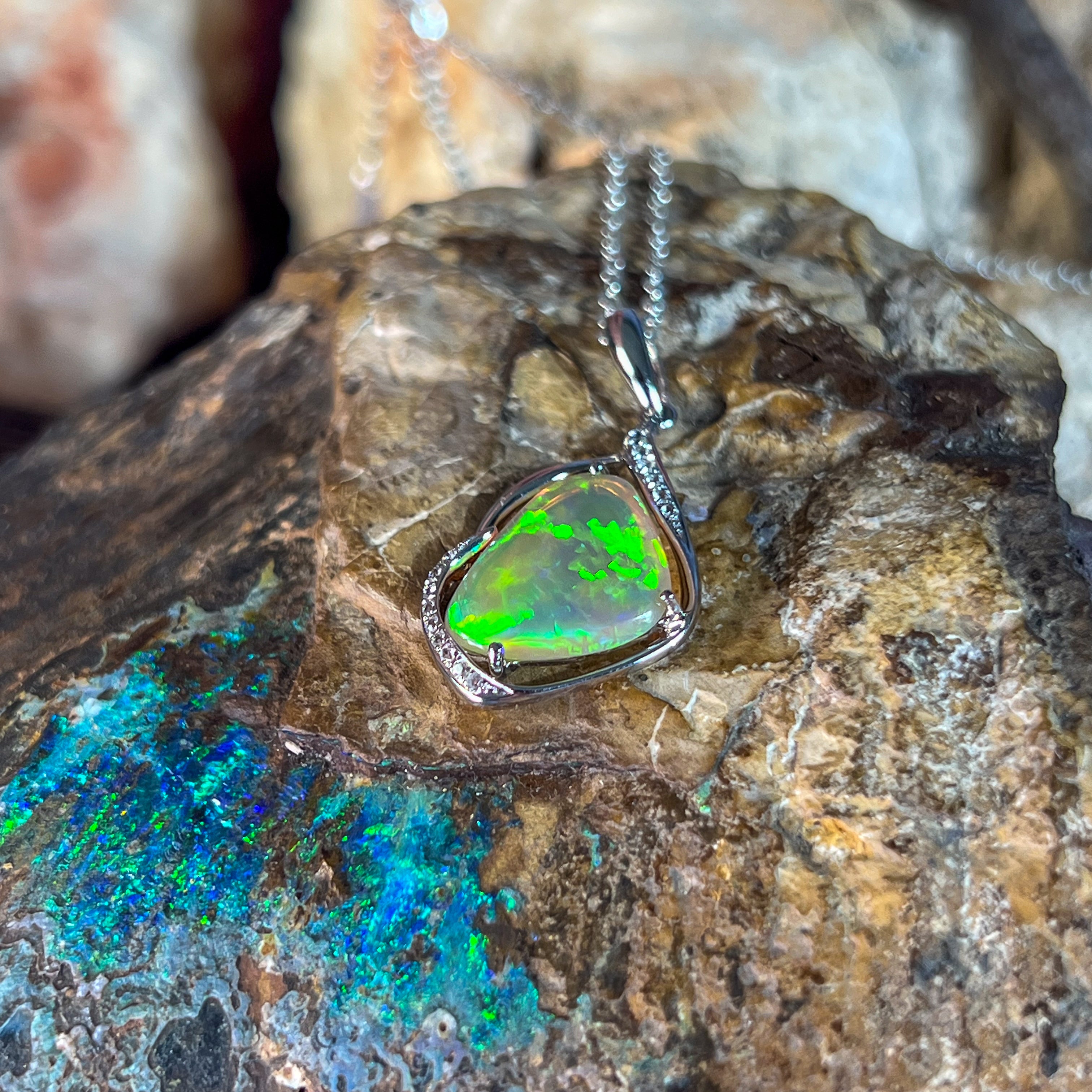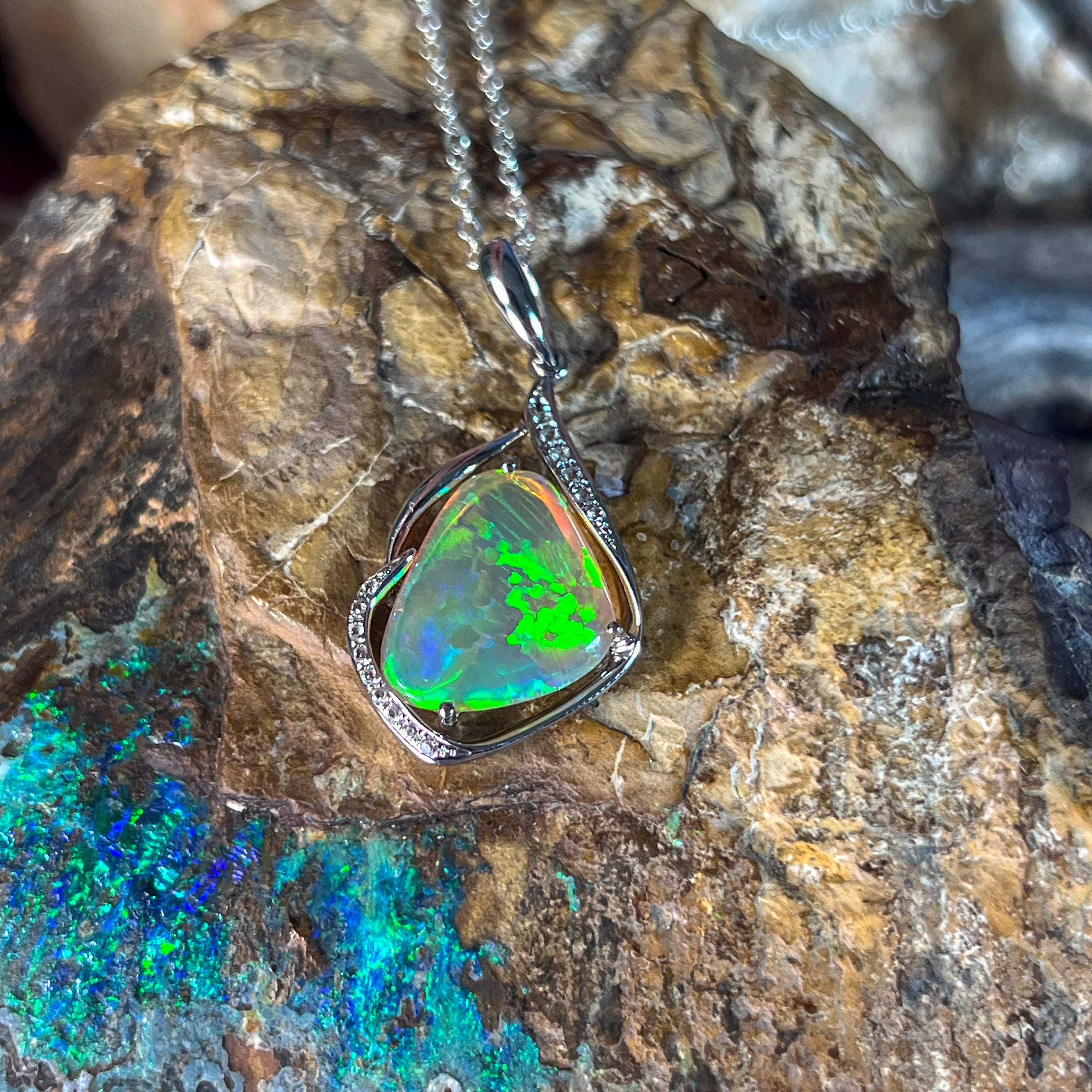 14kt White Gold Crystal Opal 2.77ct and White Sapphires 0.10ct pendant