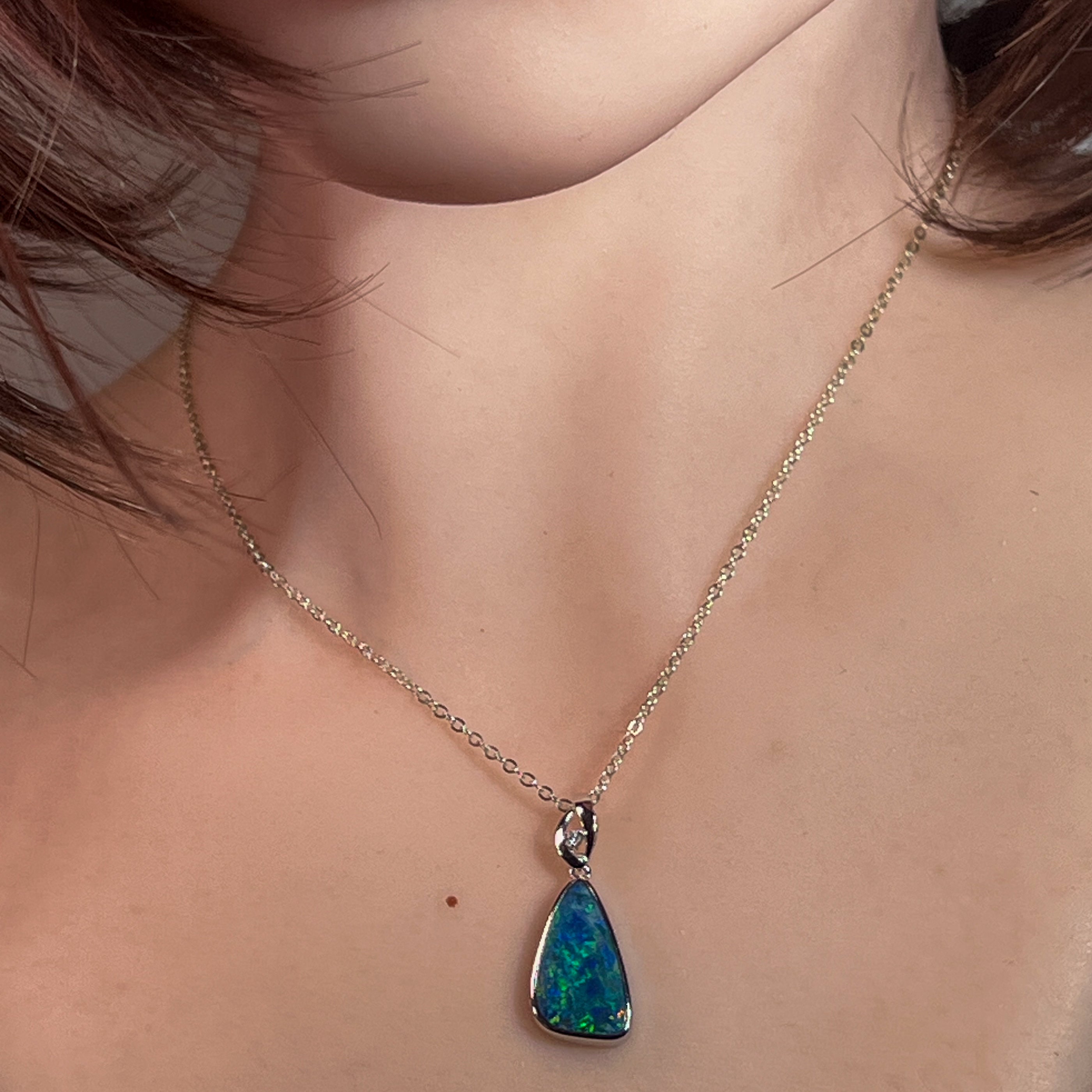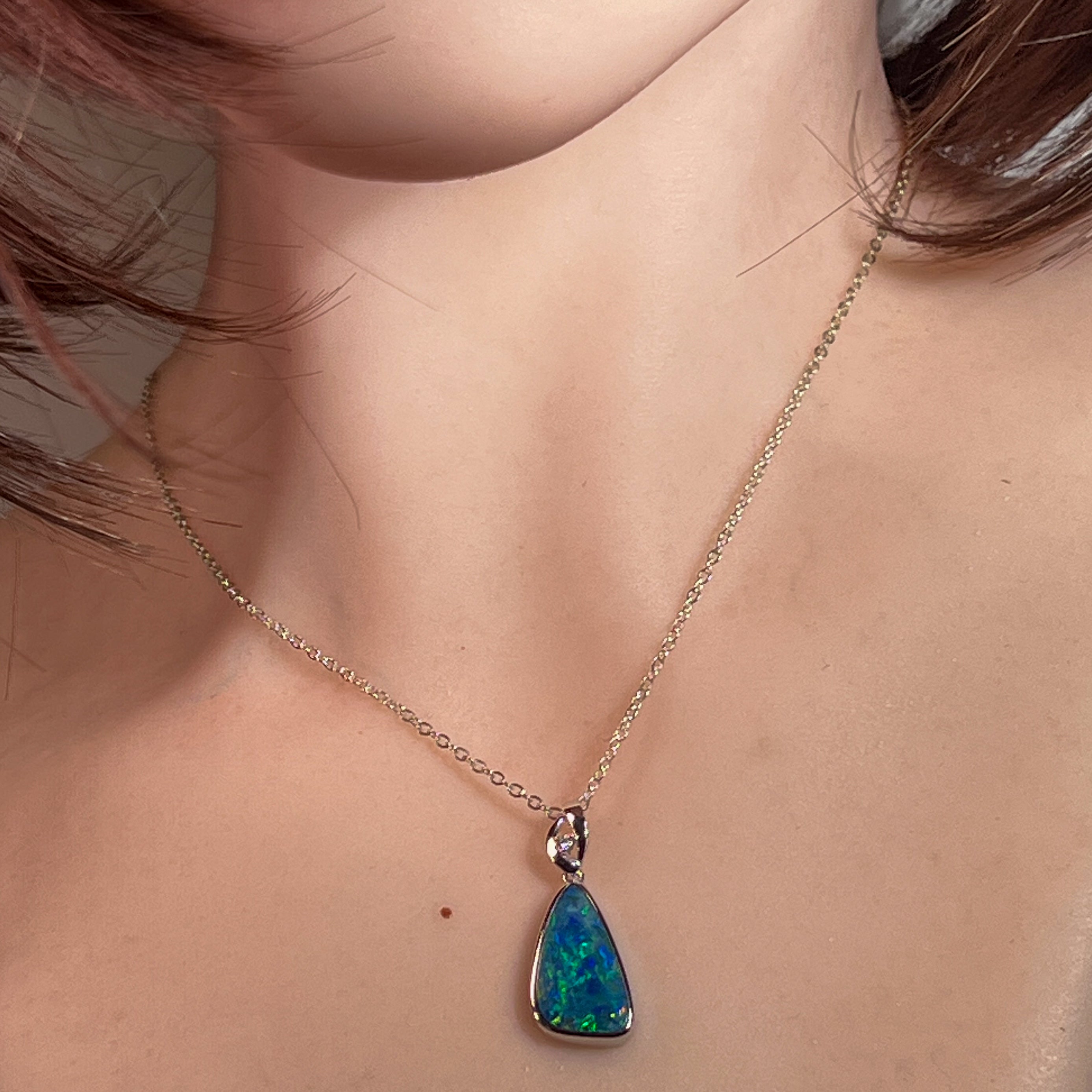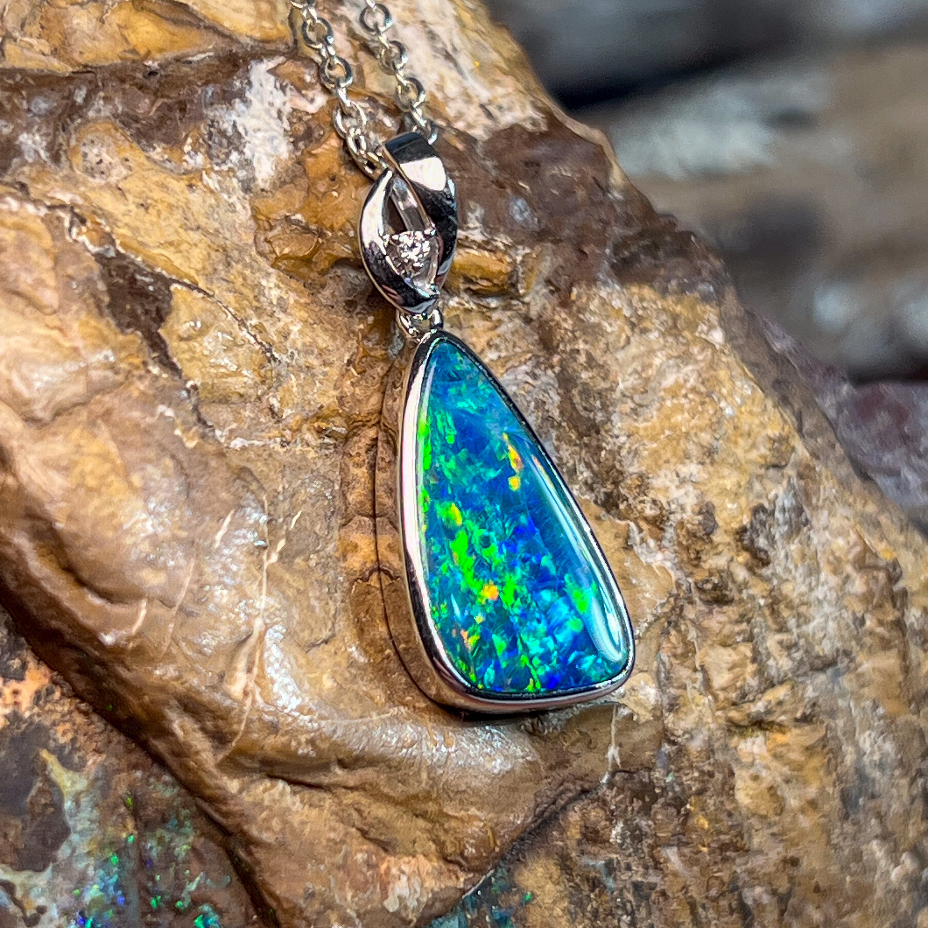 14kt White Gold drop style Opal doublet 4.95ct and diamond pendant