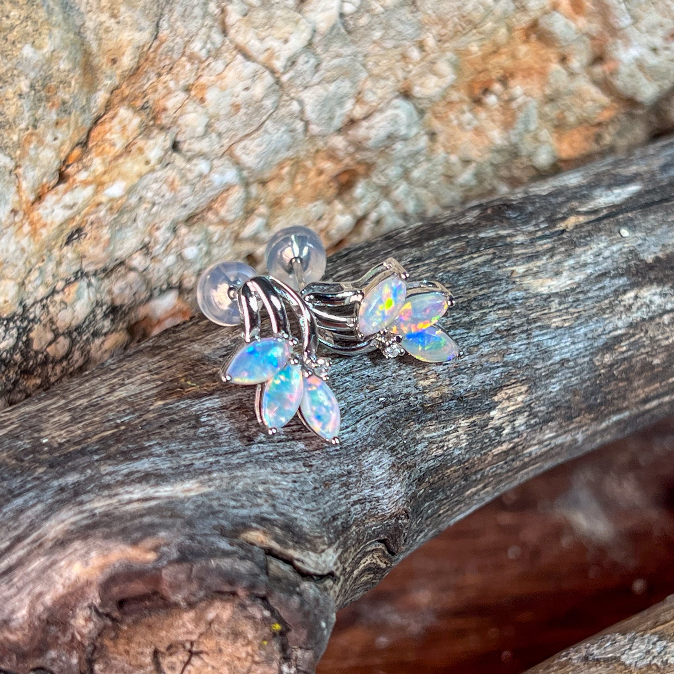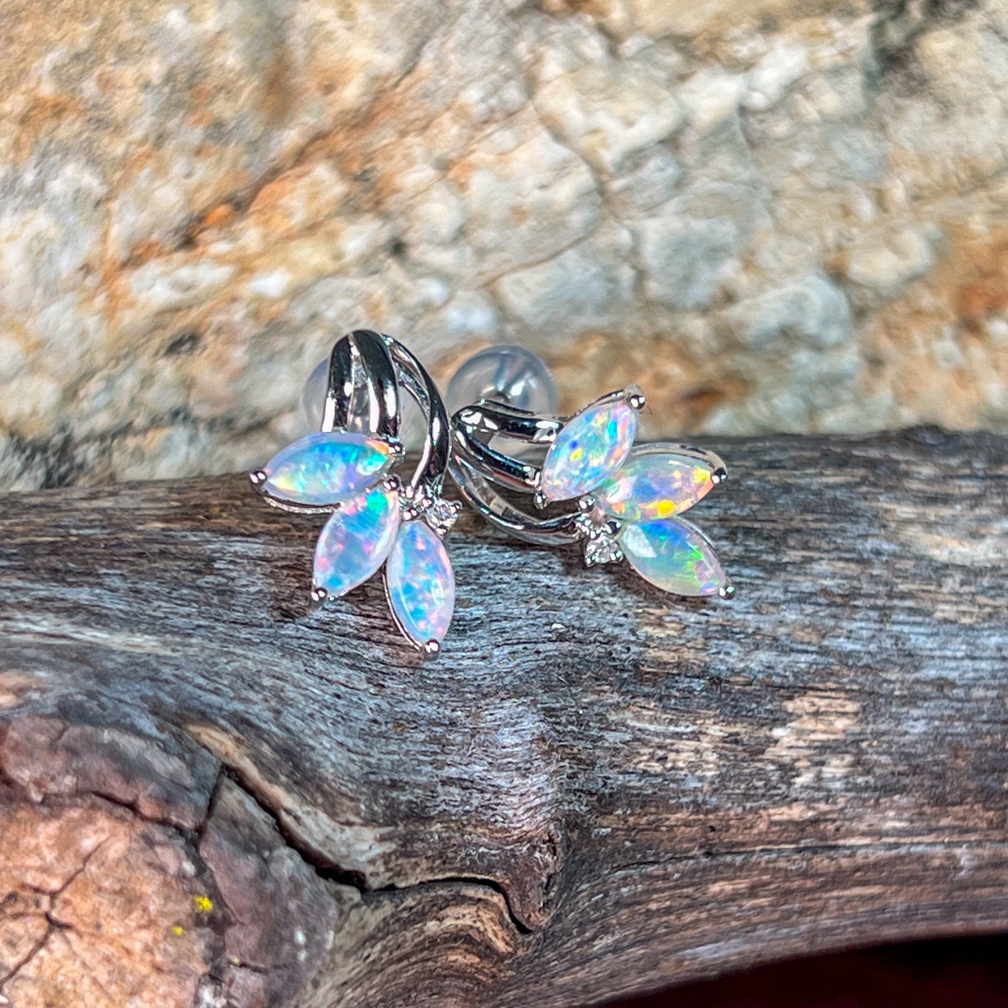 14kt White Gold marquise Crystal Opal studs earrings