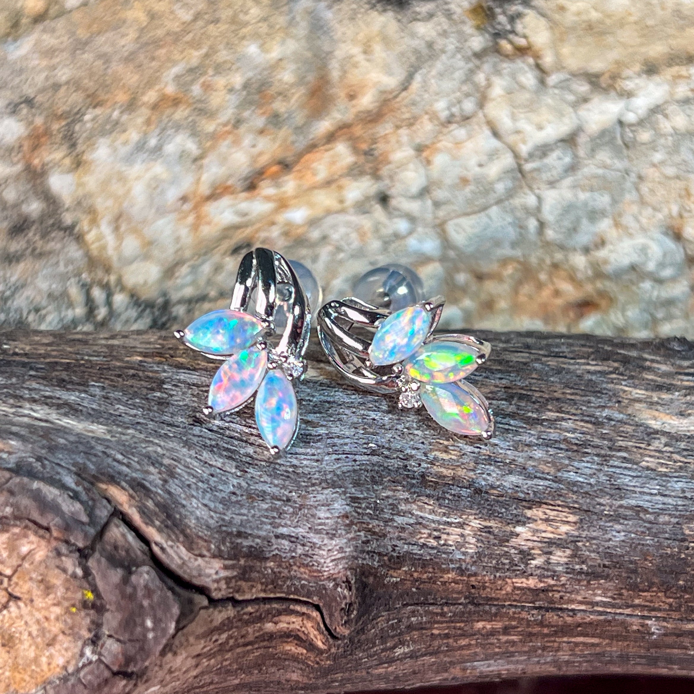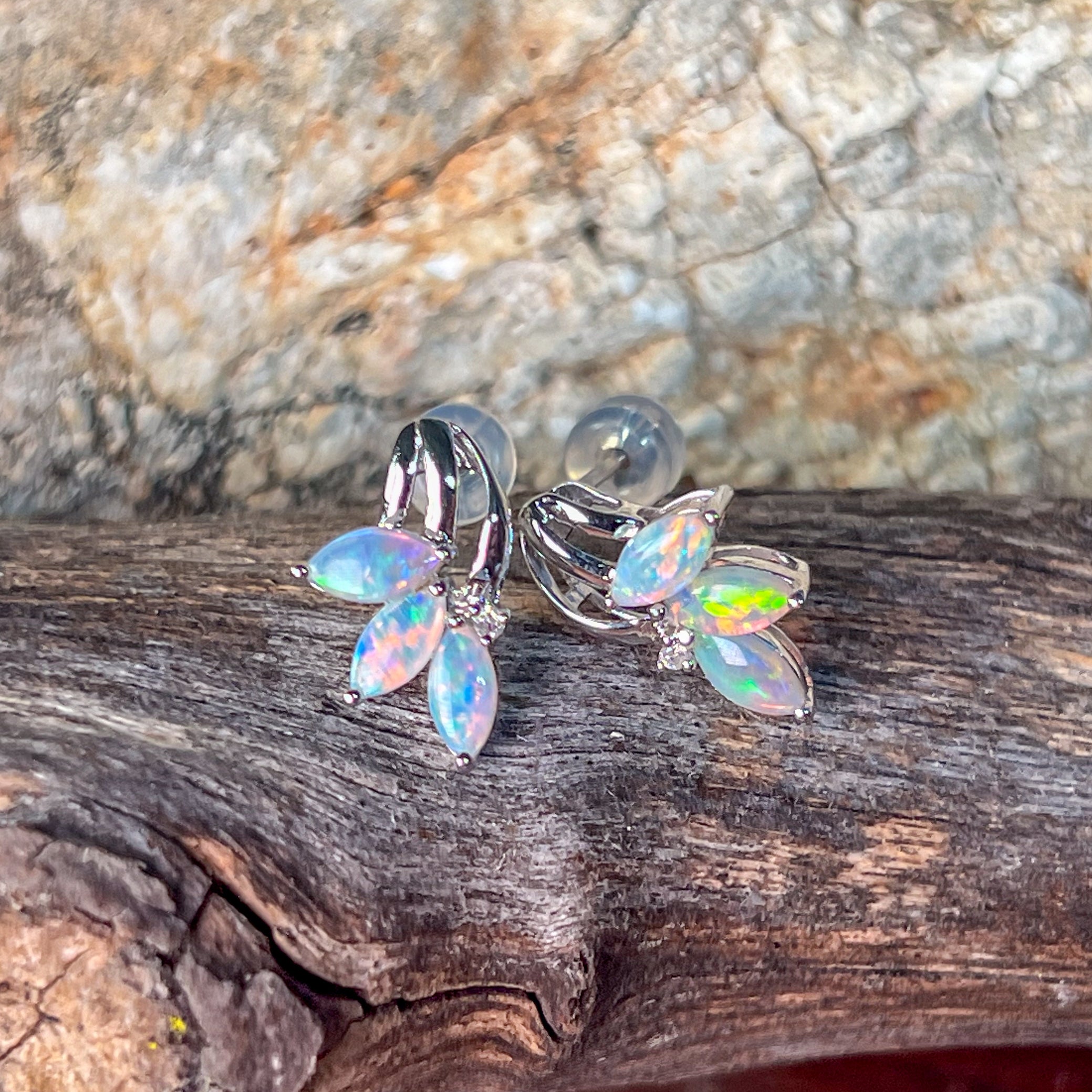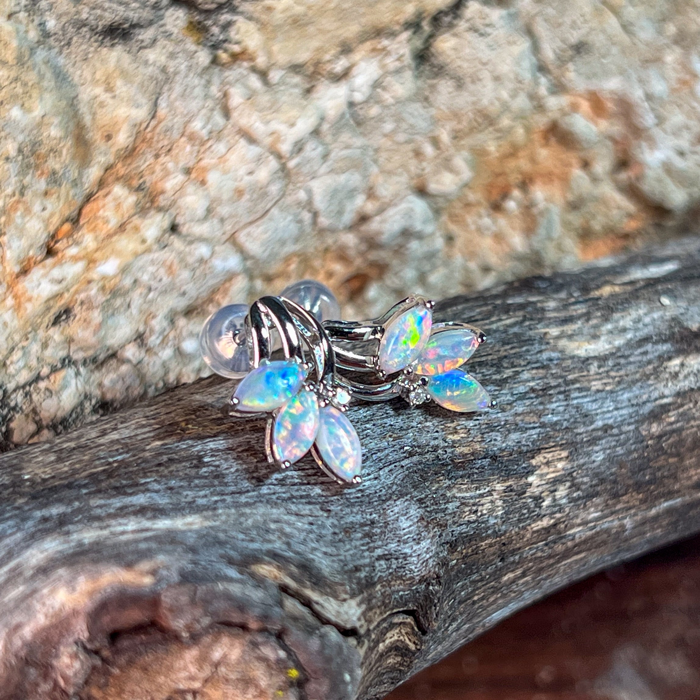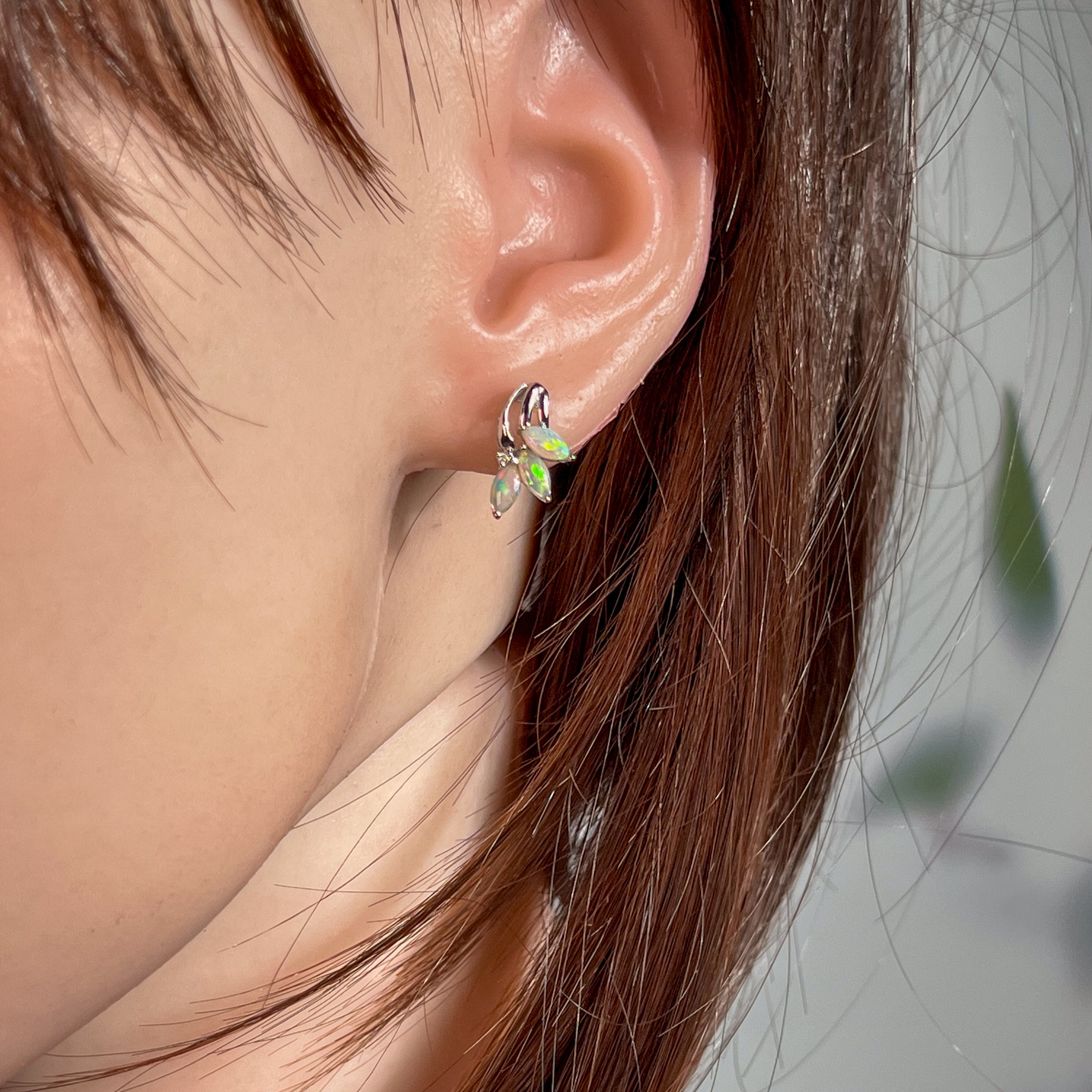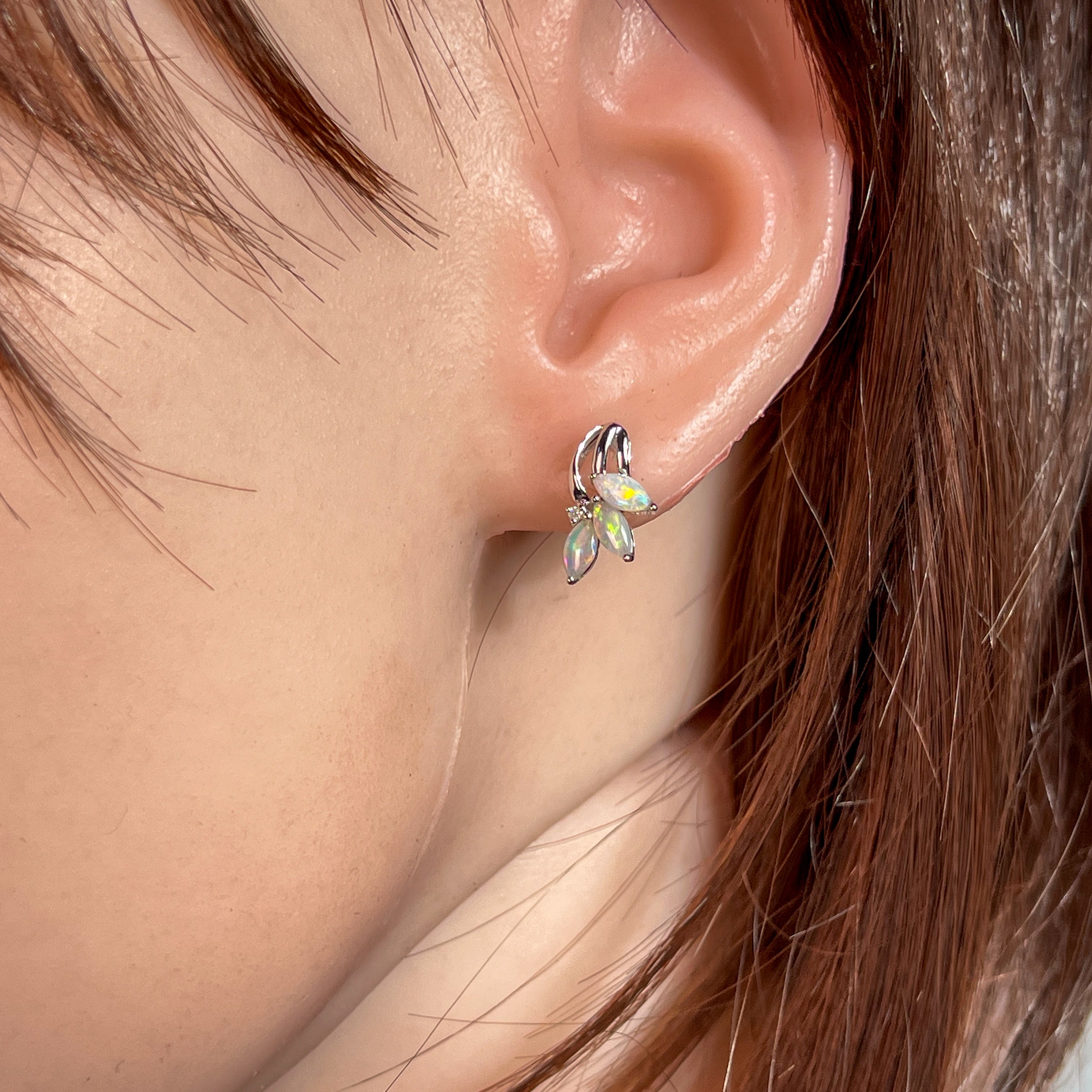 One pair of 14kt White gold Opal Marquise cut shape claw fan style studs