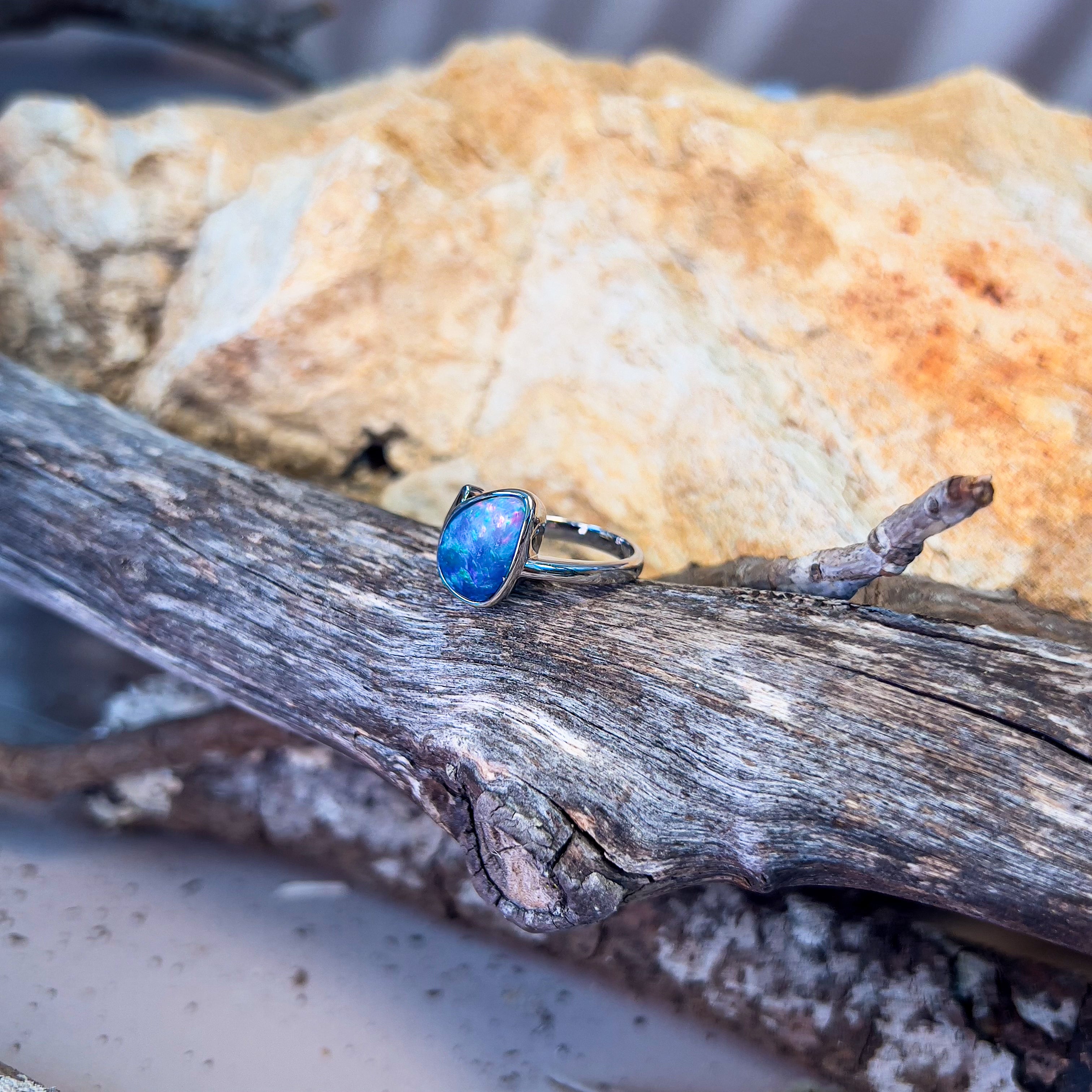 14kt White Gold split shank Triangular shape Opal doublet 2.5ct ring