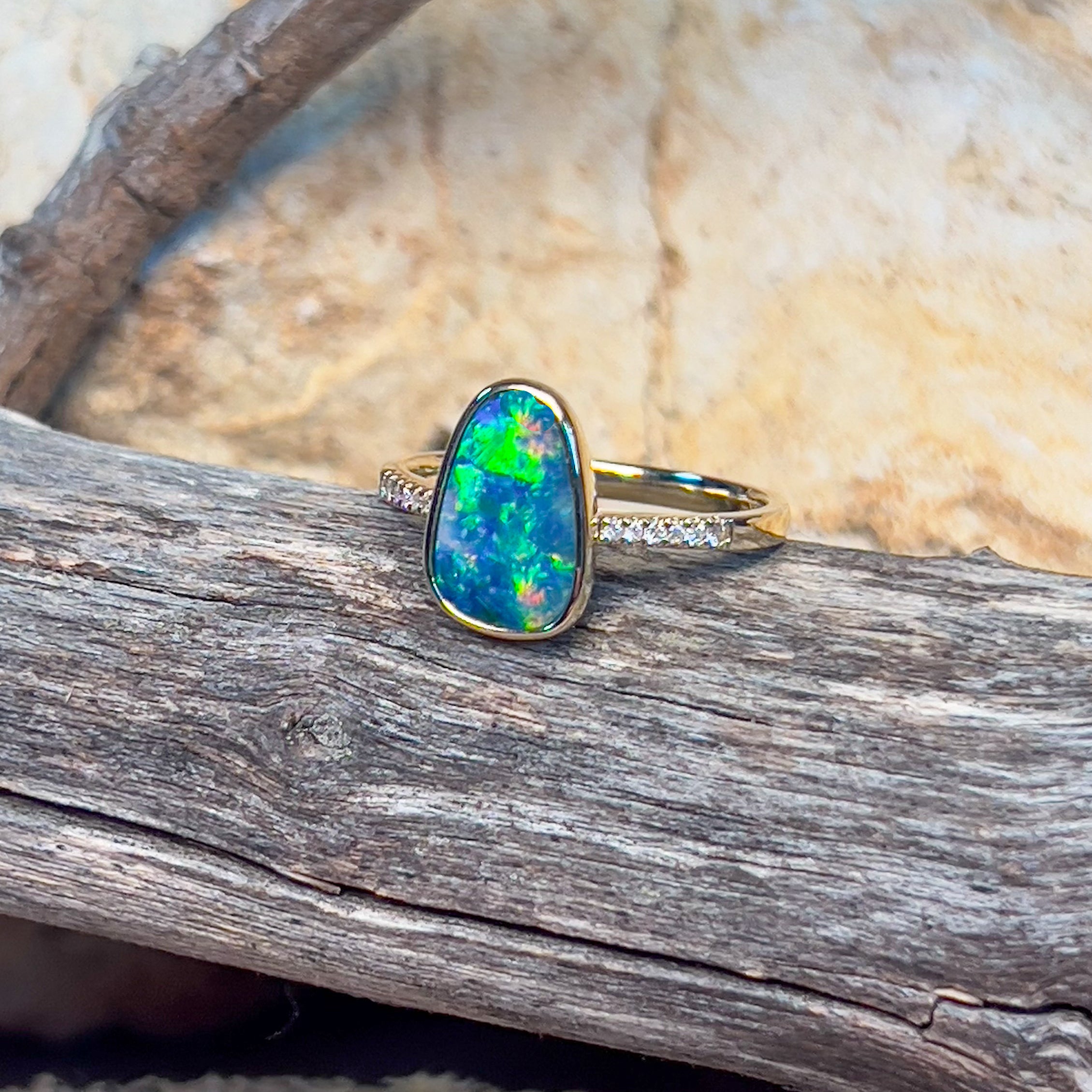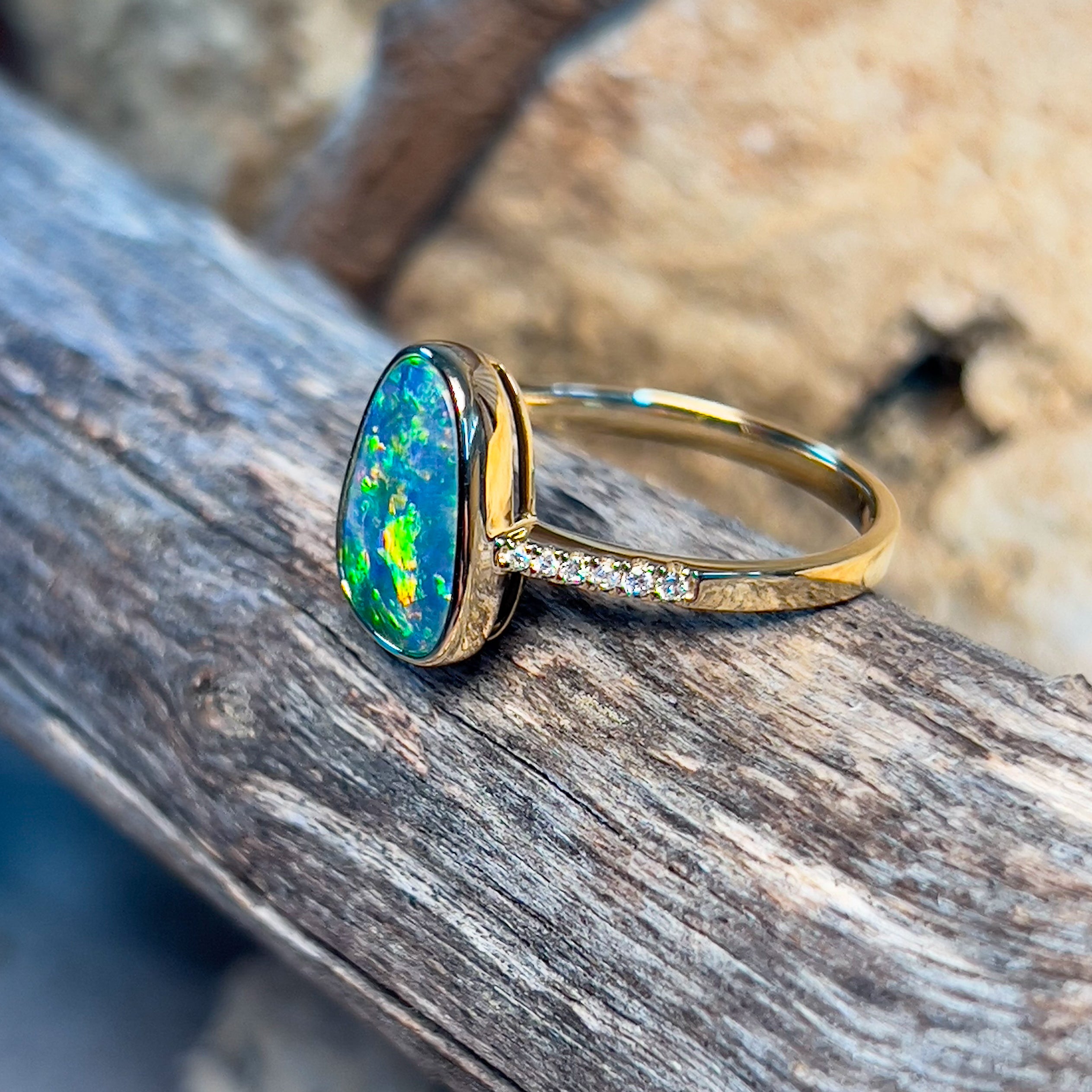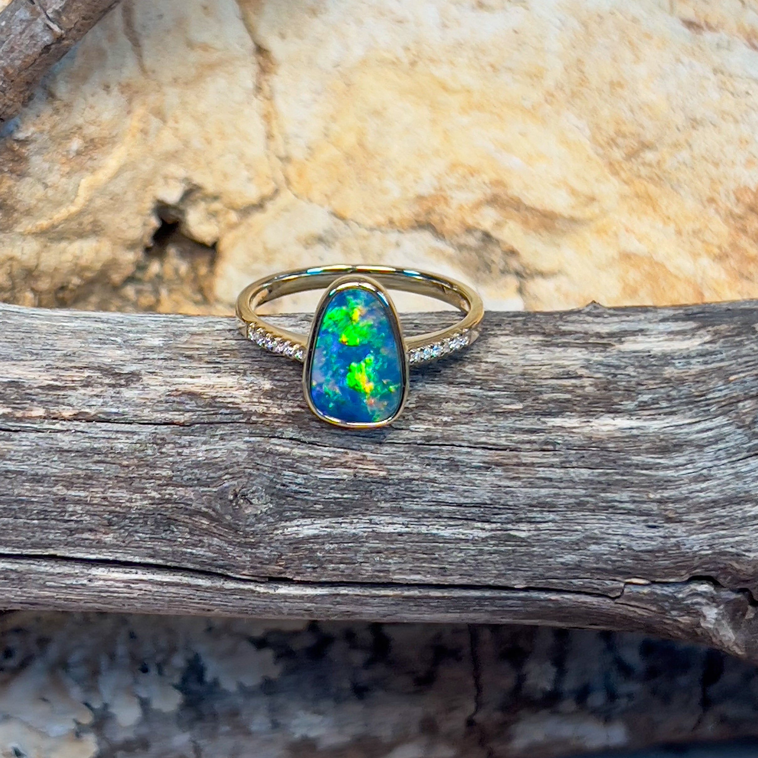 14kt Yellow Gold 1.95ct Opal doublet and diamond ring
