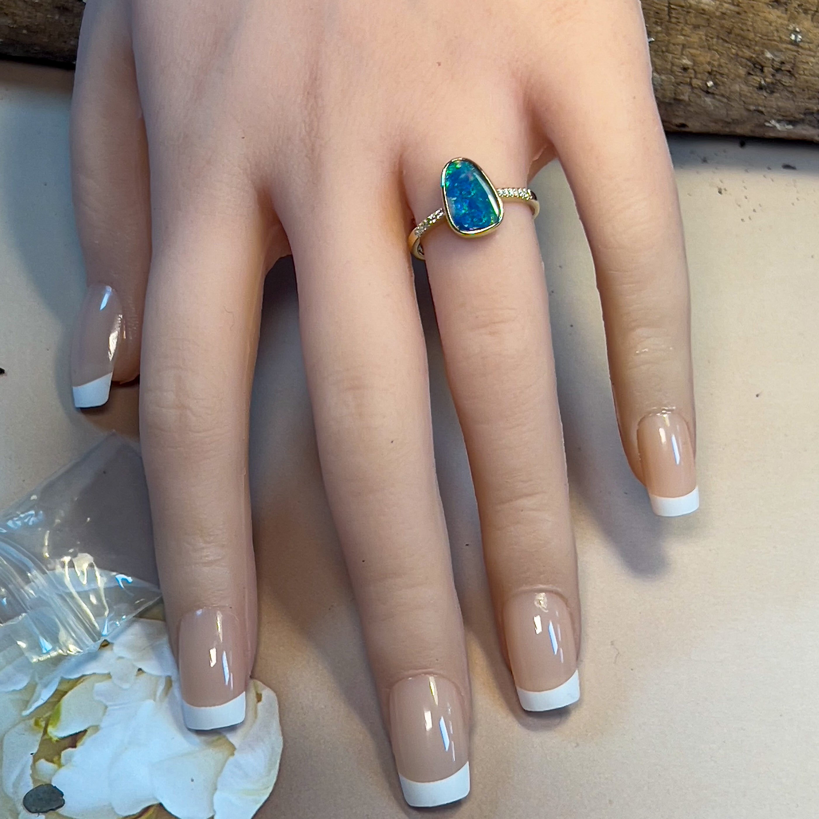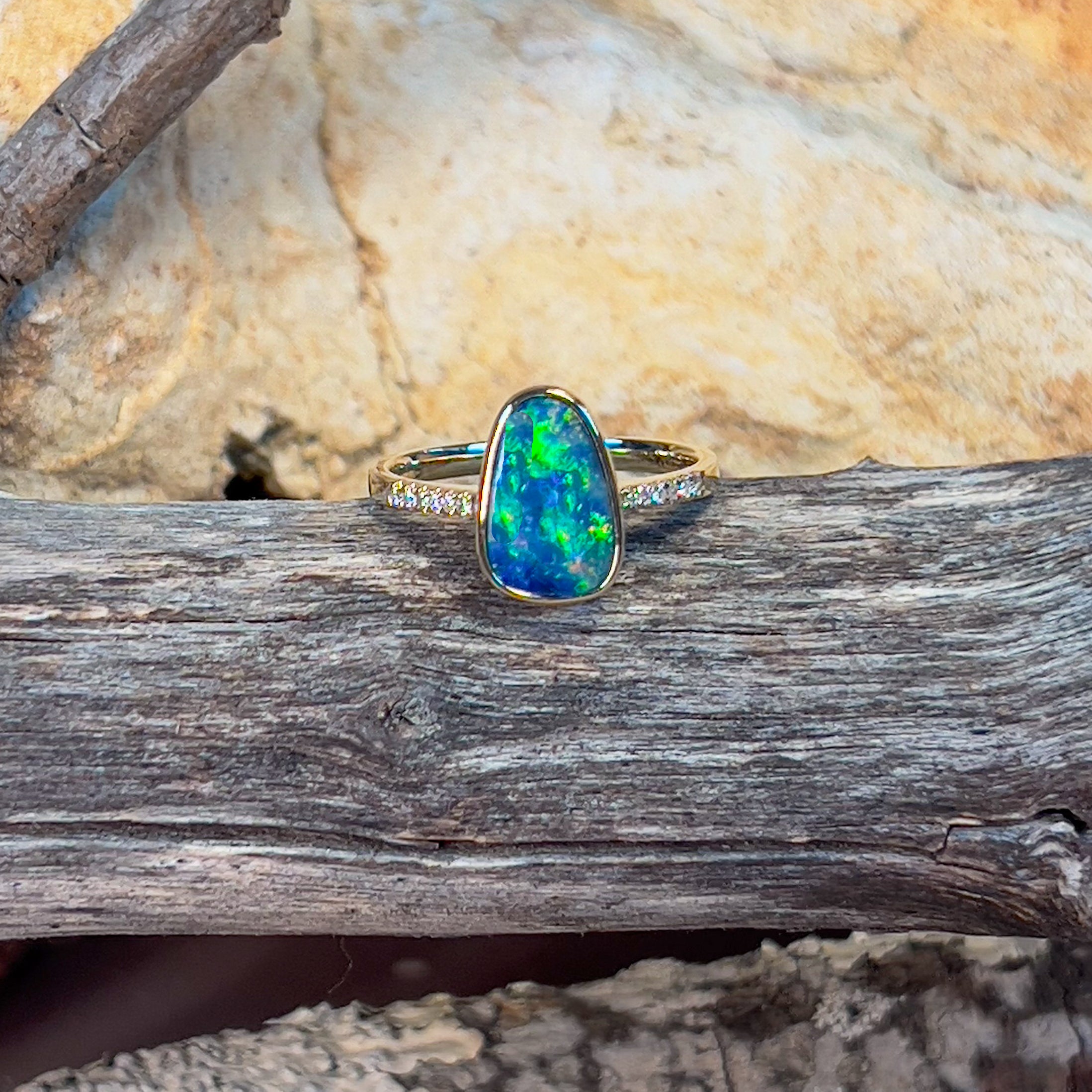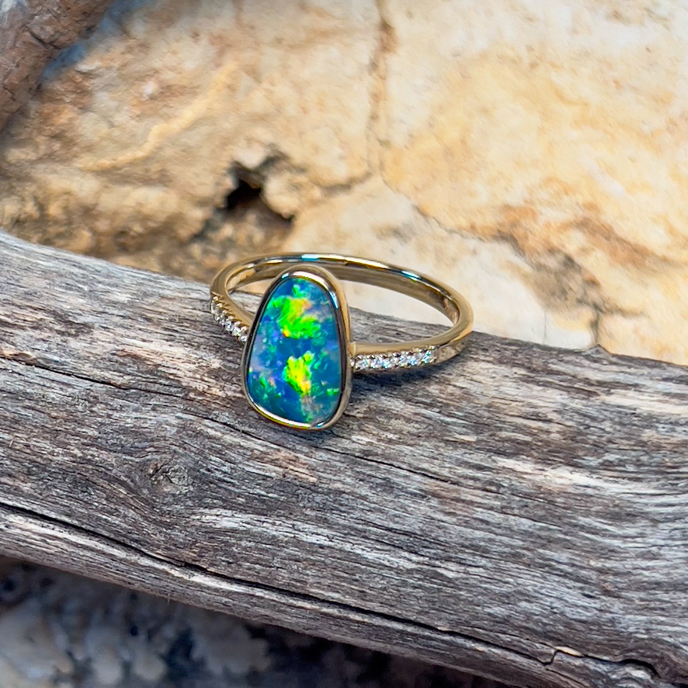 14kt Yellow Gold 1.95ct Opal doublet and diamond ring