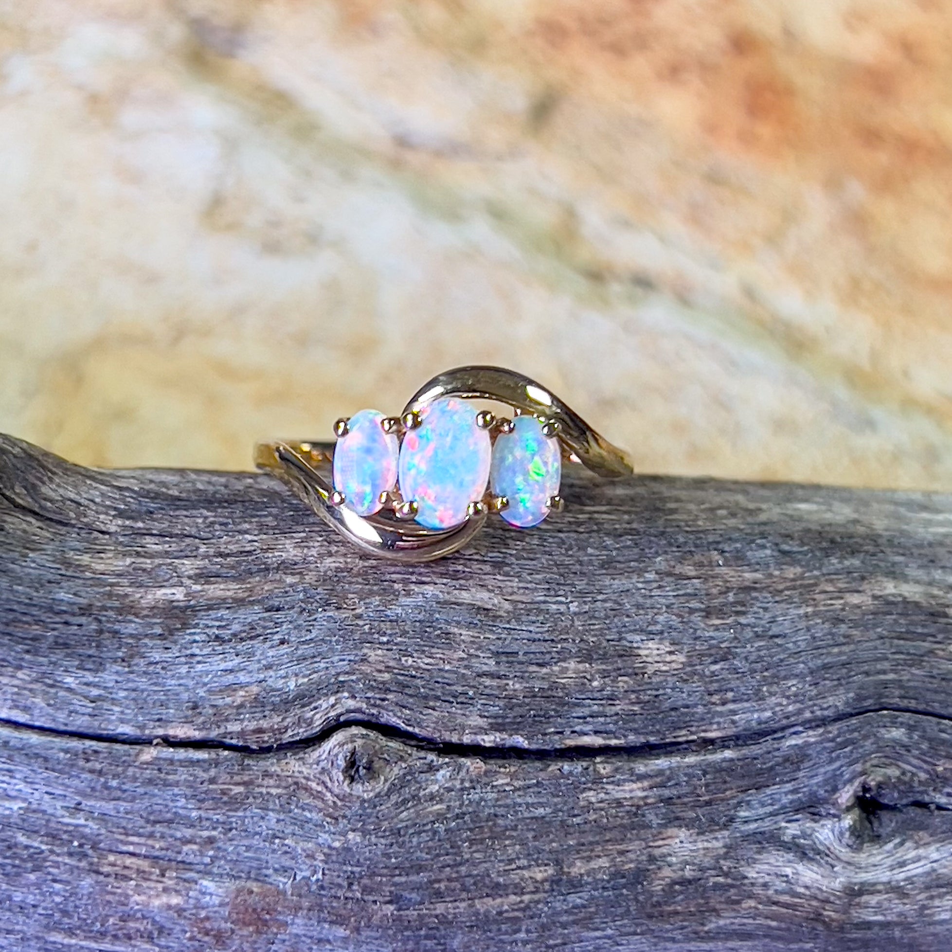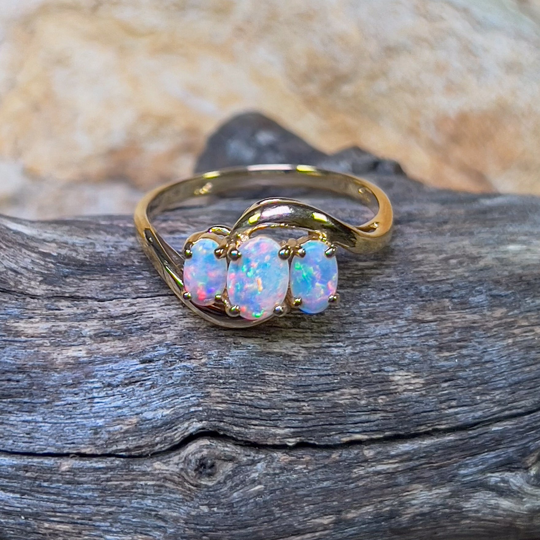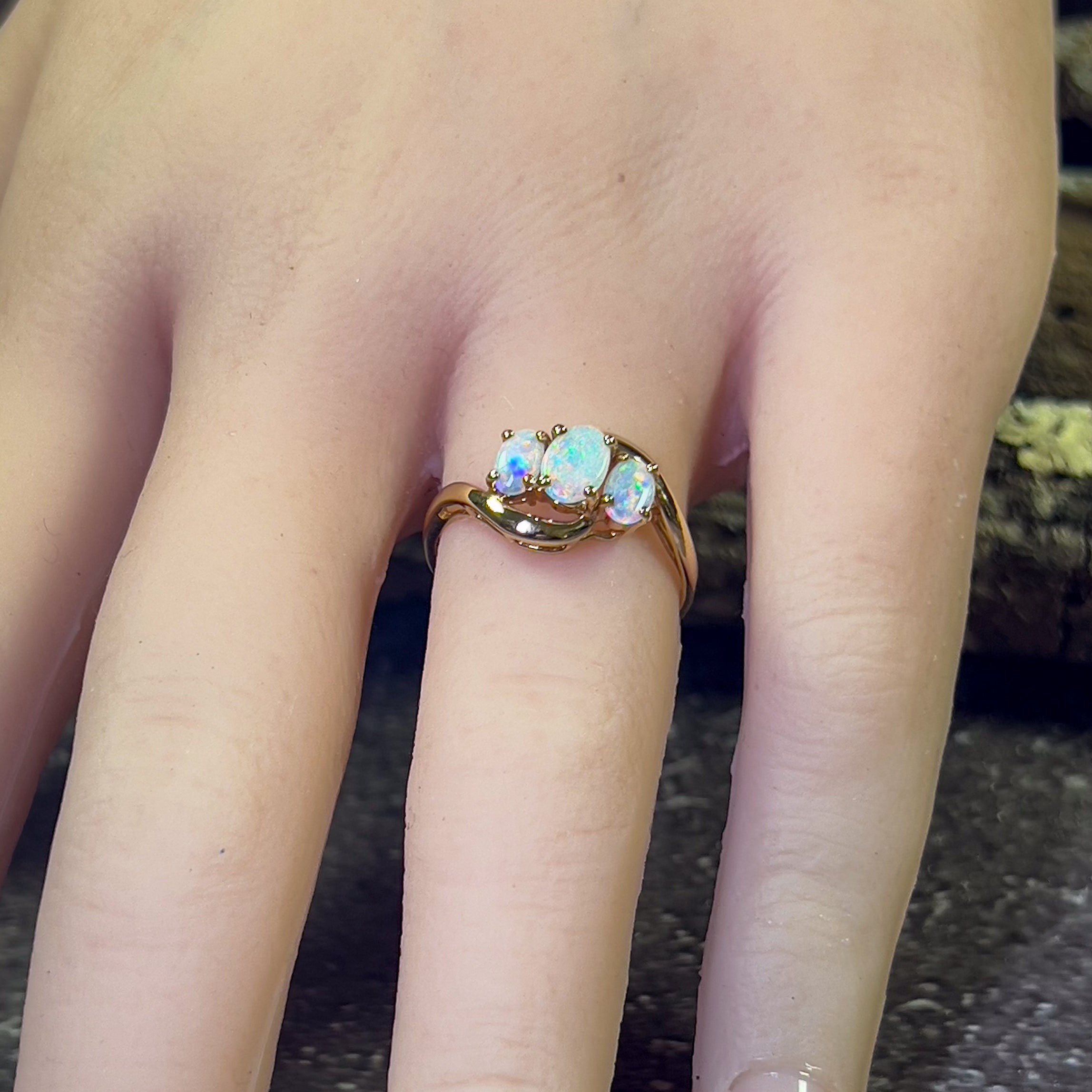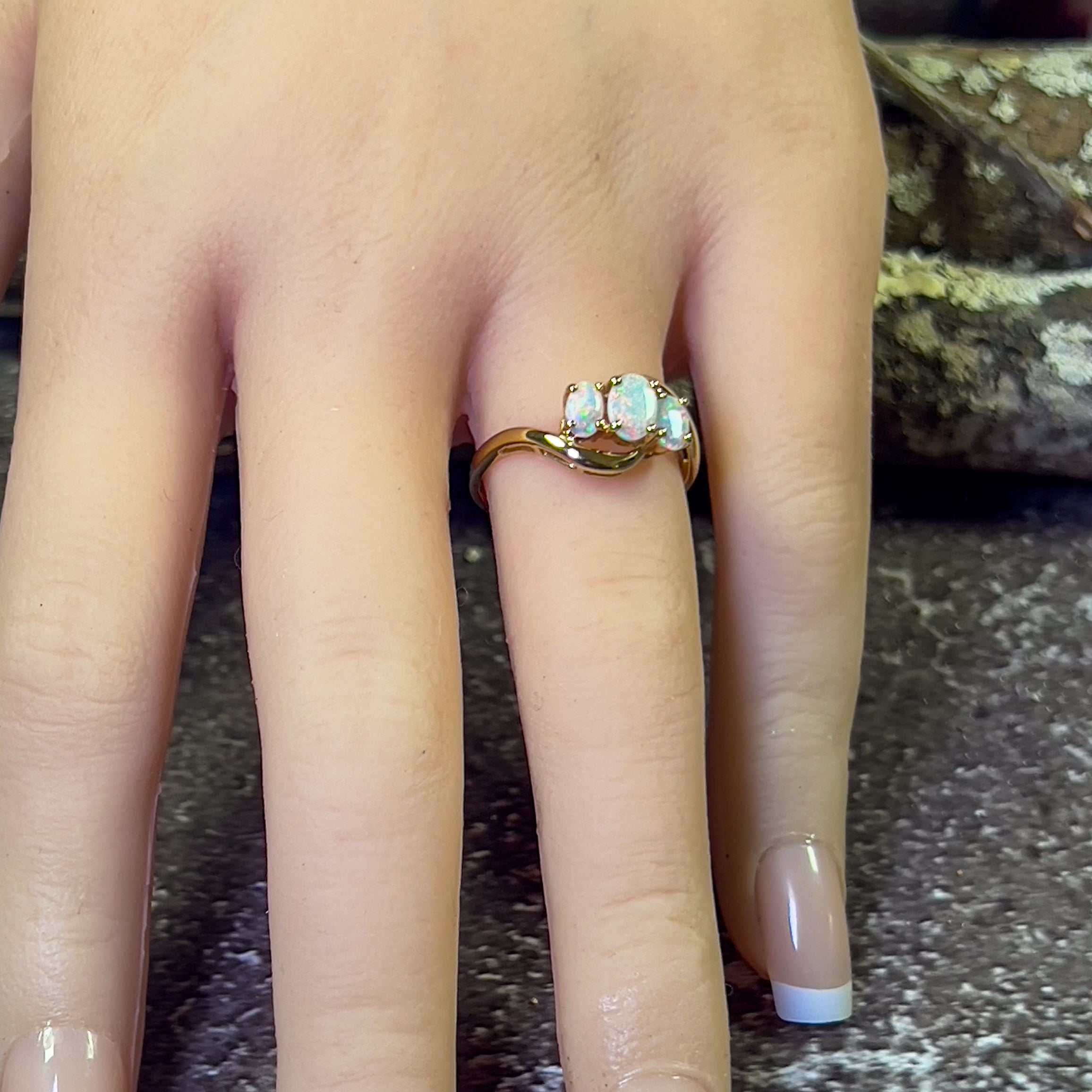 14kt Yellow Gold 3 stone Opal Crystal ring