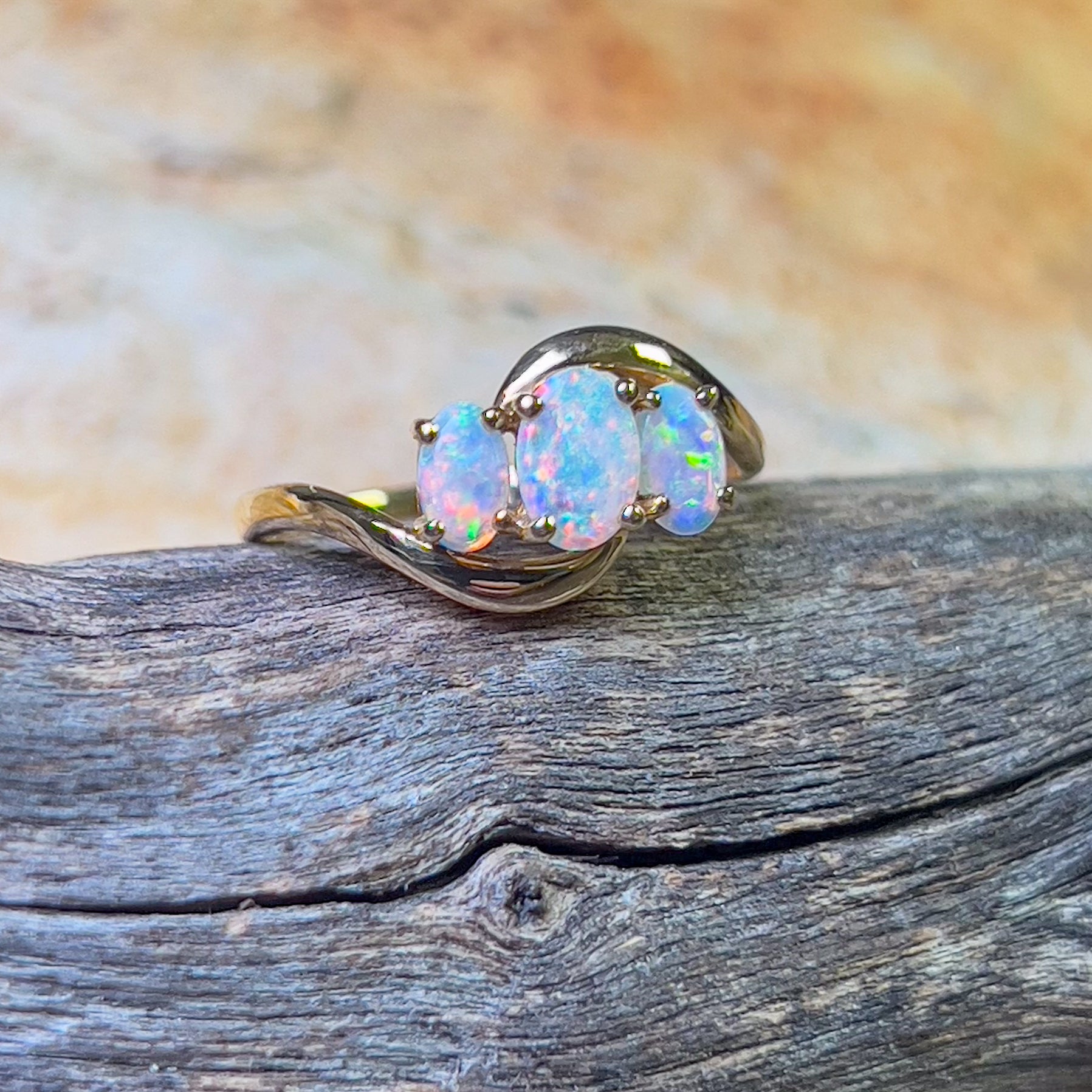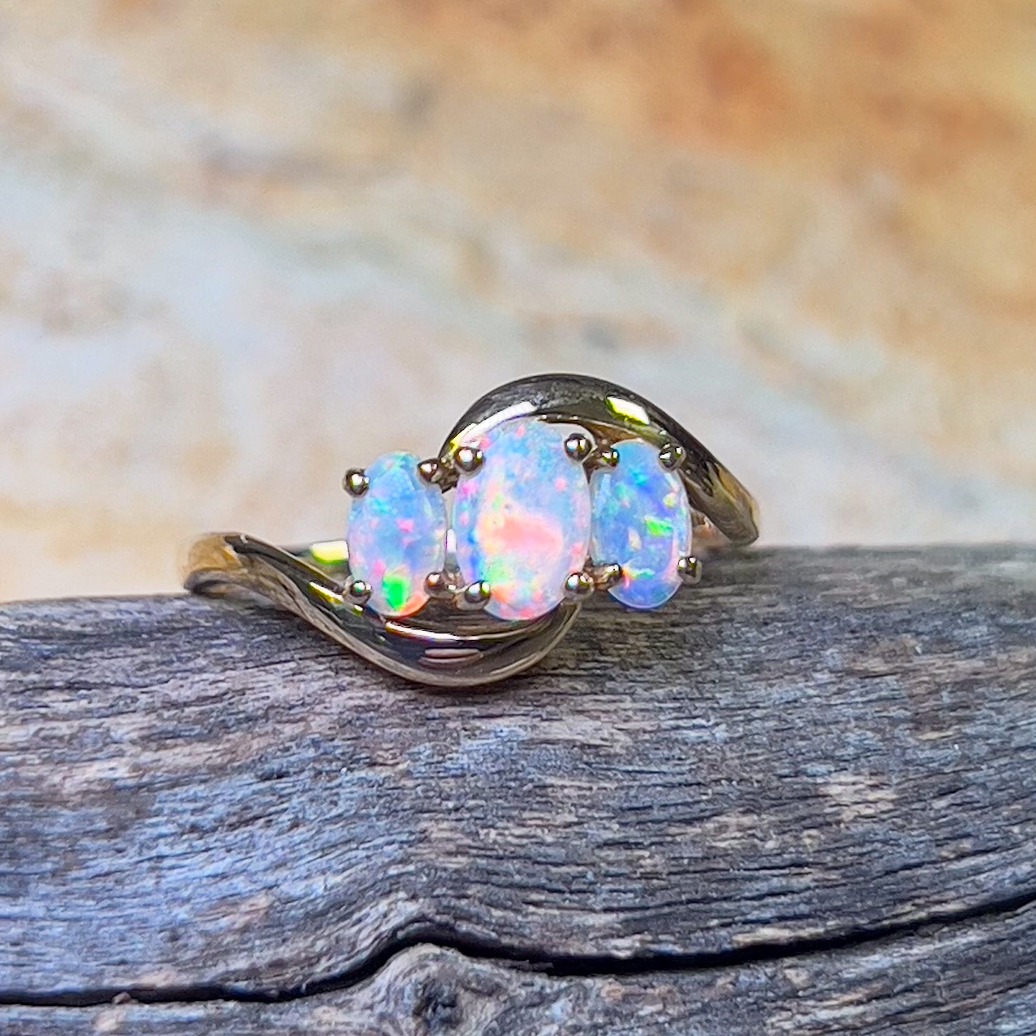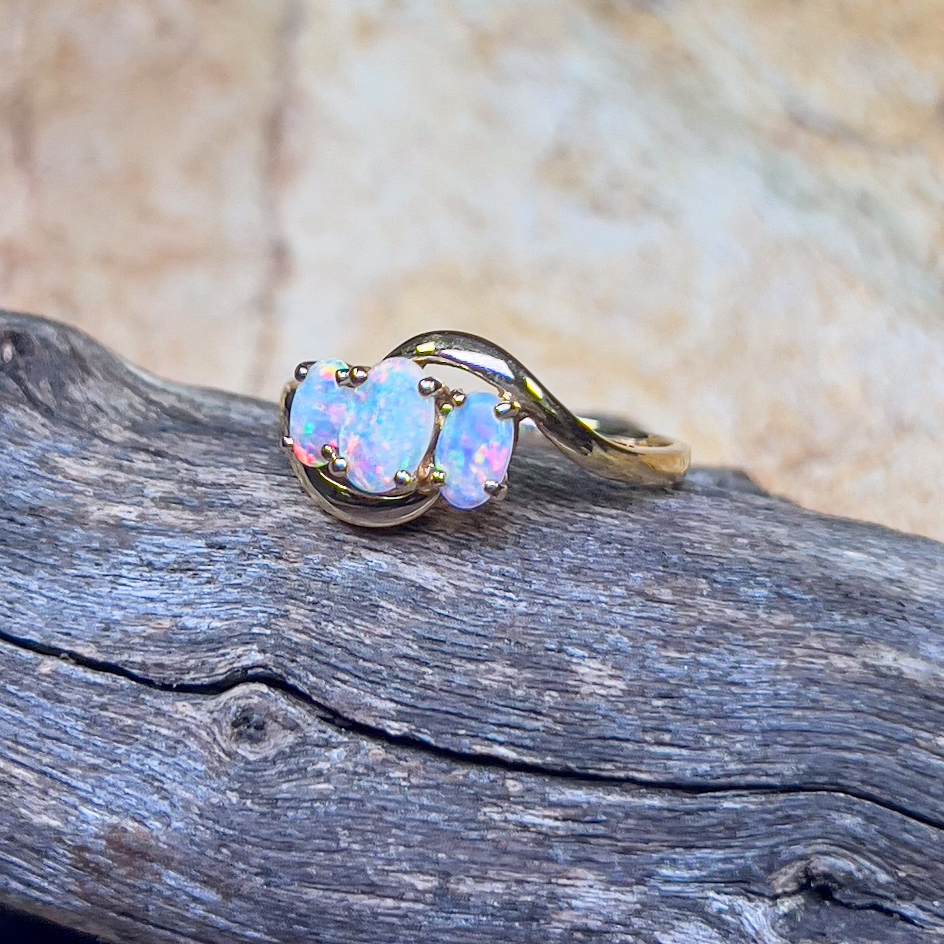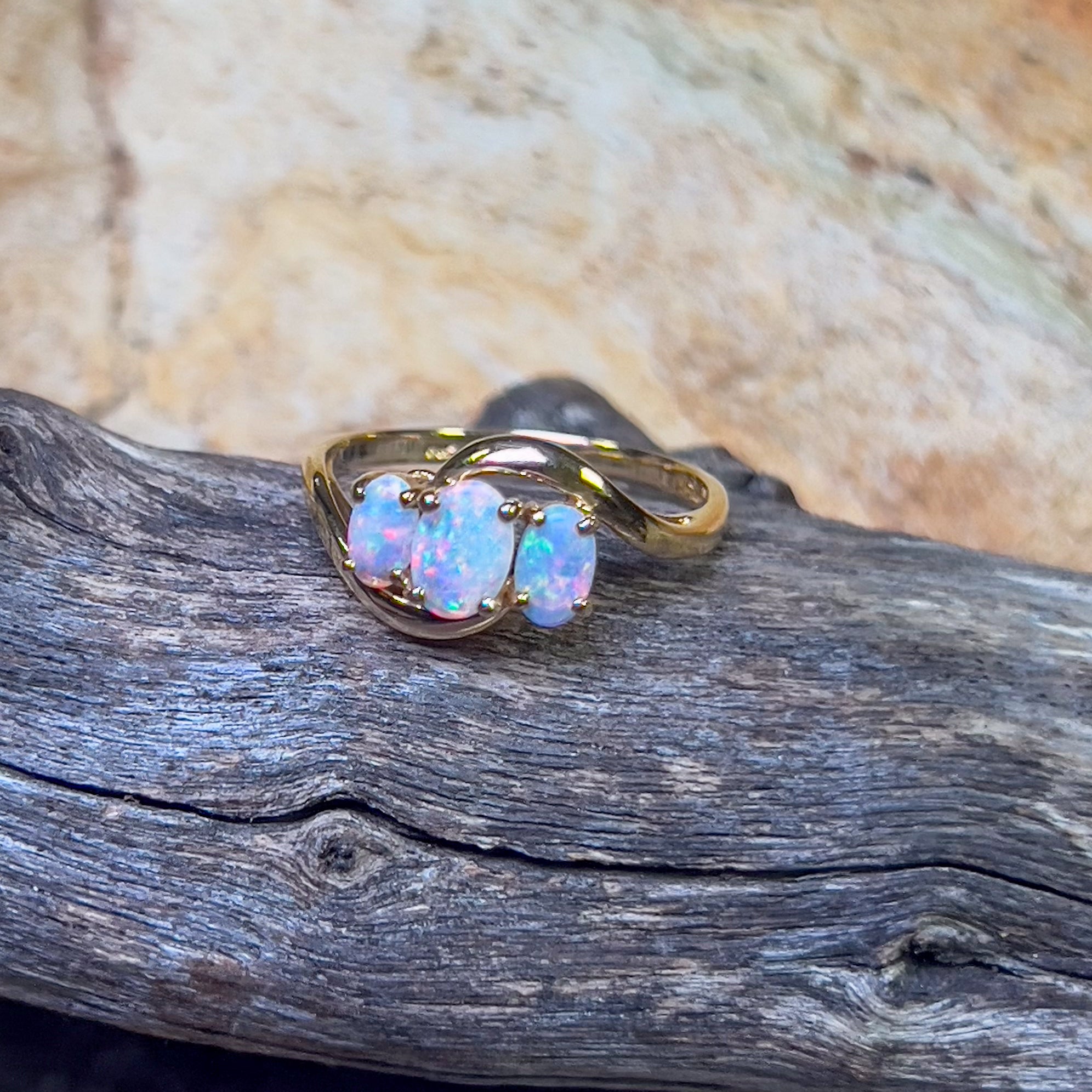14kt Yellow Gold 3 stone Opal Crystal ring