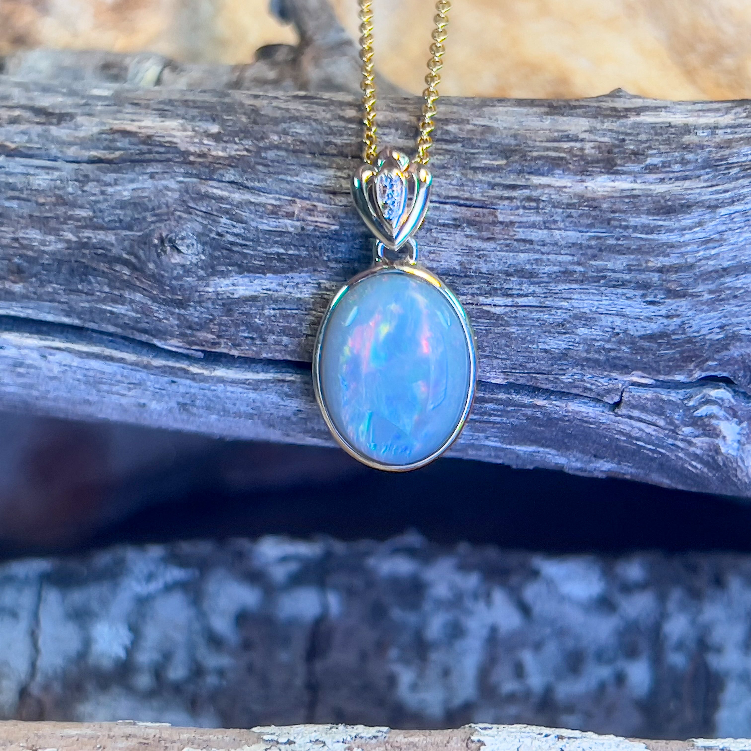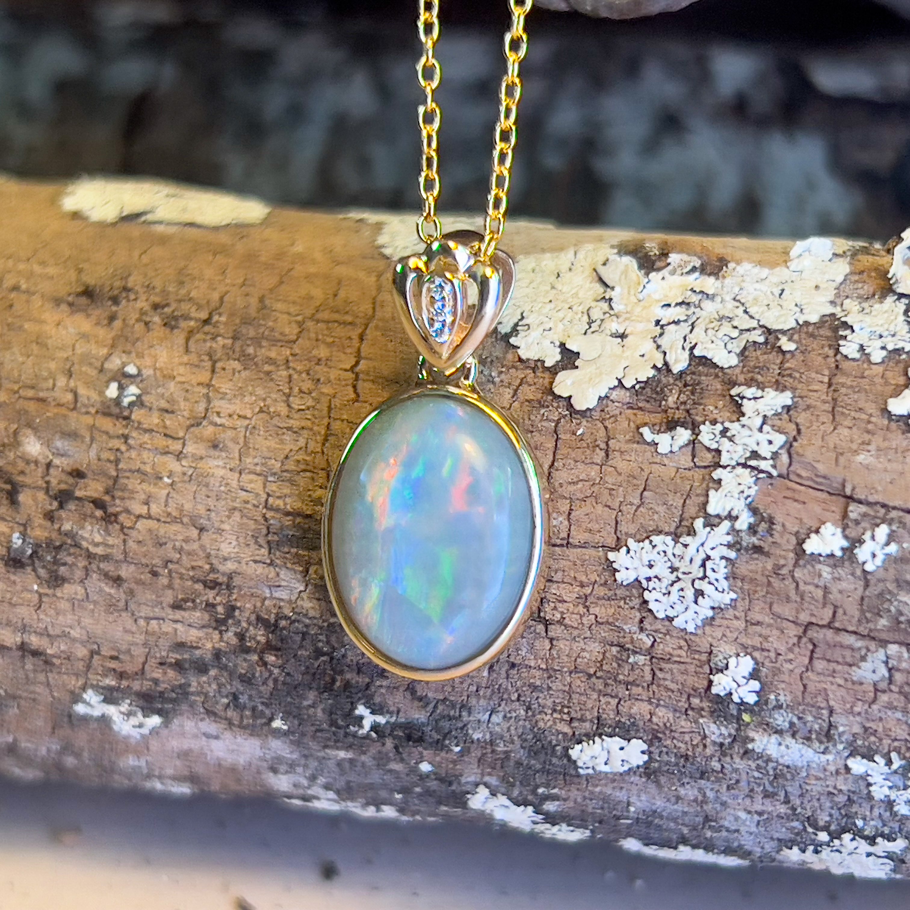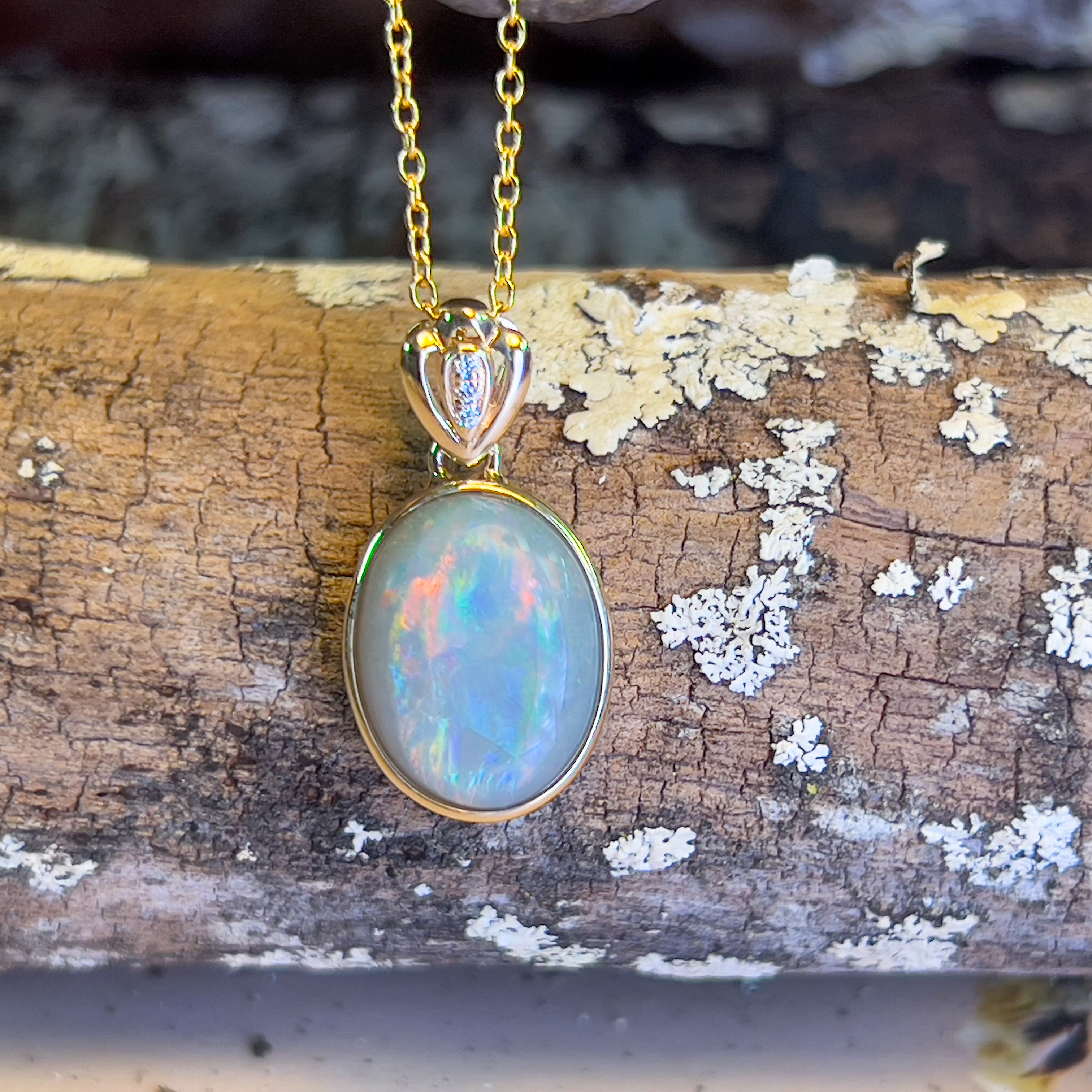 14kt Yellow Gold Black Opal 3.84ct and Diamond pendant