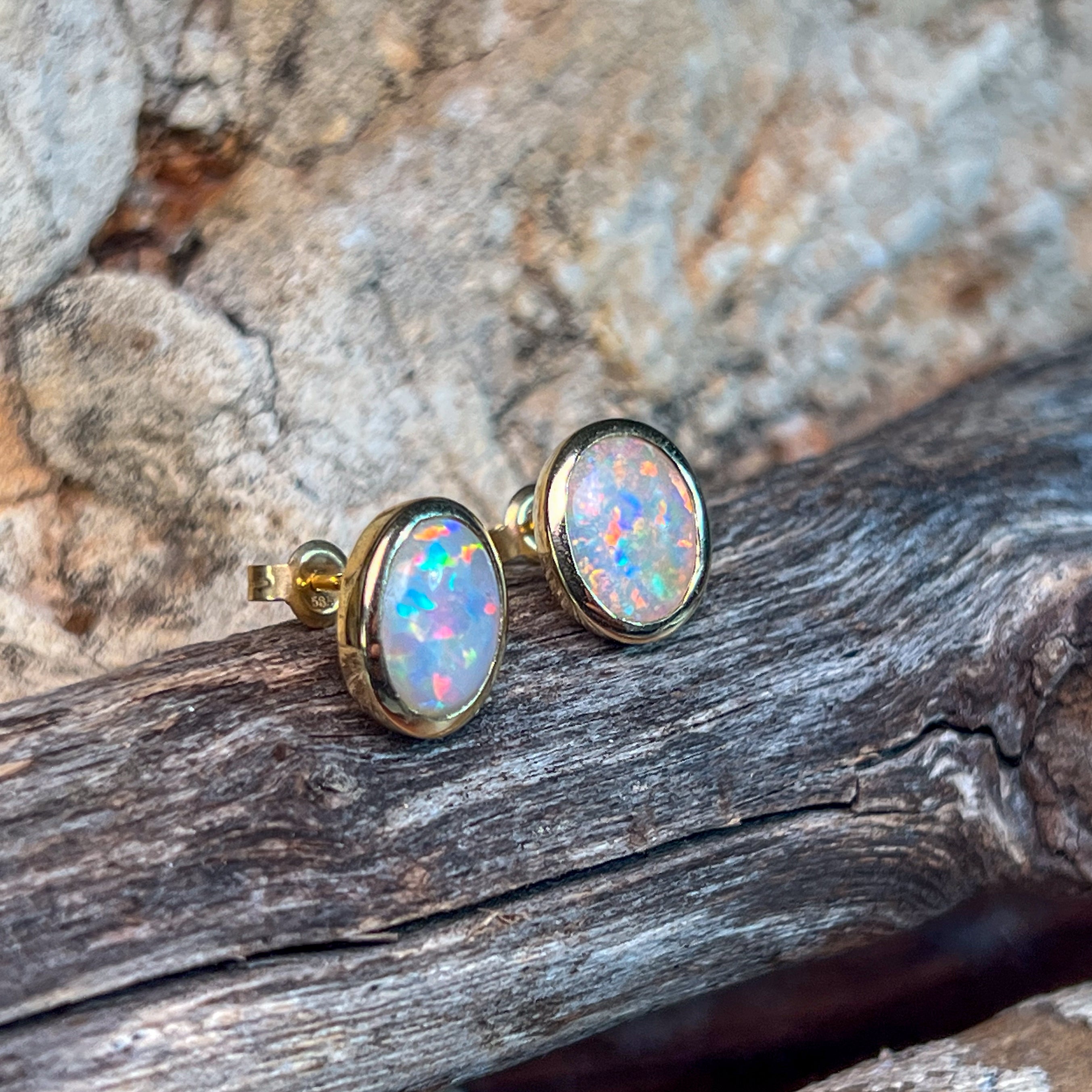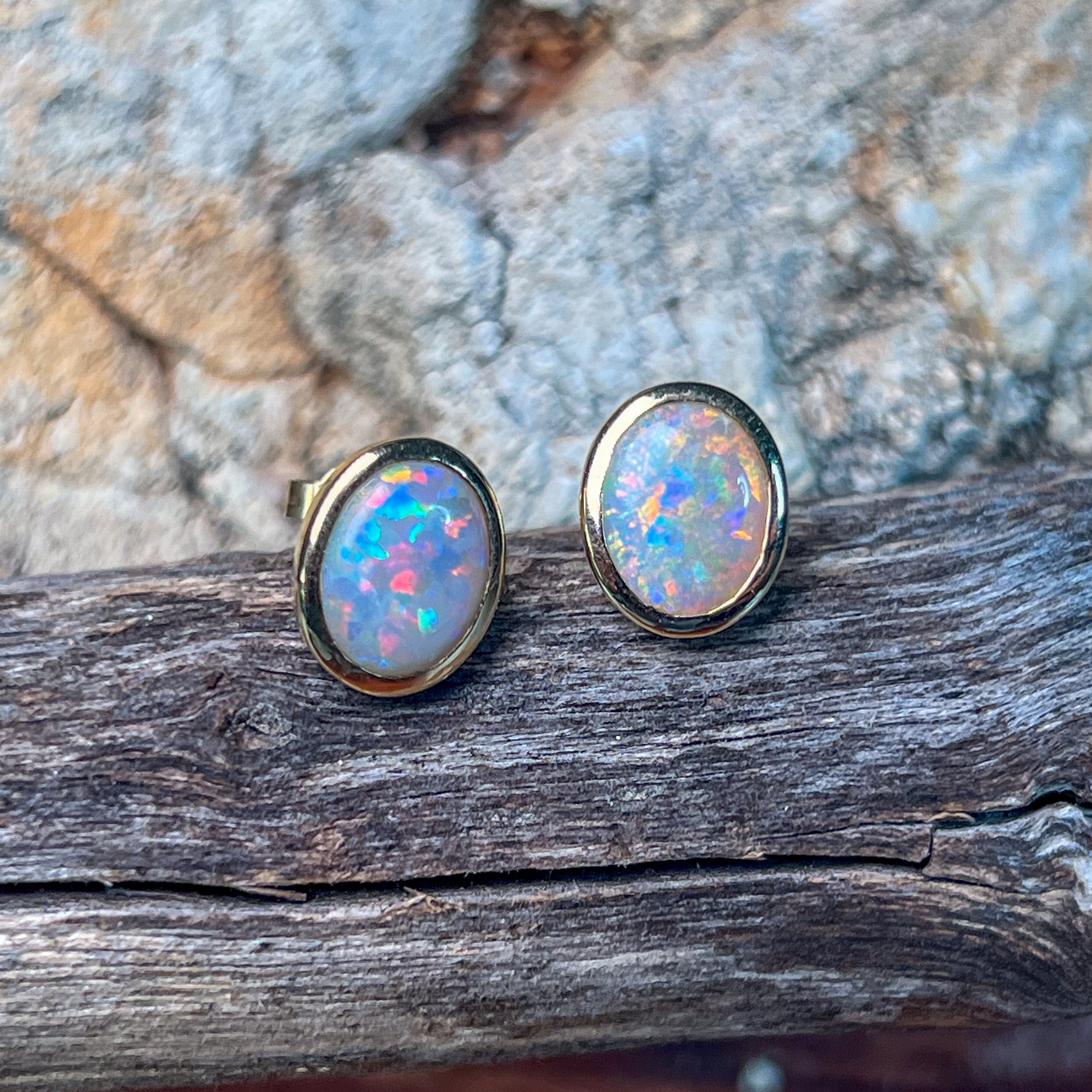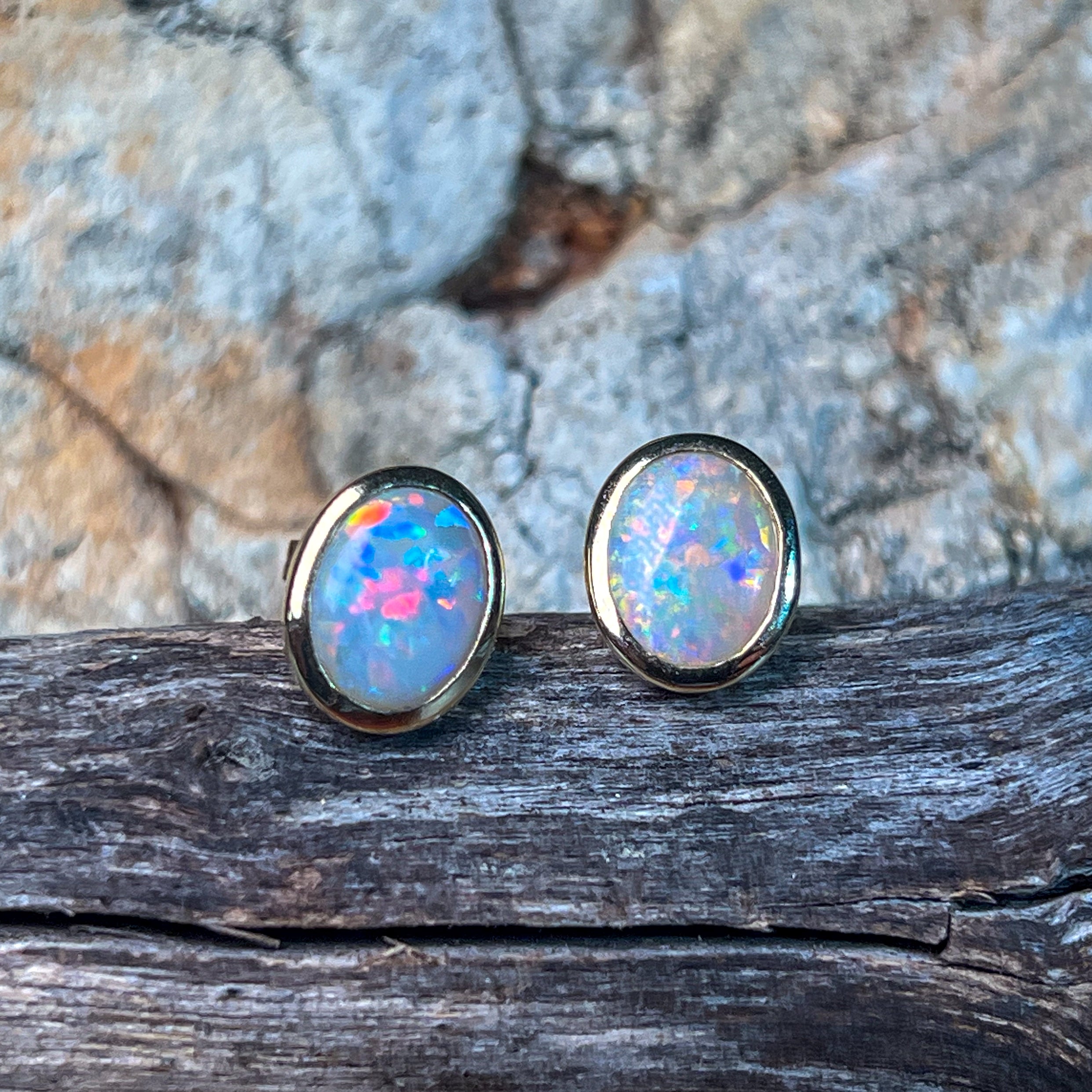 Experience the mesmerizing beauty of these 14kt Yellow Gold Black Opal studs. These black opal earrings are the perfect addition to your fine jewellery collection, adding a touch of elegance and sophistication to any outfit. Each opal is hand-selected for its unique and vibrant colors, making these earrings a true statement piece.