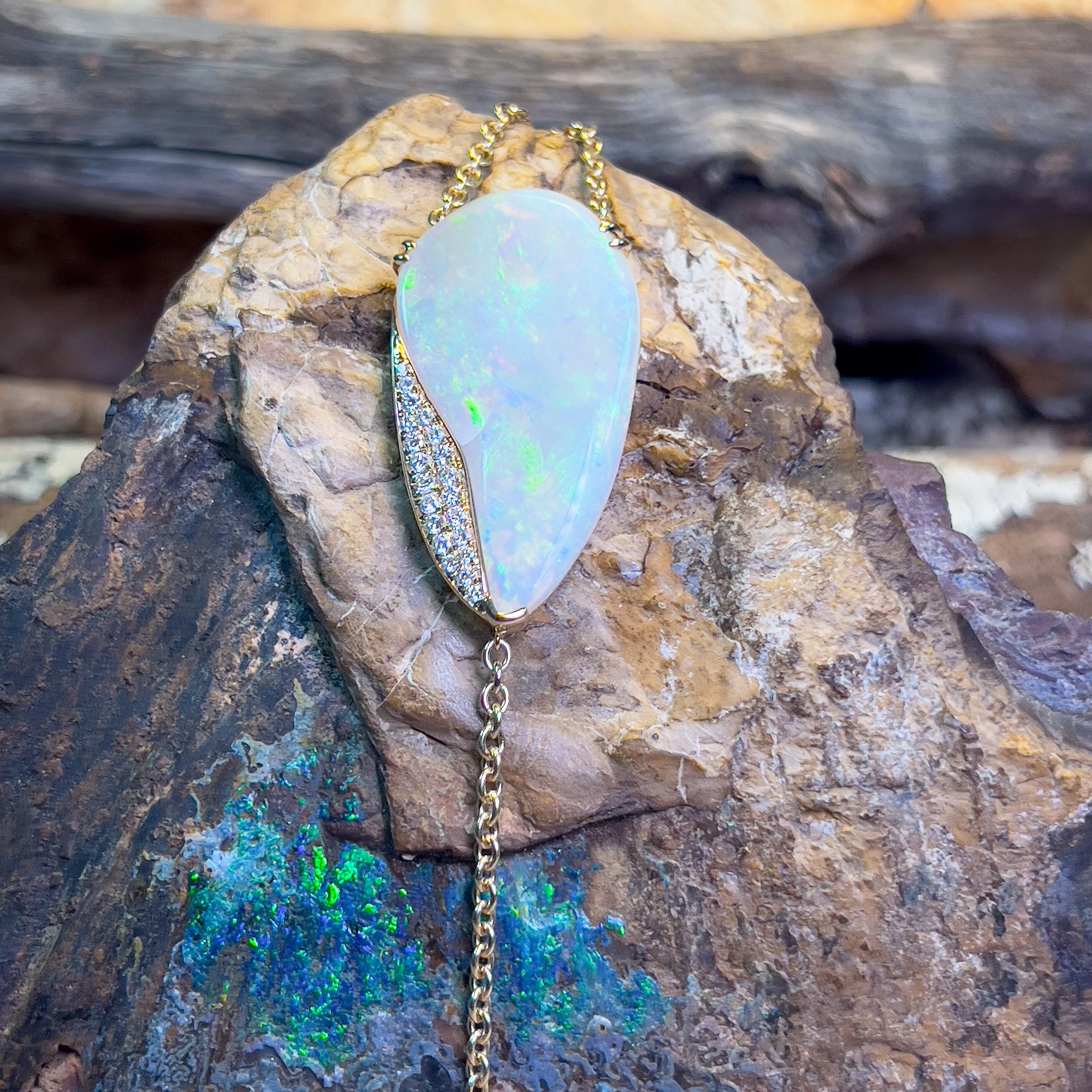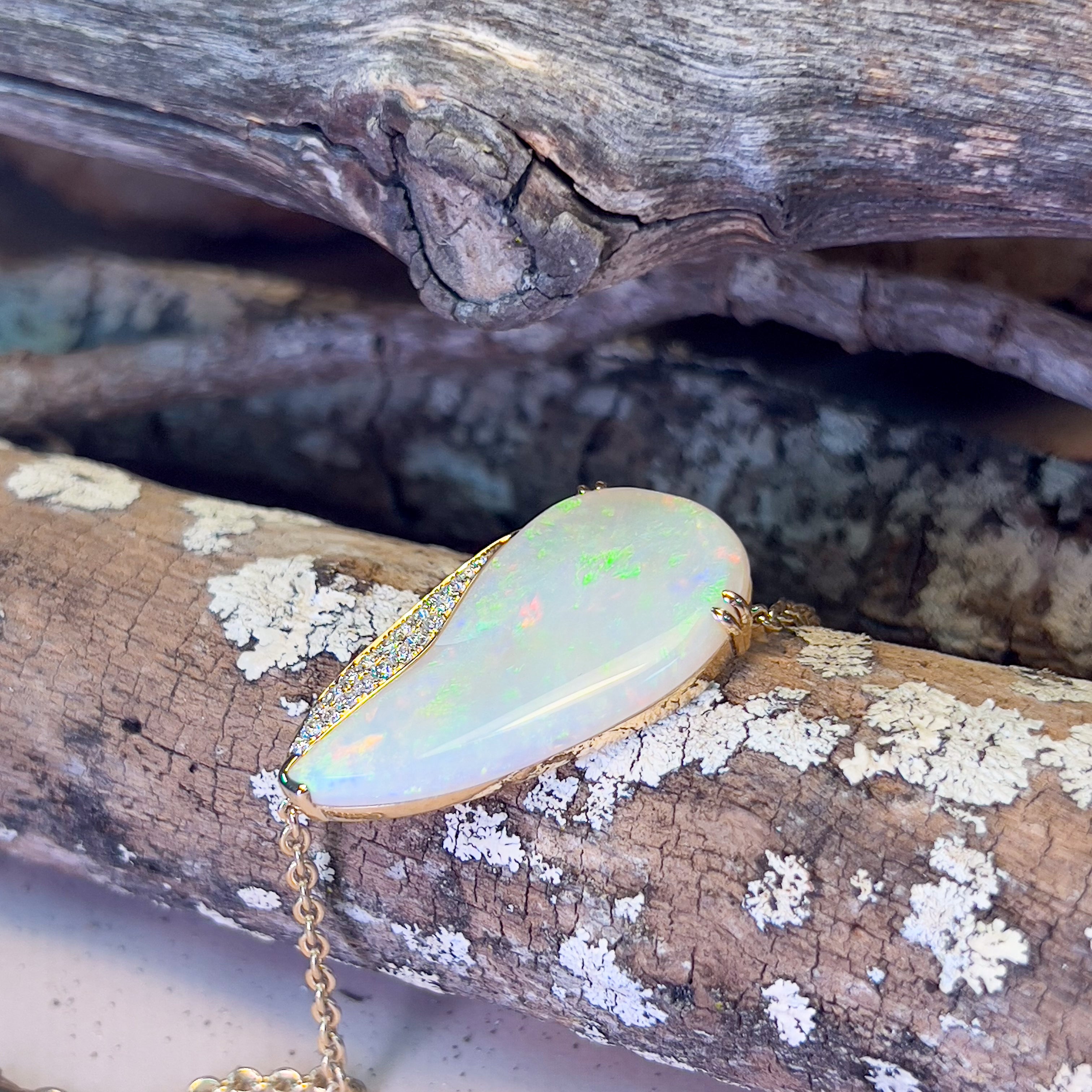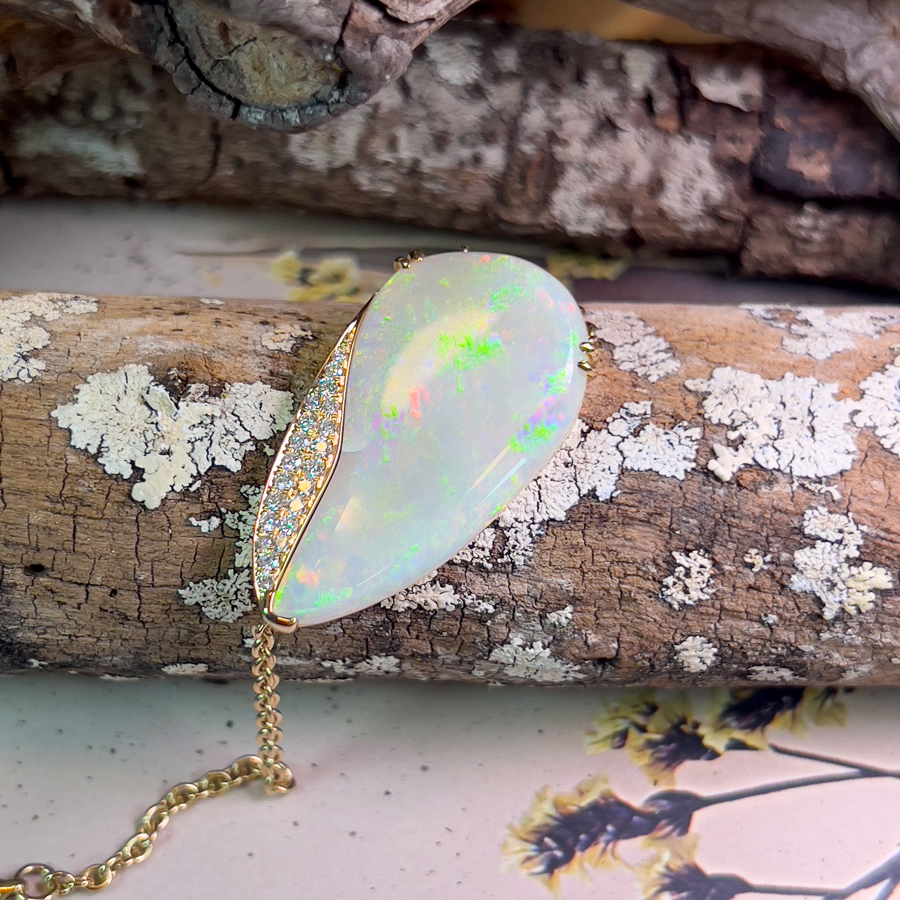 Elevate your look with our stunning 14KT Yellow Gold Large White Opal bracelet, adorned with sparkling diamonds. Perfect for any occasion, this opal bracelet adds a touch of elegance and sophistication to any outfit. Discover the timeless beauty and natural iridescence of opals with this must-have piece for women.