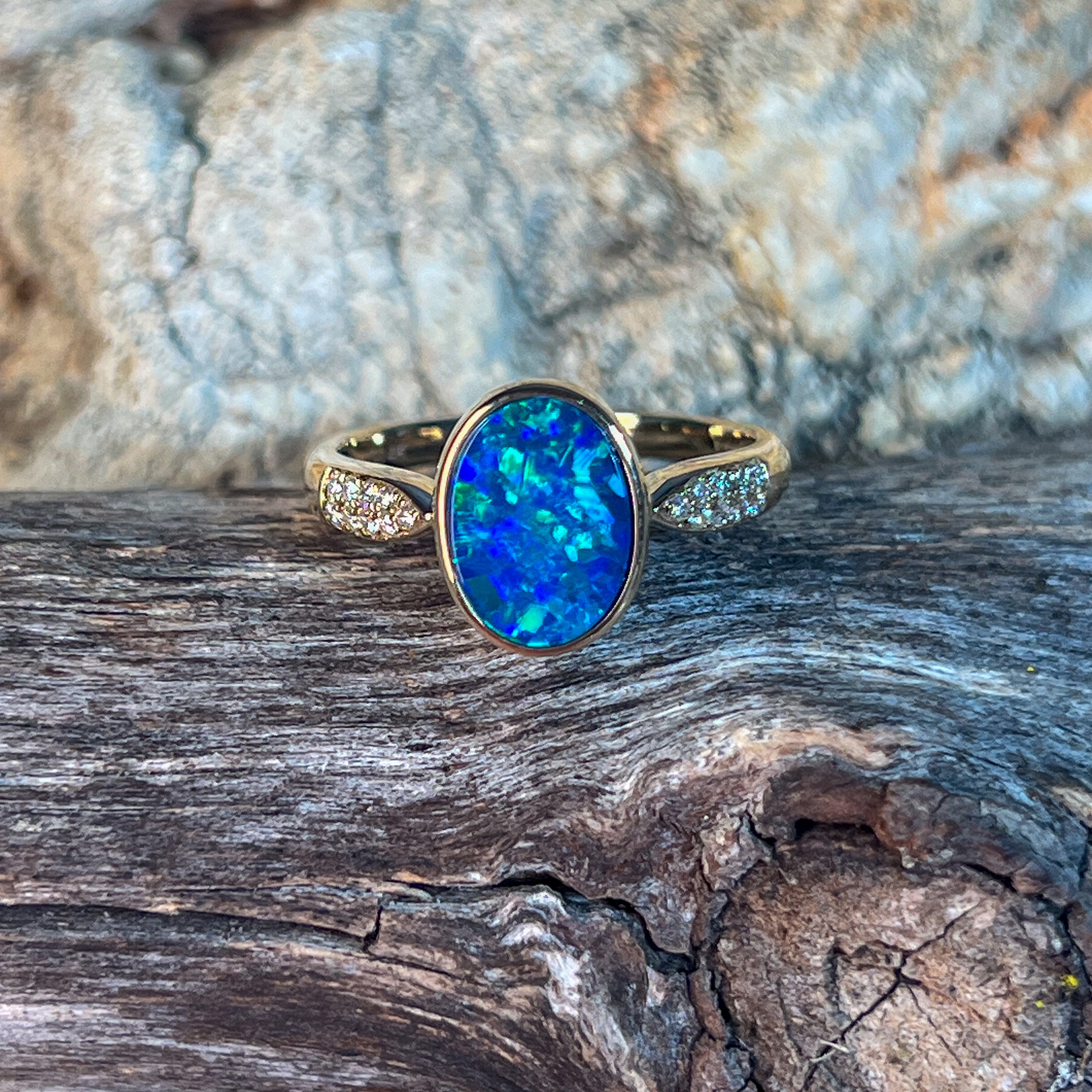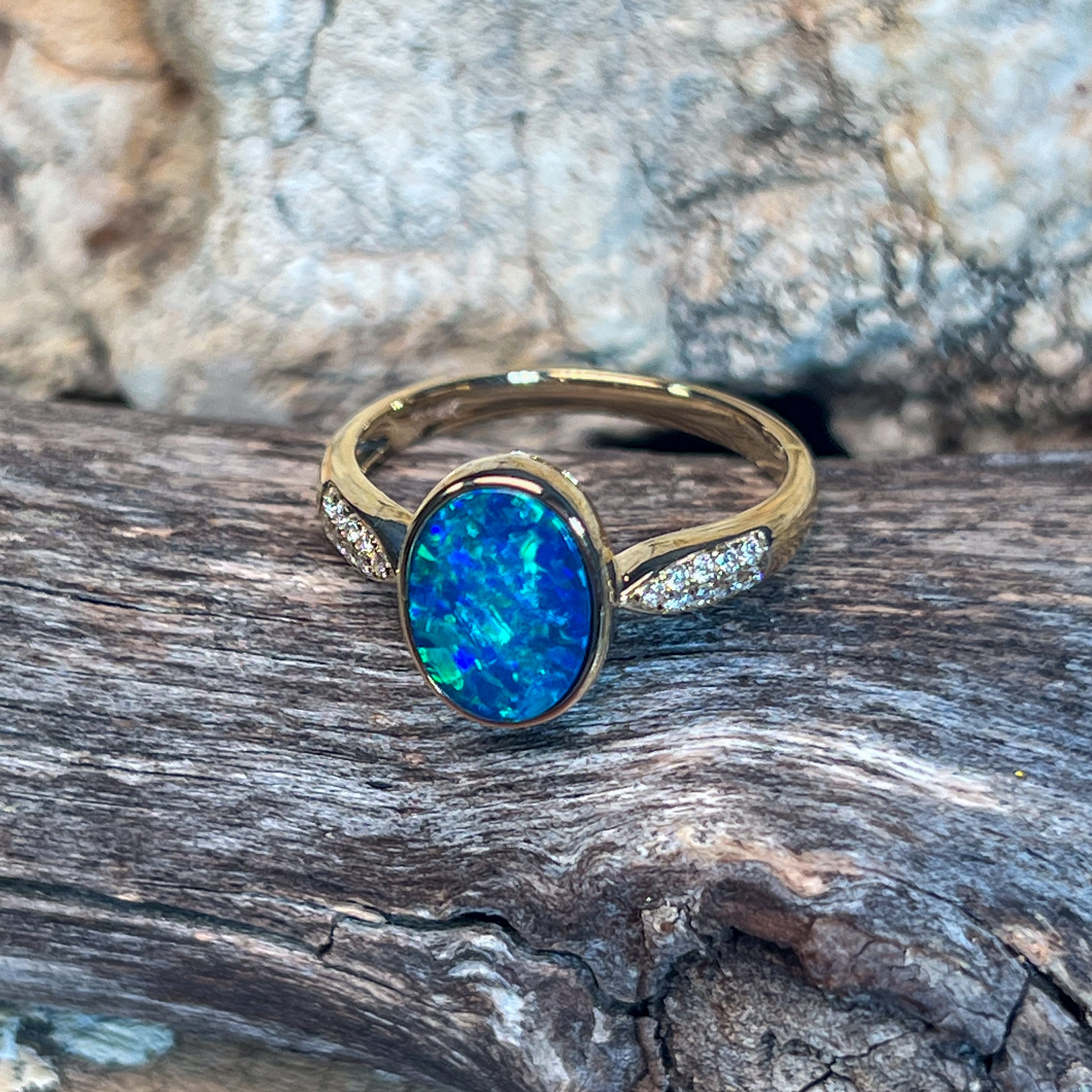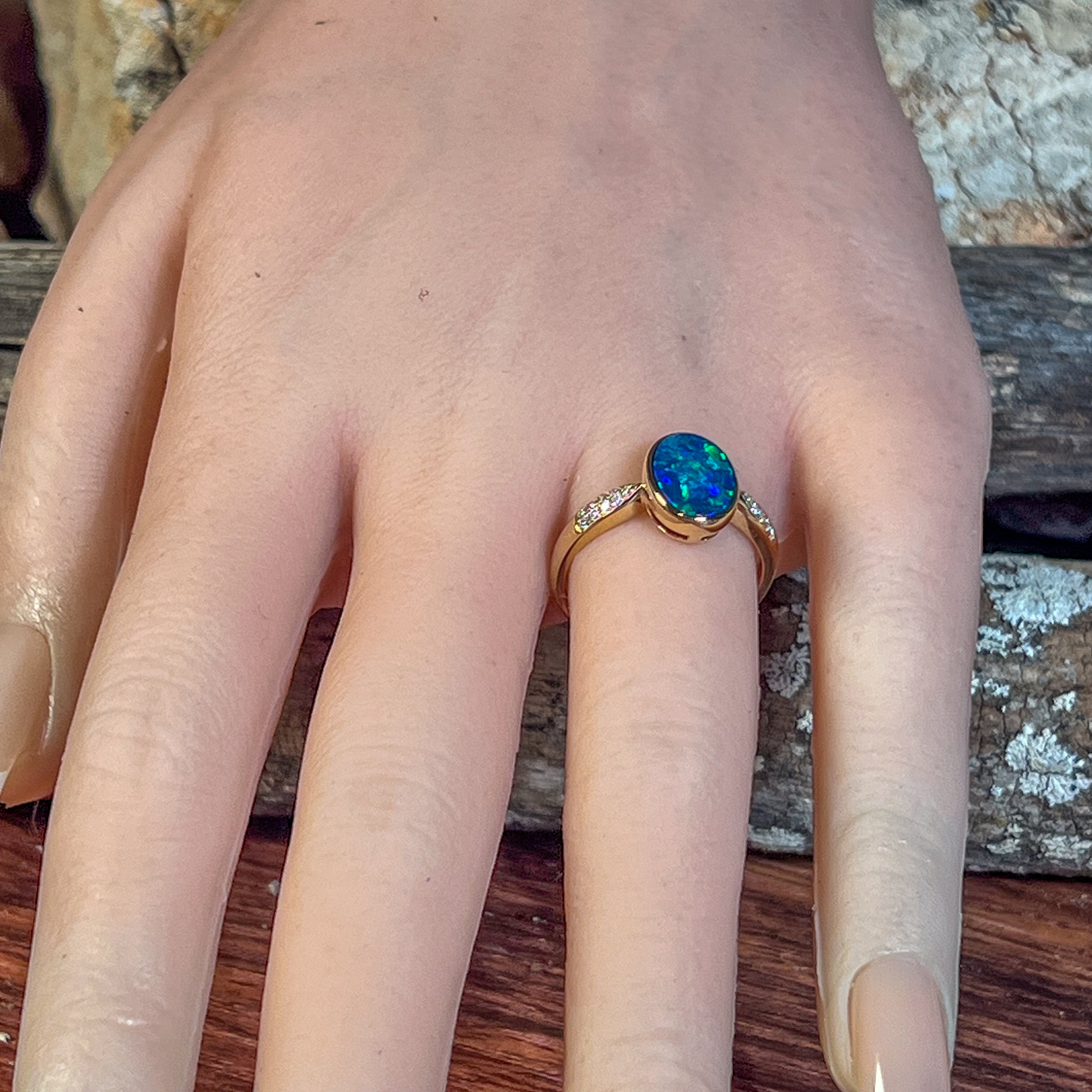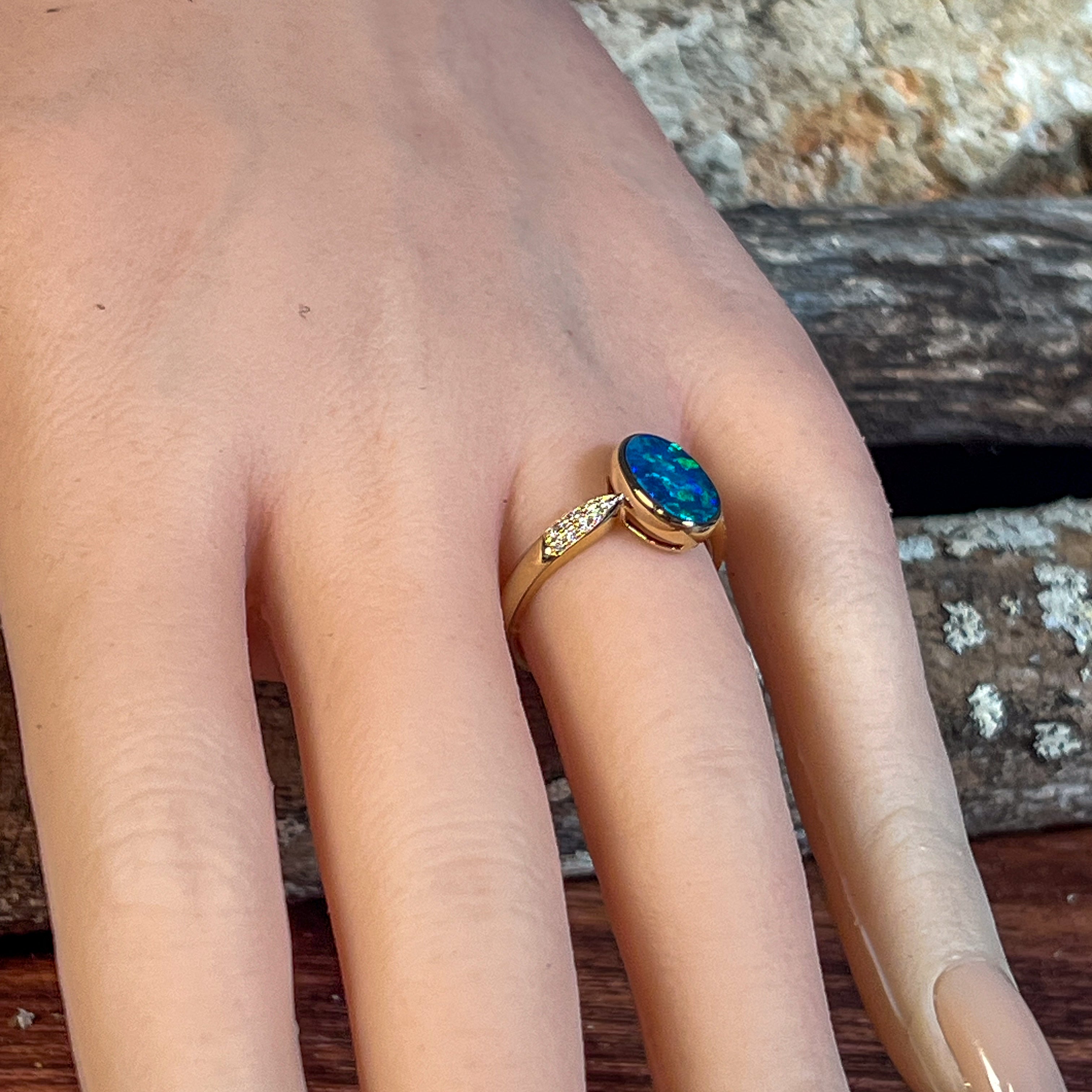 14kt Yellow Gold Opal doublet 1.33ct and diamond ring