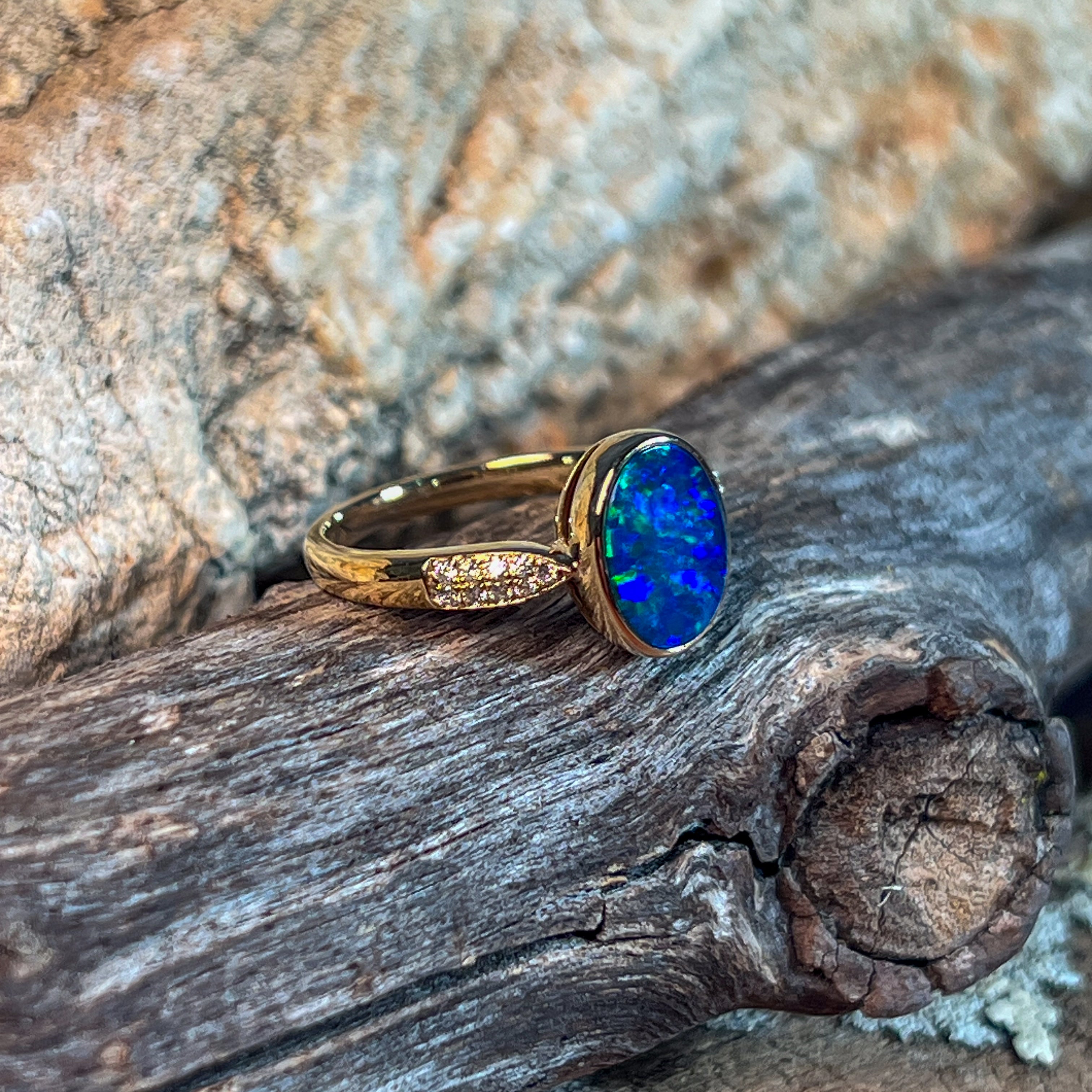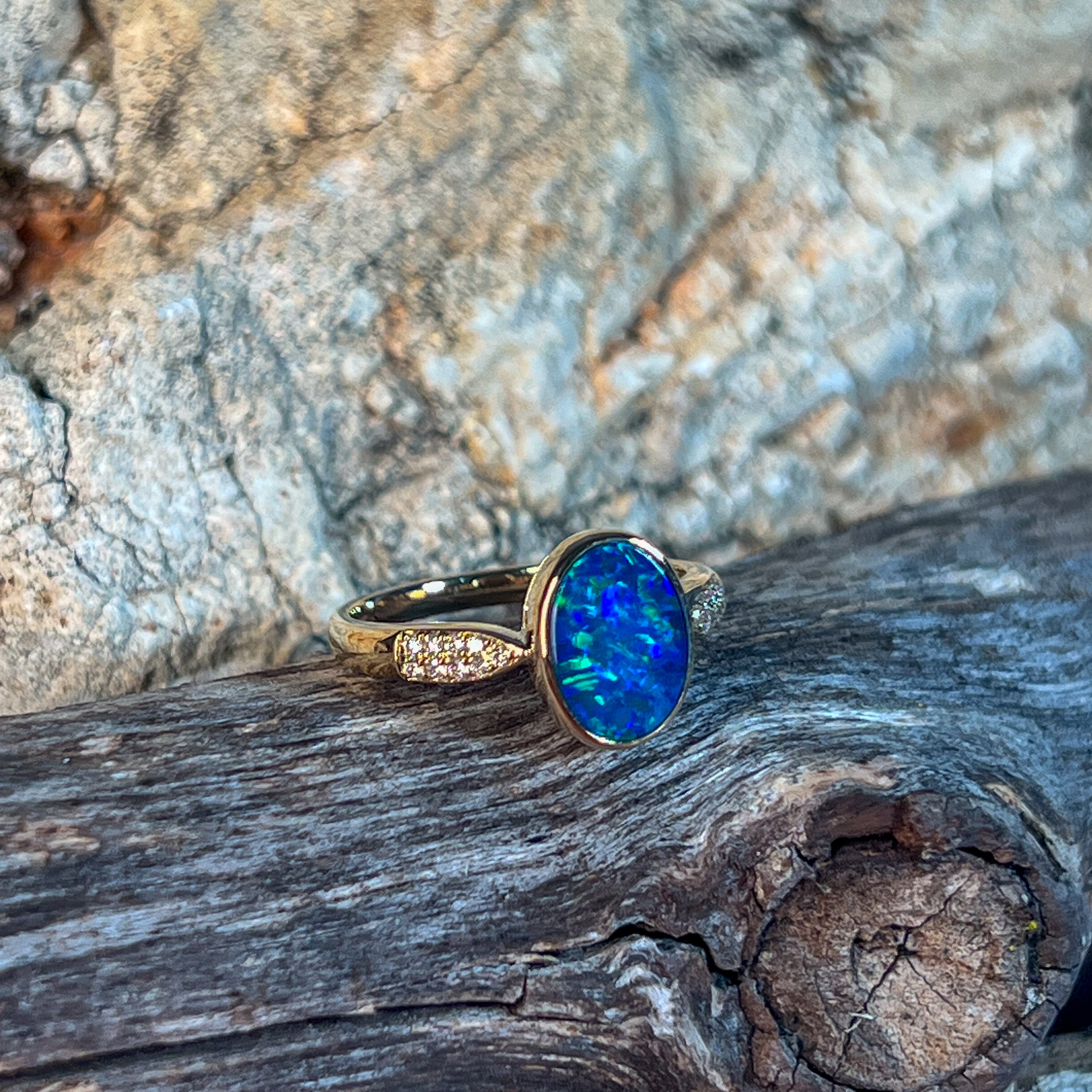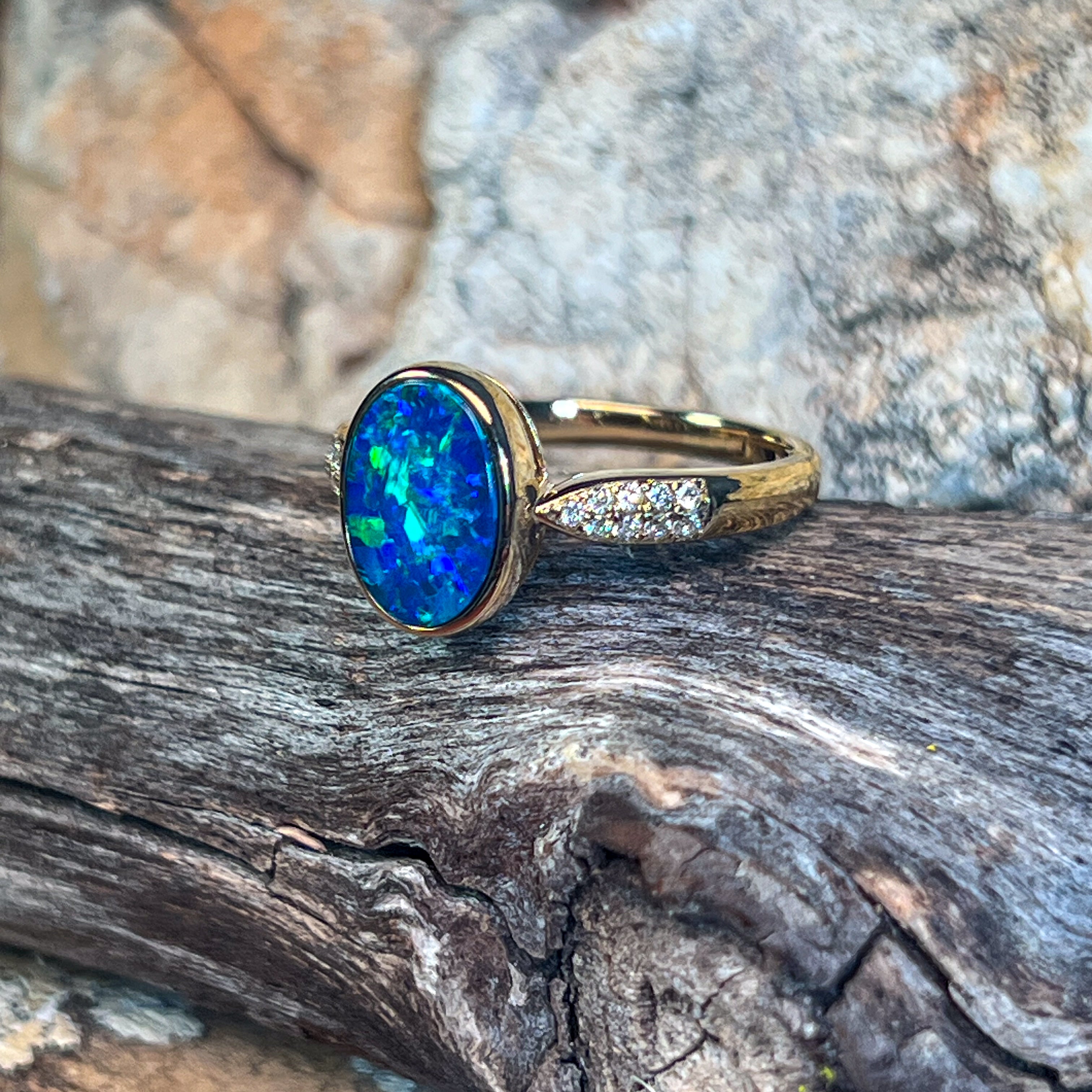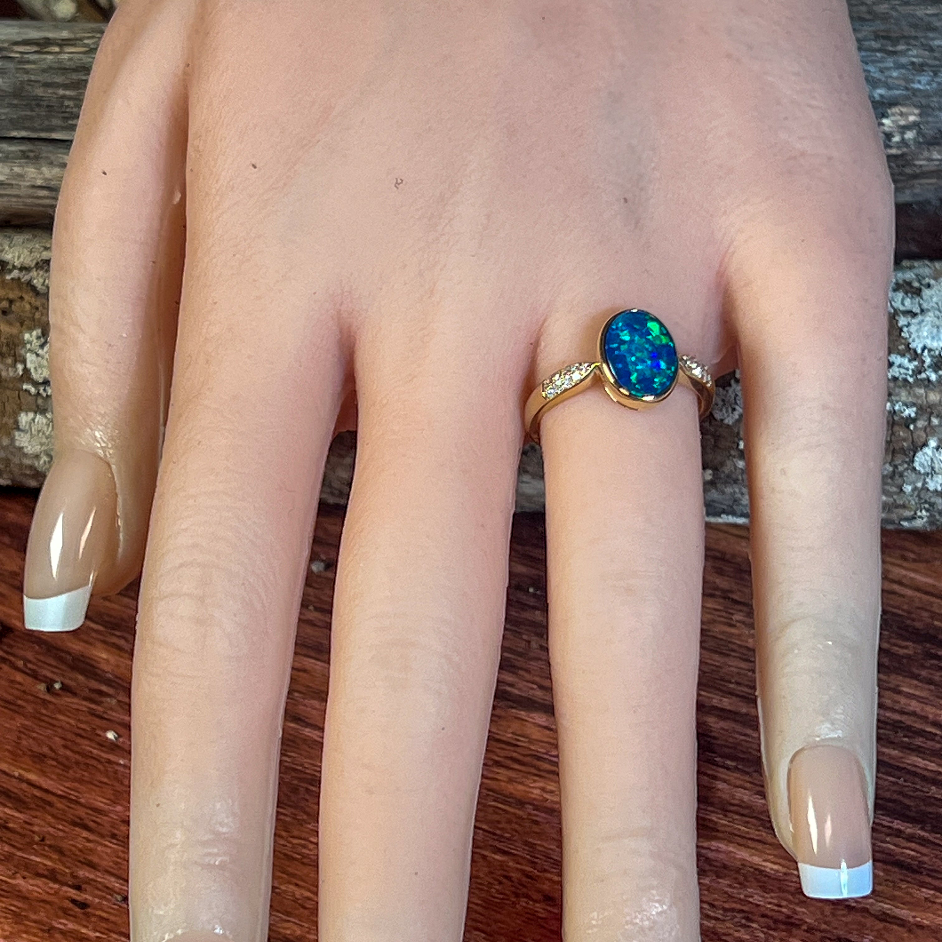 14kt Yellow Gold Opal doublet 1.33ct and diamond ring