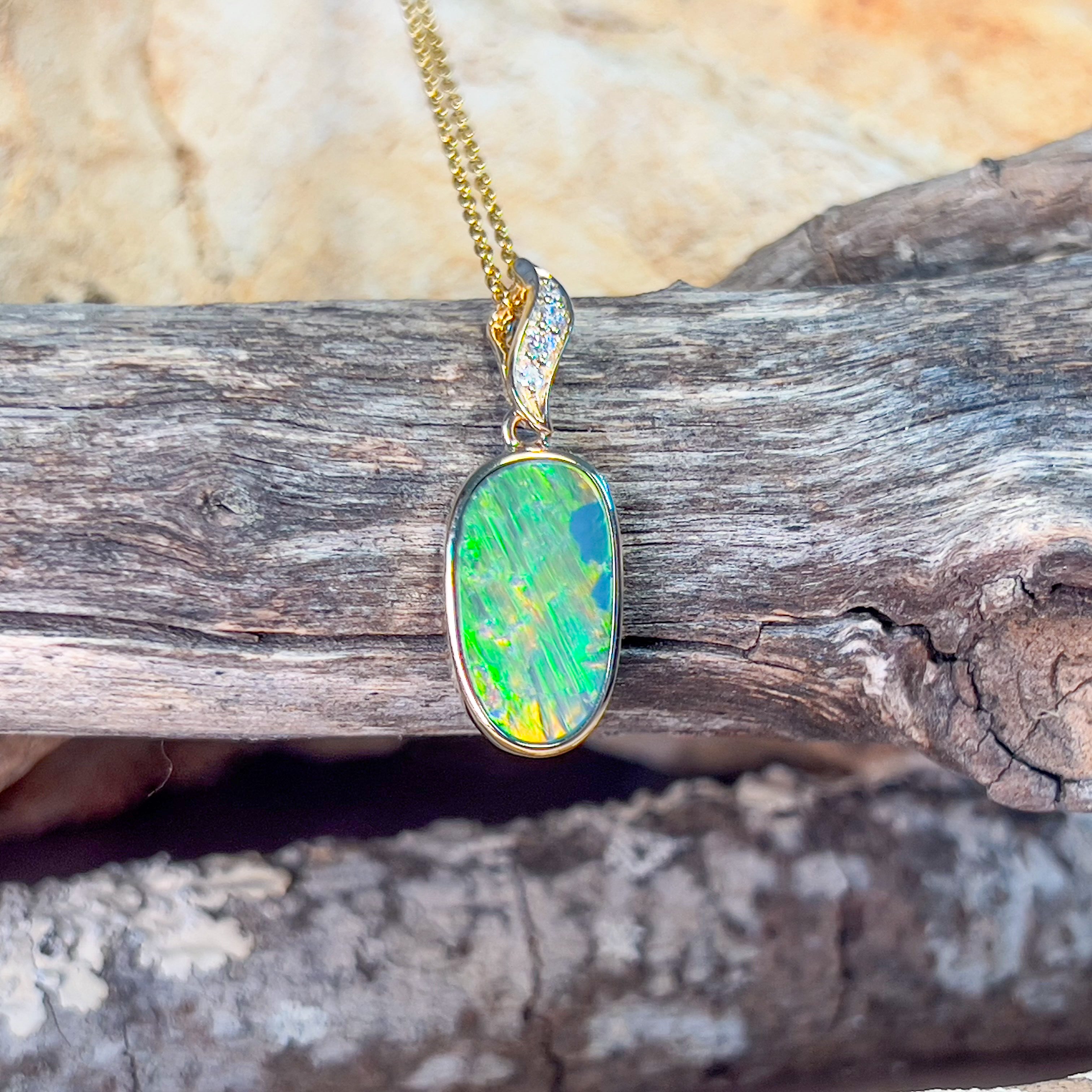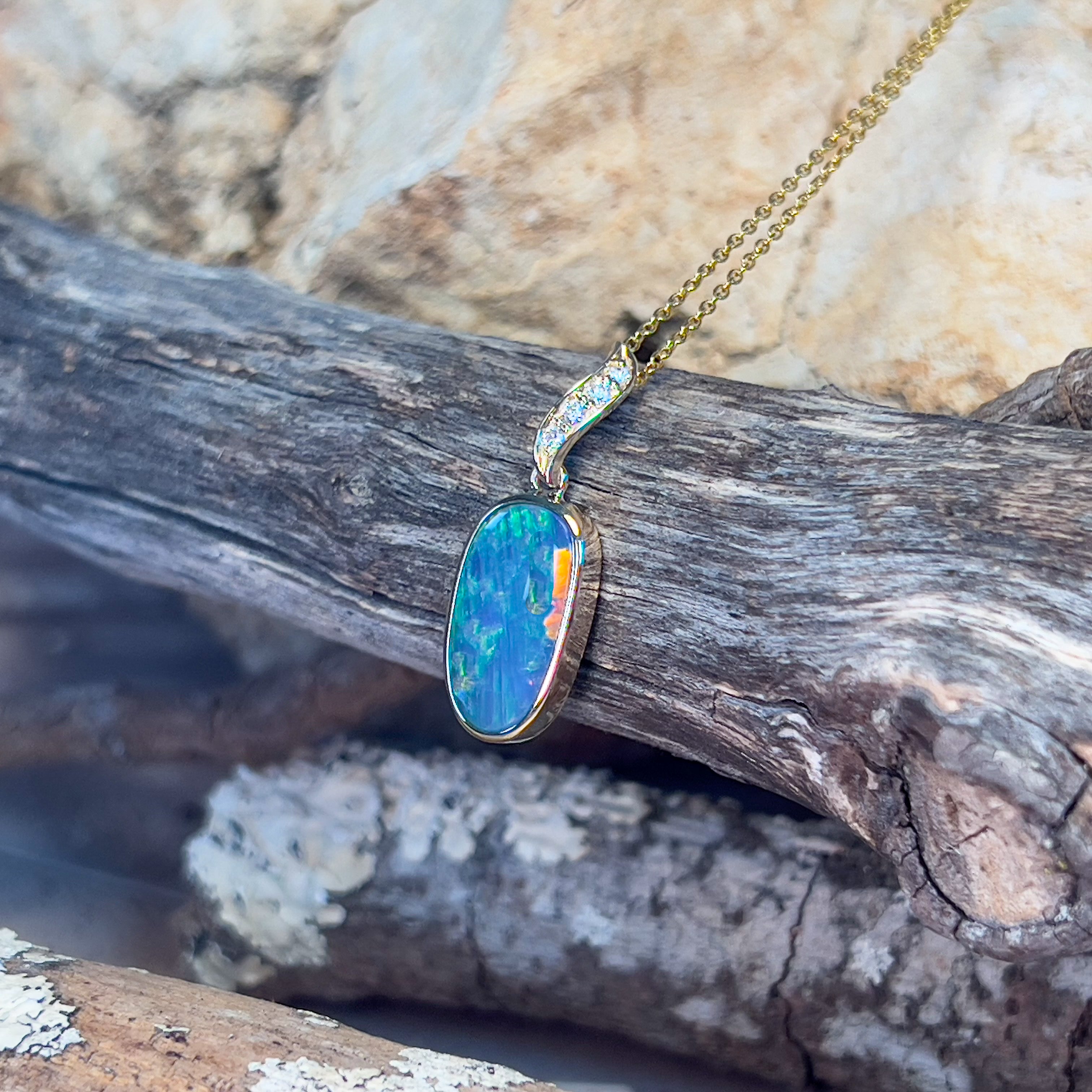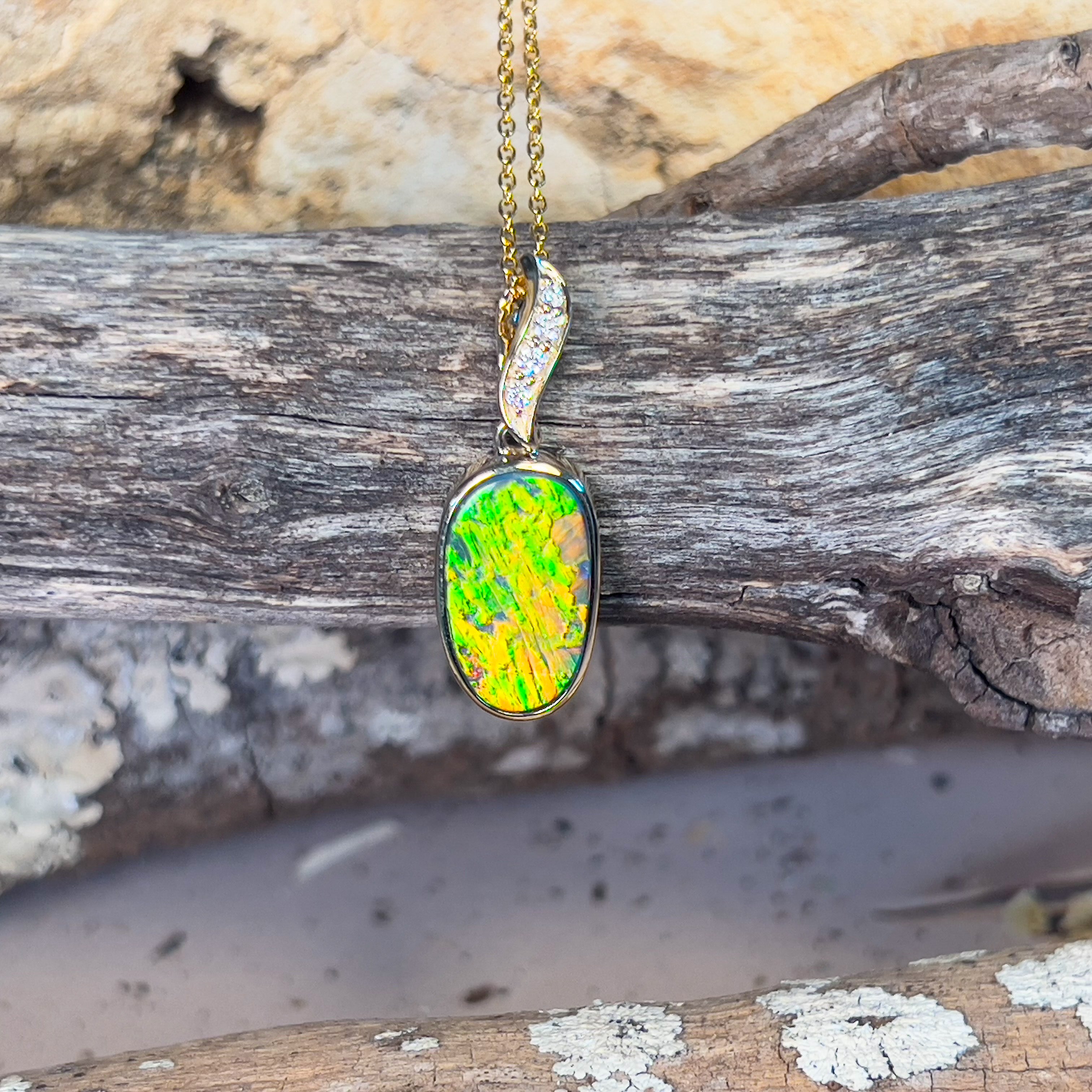 14kt Yellow Gold Opal doublet 3.1ct pendant with diamonds