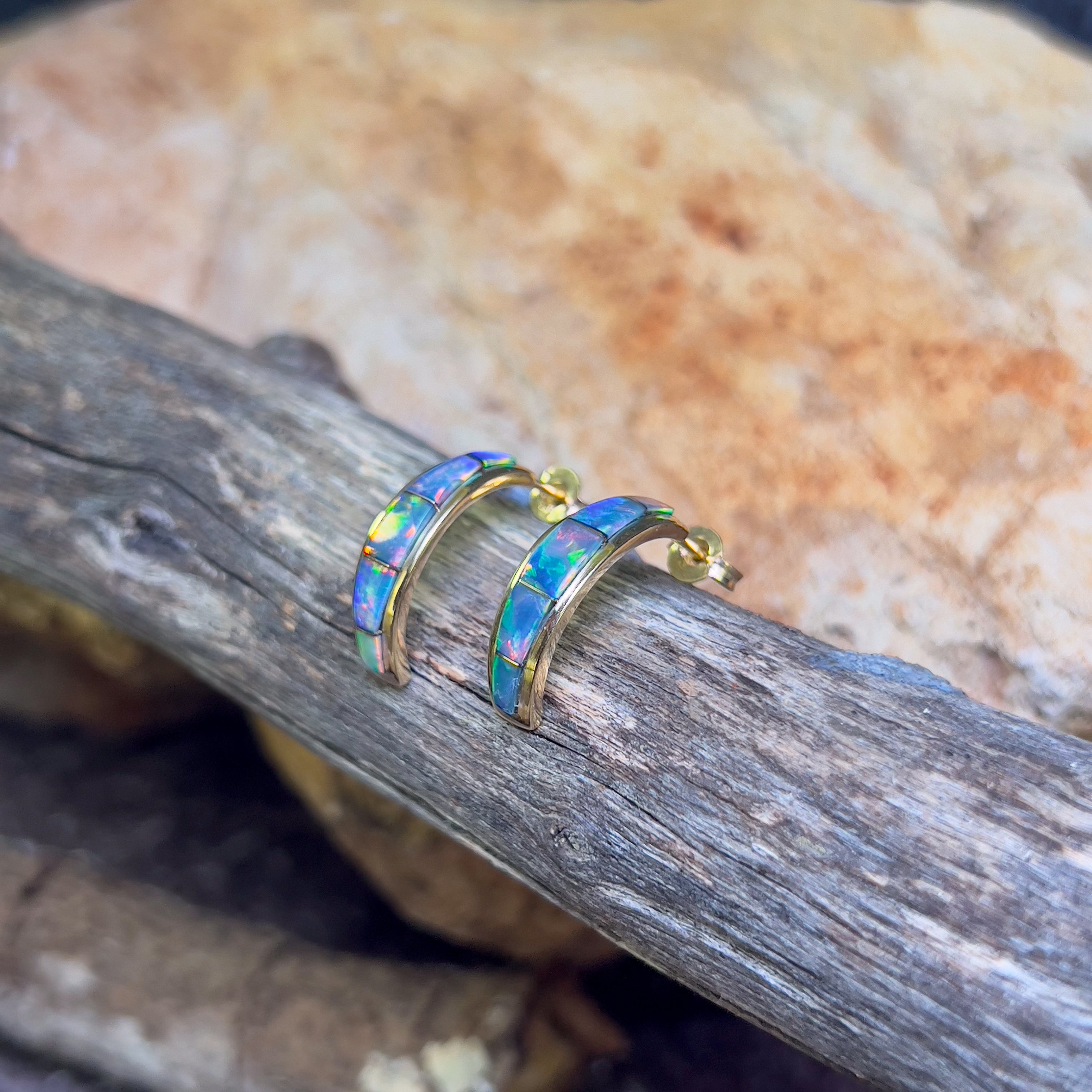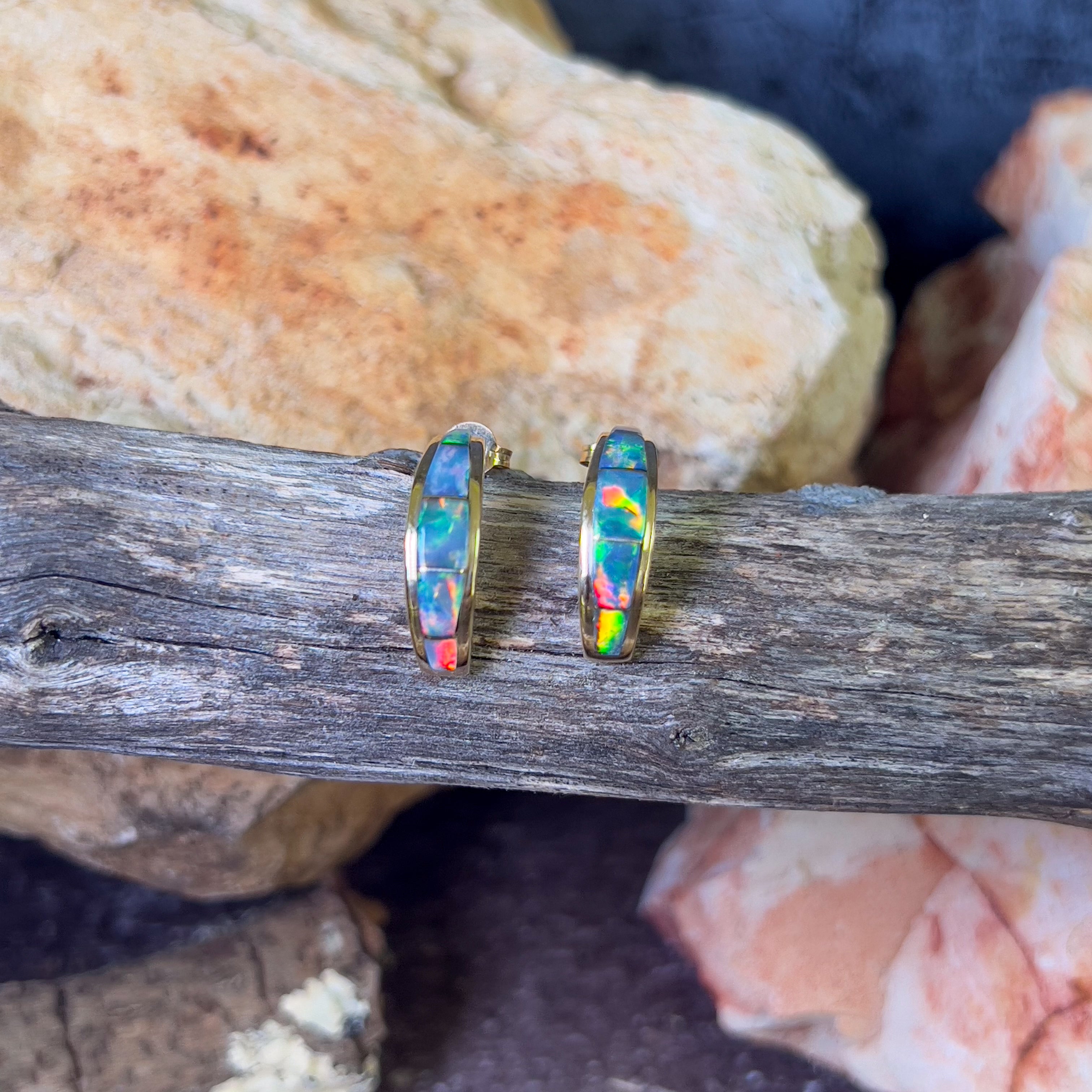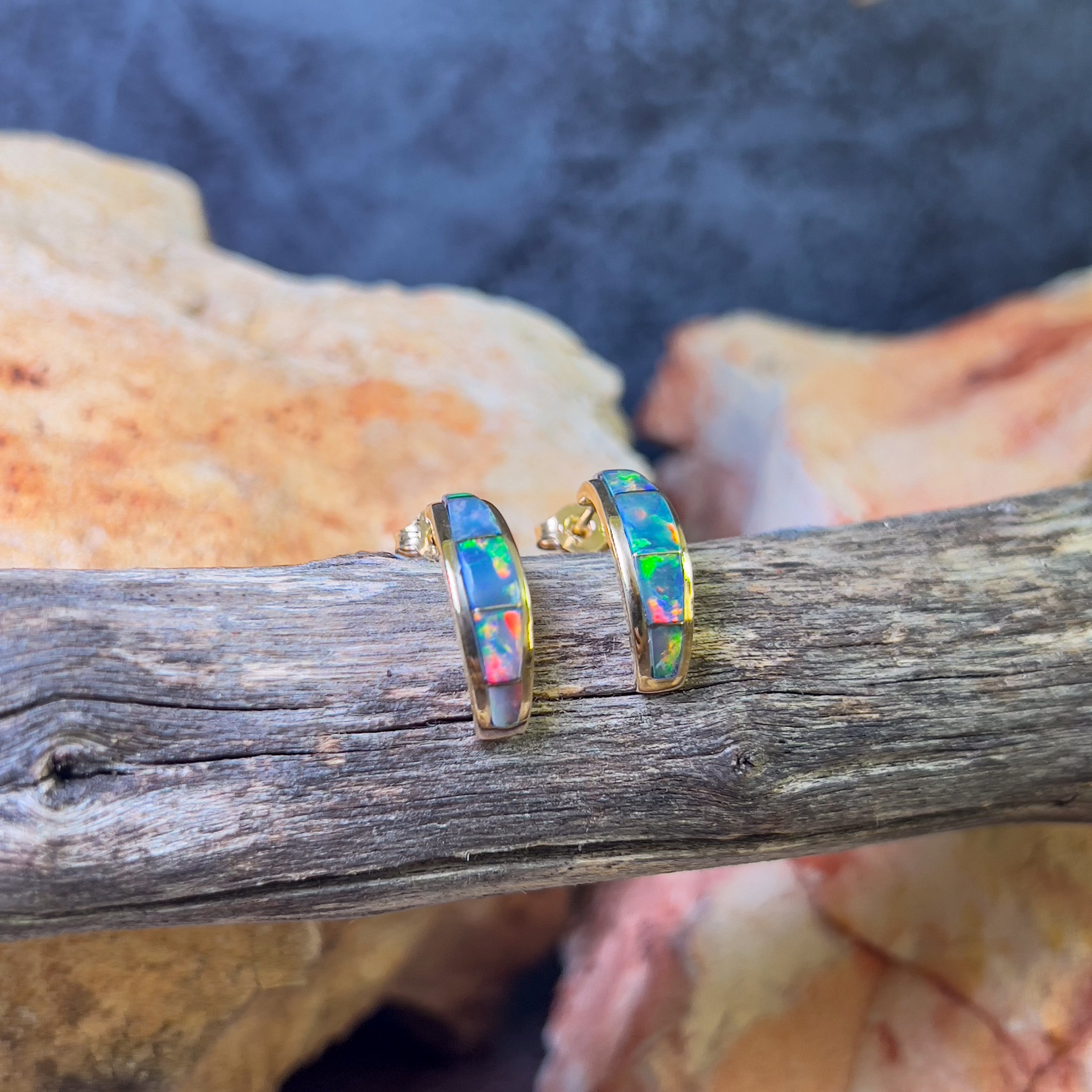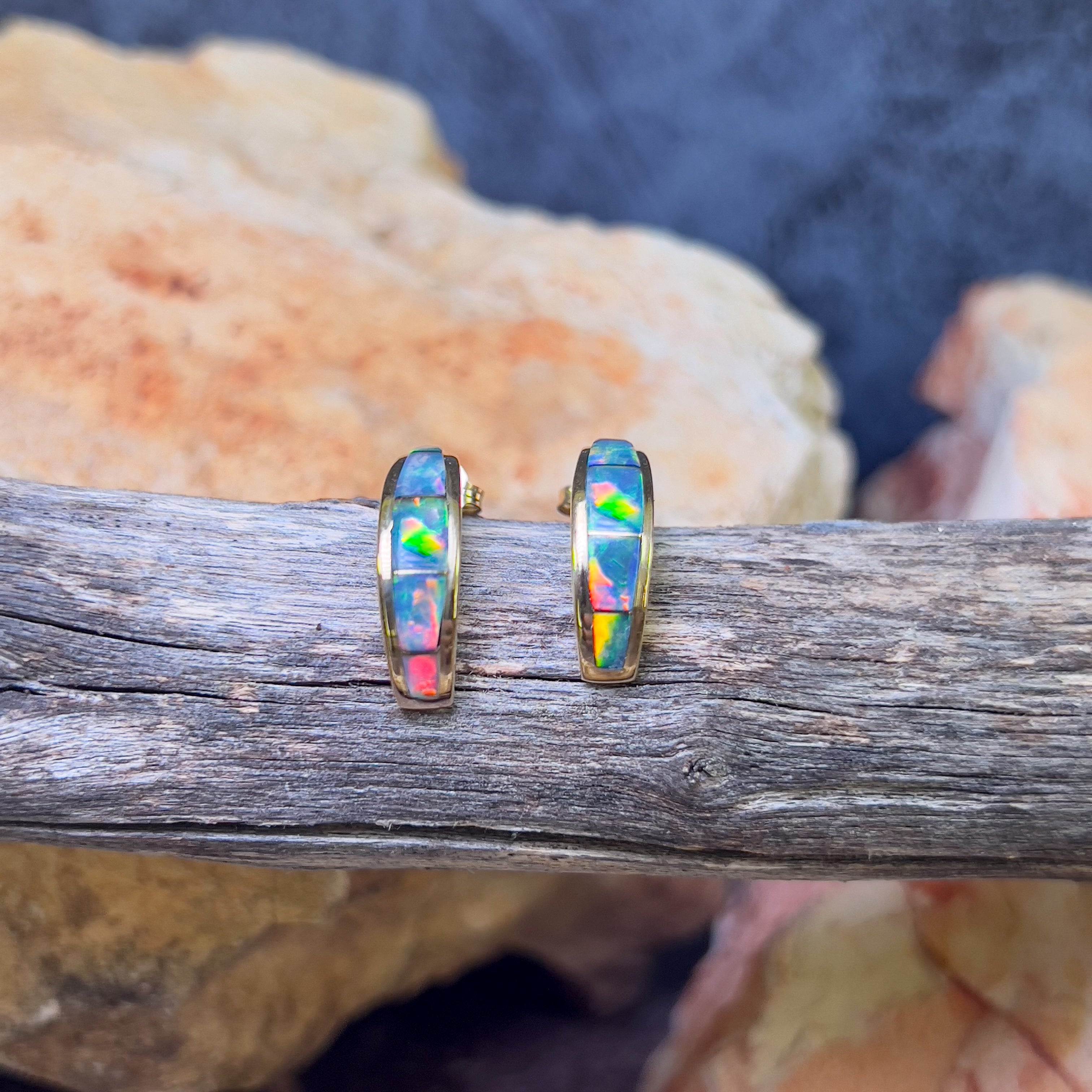 Pair of 14kt Yellow Gold Opal inlay style earrings