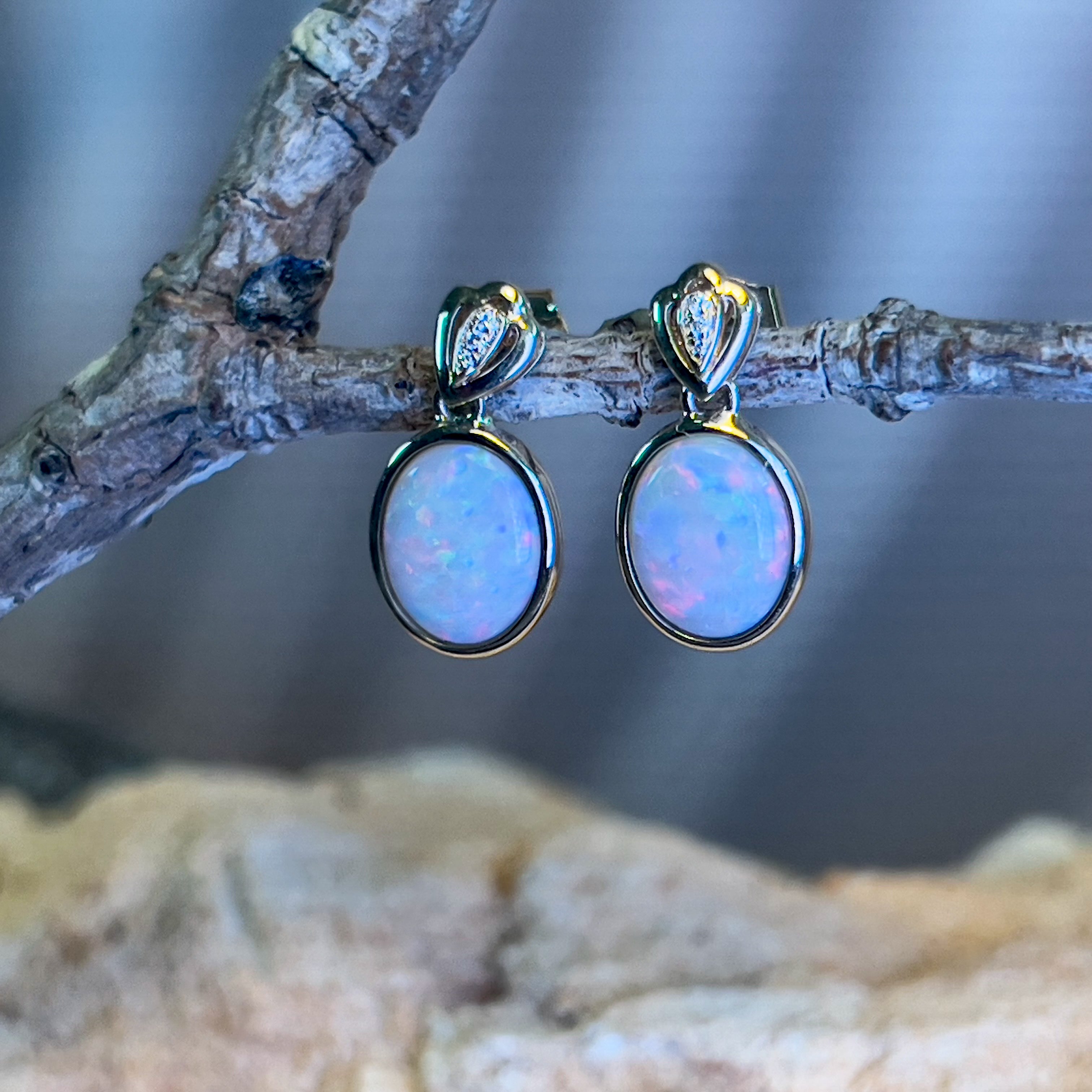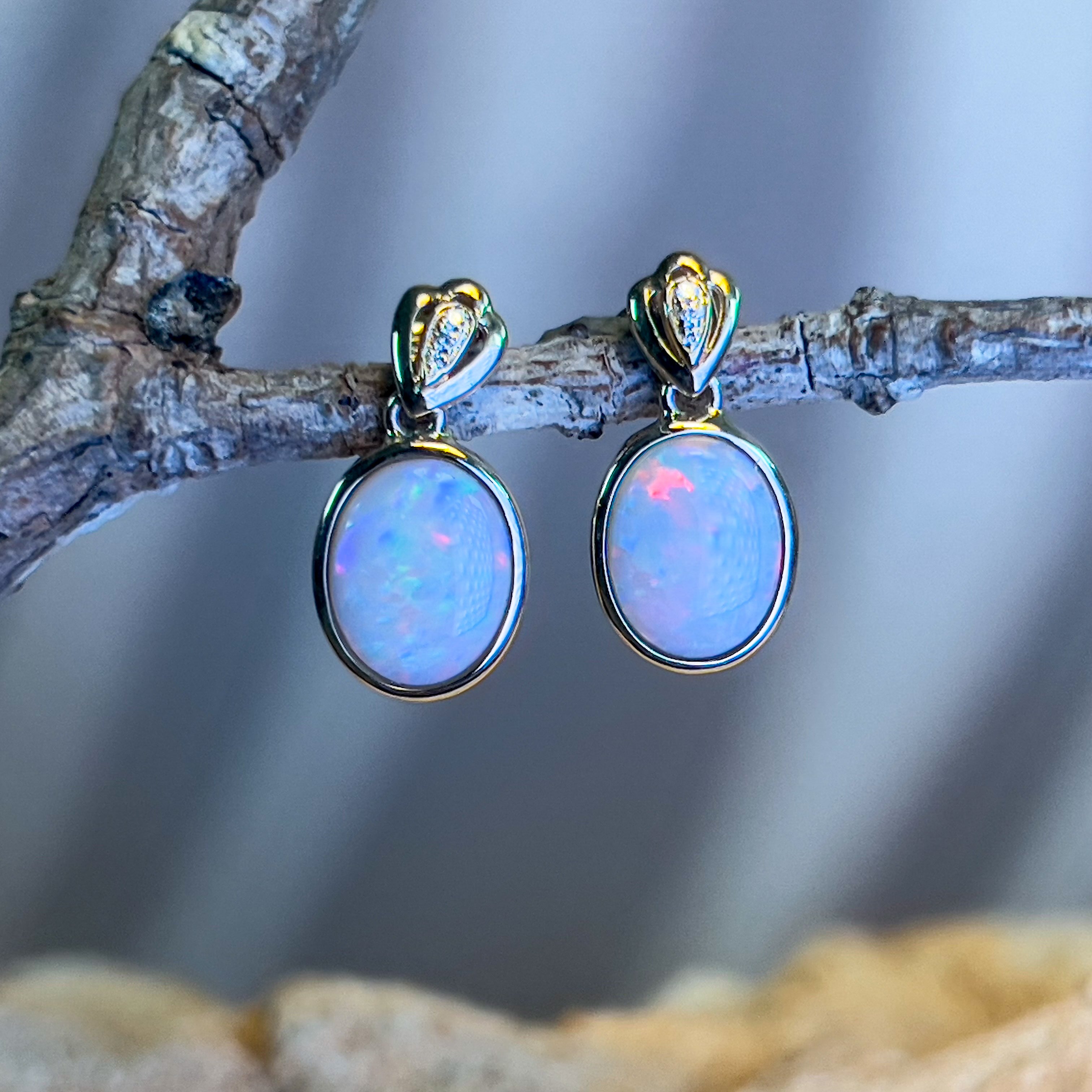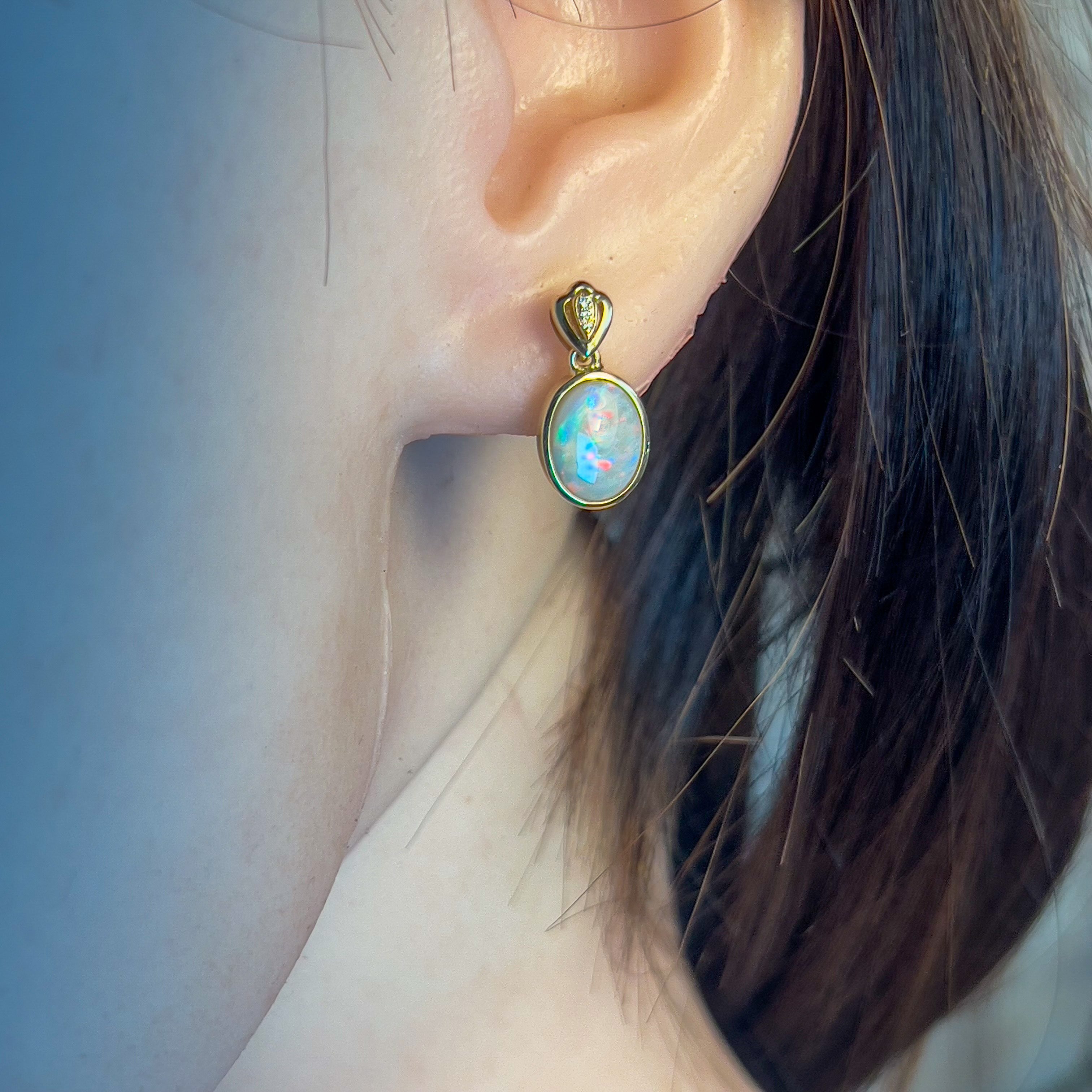 14kt Yellow Gold Oval Dark Opal 2.08ct bezel set earring drops