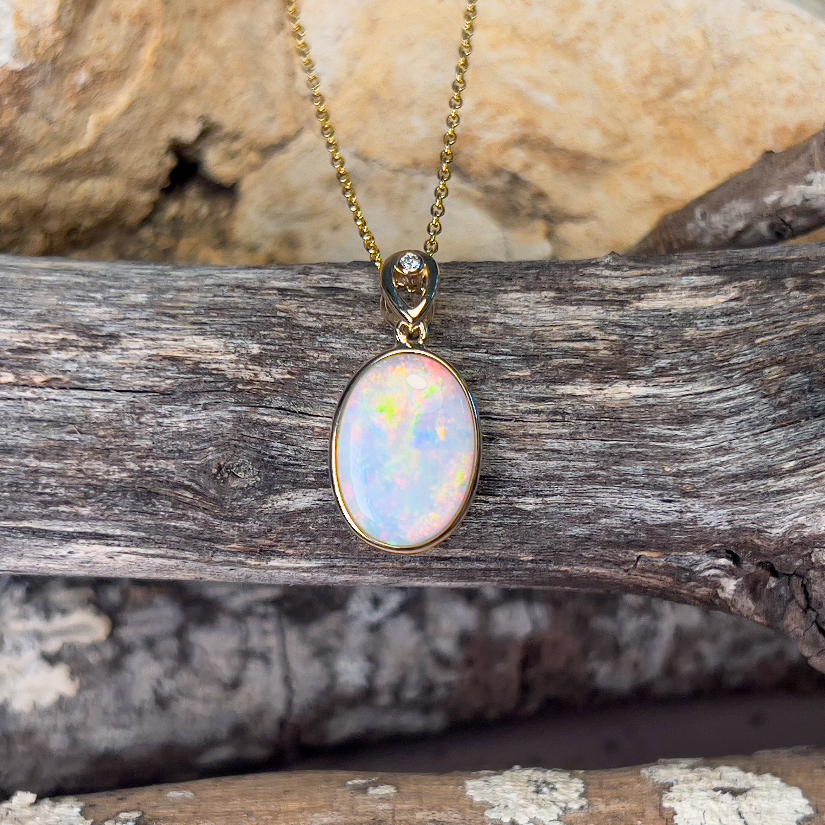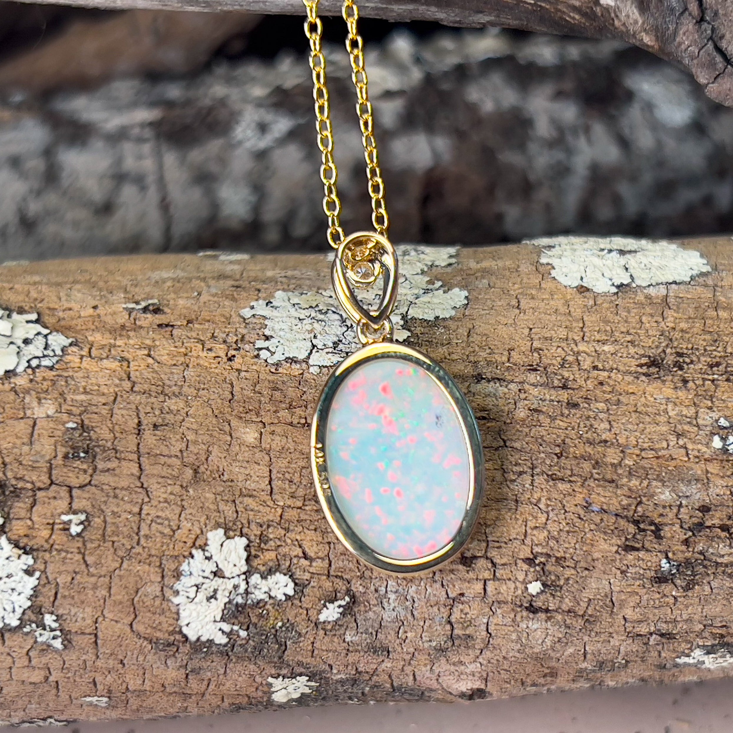 14kt Yellow Gold Oval White Opal Red 2.25ct bezel set pendant
