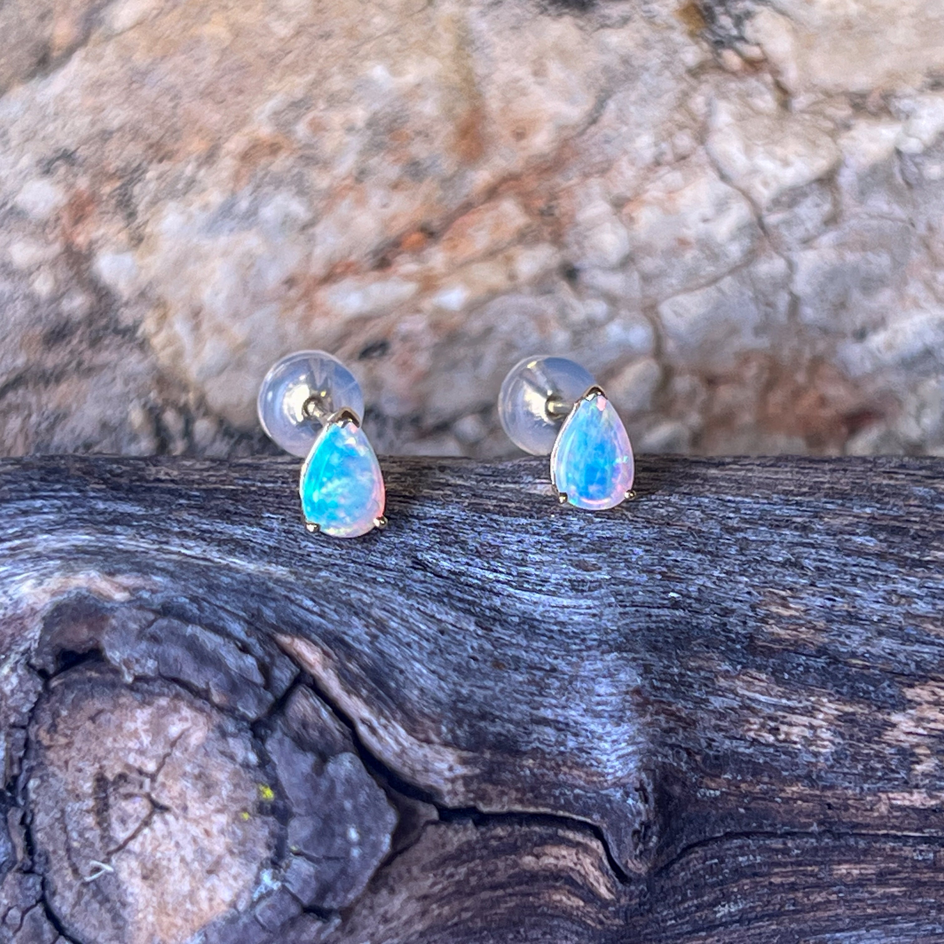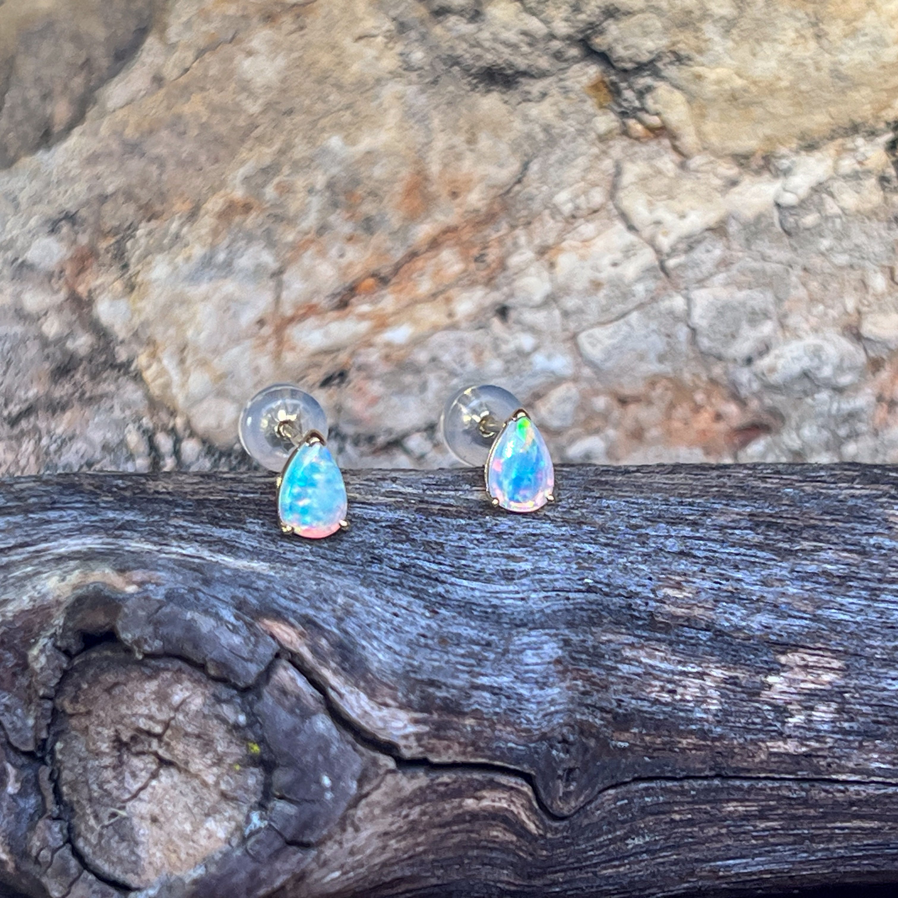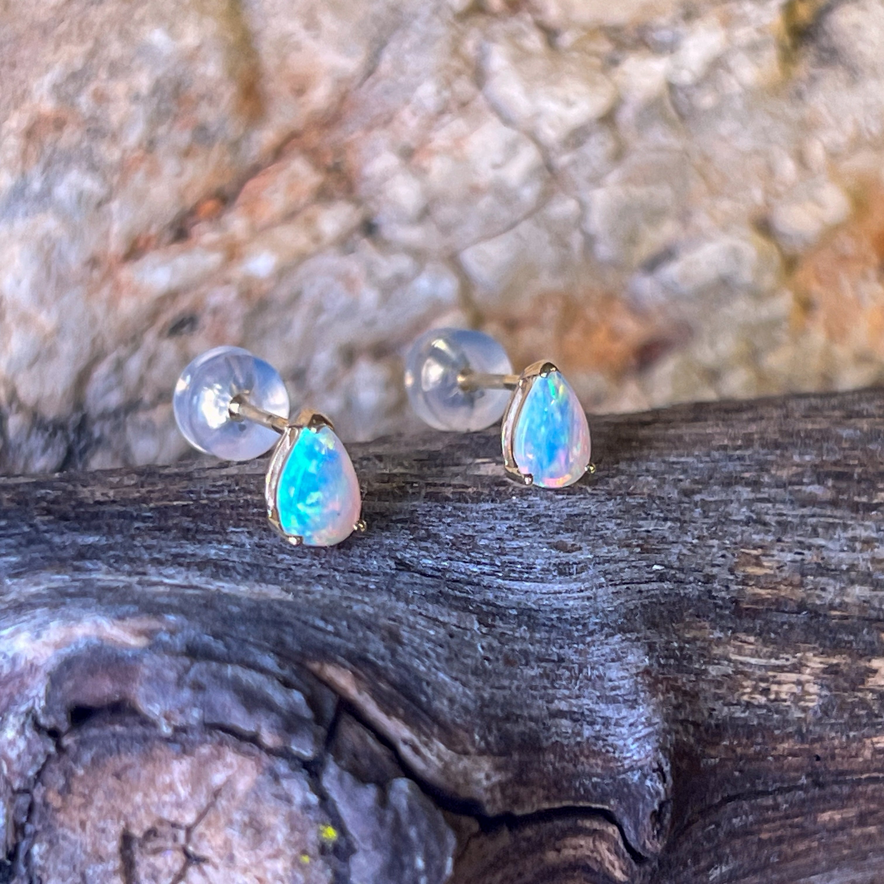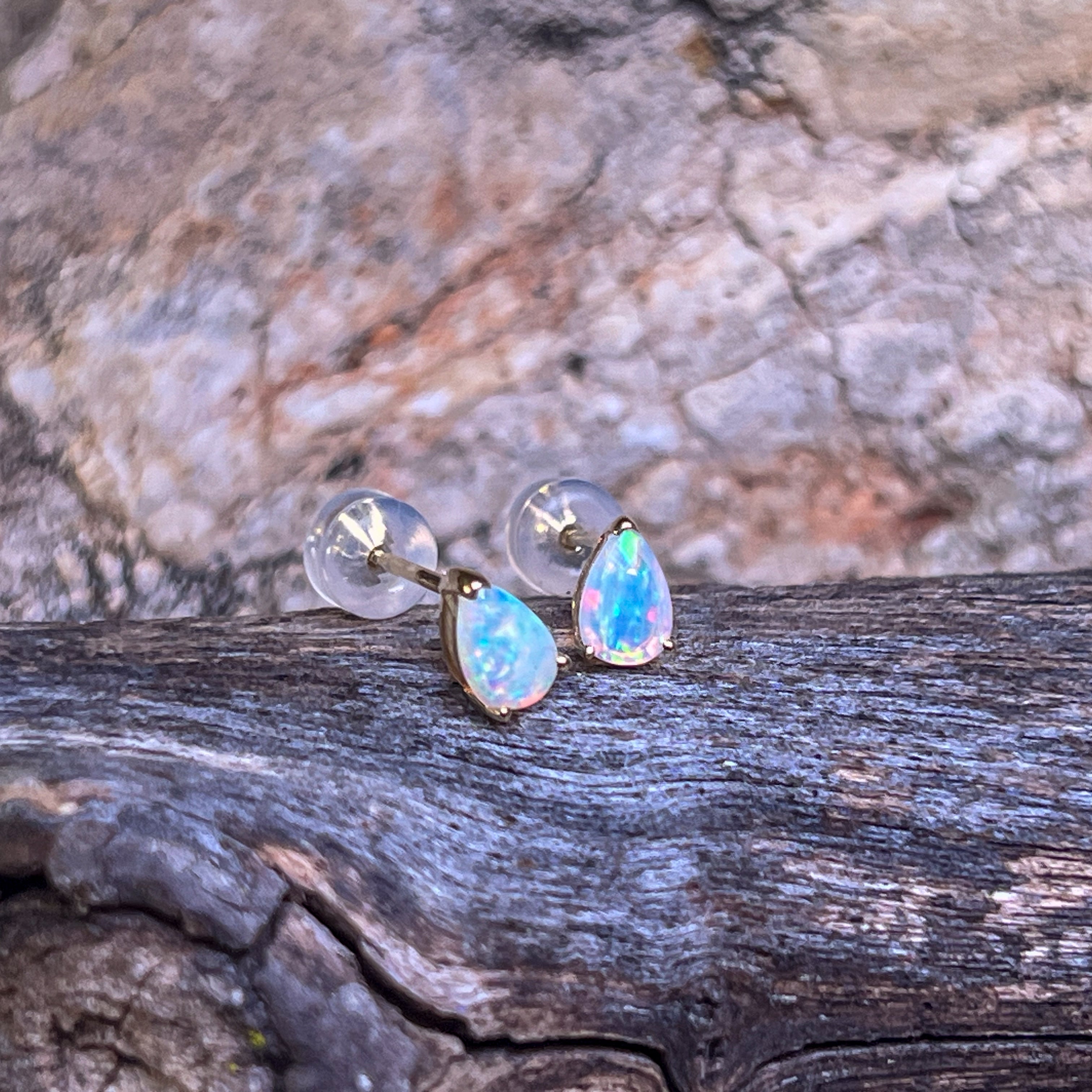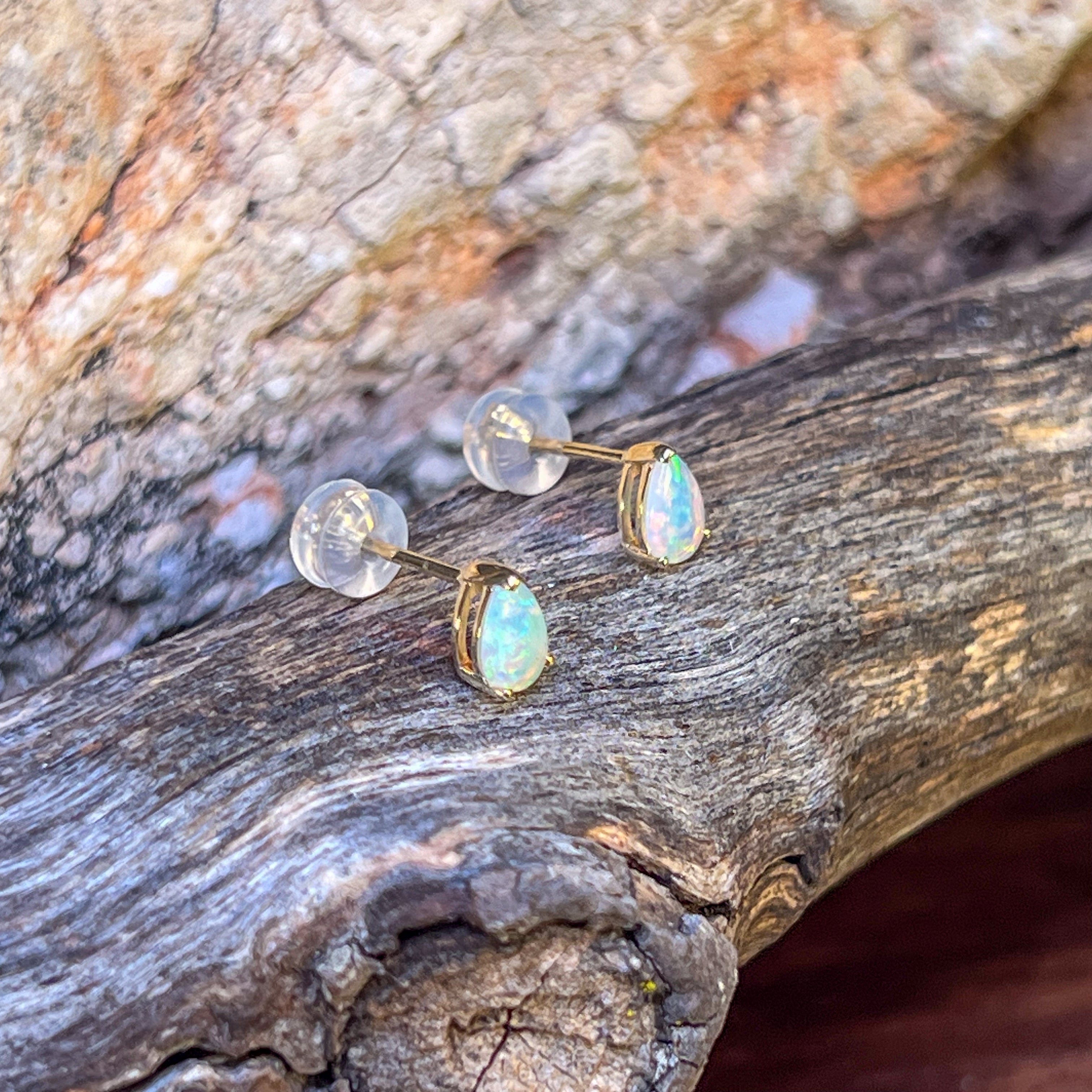 14kt Yellow Gold Pear shape 6x4mm Opal crystal studs