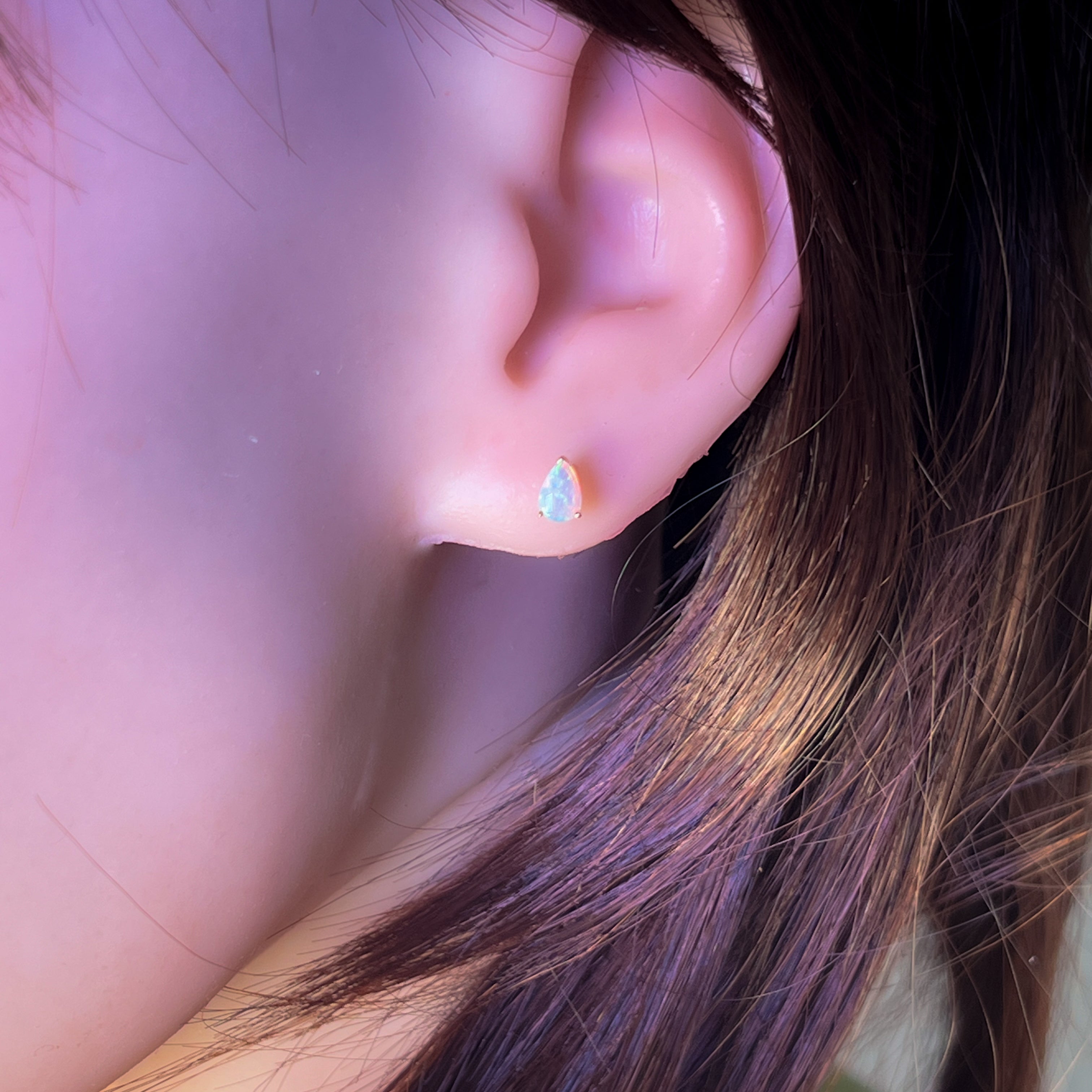 Indulge in the simple elegance of our 14kt Yellow Gold Pear shape 6x4mm Opal crystal studs. These dainty studs feature a stunning pear shape design that adds a touch of sophistication to any outfit. Elevate your style with the natural beauty and charm of these opal crystal studs.