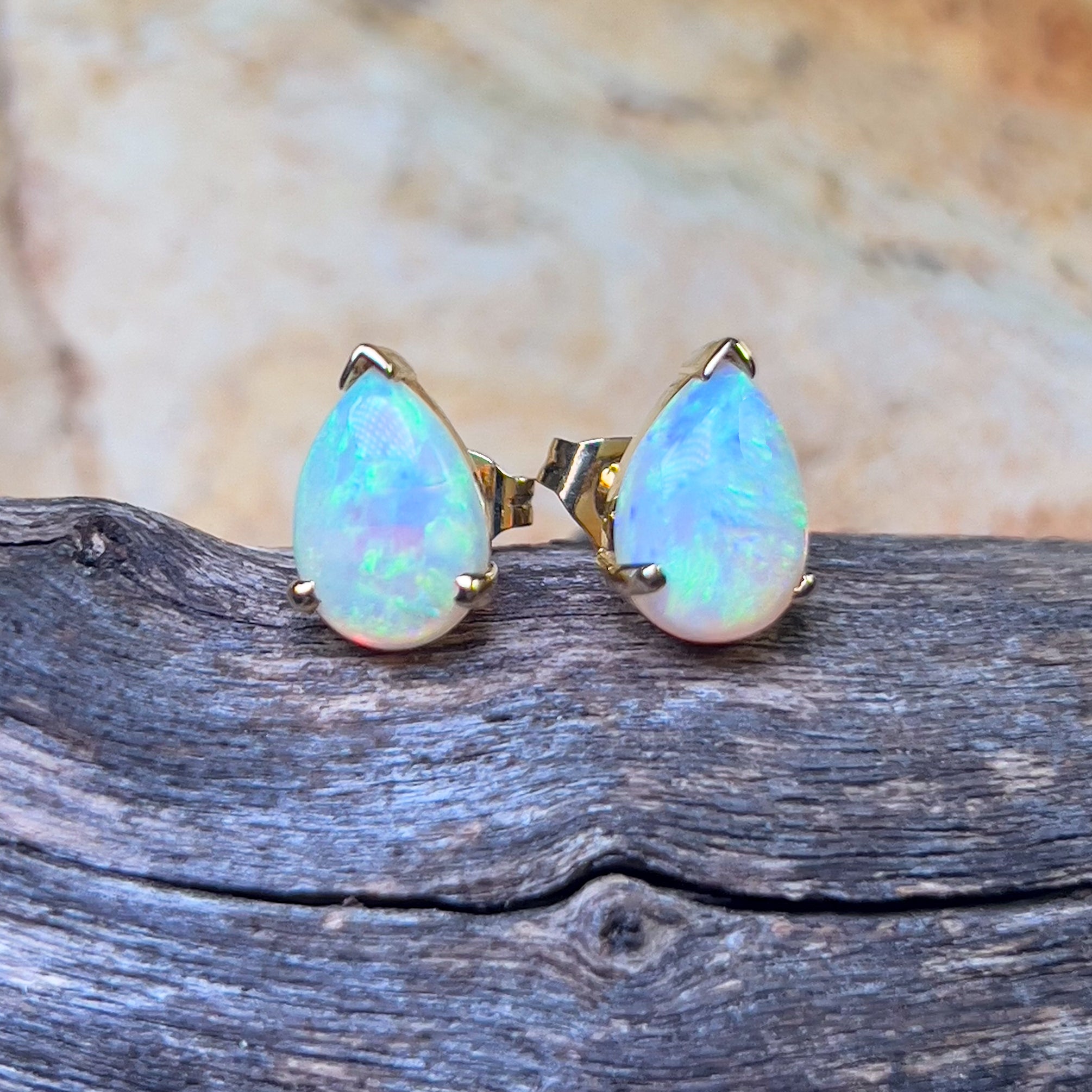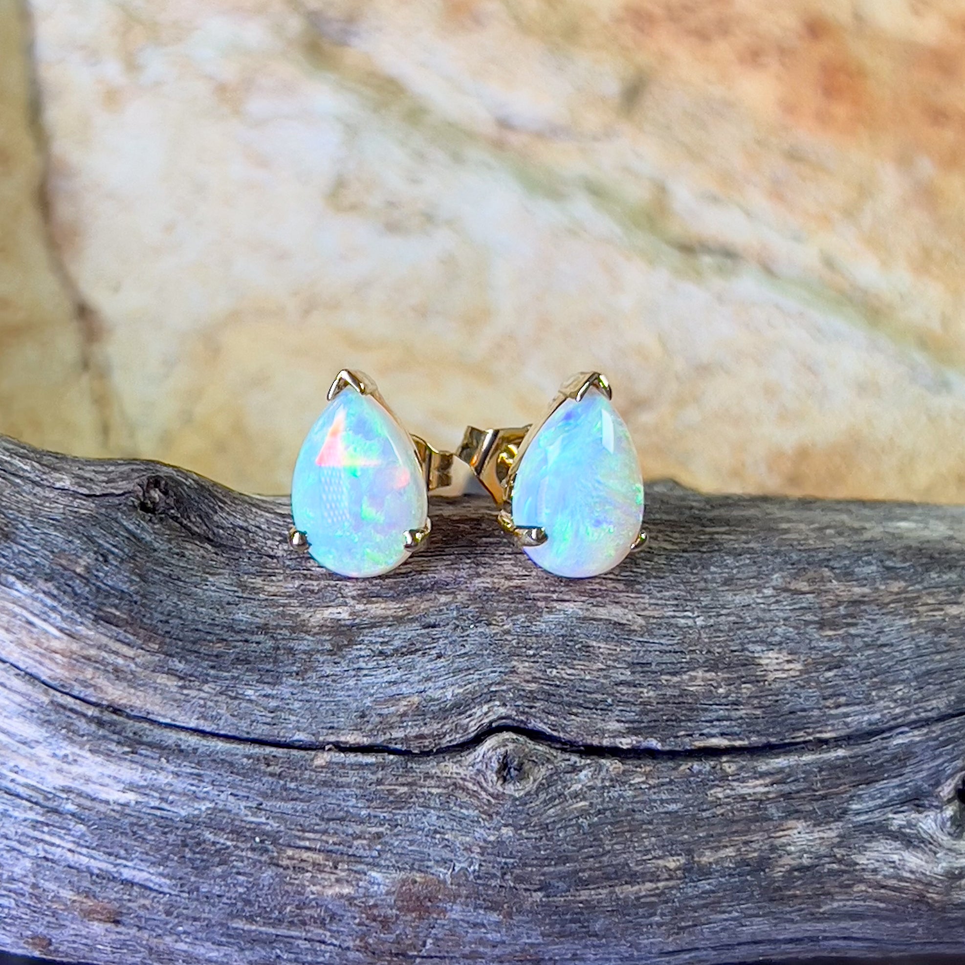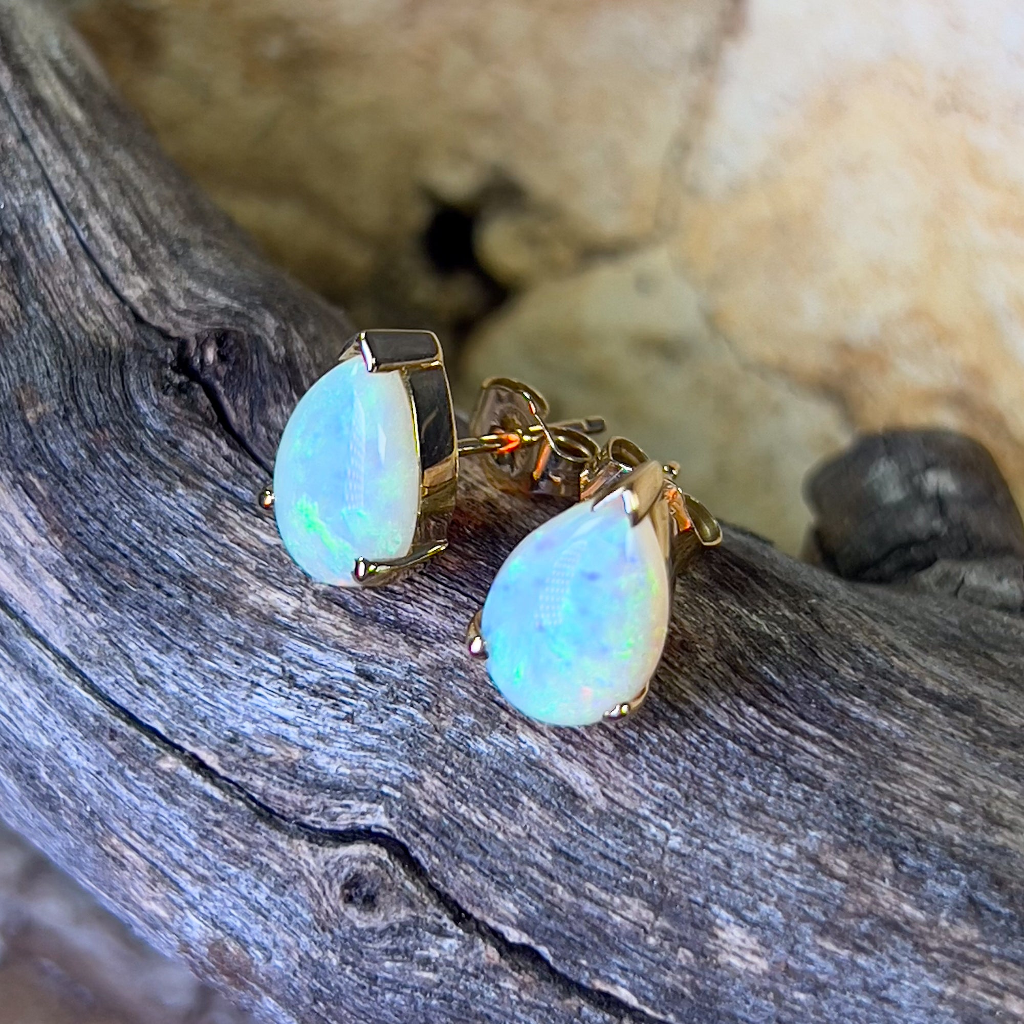 14kt Yellow Gold Pear shape Crystal Opal 2.19ct studs