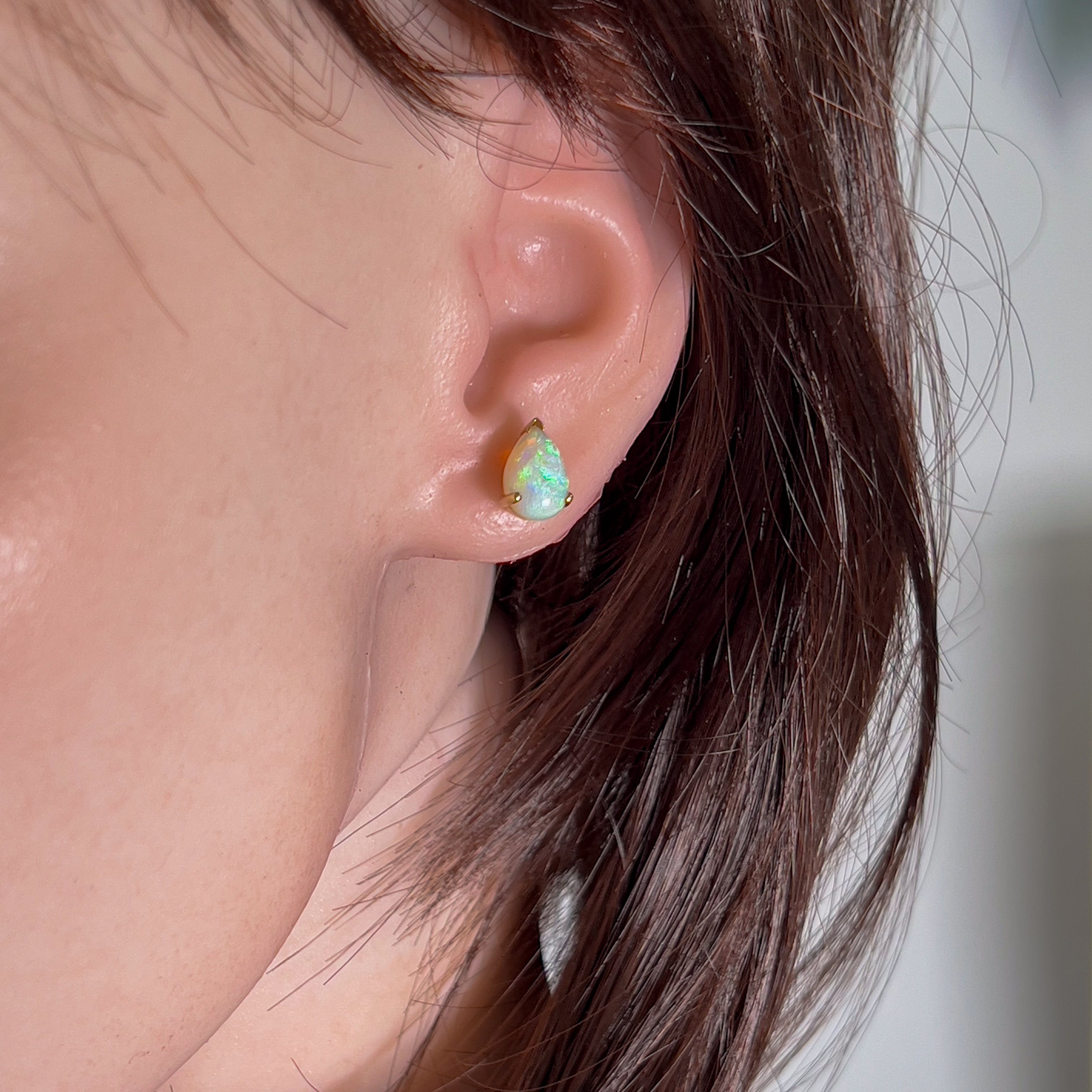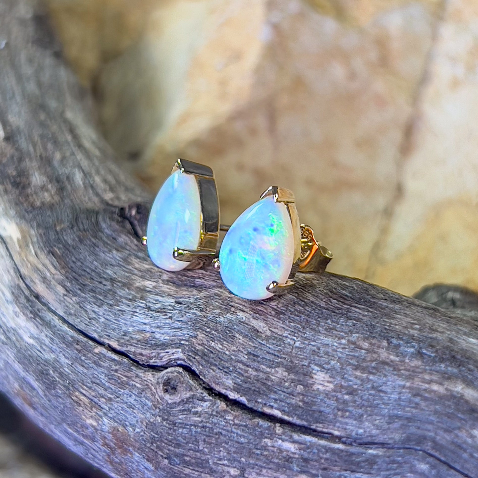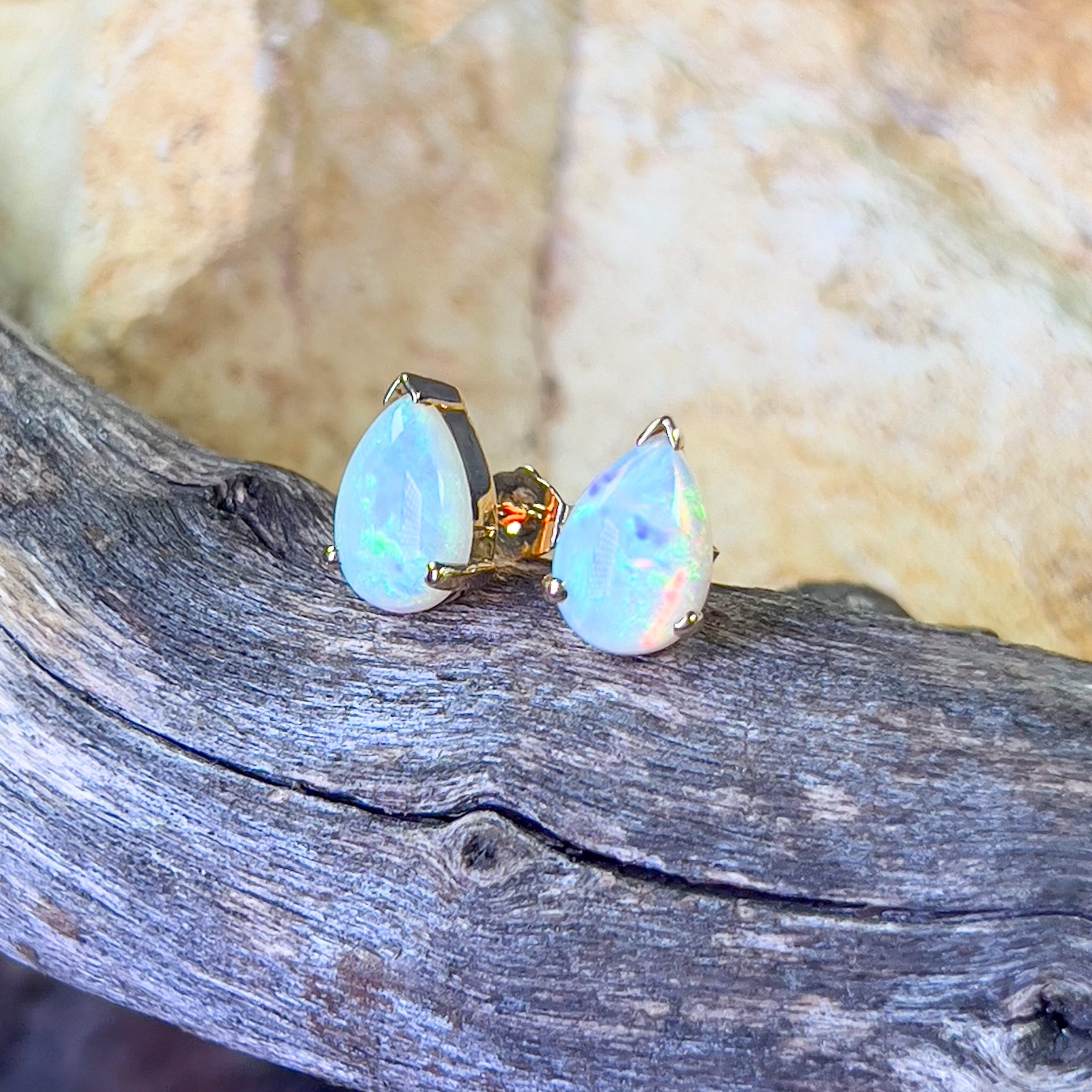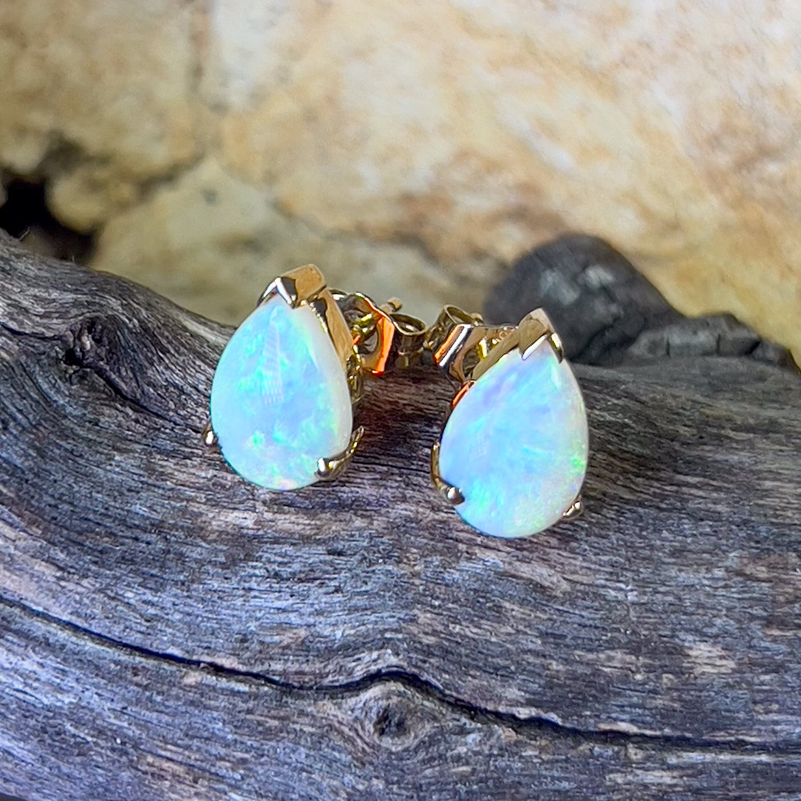 14kt Yellow Gold Pear shape Crystal Opal 2.19ct studs