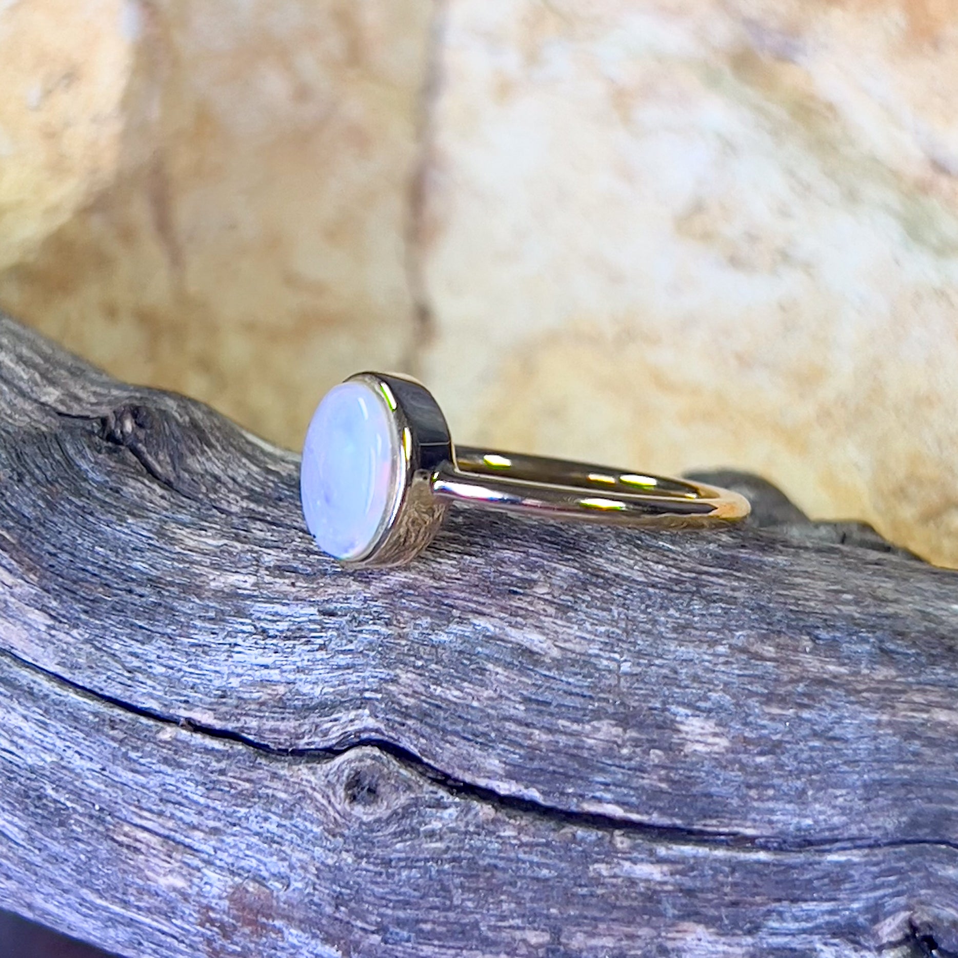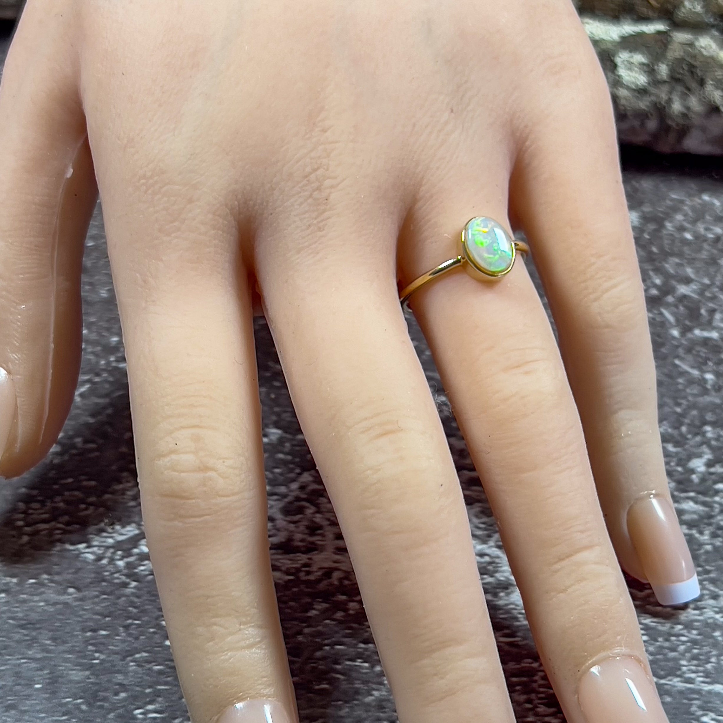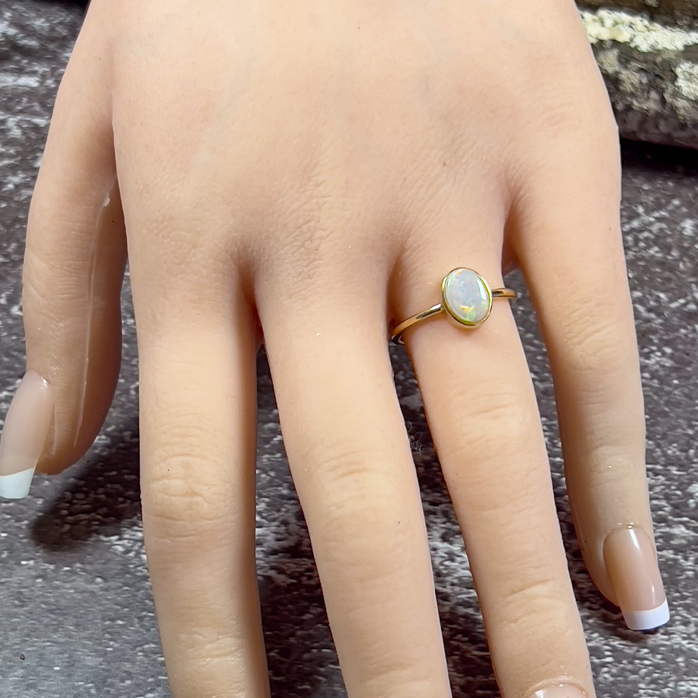 14kt Yellow Gold solitaire Oval Opal bezel set ring