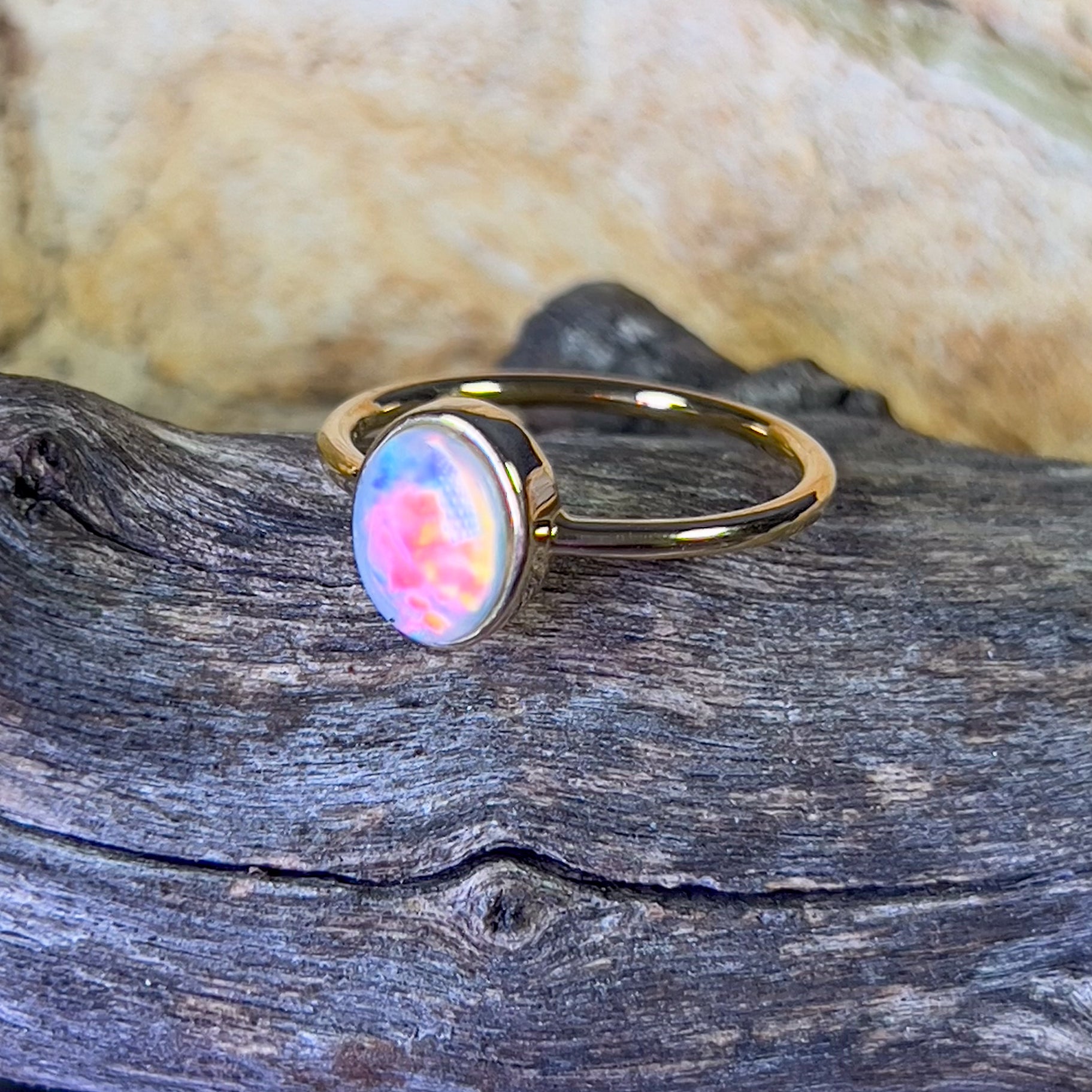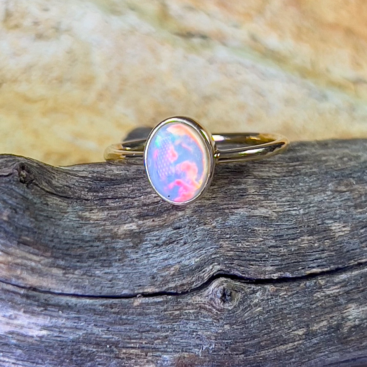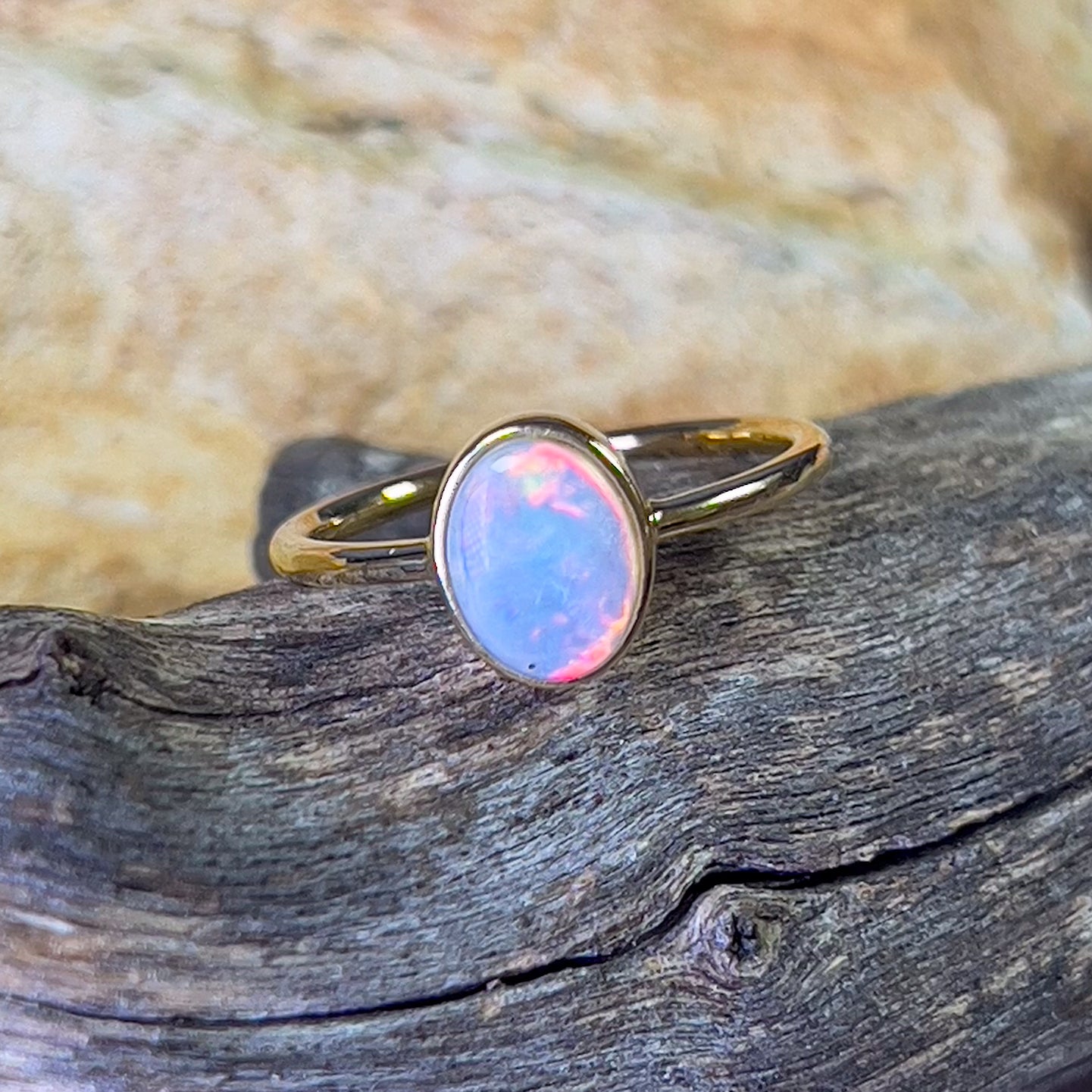 14kt Yellow Gold solitaire Oval Opal bezel set ring