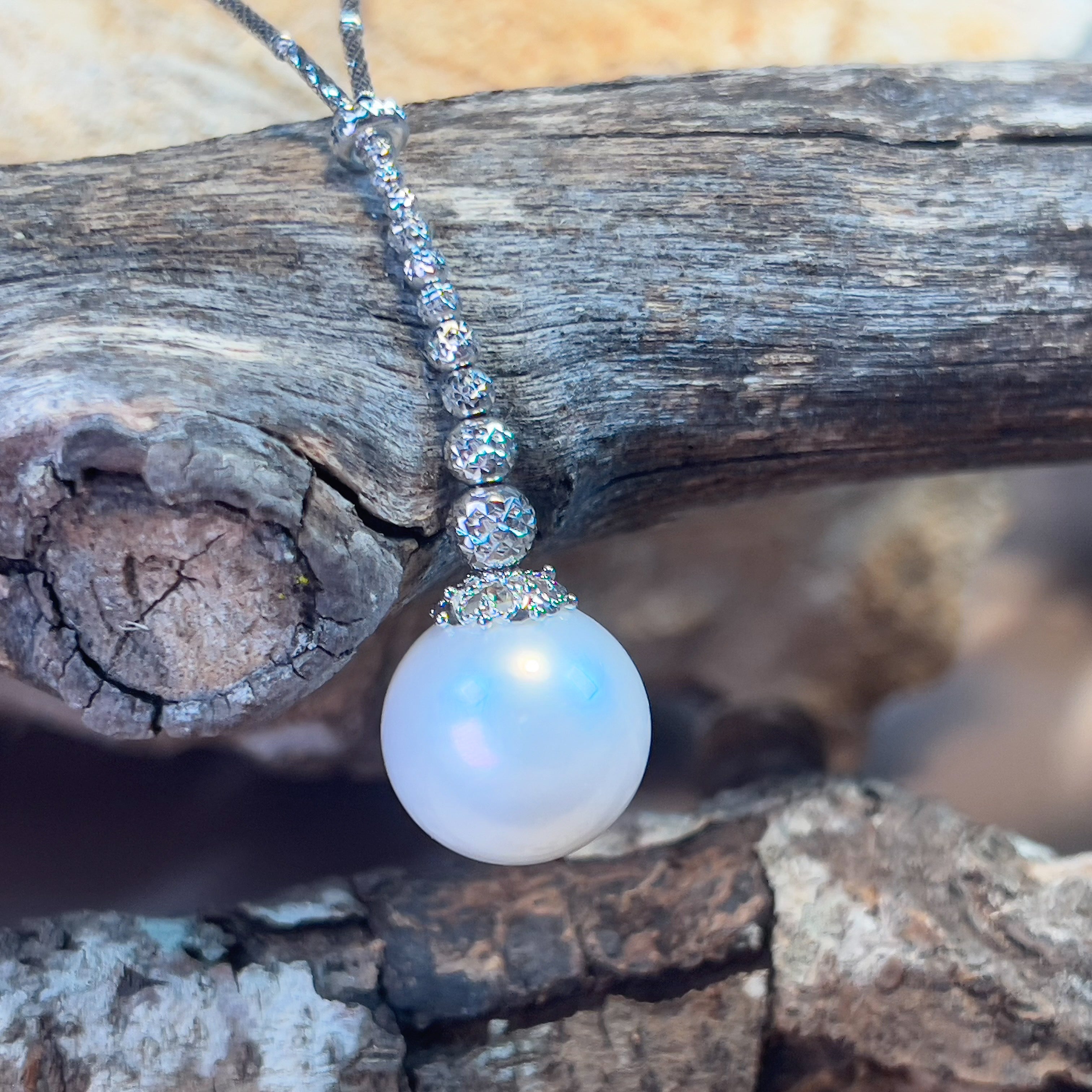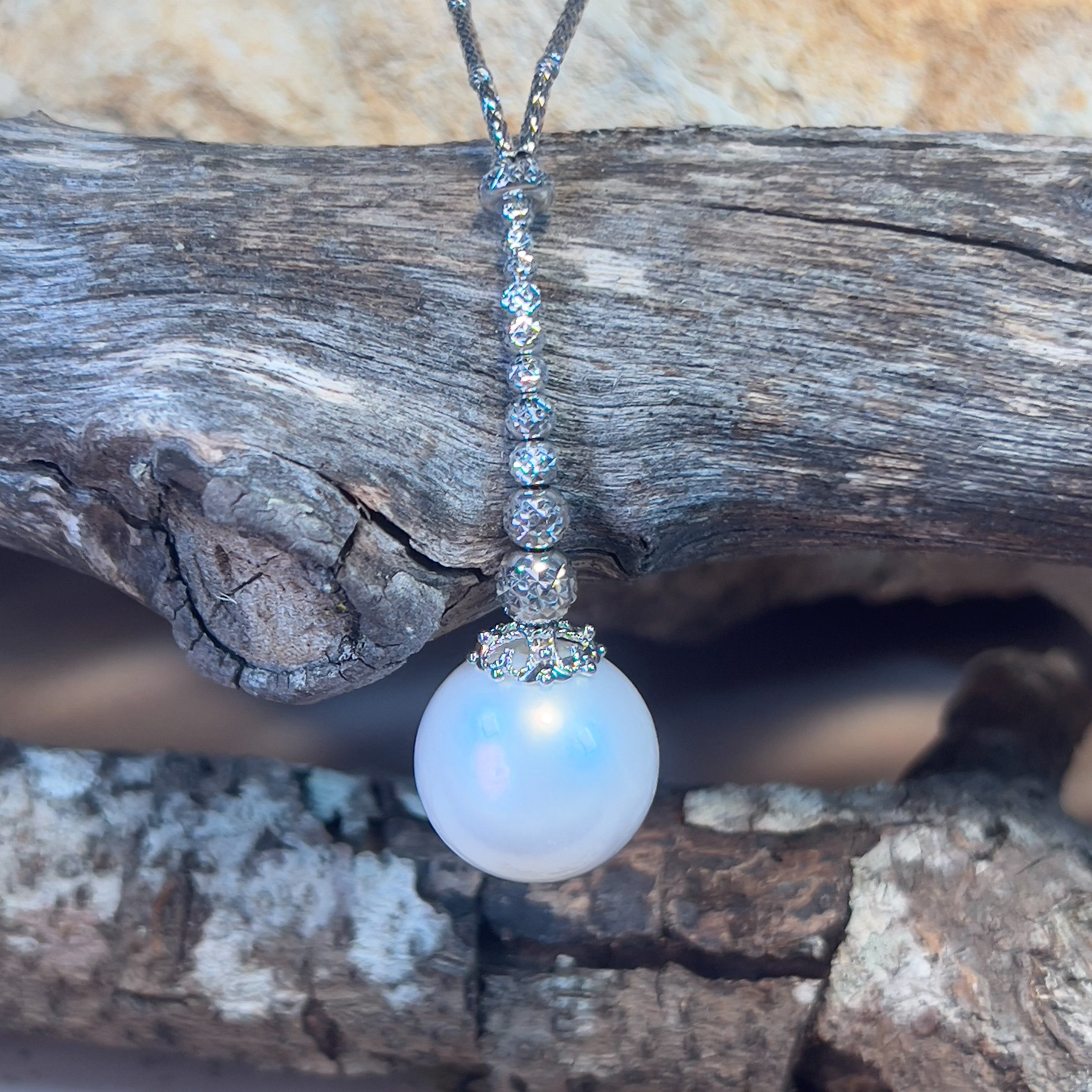 18kt White Gold diamond cut necklace with South Sea Pearl wire style