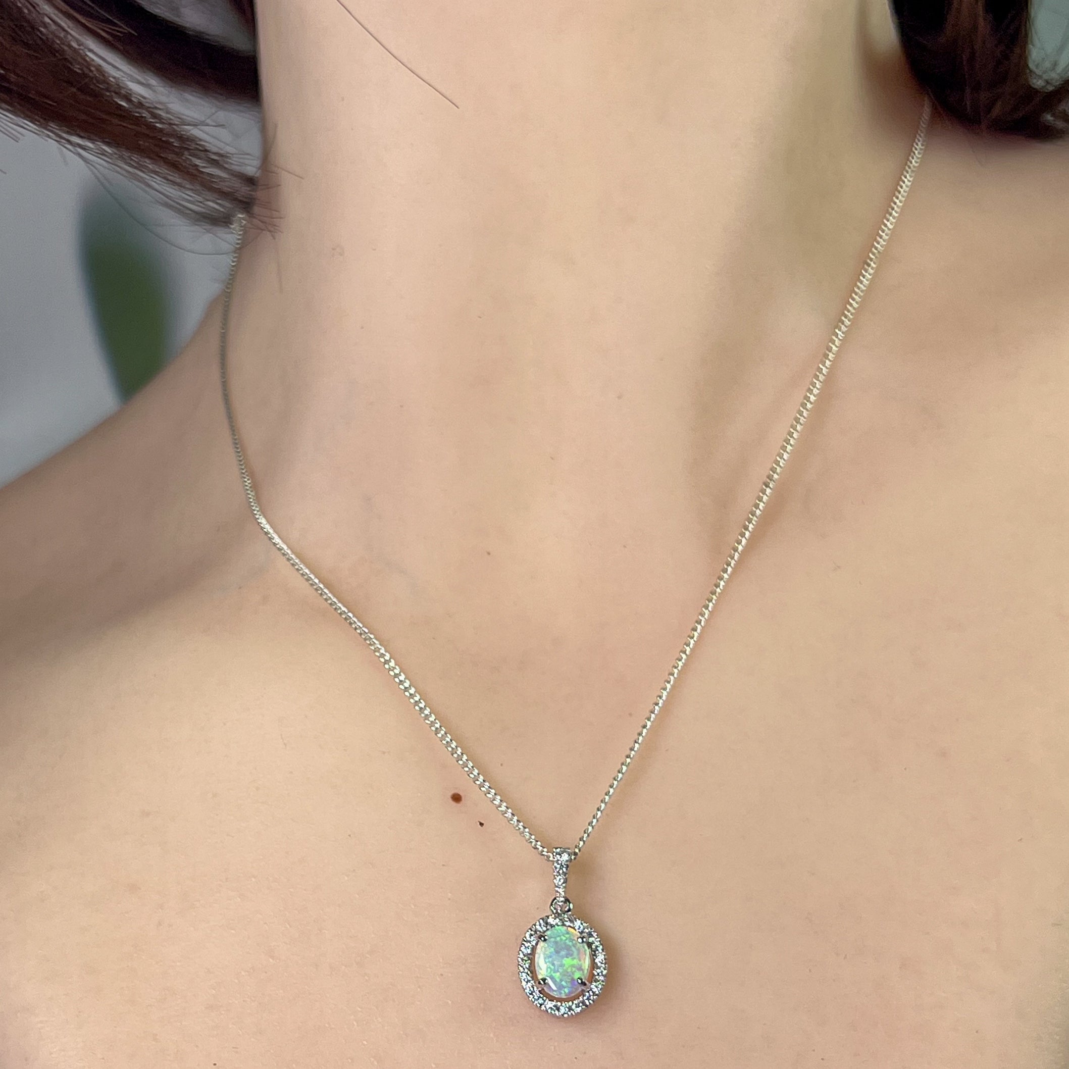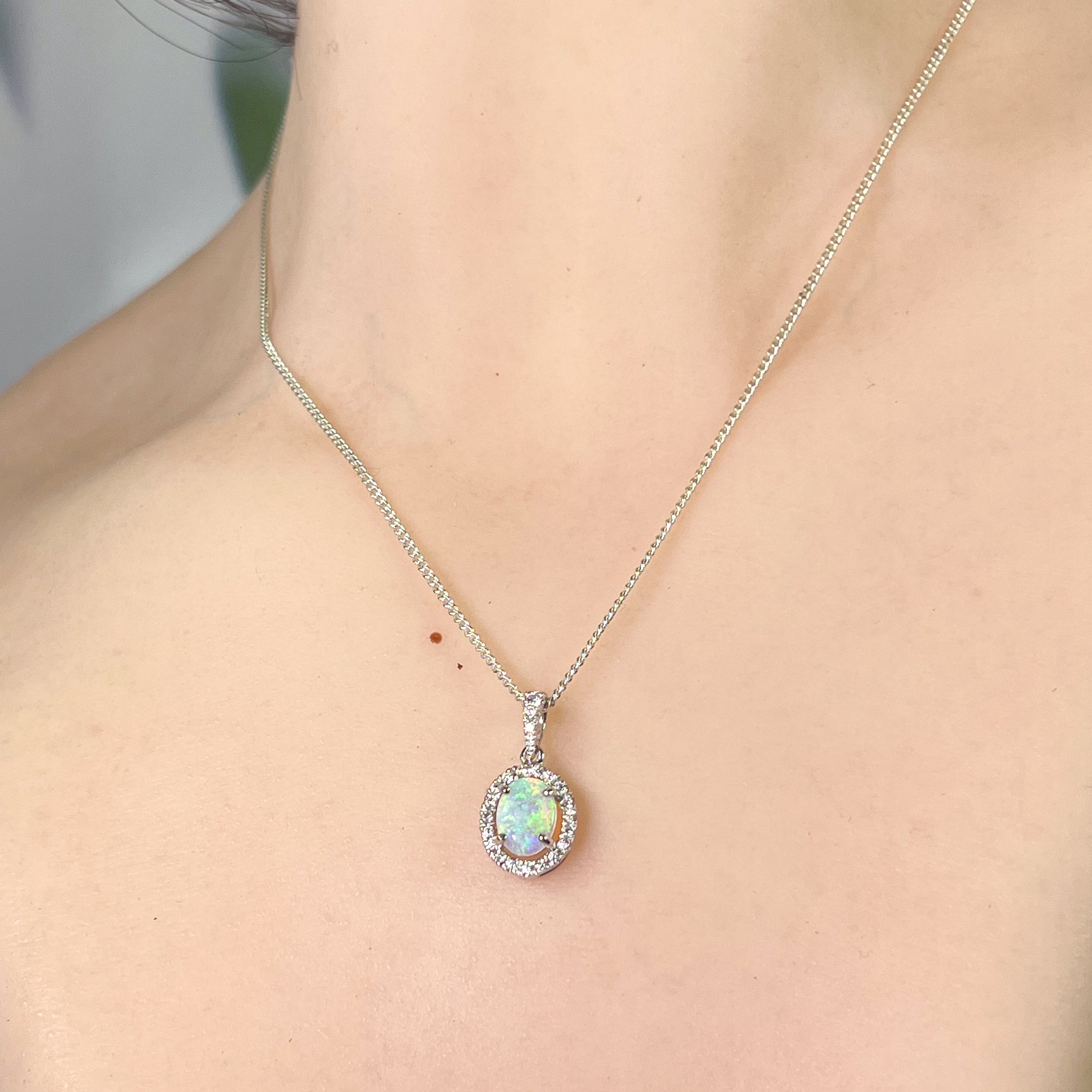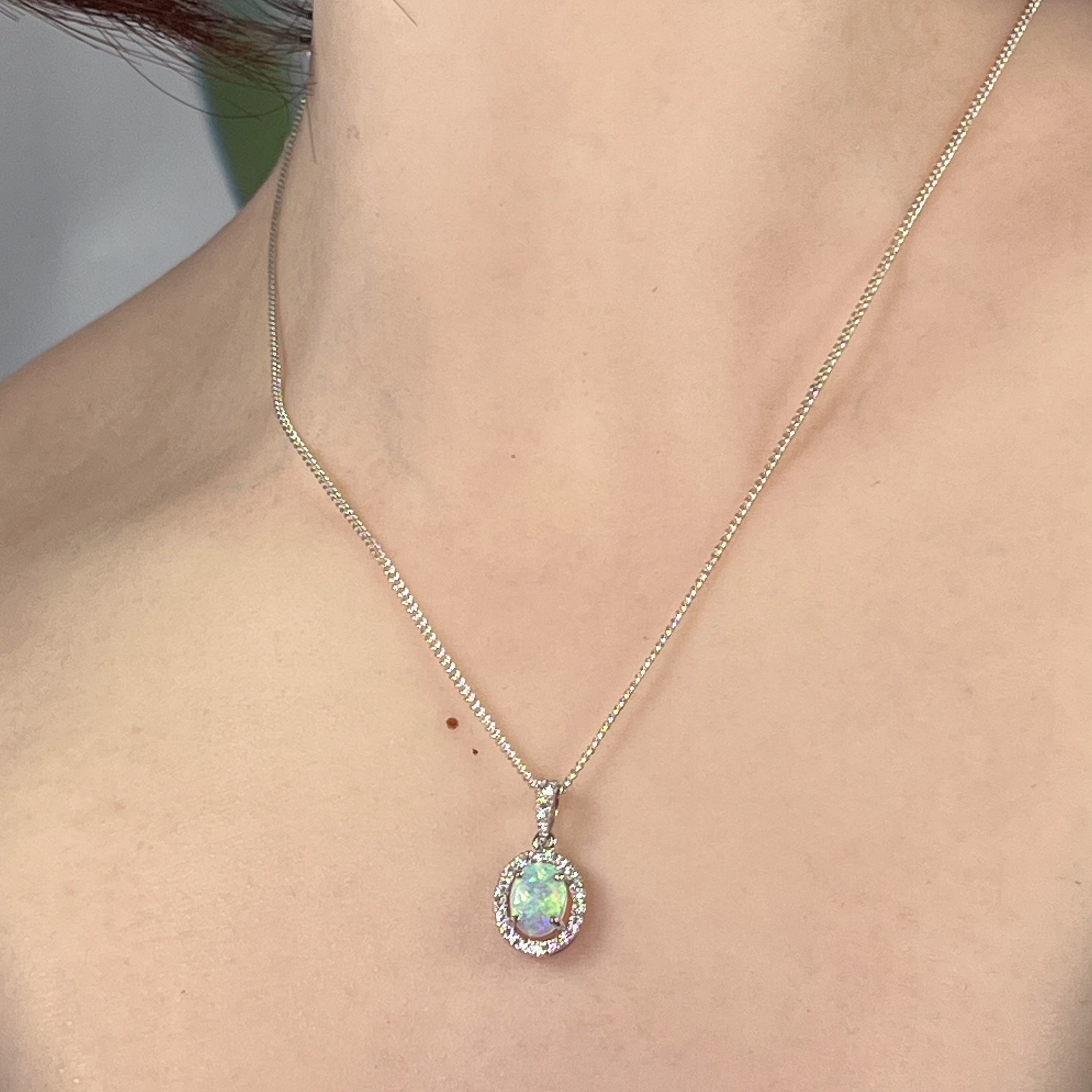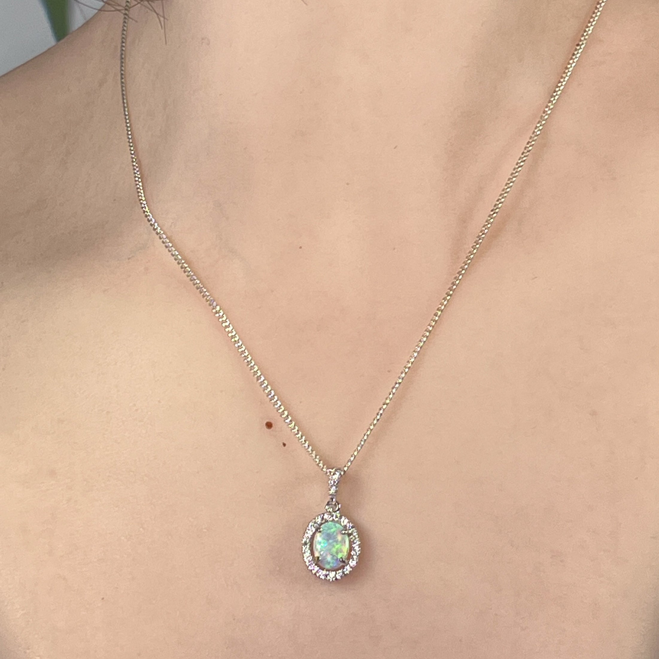 18kt White Gold Oval Opal 8x6mm Halo design pendant