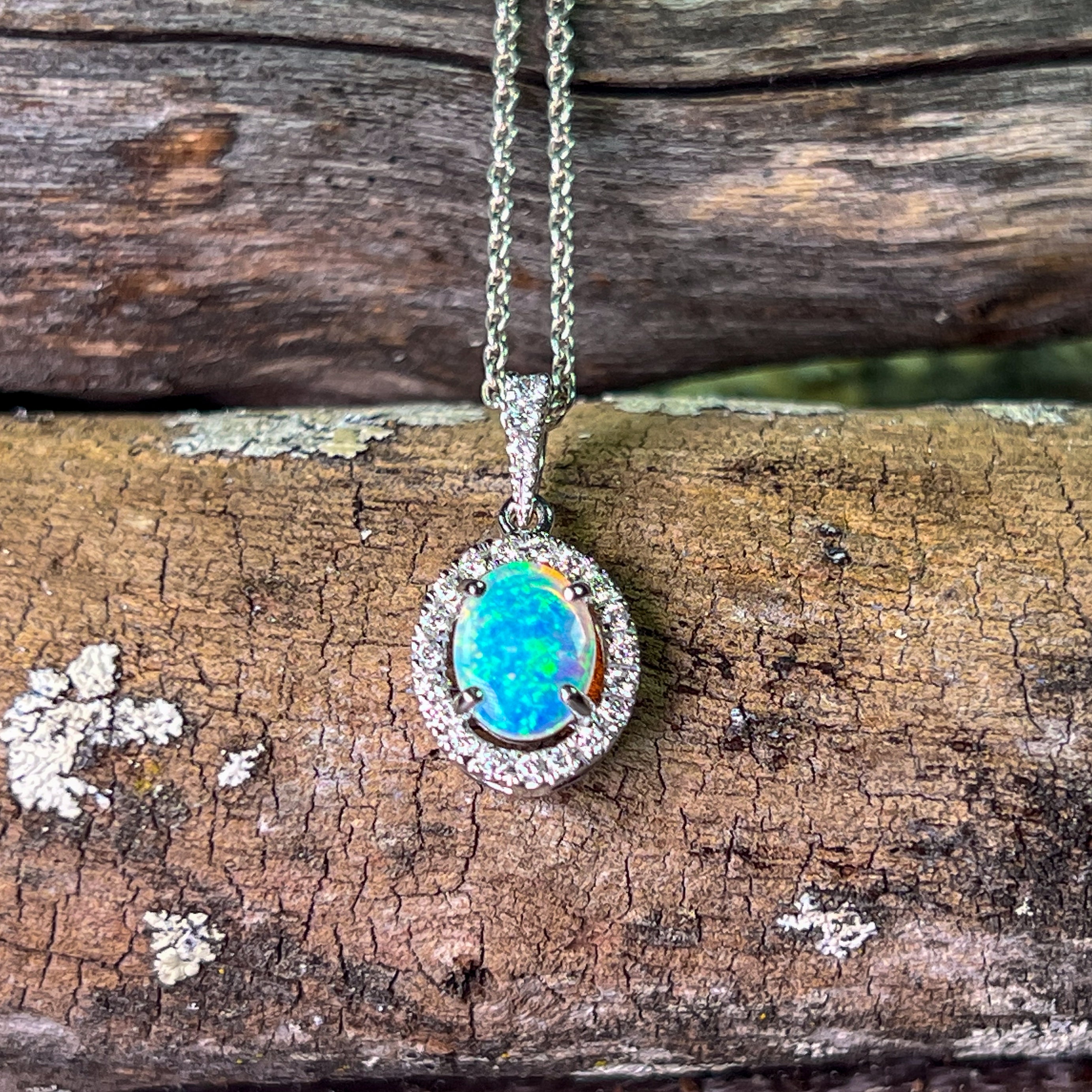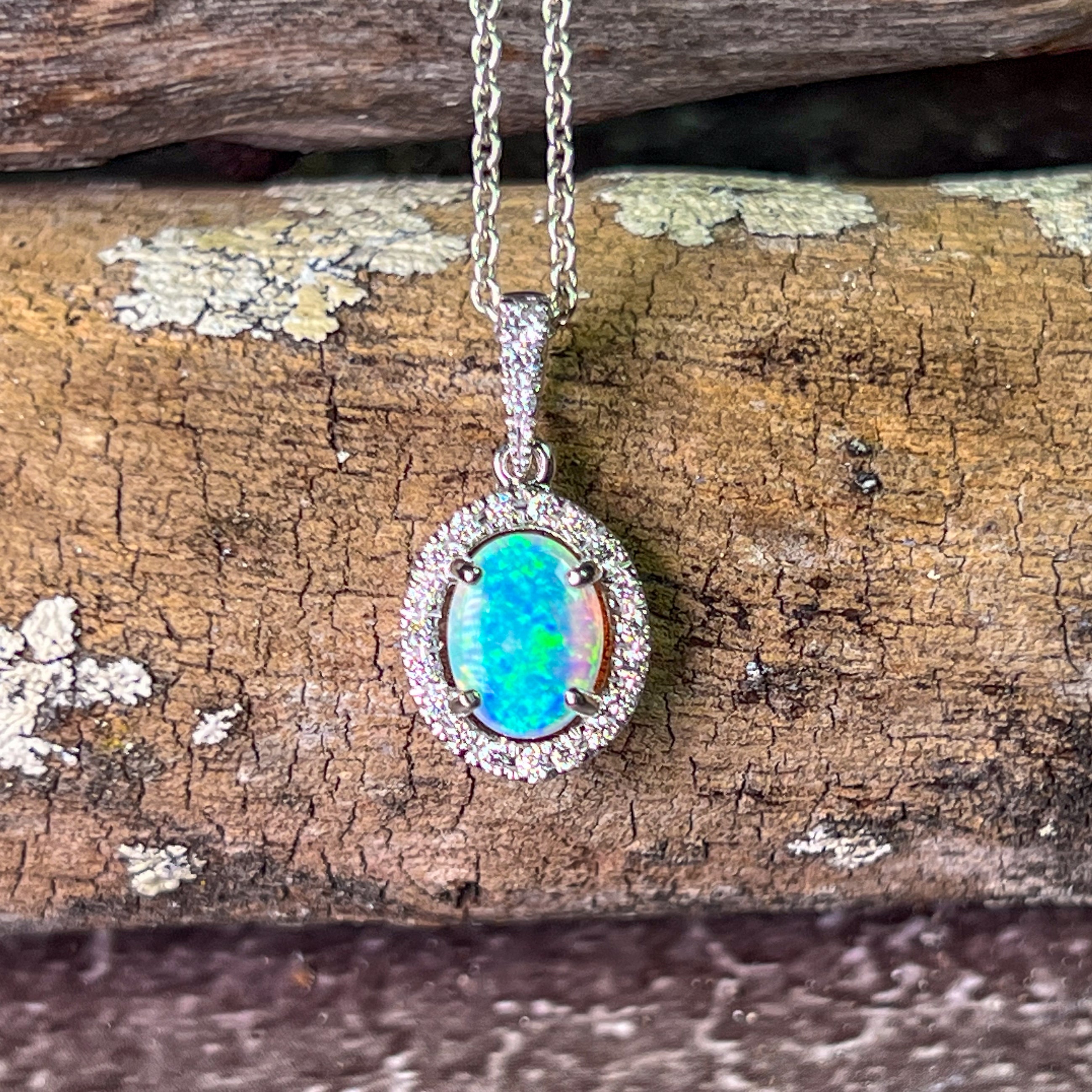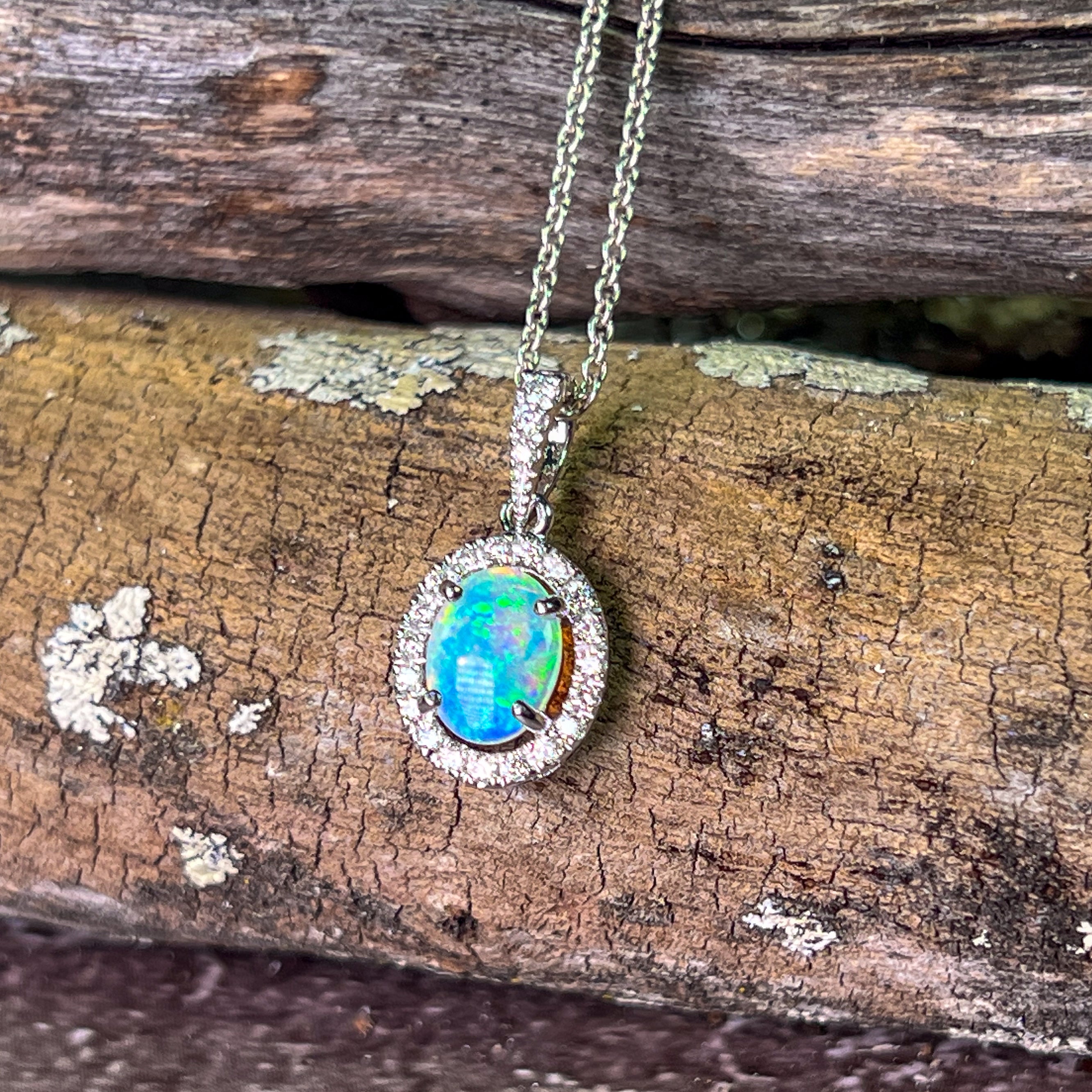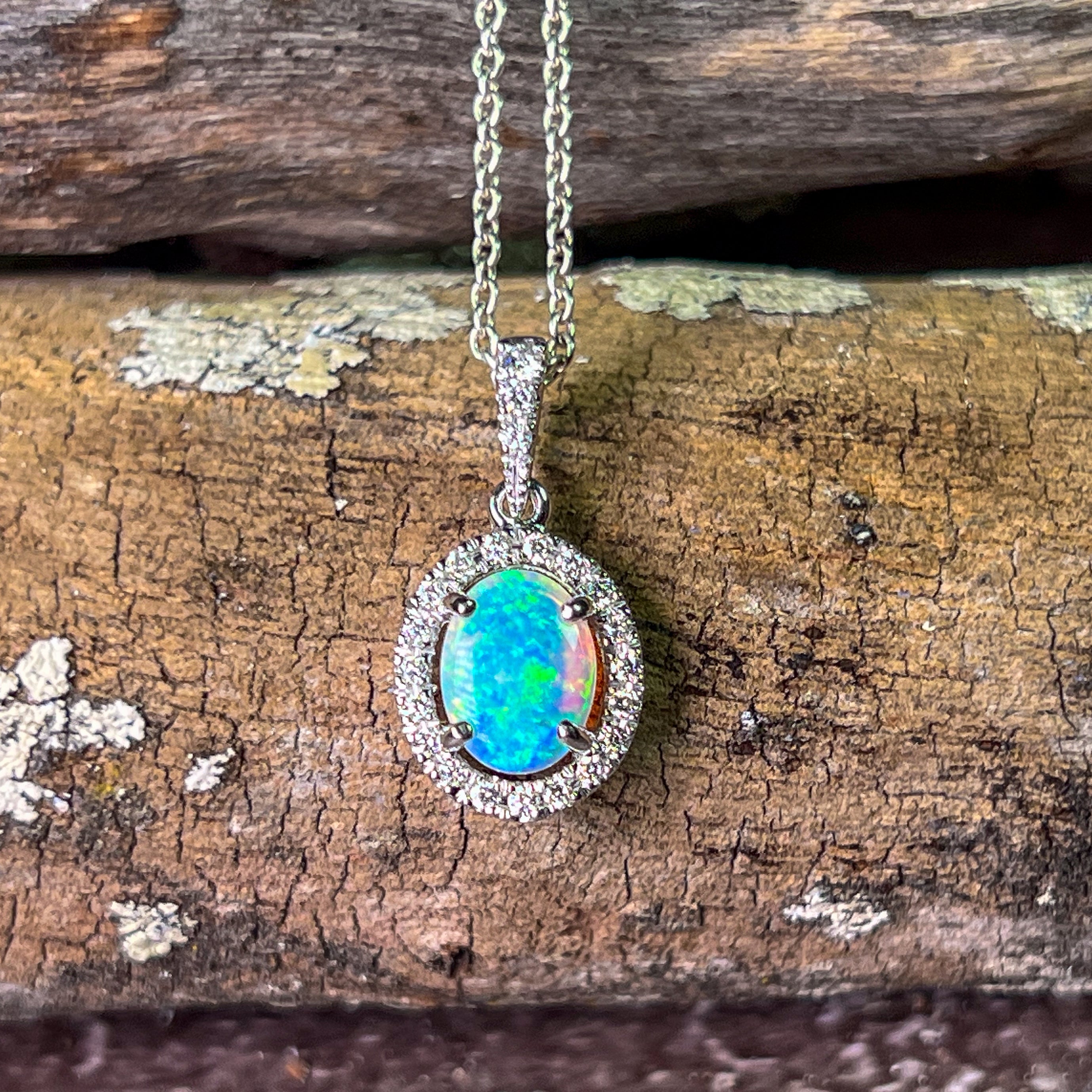 18kt White Gold Oval Opal 8x6mm Halo design pendant
