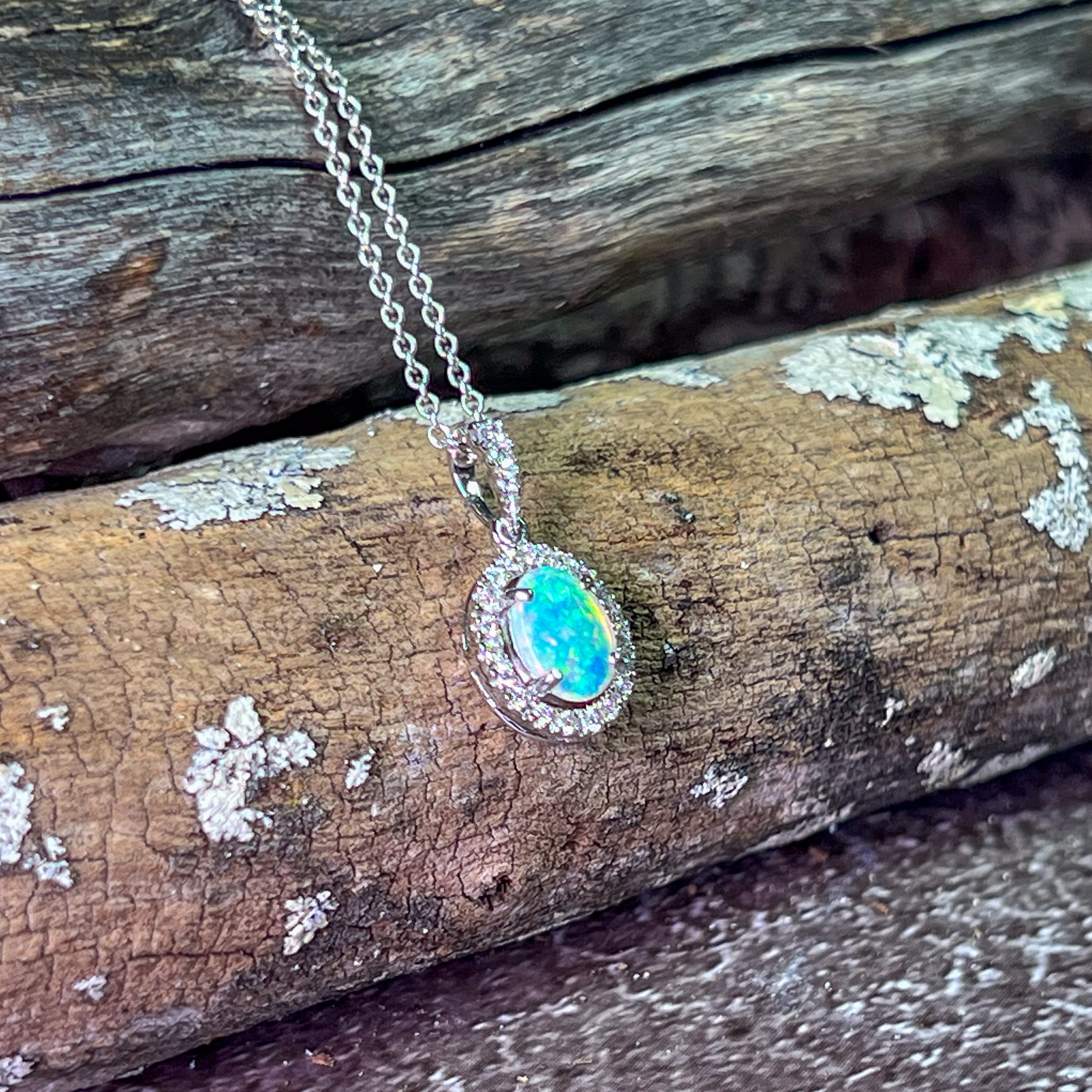 One 18kt White Gold Opal pendant Halo design