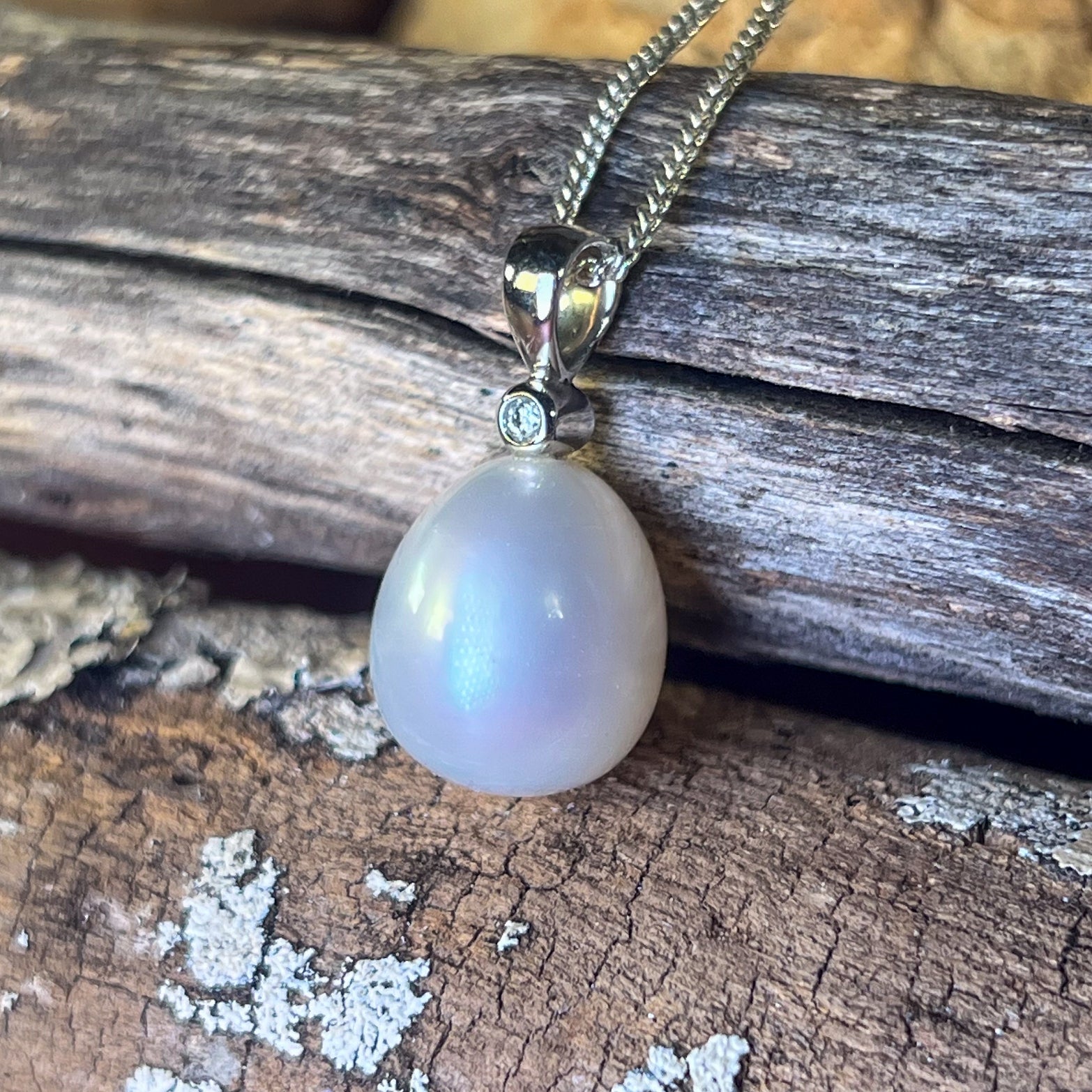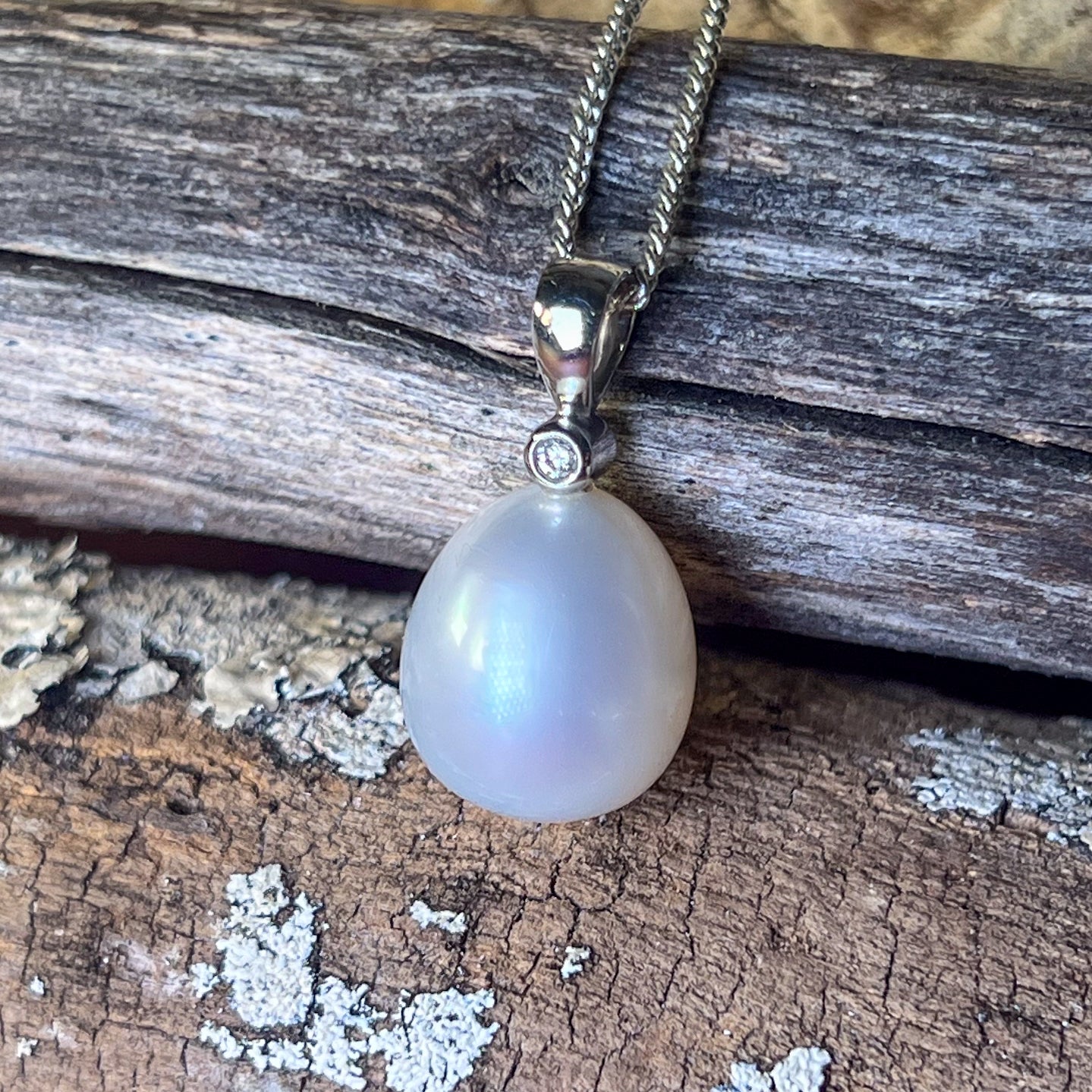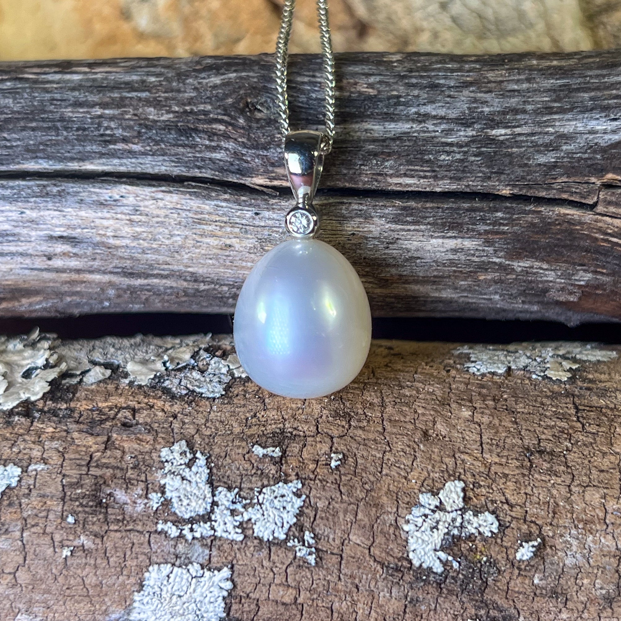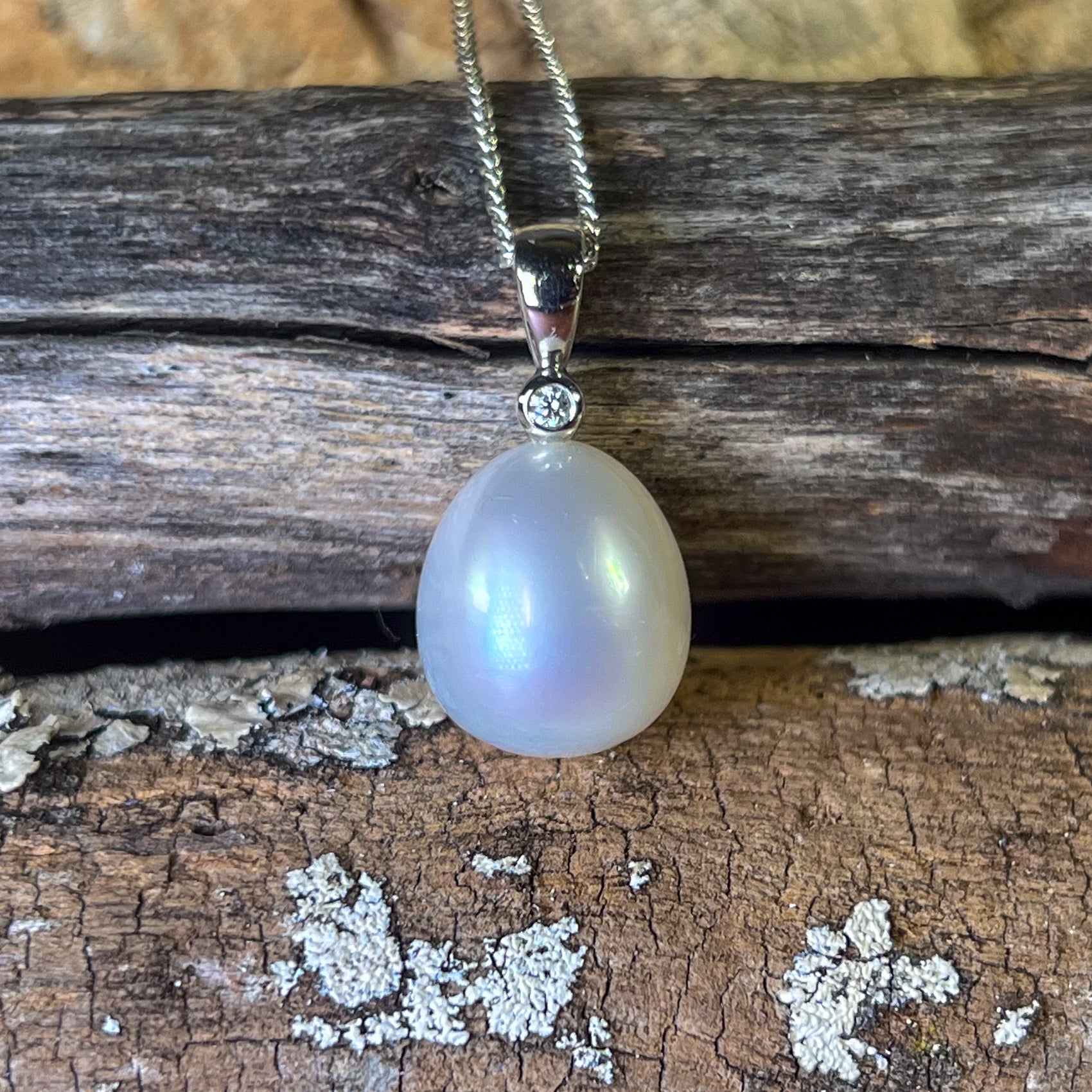 18kt White Gold South Sea Pearl 12.5mm and Diamond pendant