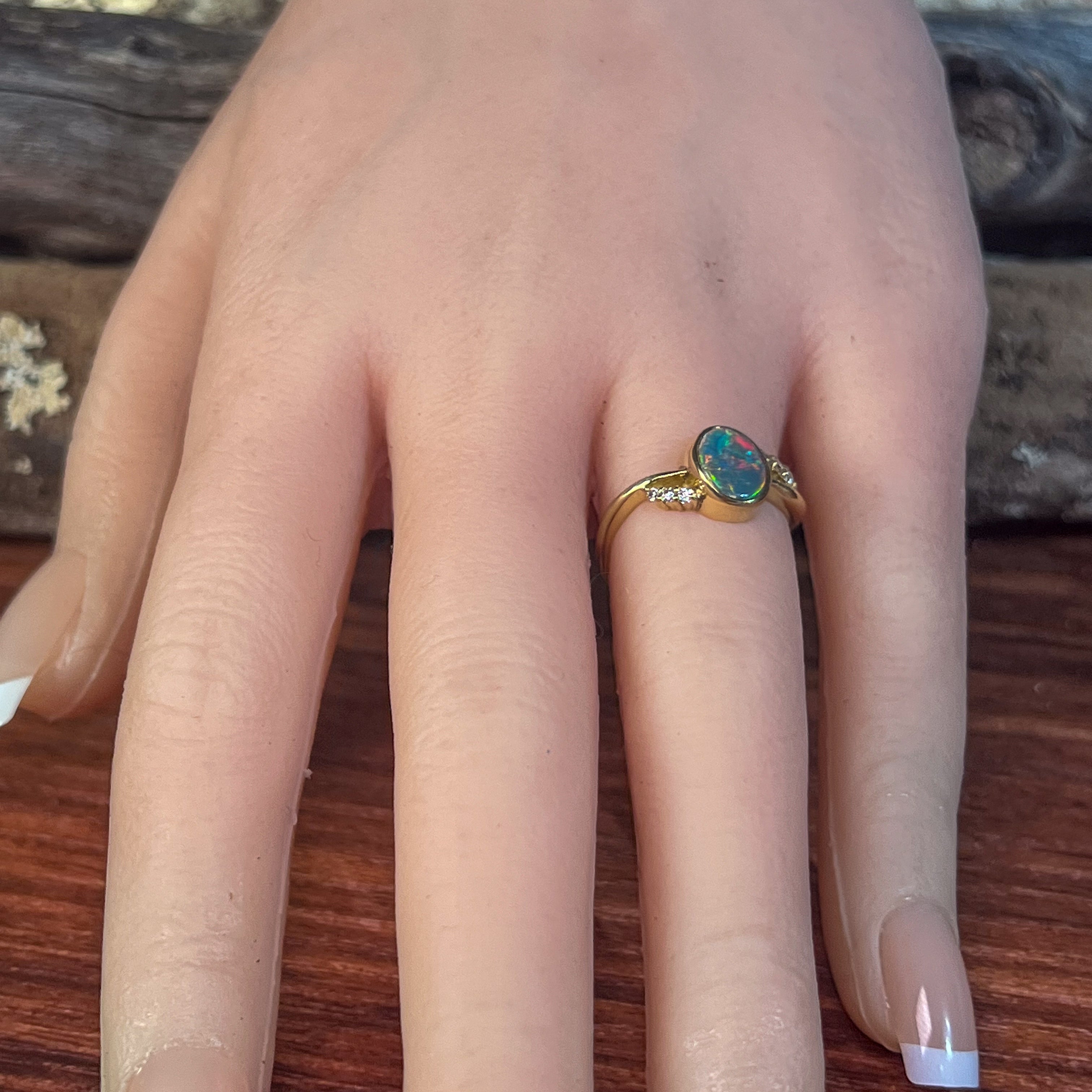 18kt Yellow Gold Black Opal 1.07ct and diamond ring