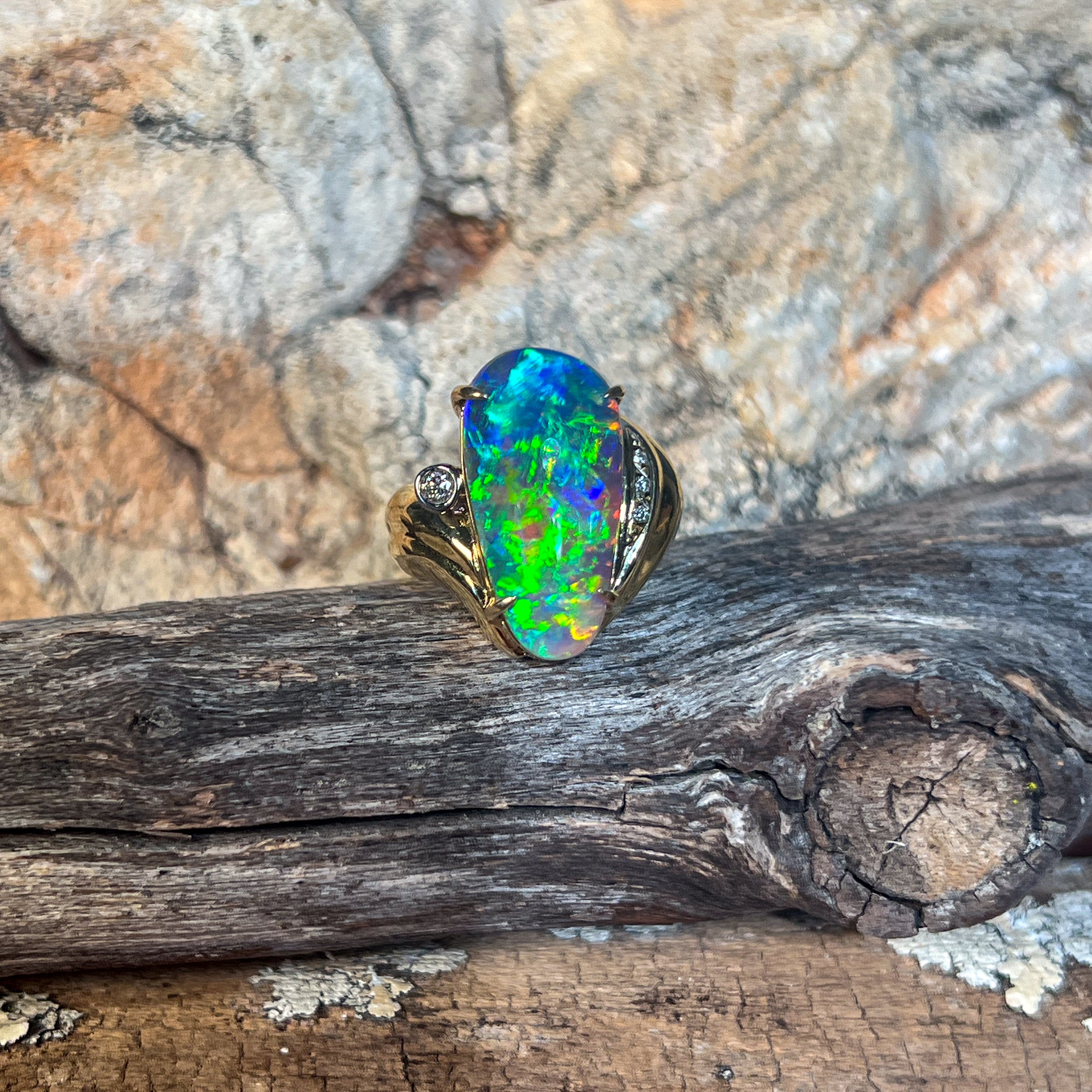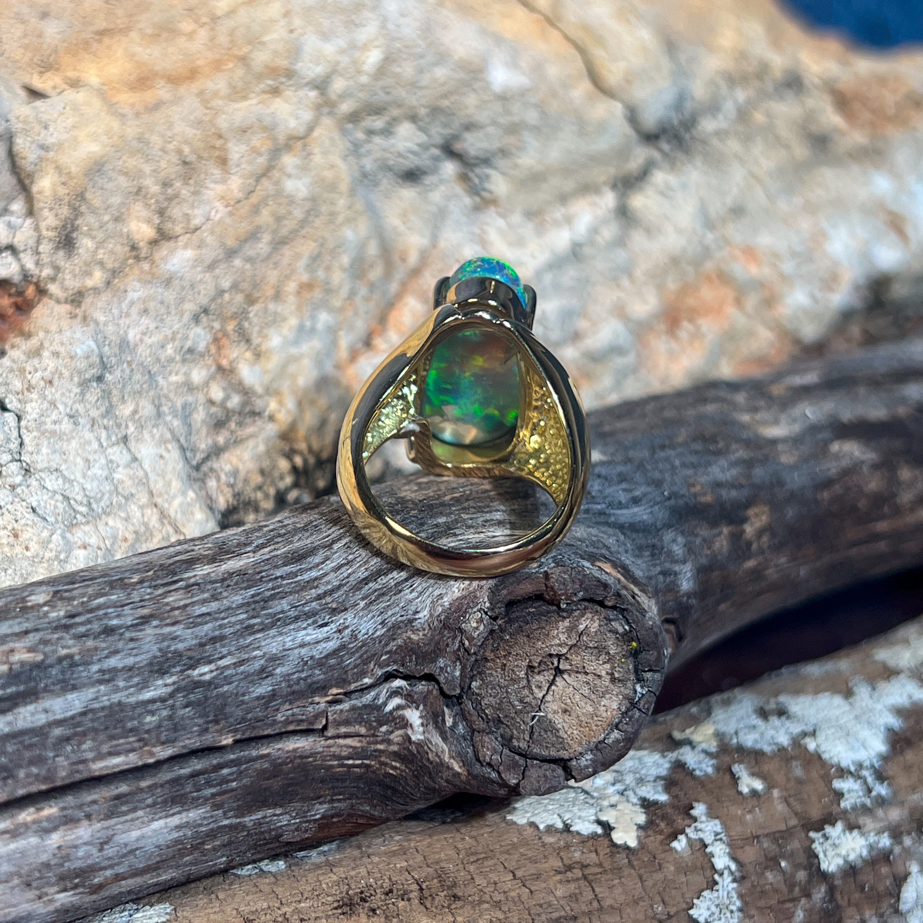 18kt Yellow Gold Black Opal 9.19ct and diamond designer ring