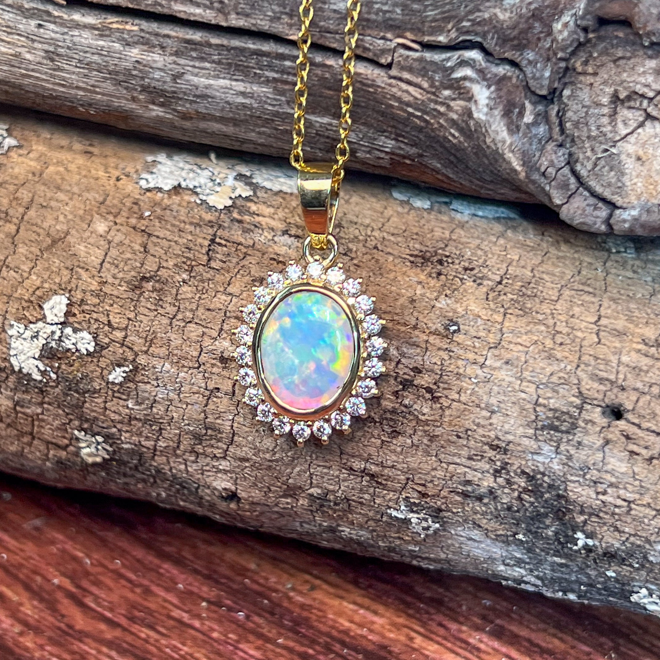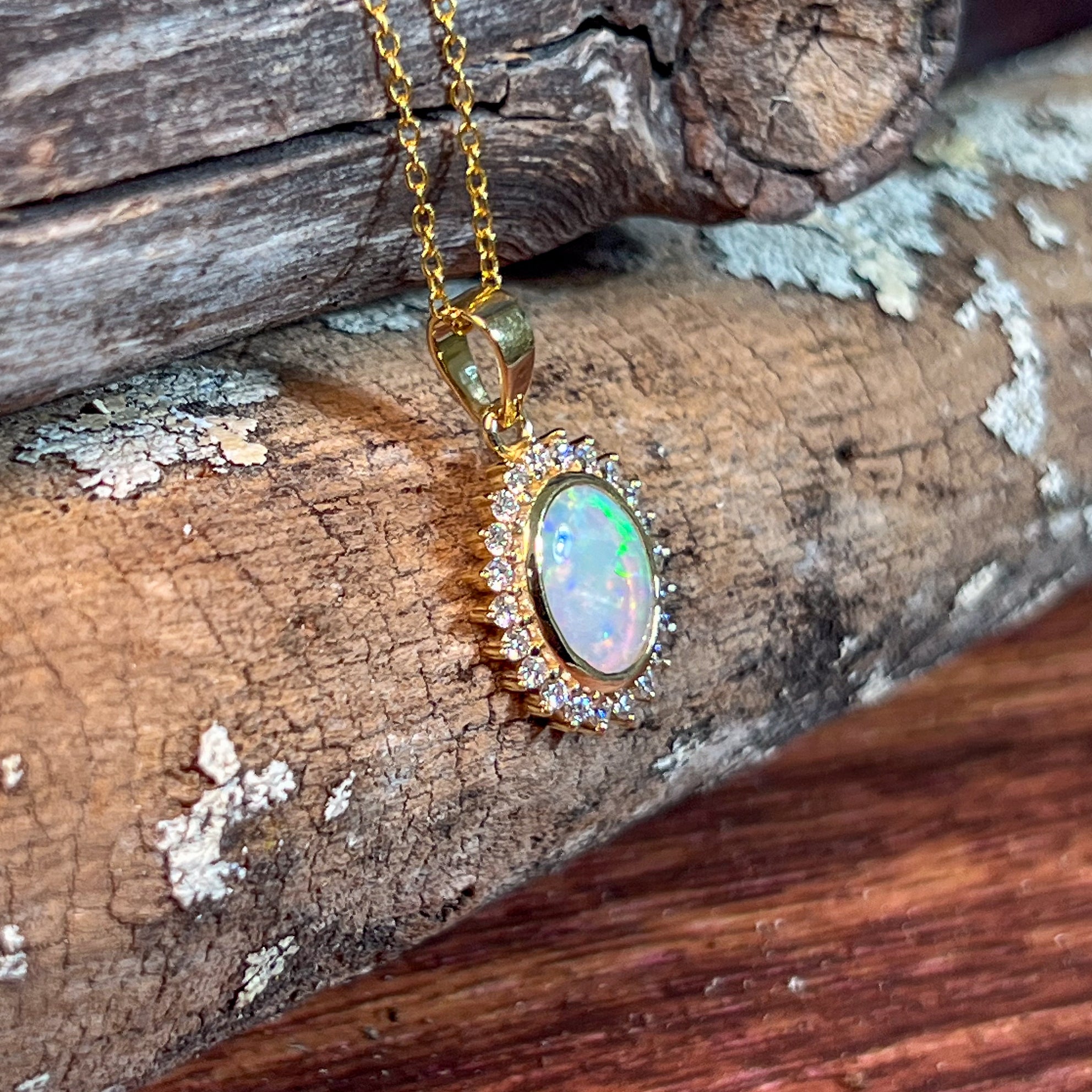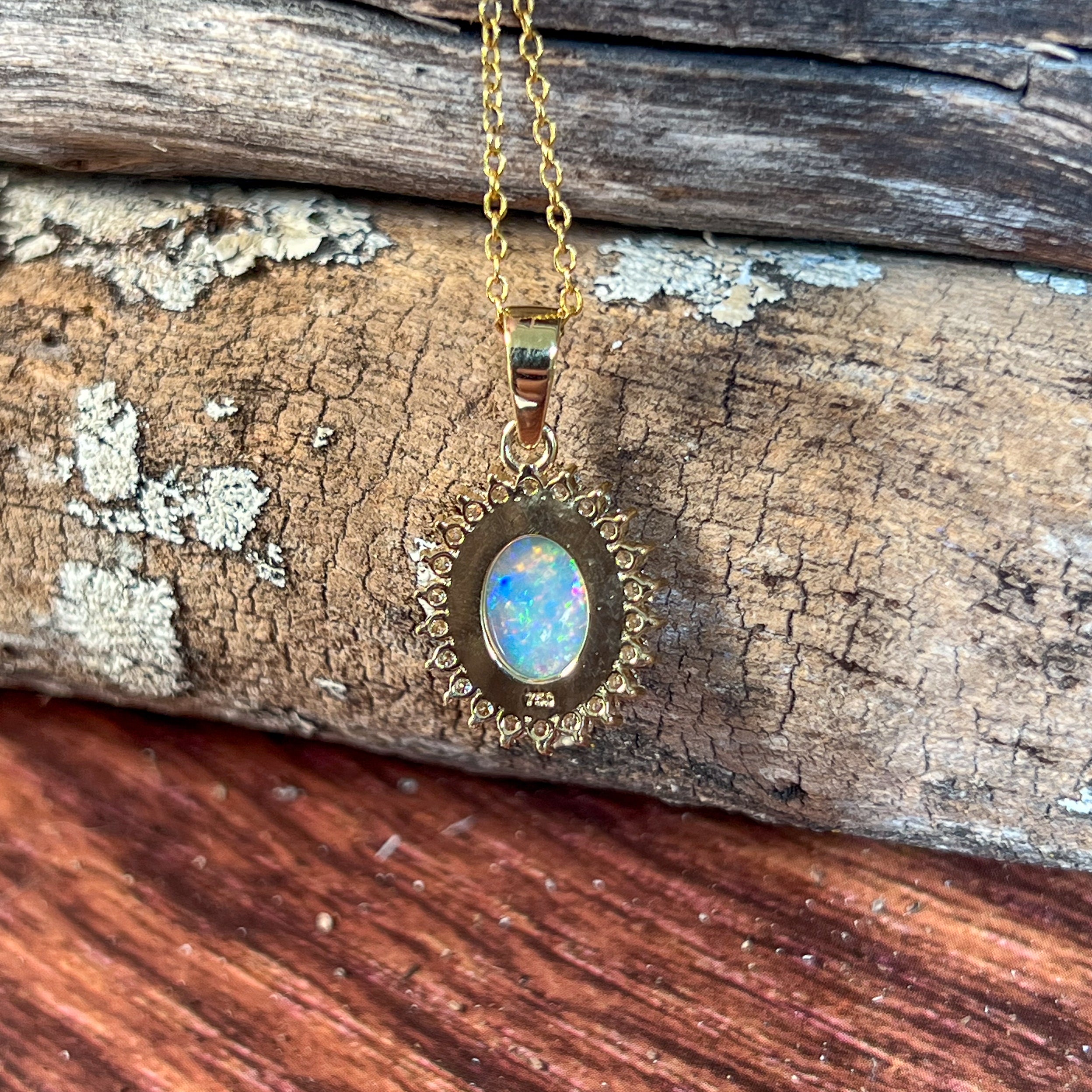 18kt Yellow Gold cluster Crystal Opal and diamond pendant