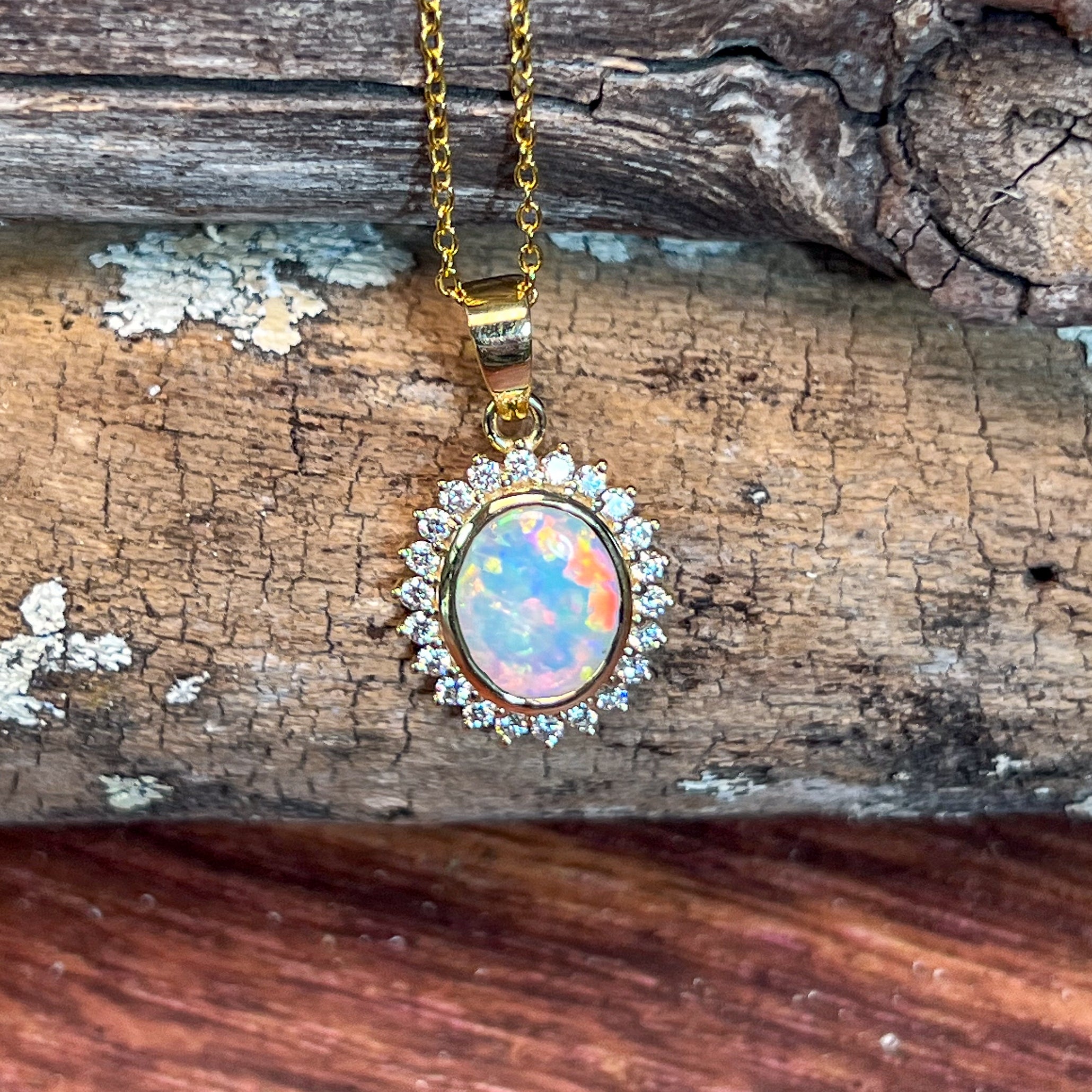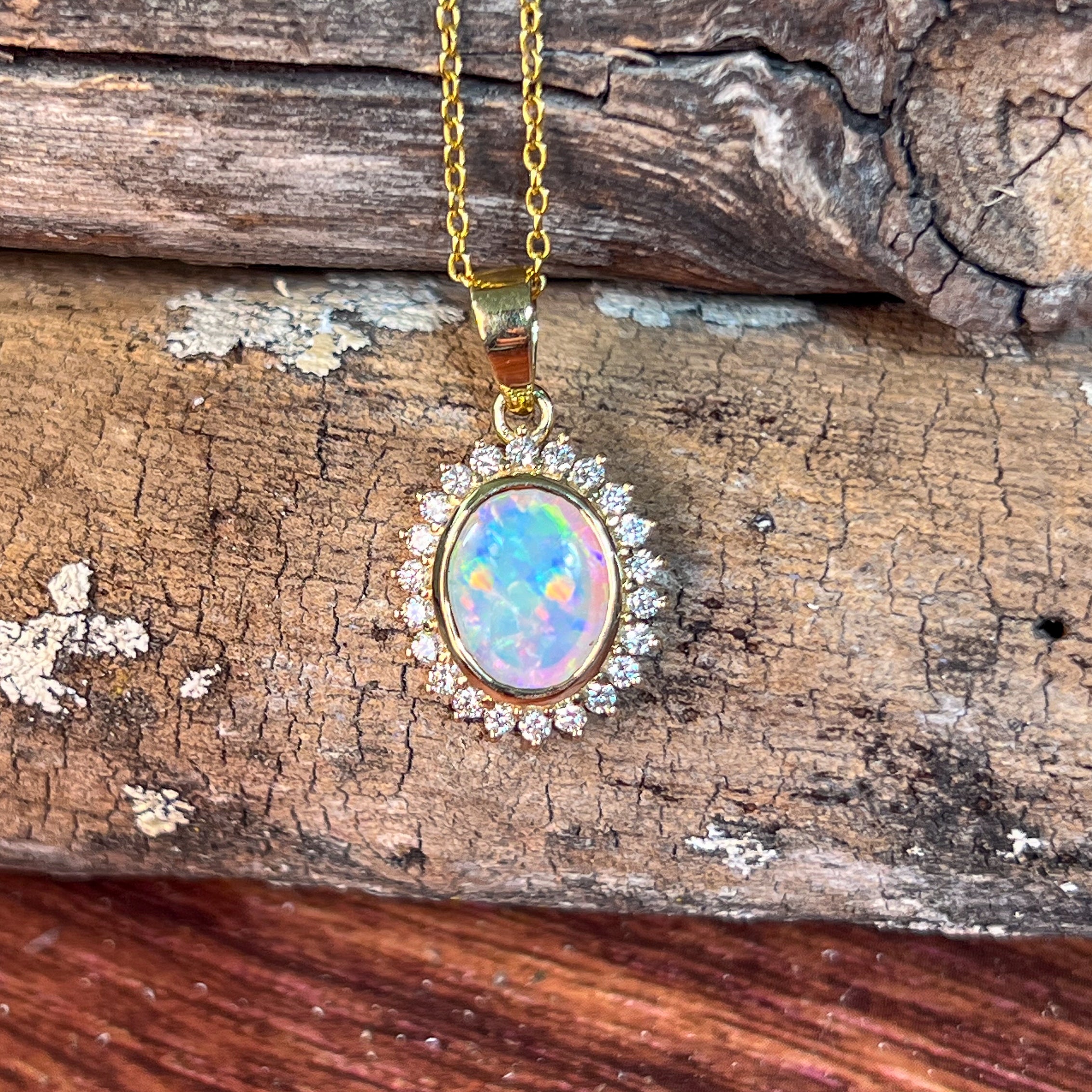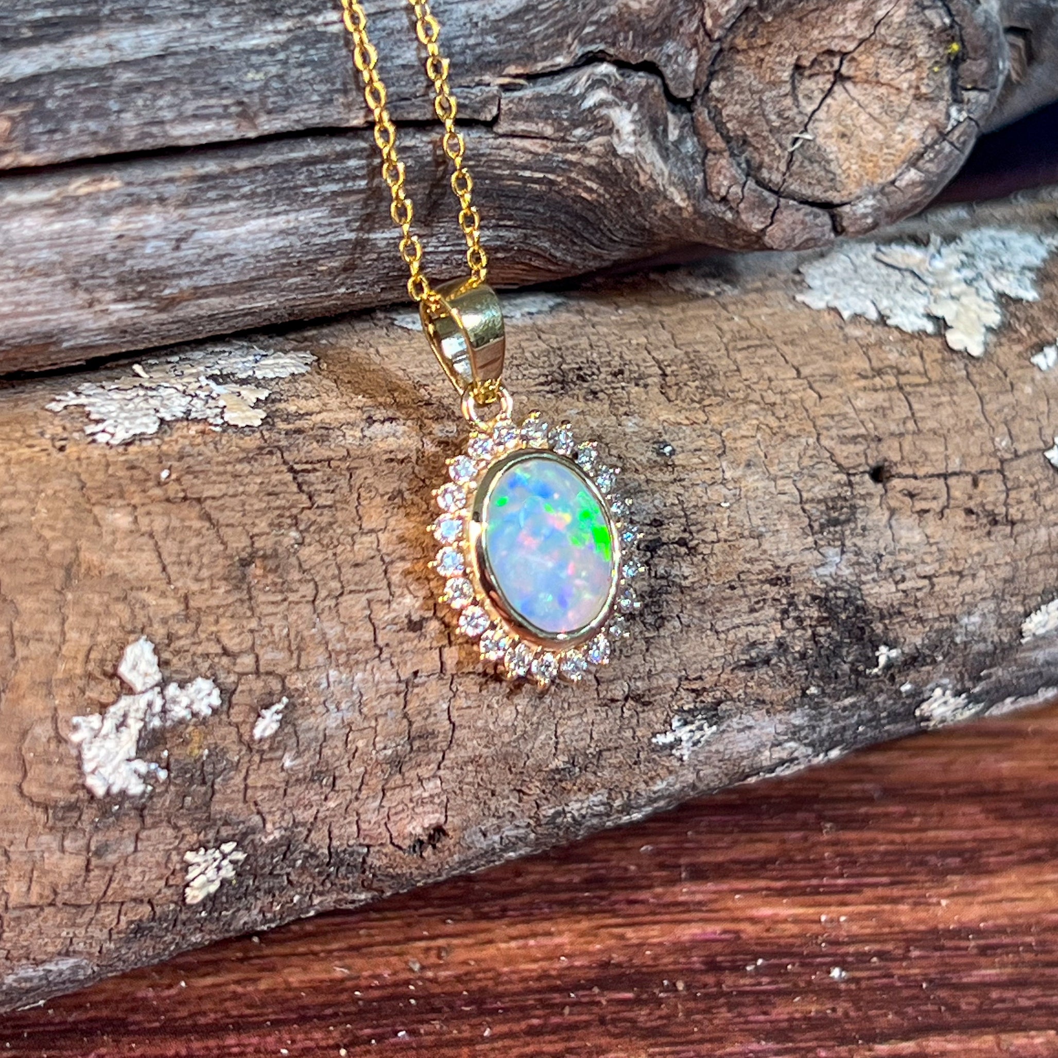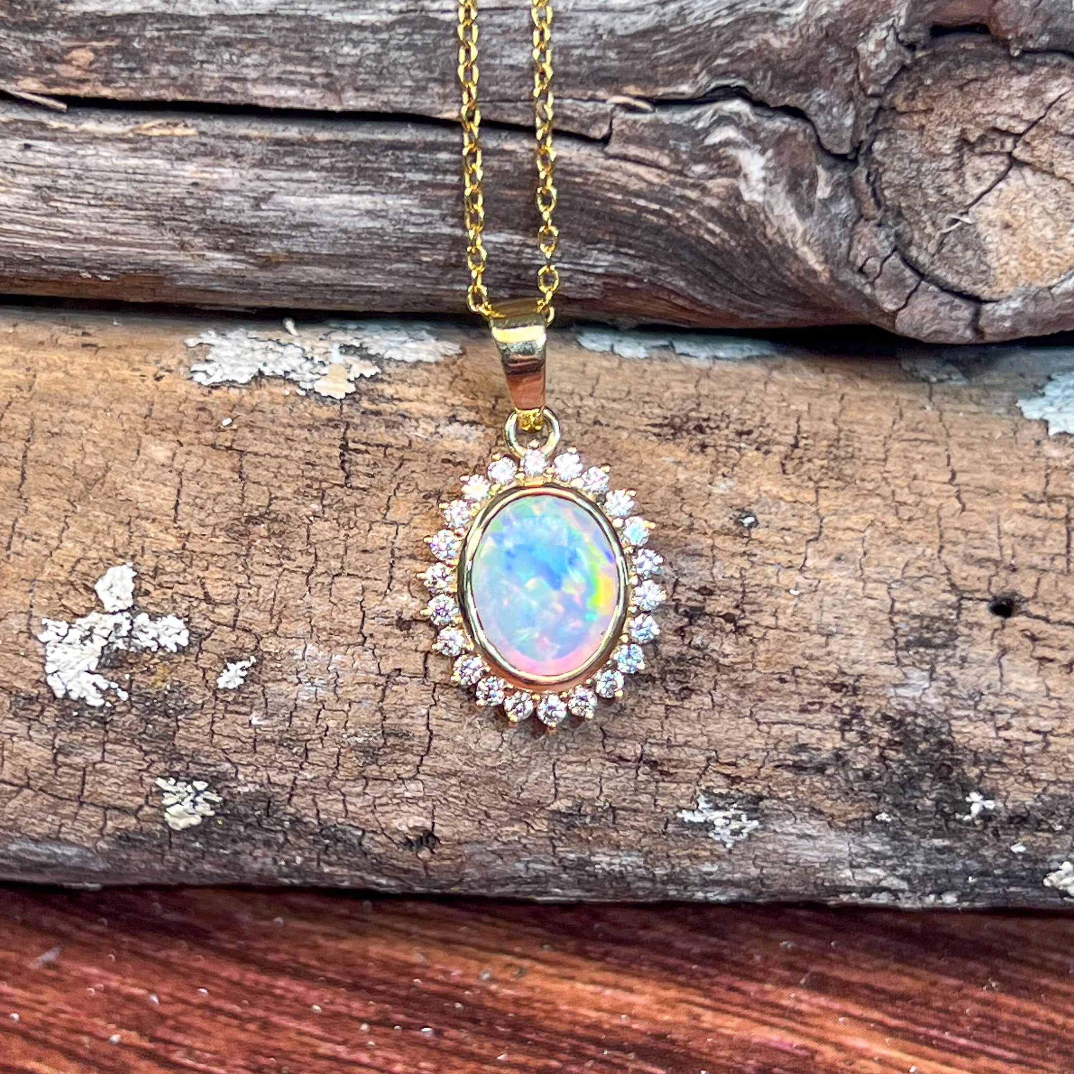 18kt Yellow Gold cluster Crystal Opal and diamond pendant