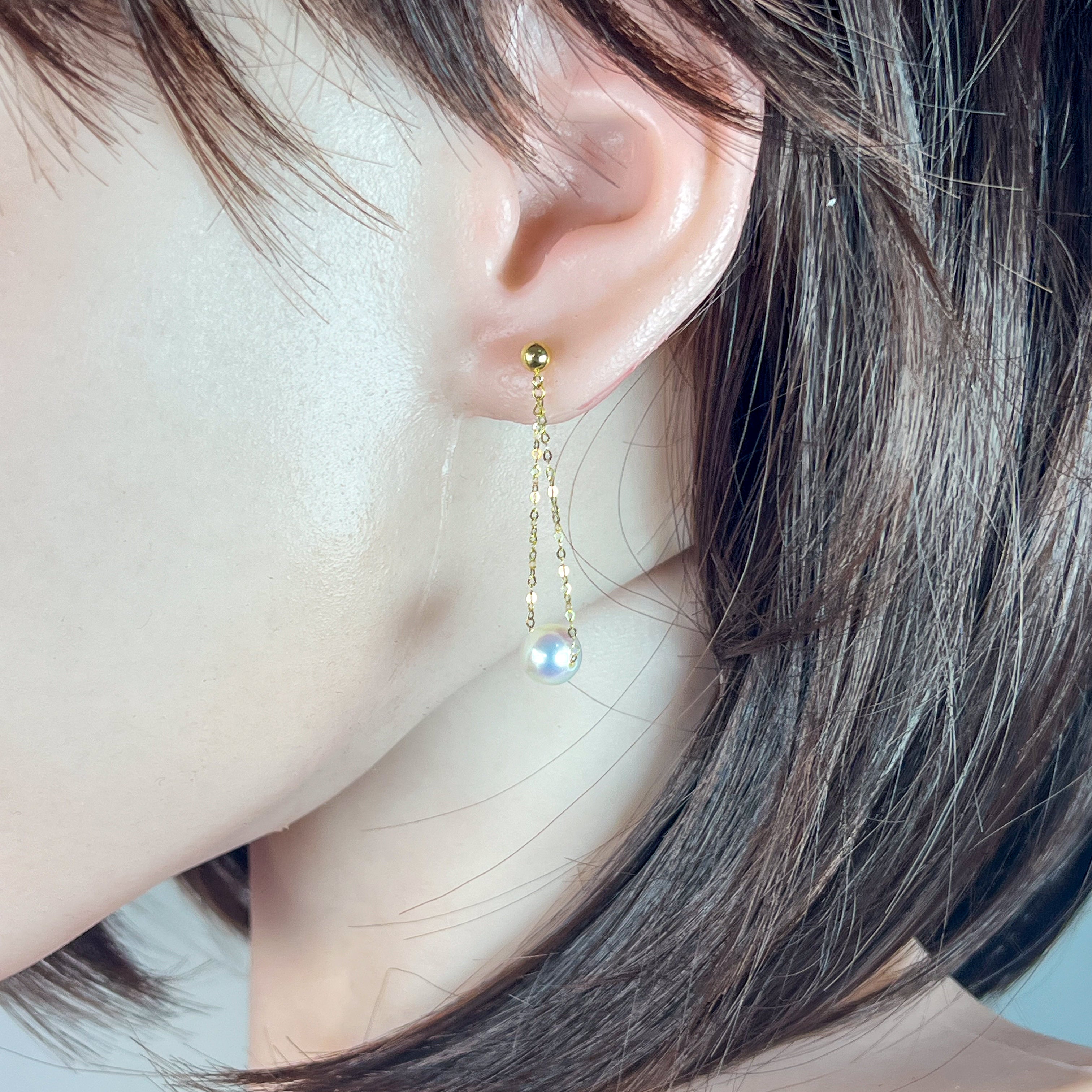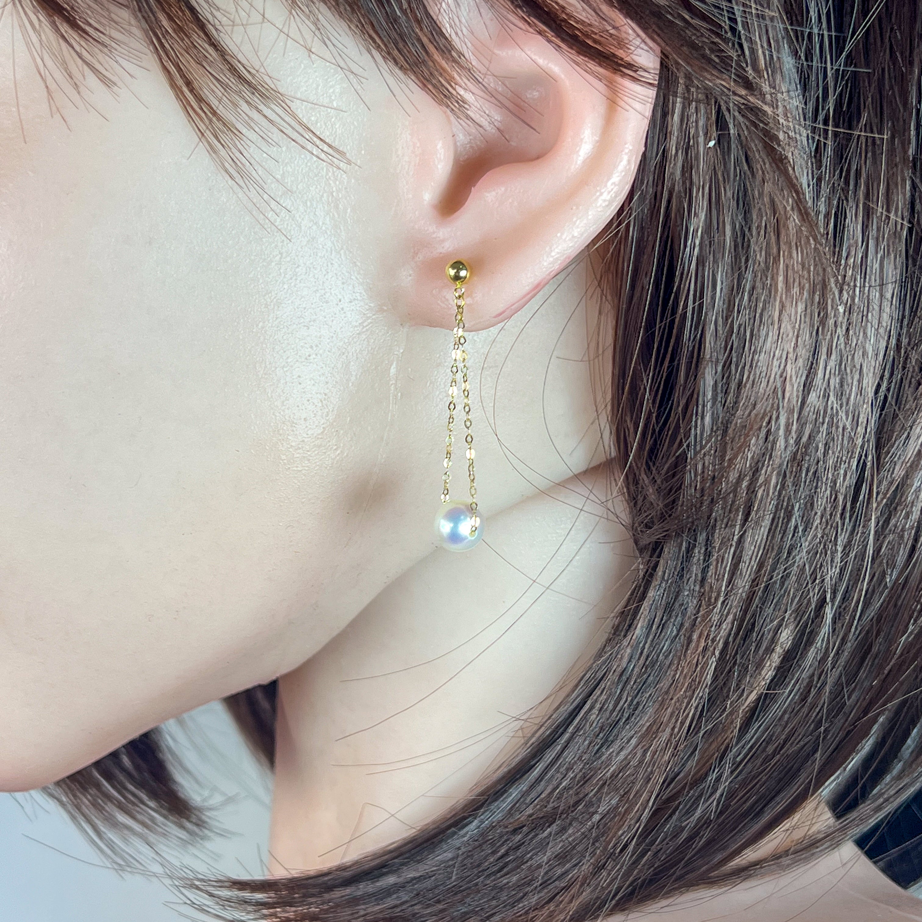 Elevate your elegance with these 18kt yellow gold earrings featuring lustrous Akoya pearls measuring 7-7.5mm. Their delicate dangling design offers a modern, refined touch that complements both everyday wear and special occasions with understated sophistication.
