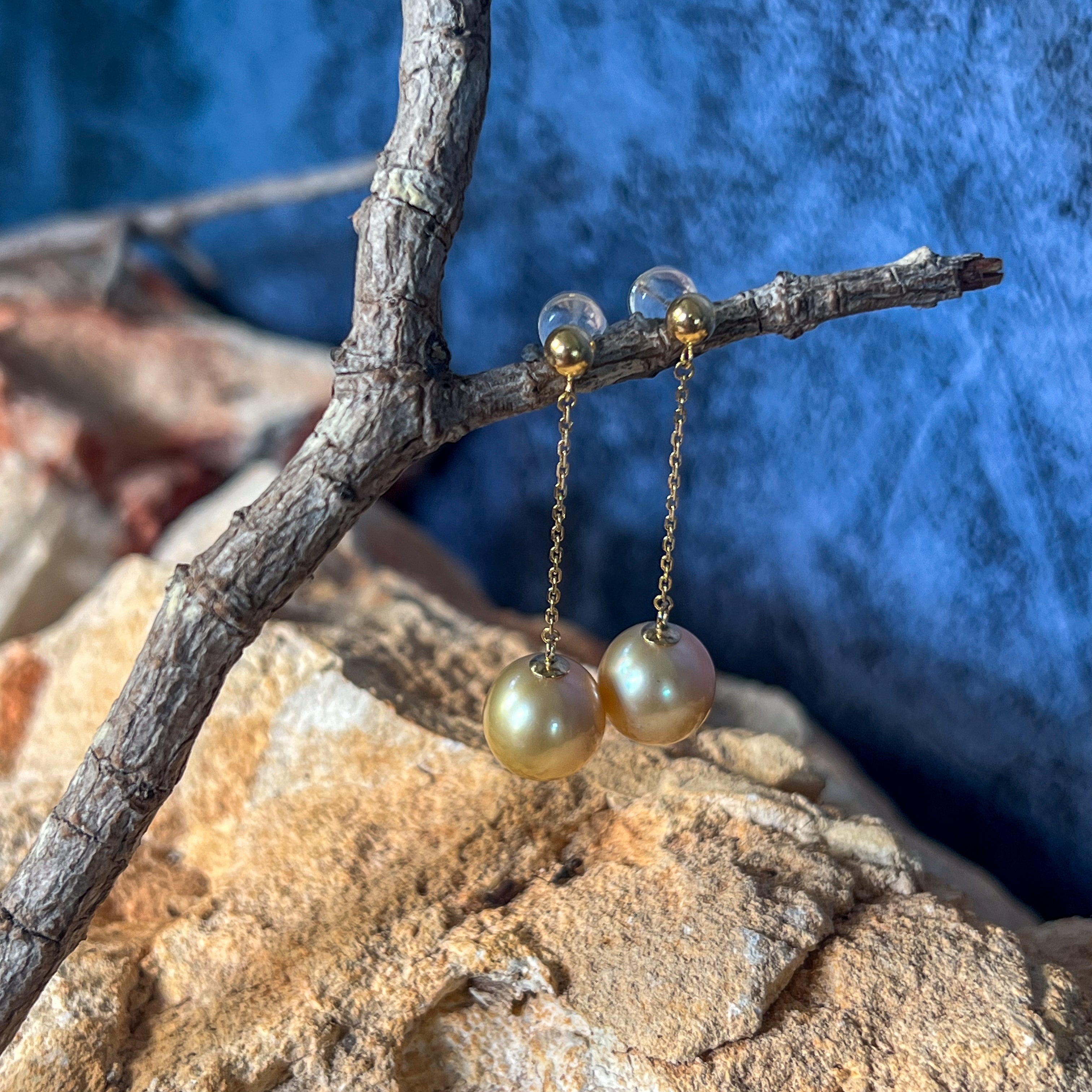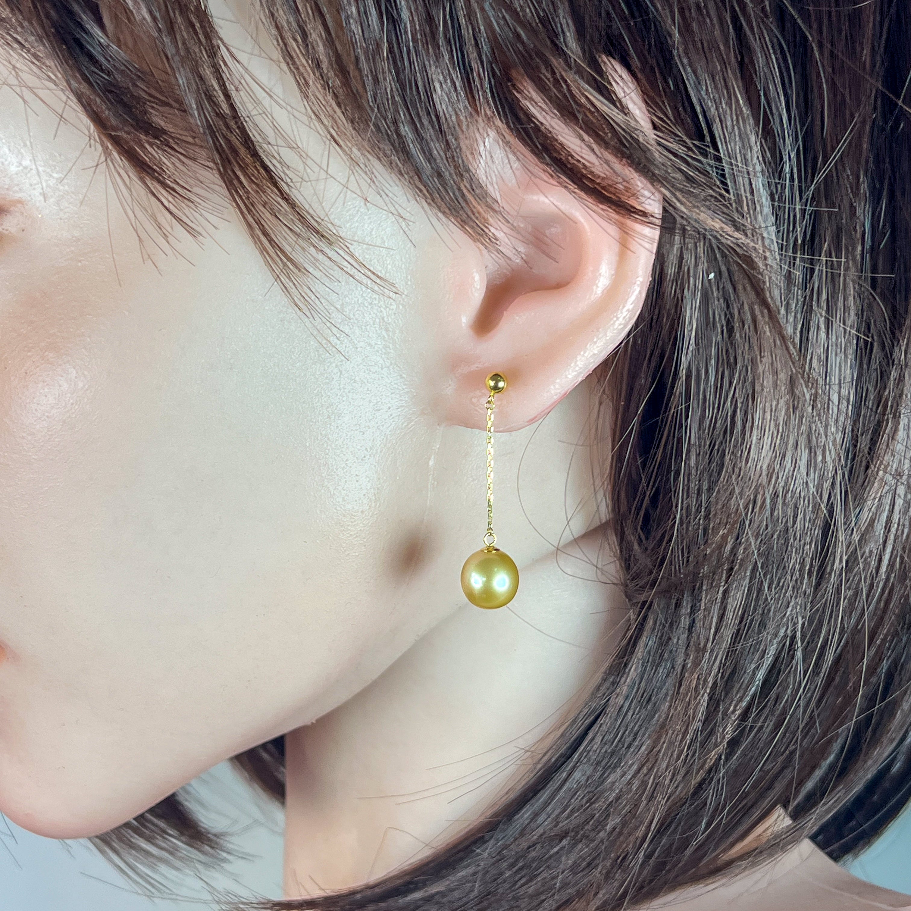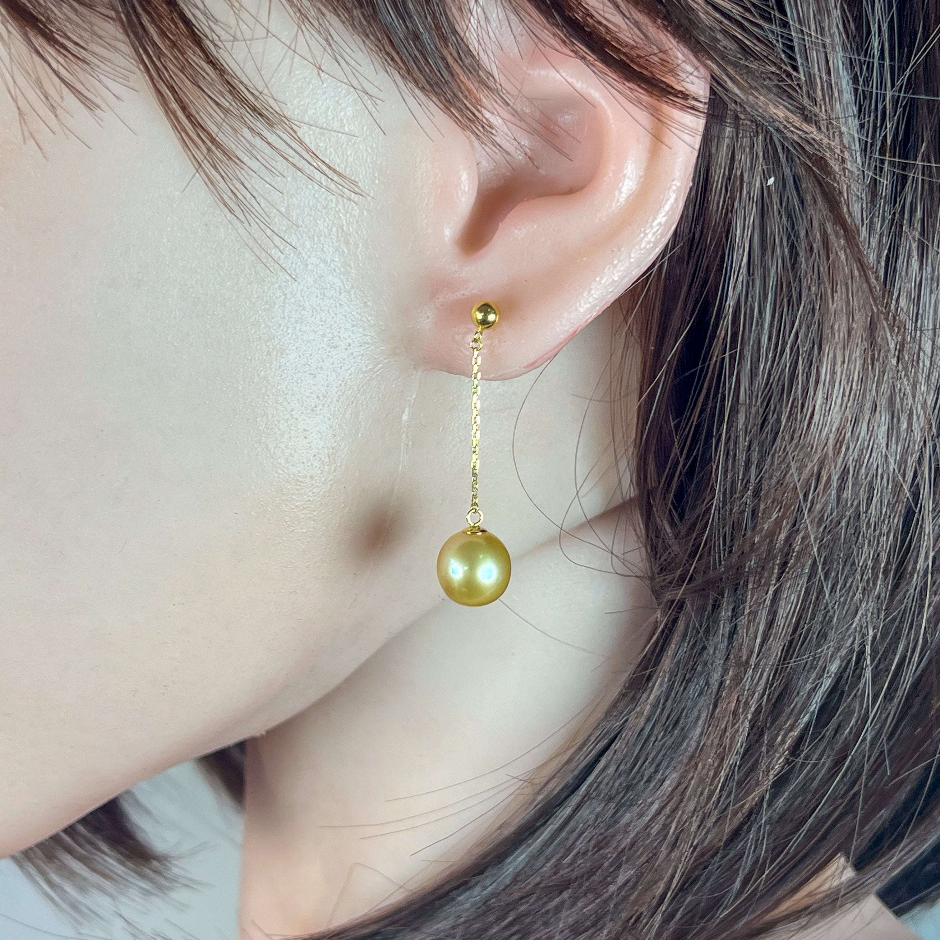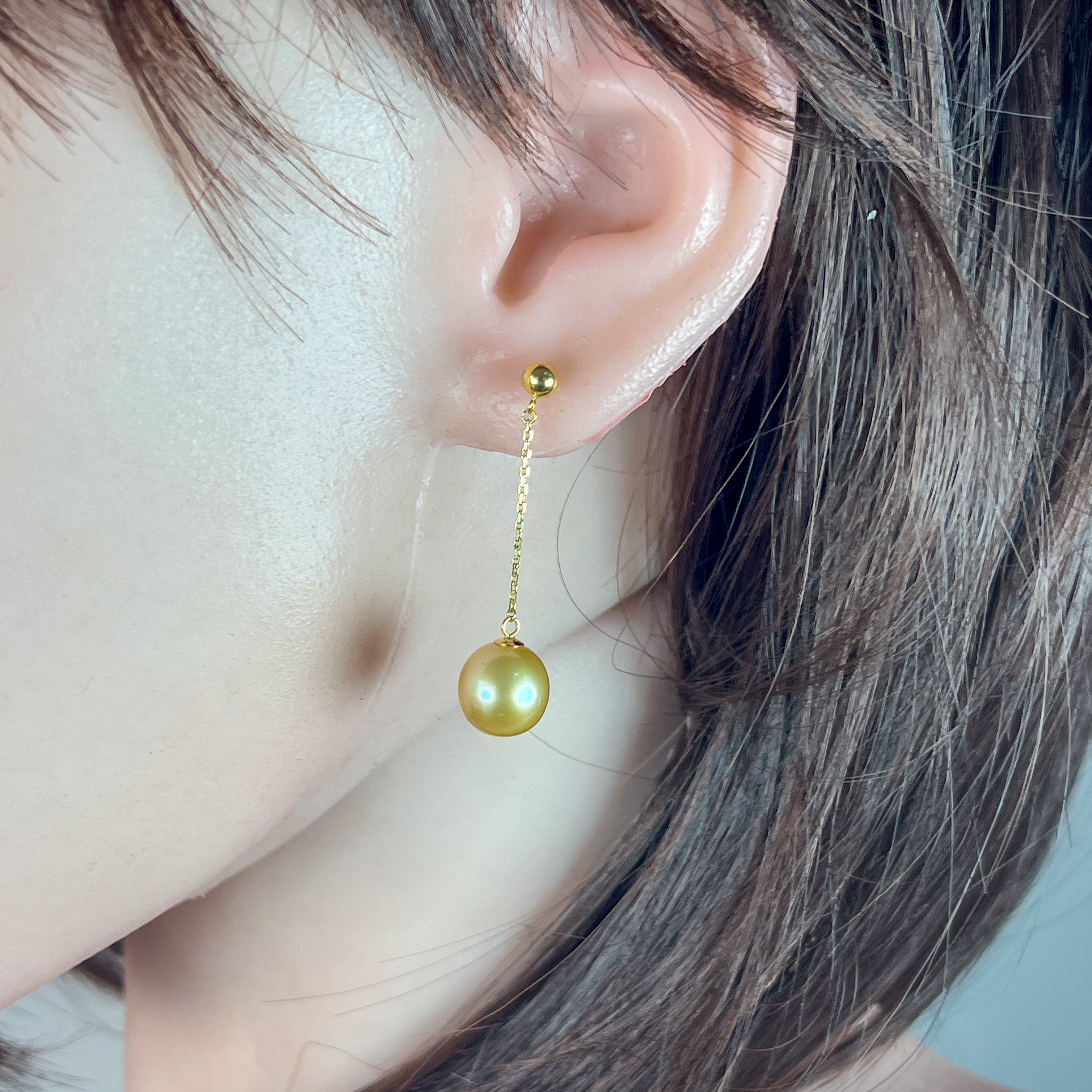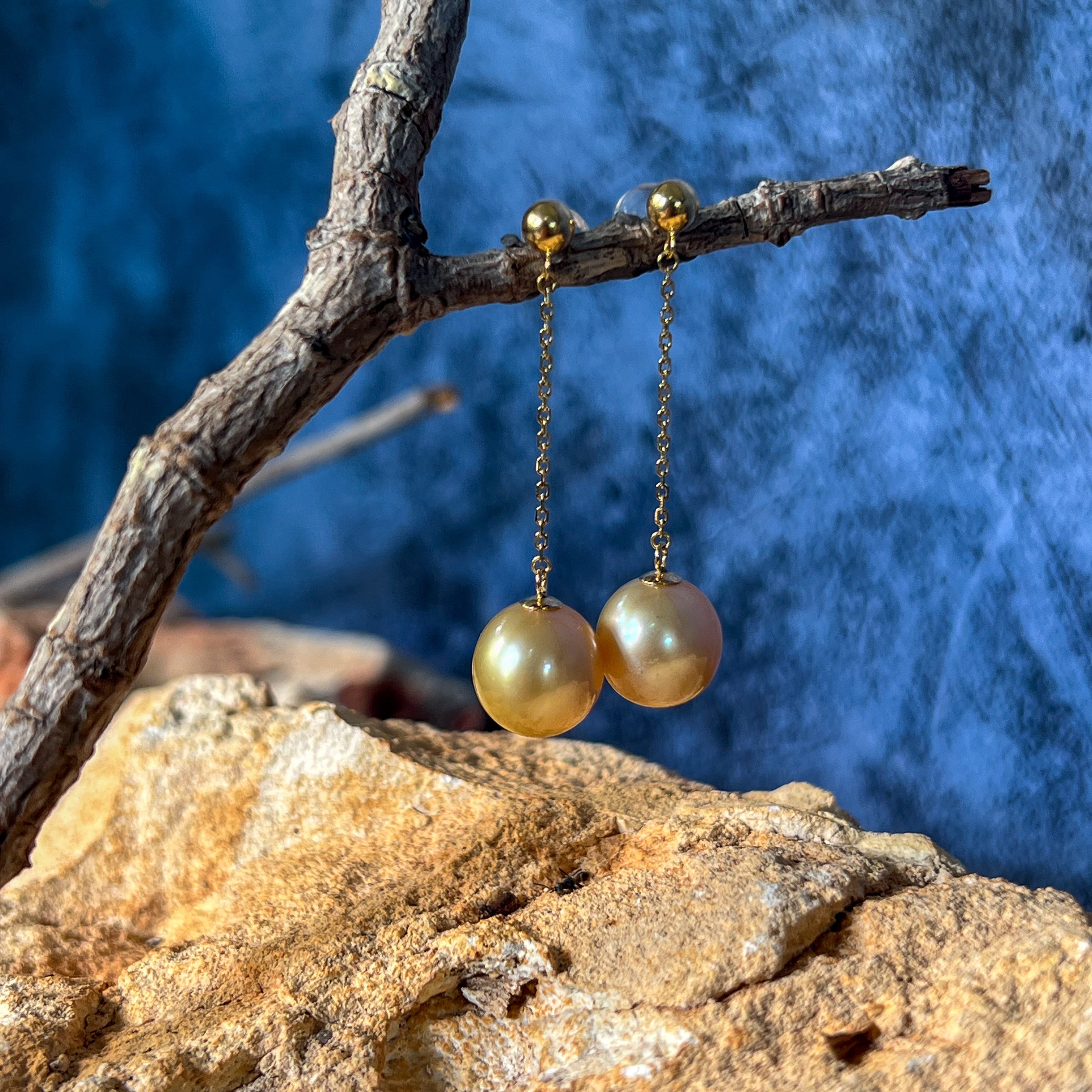 Elevate your elegance with these 18kt yellow gold earrings featuring lustrous Golden South Sea pearls measuring 9-10mm. Their long, graceful dangle design enhances movement and light reflection, adding a refined touch to any ensemble. Perfect for sophisticated occasions, these earrings combine timeless luxury with exquisite craftsmanship.