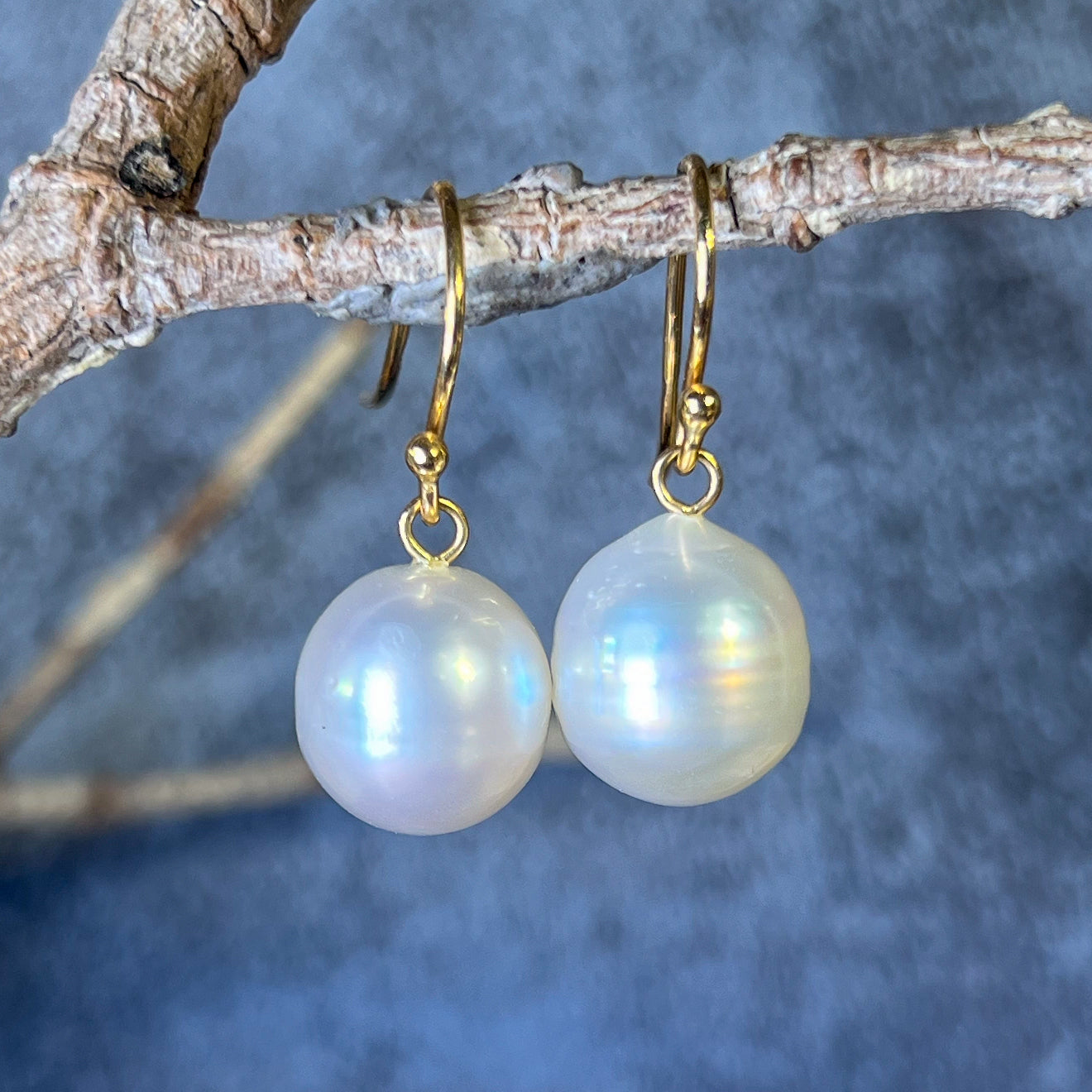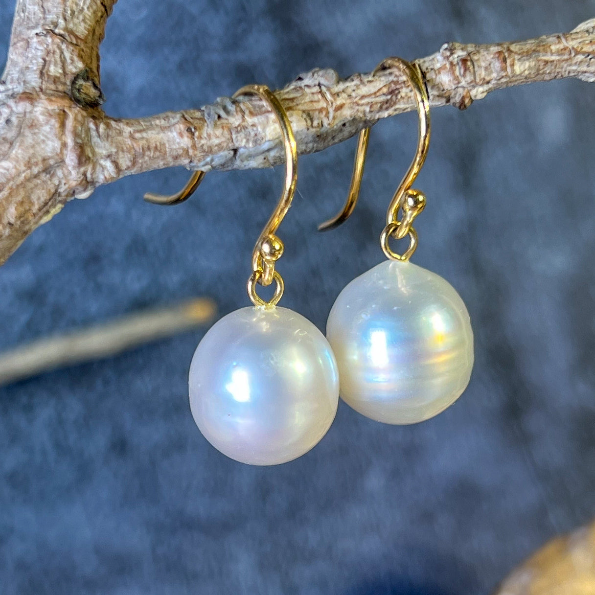 18kt Yellow gold dangling South Sea Pearl 11-12mm earrings hooks