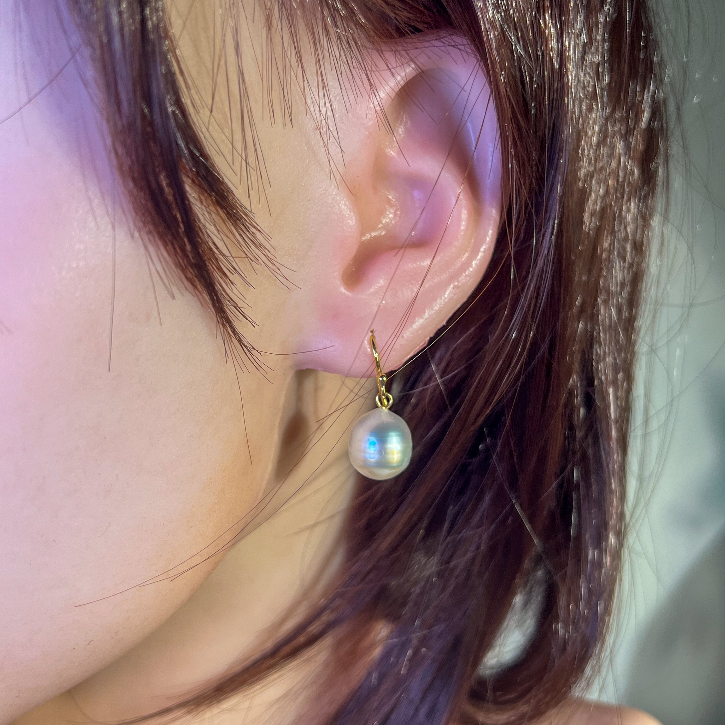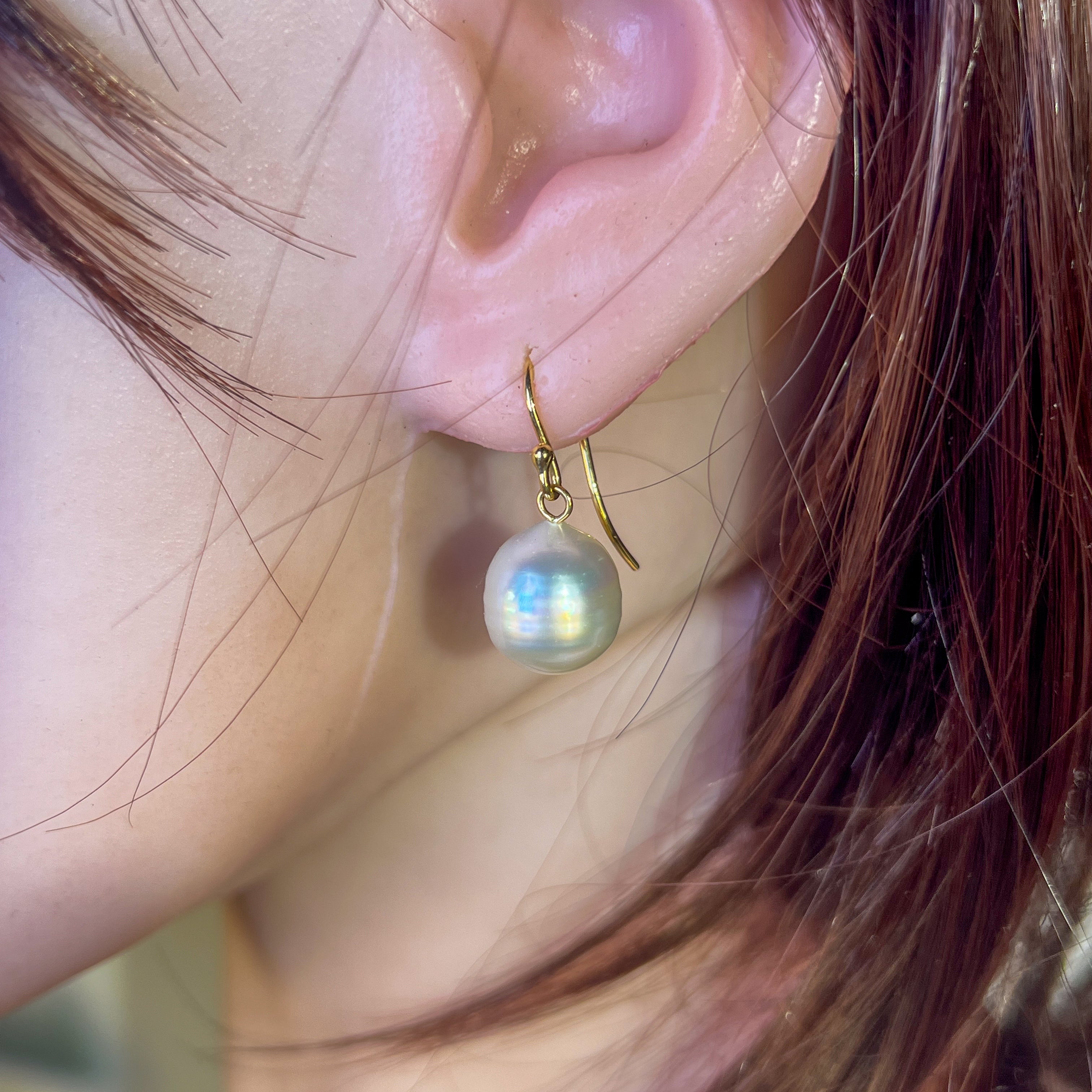 Elevate your style with our 18kt Yellow gold dangling South Sea Pearl earrings! These classic hooks feature 11-12mm pearls, adding a touch of elegance to any outfit. Made from high-quality materials, these earrings offer a timeless and sophisticated look that is sure to impress. Upgrade your jewelry collection today!