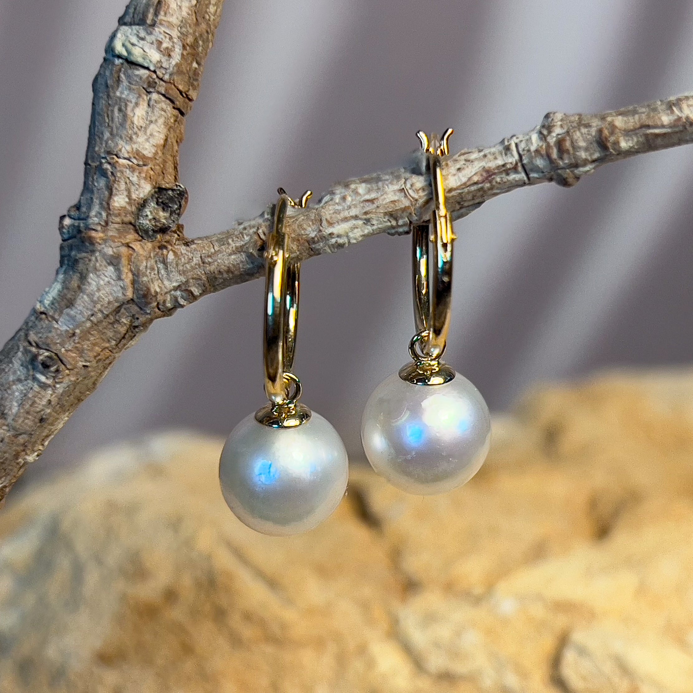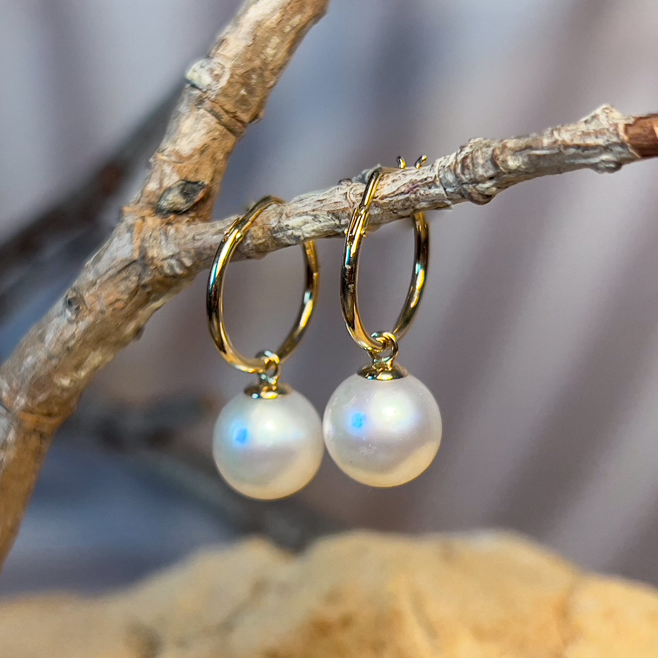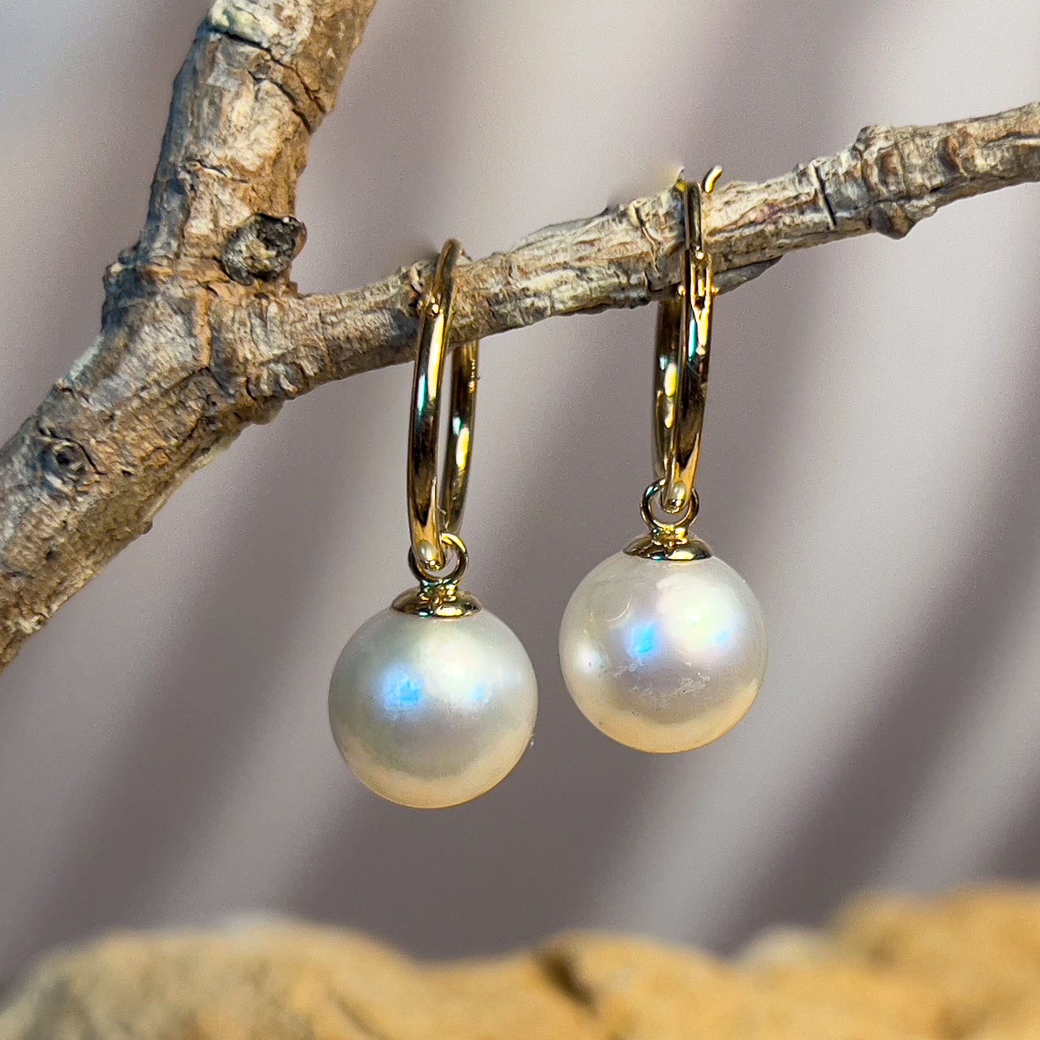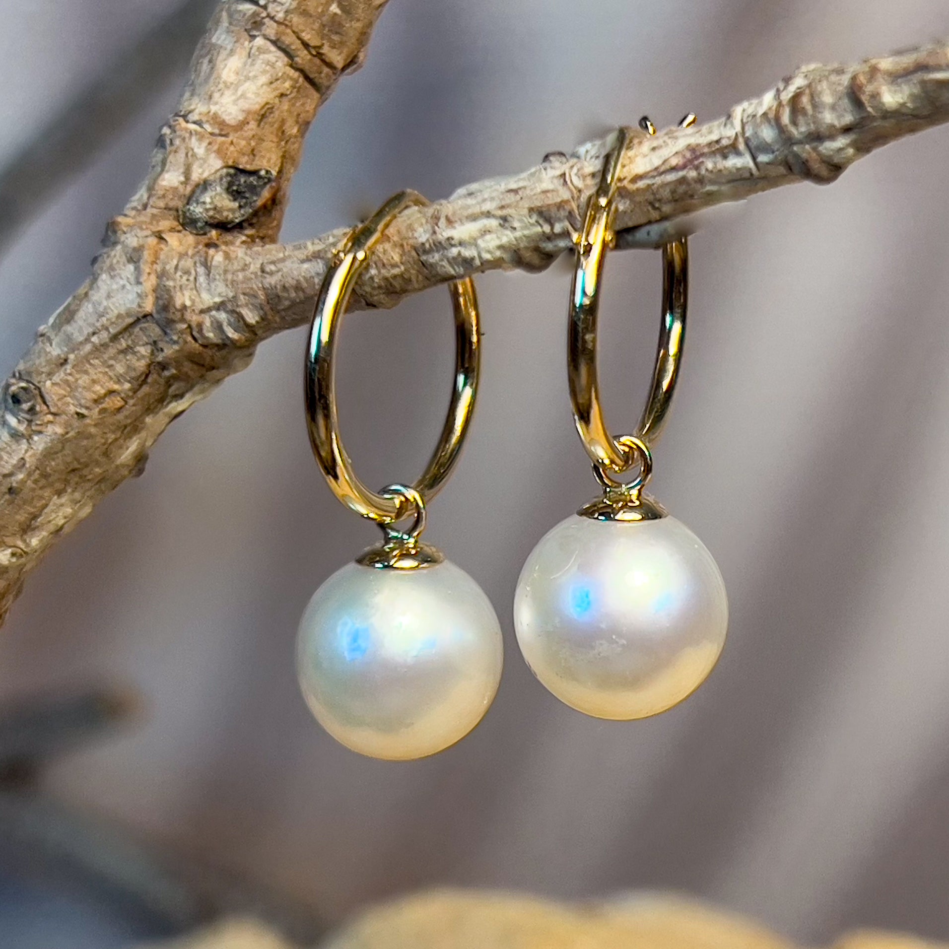 18kt Yellow Gold huggie earrings 9-9.5mm South Sea Pearls