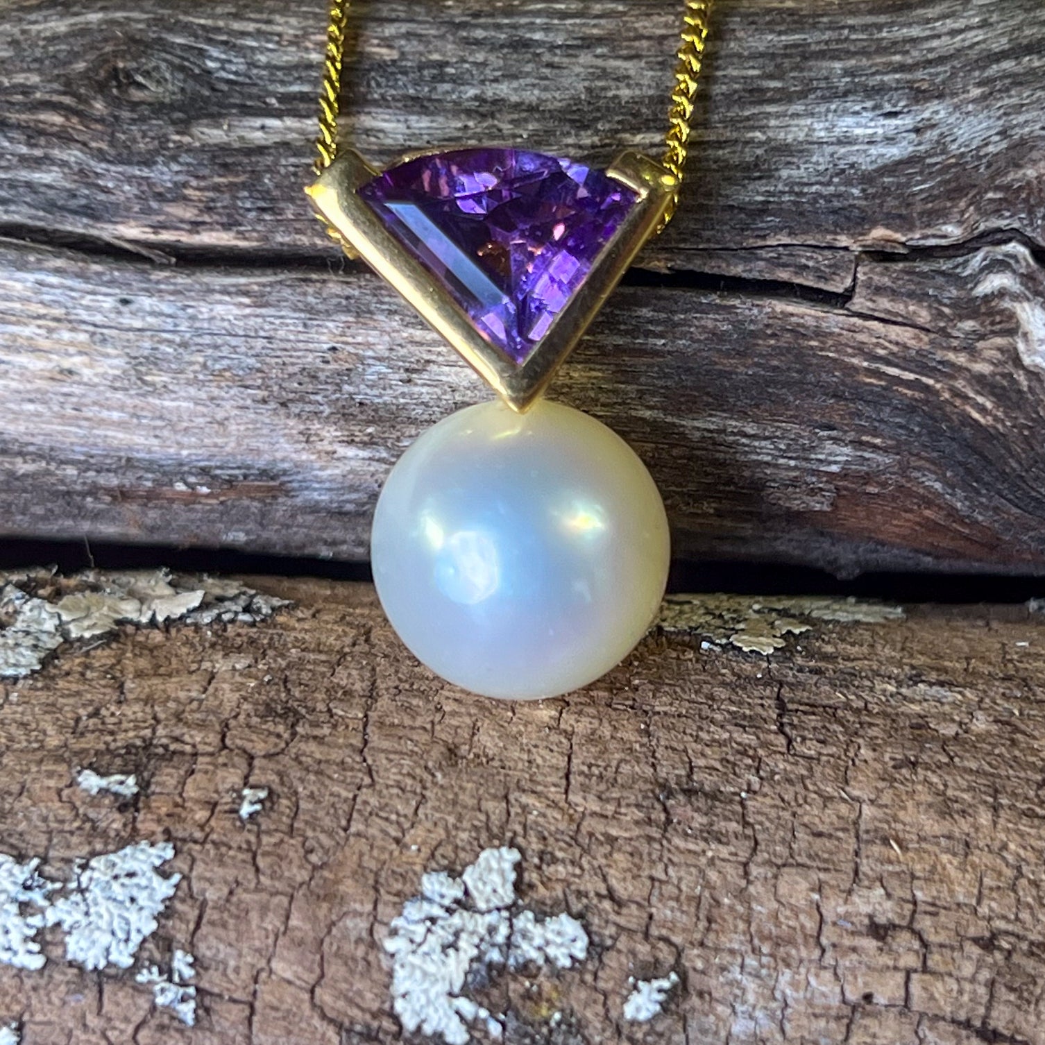 18kt Yellow Gold South Sea 14mm Pearl and Amethyst pendant