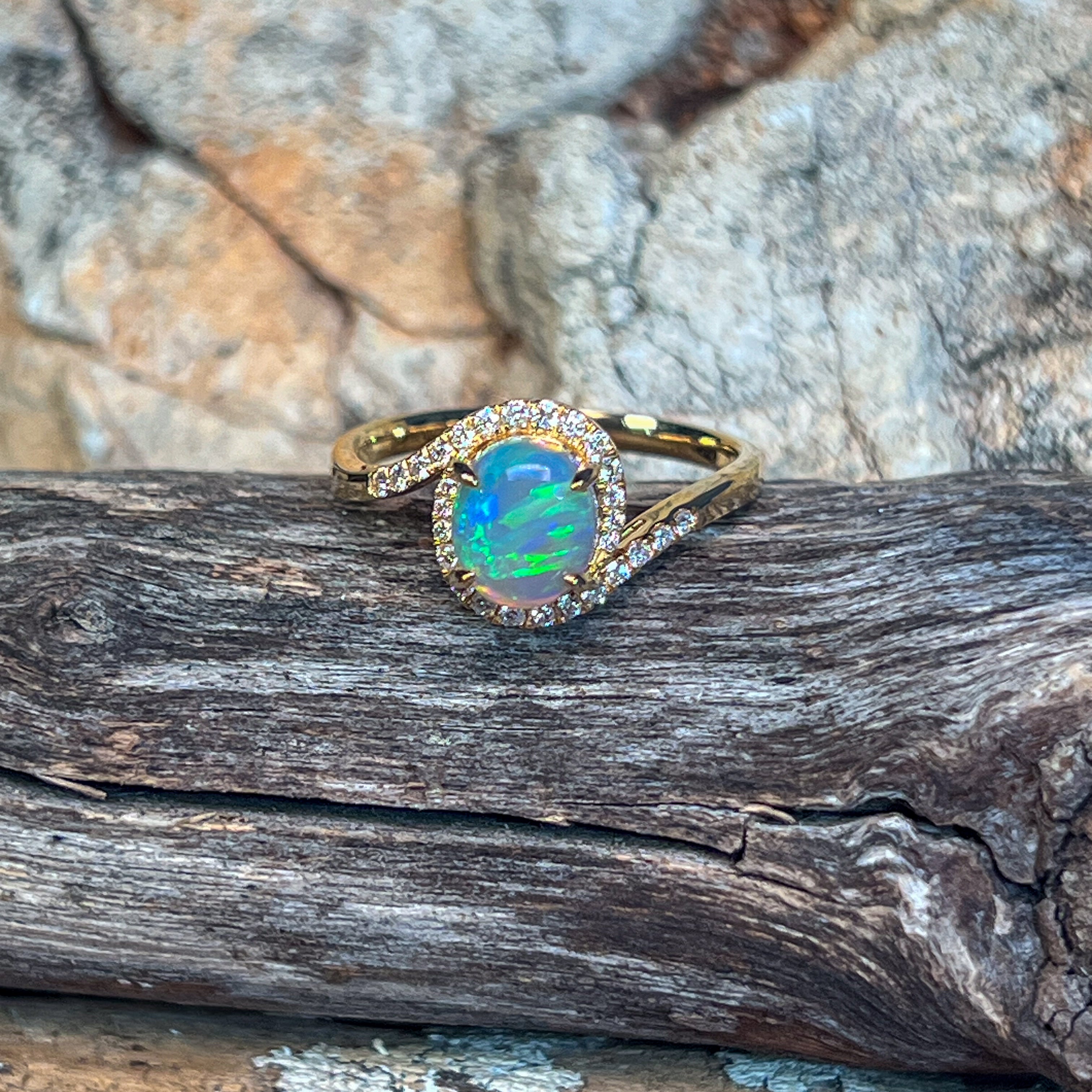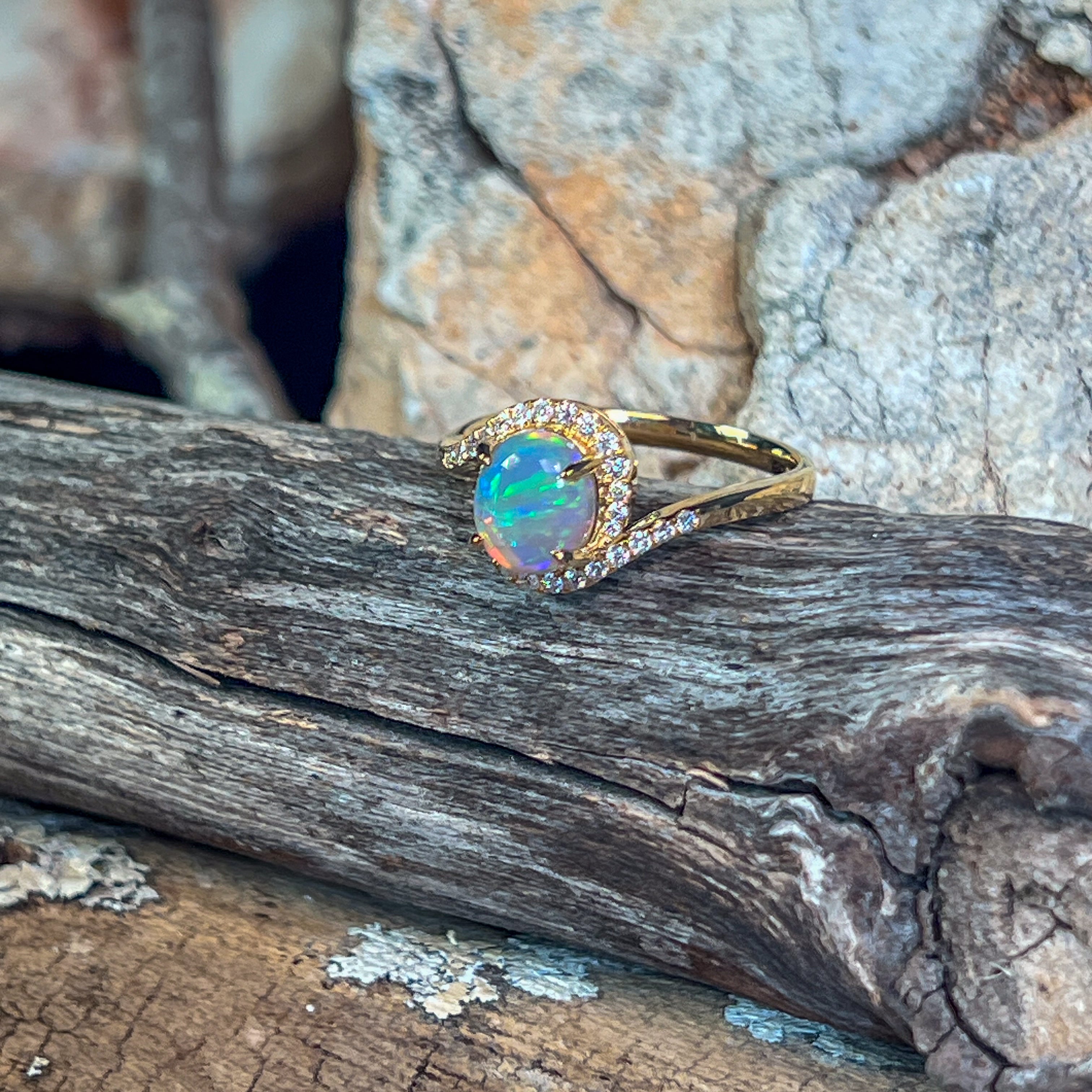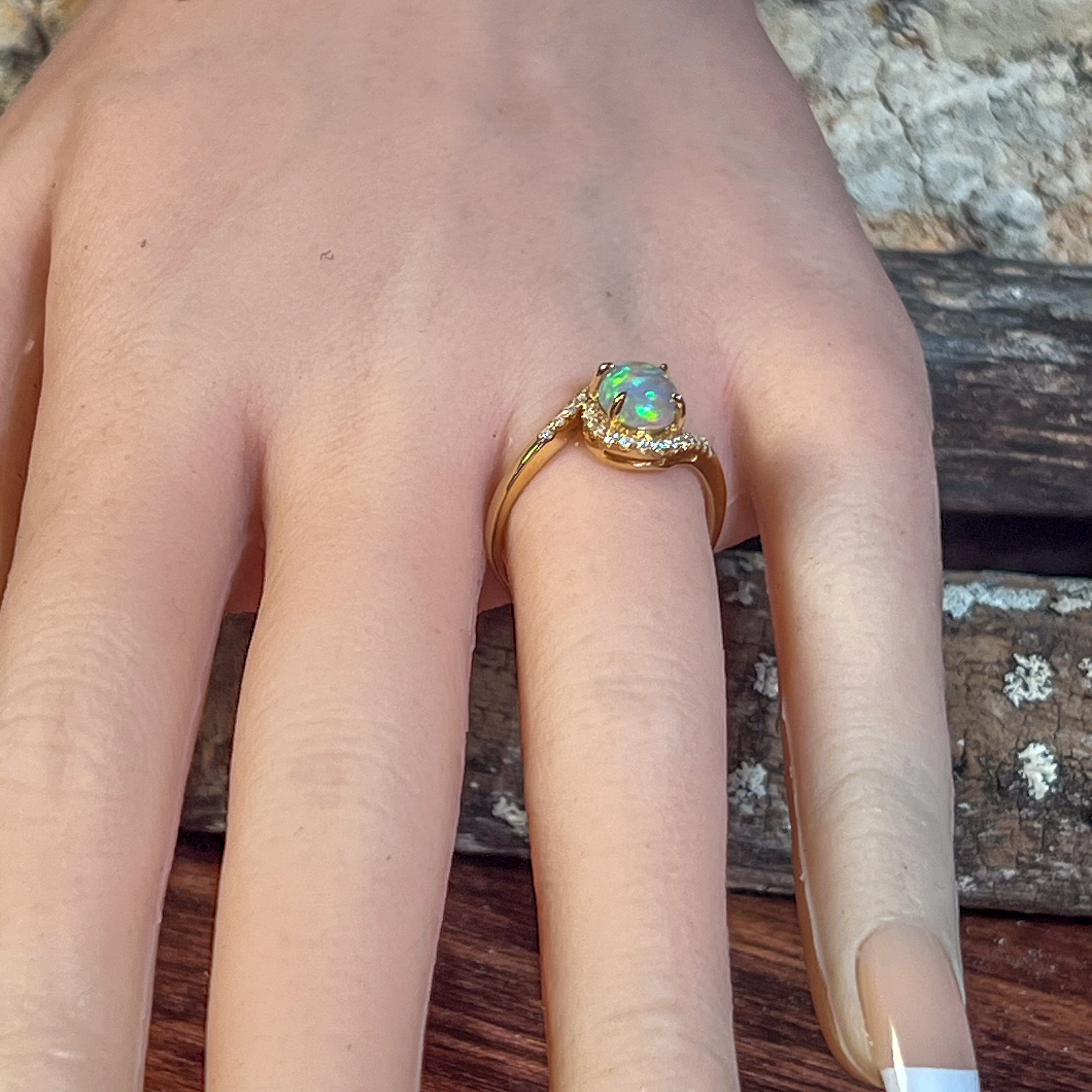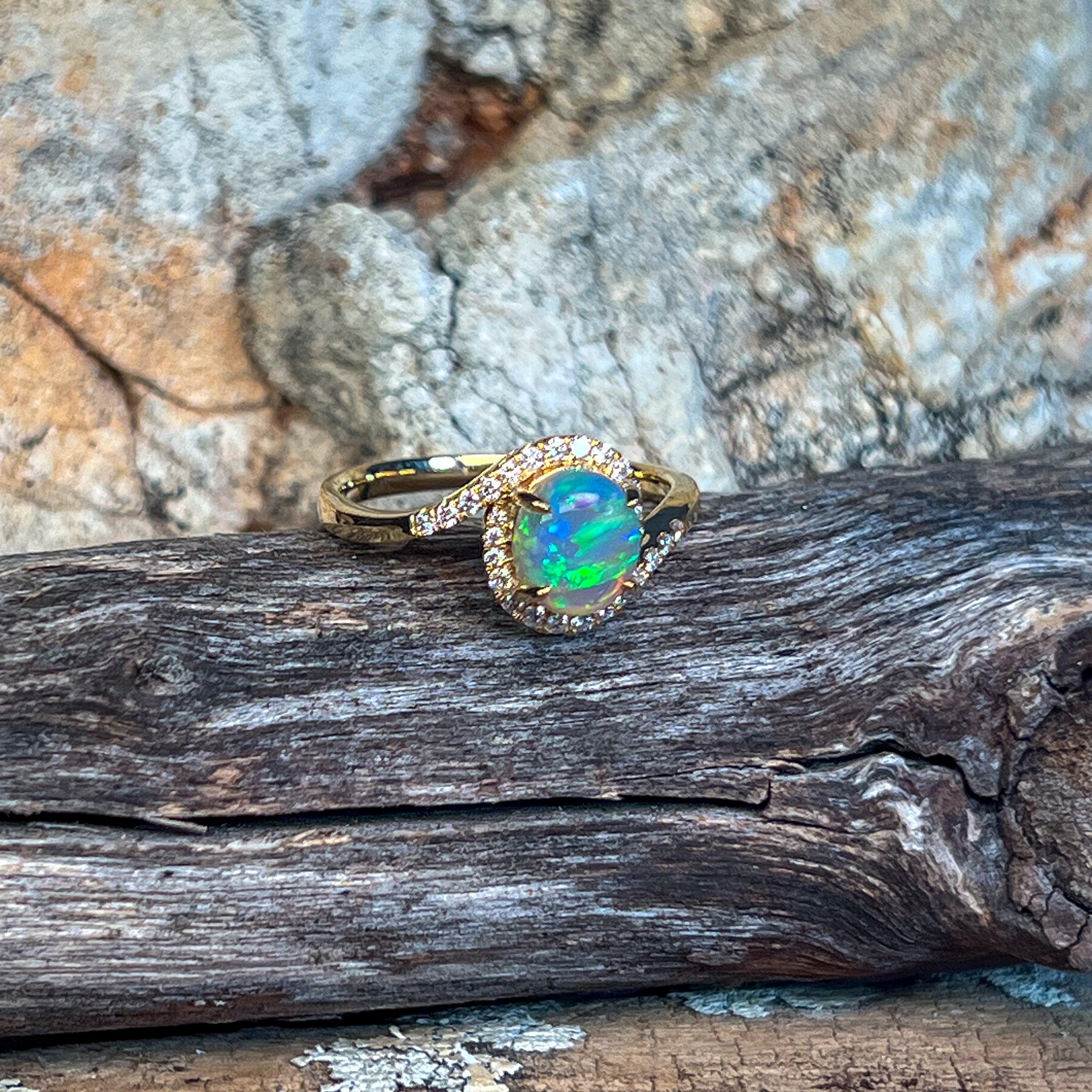 18kt Yellow Gold swirl ring with Opal crystal 0.95ct and diamonds