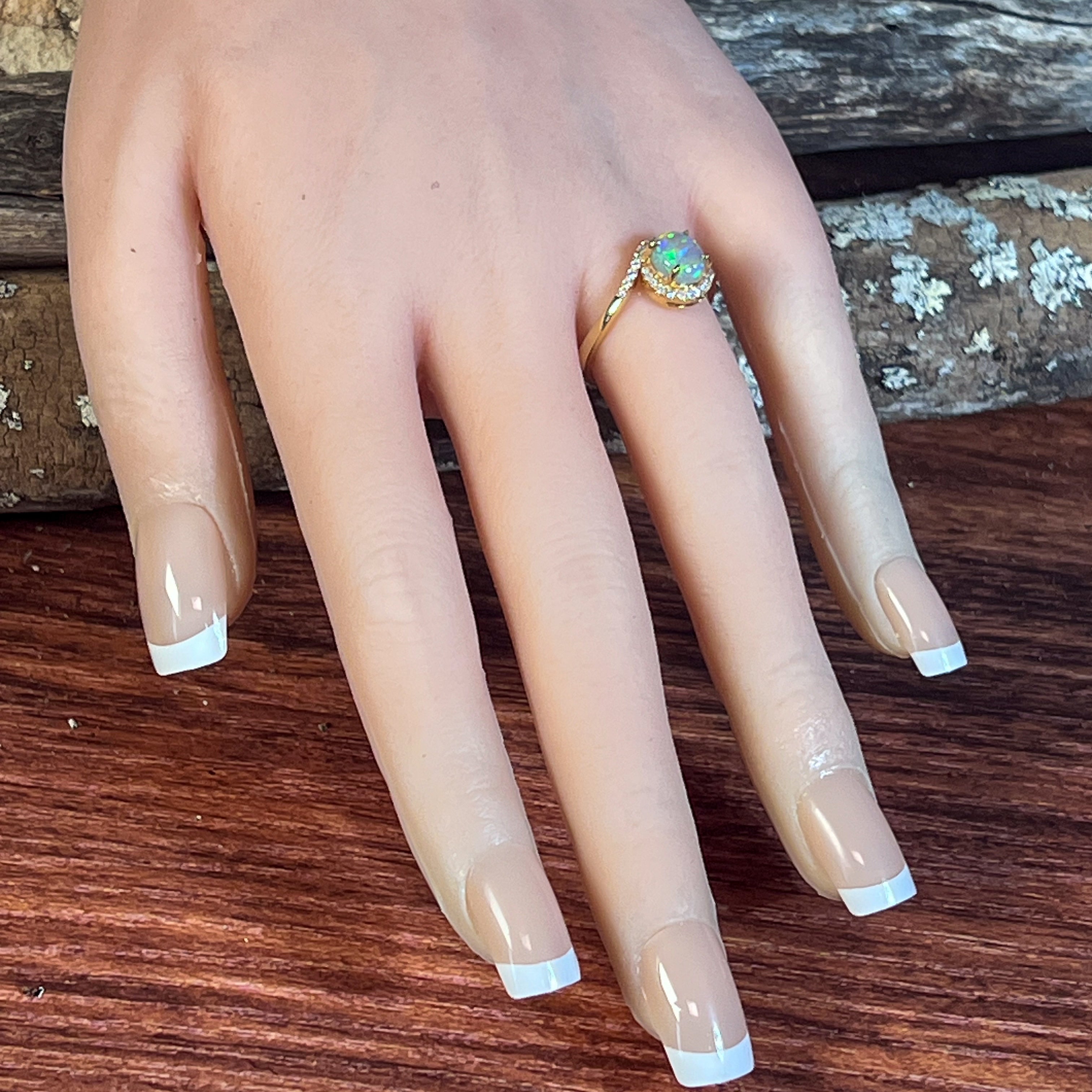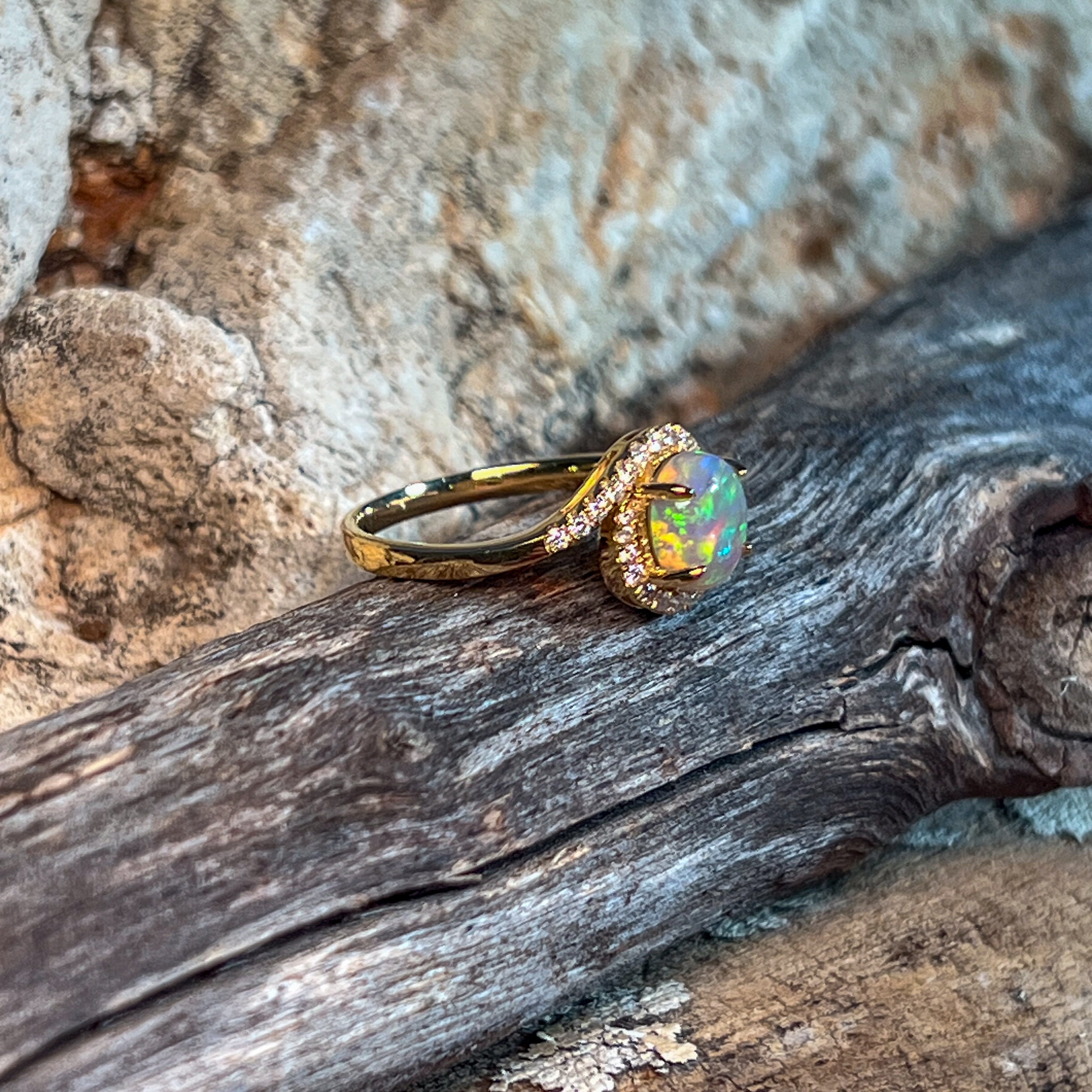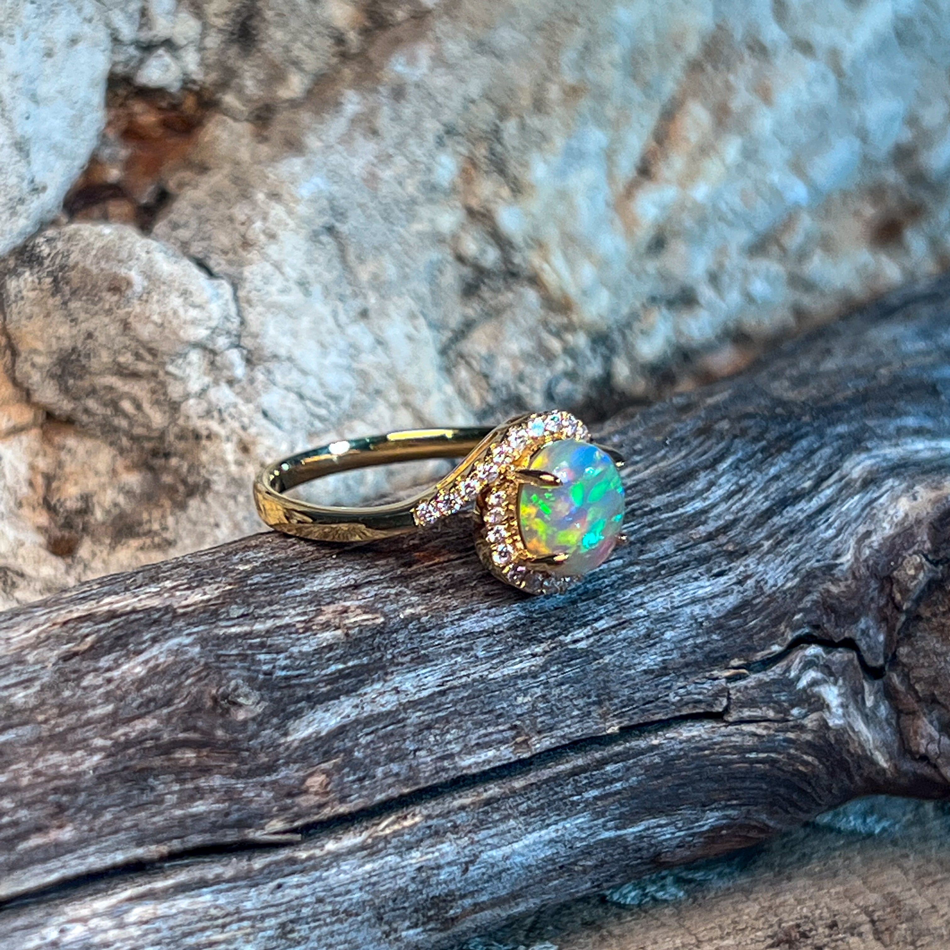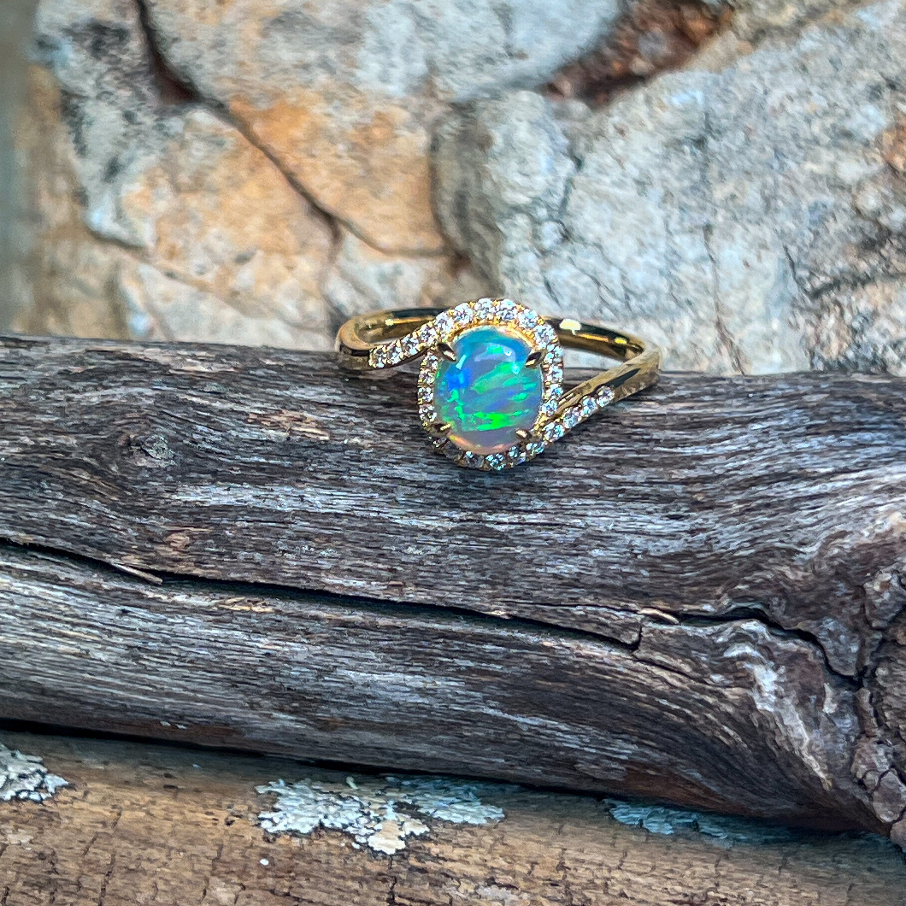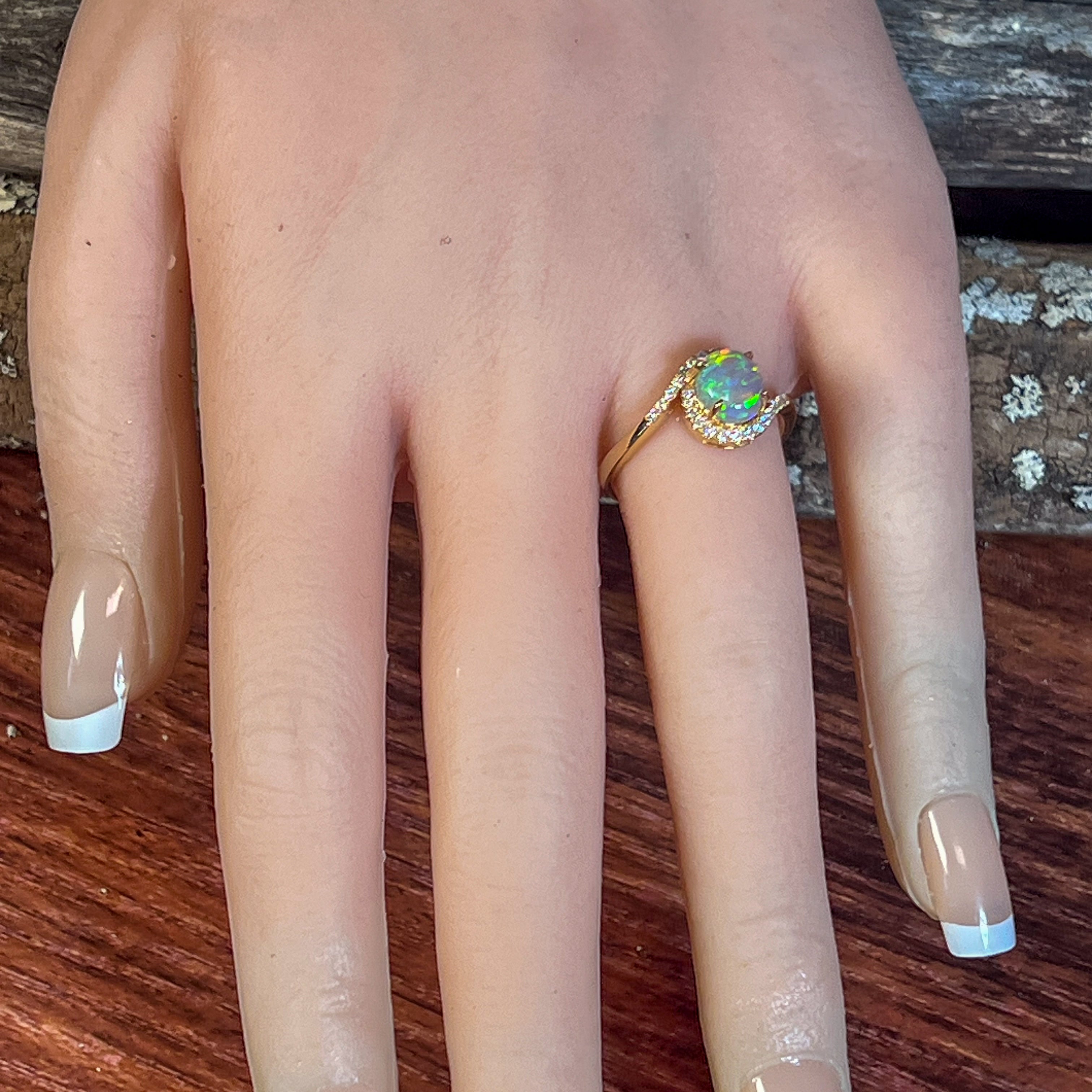 18kt Yellow Gold swirl ring with Opal crystal 0.95ct and diamonds