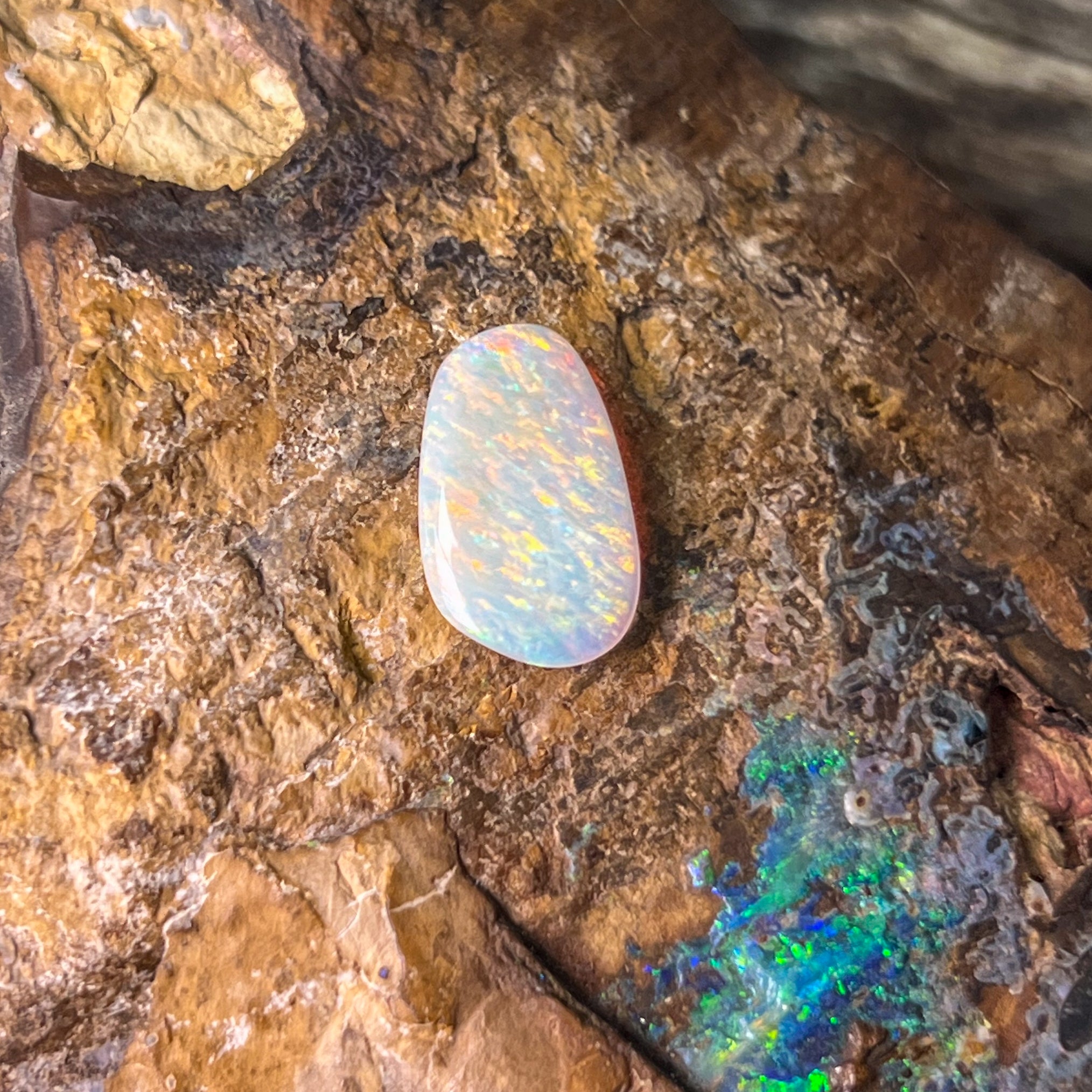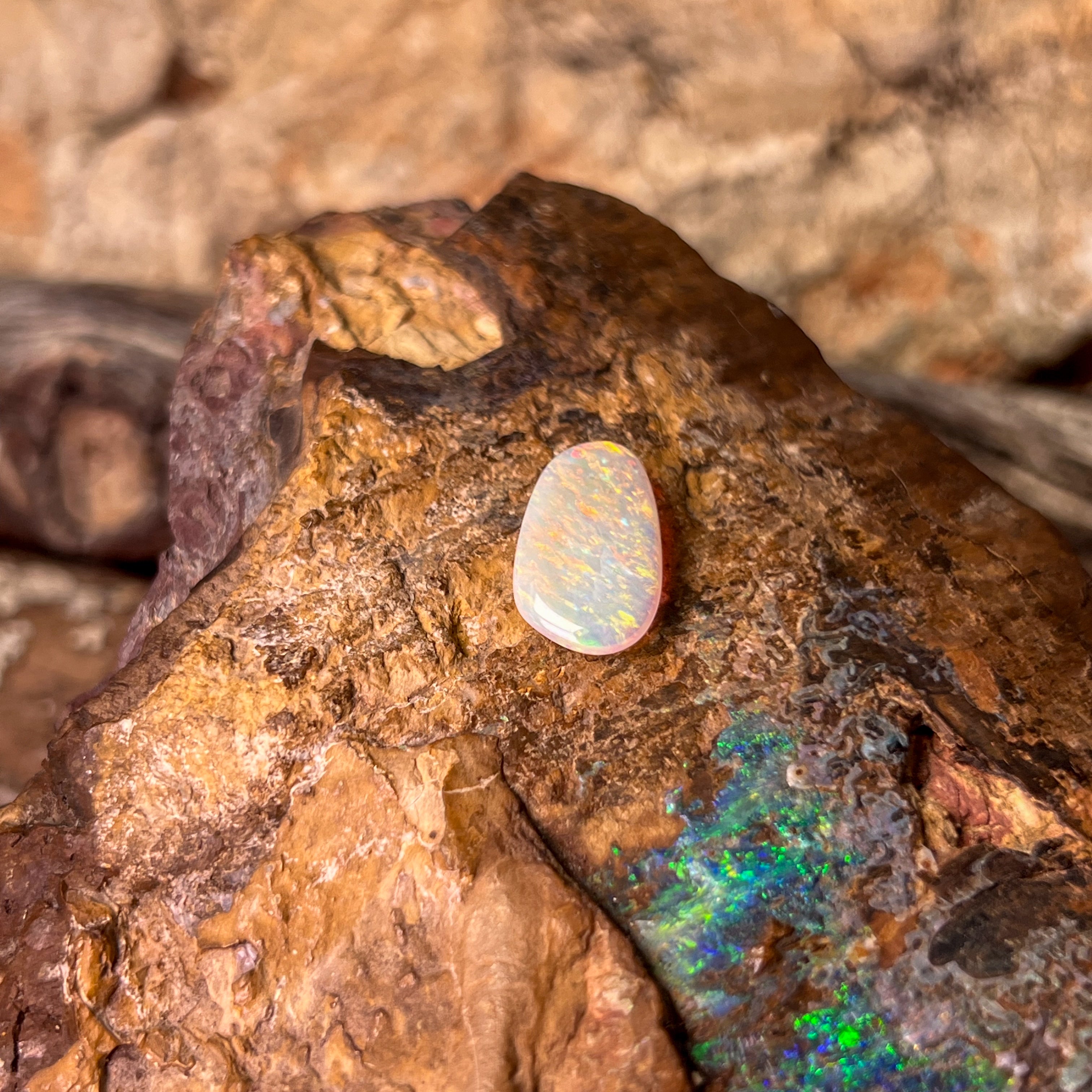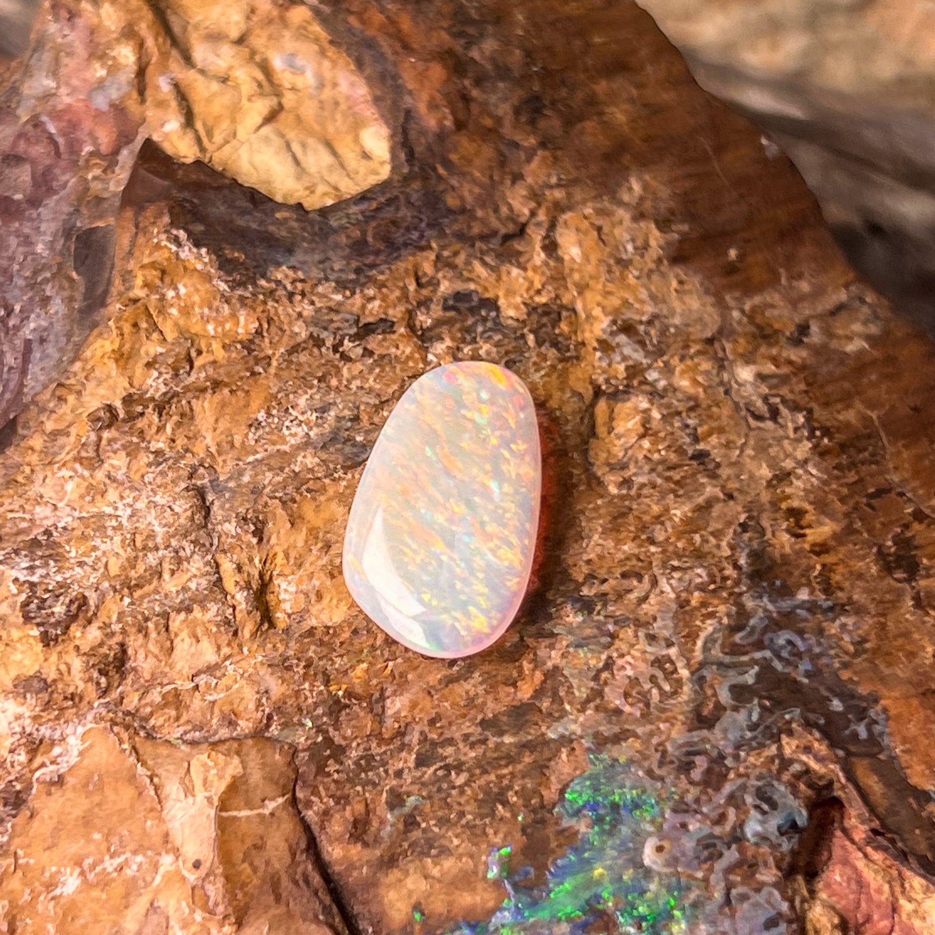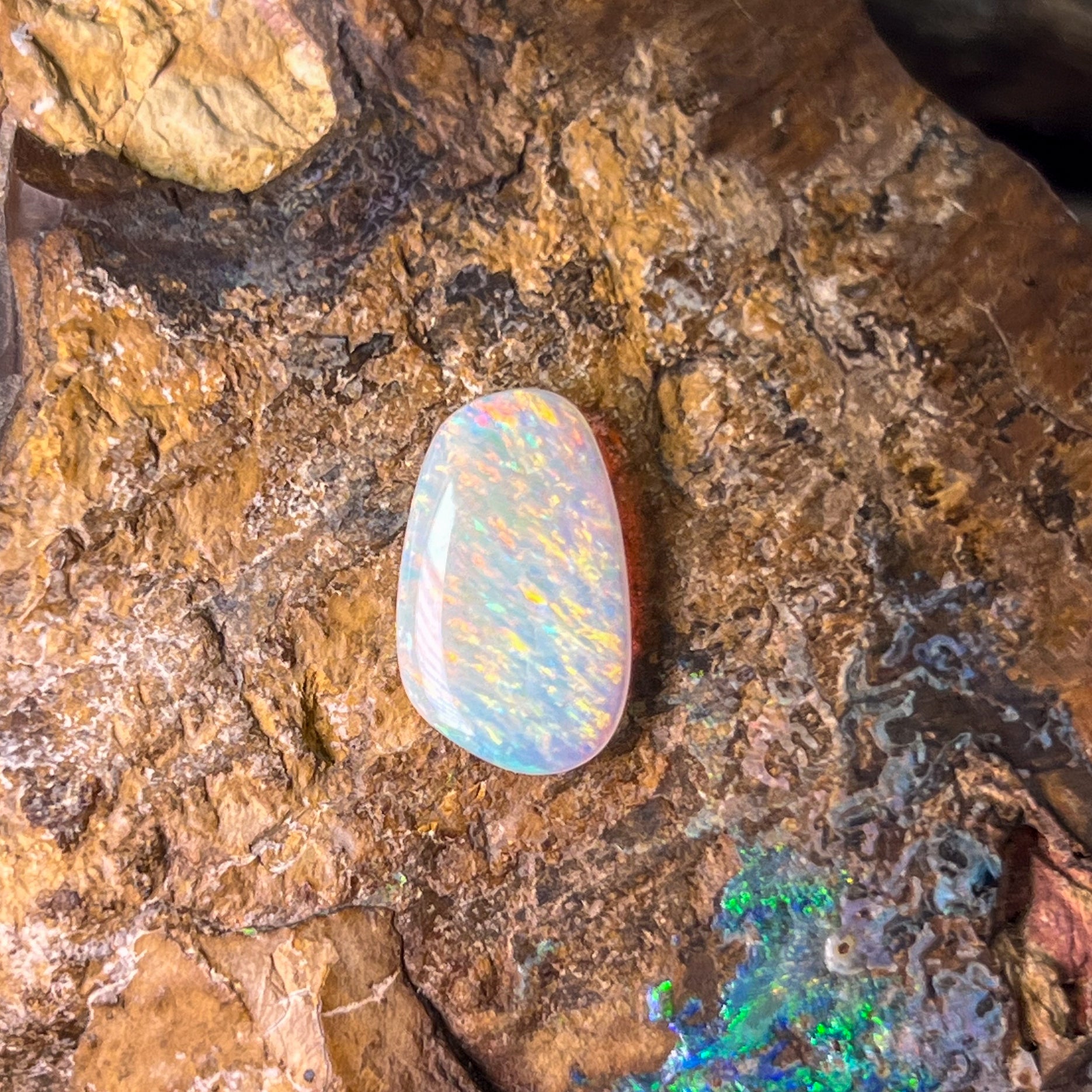 This 2.45ct White Opal boasts a unique red stripe pattern for a one-of-a-kind look. Perfect for those who love to stand out and make a statement.
