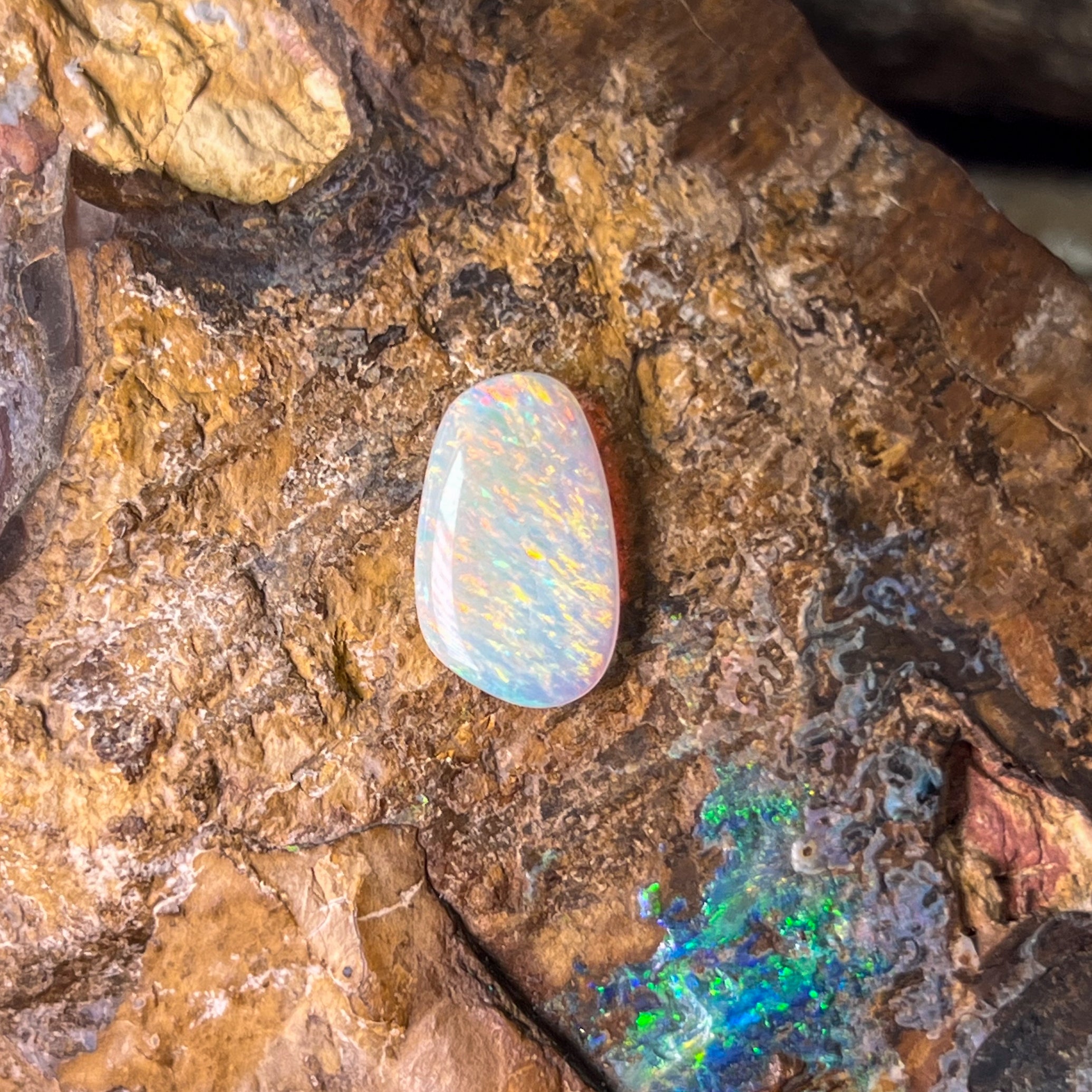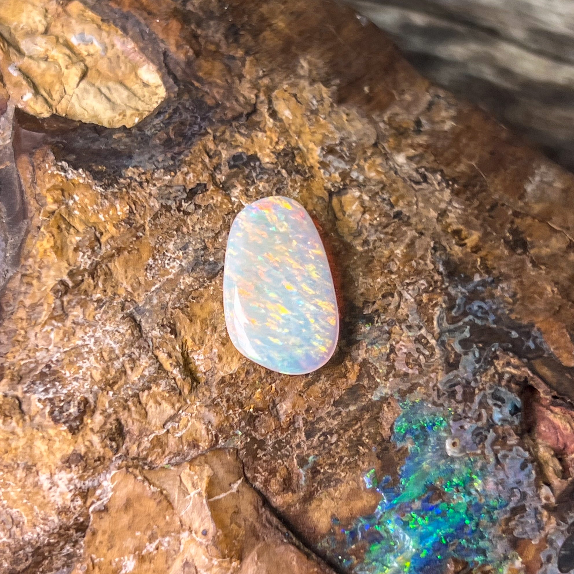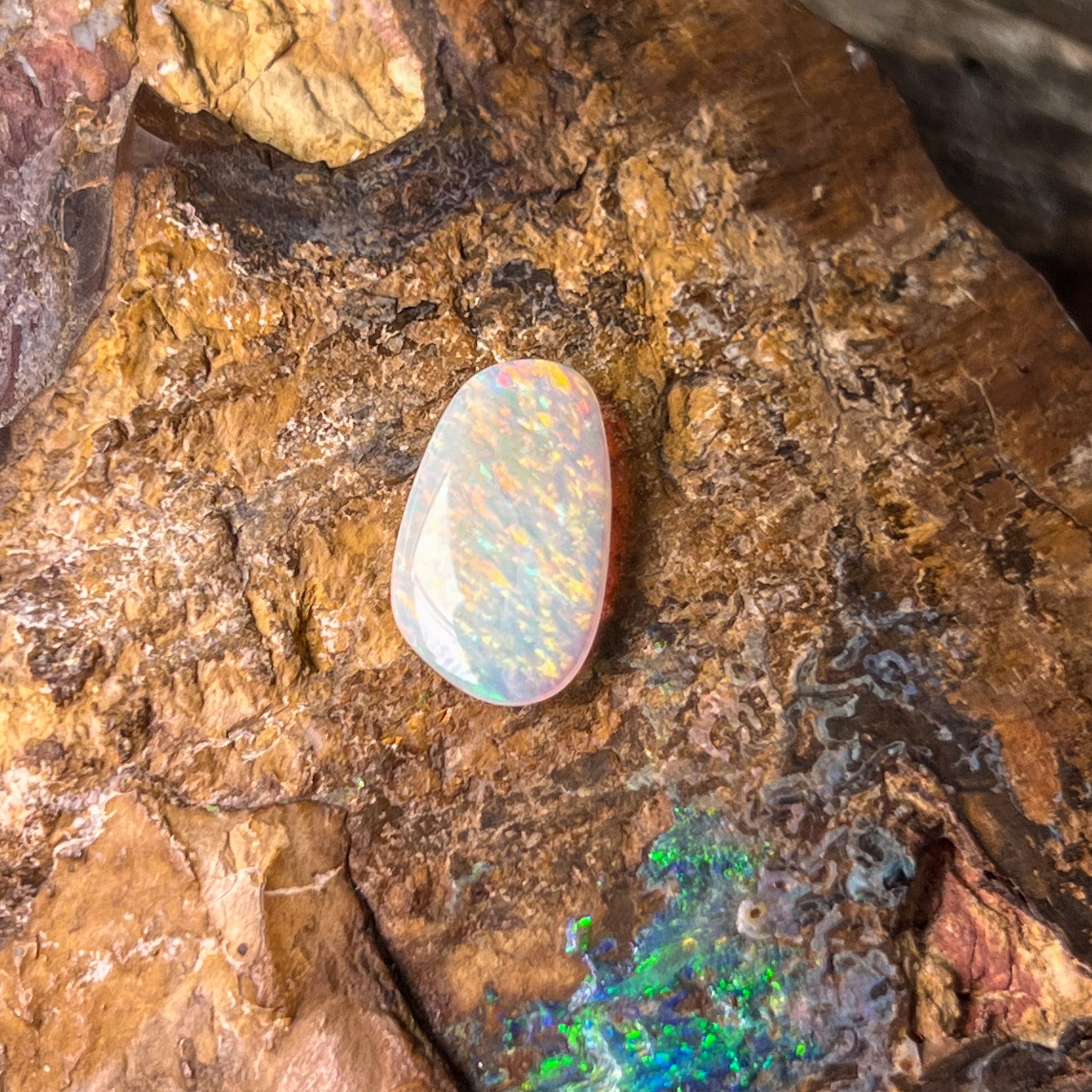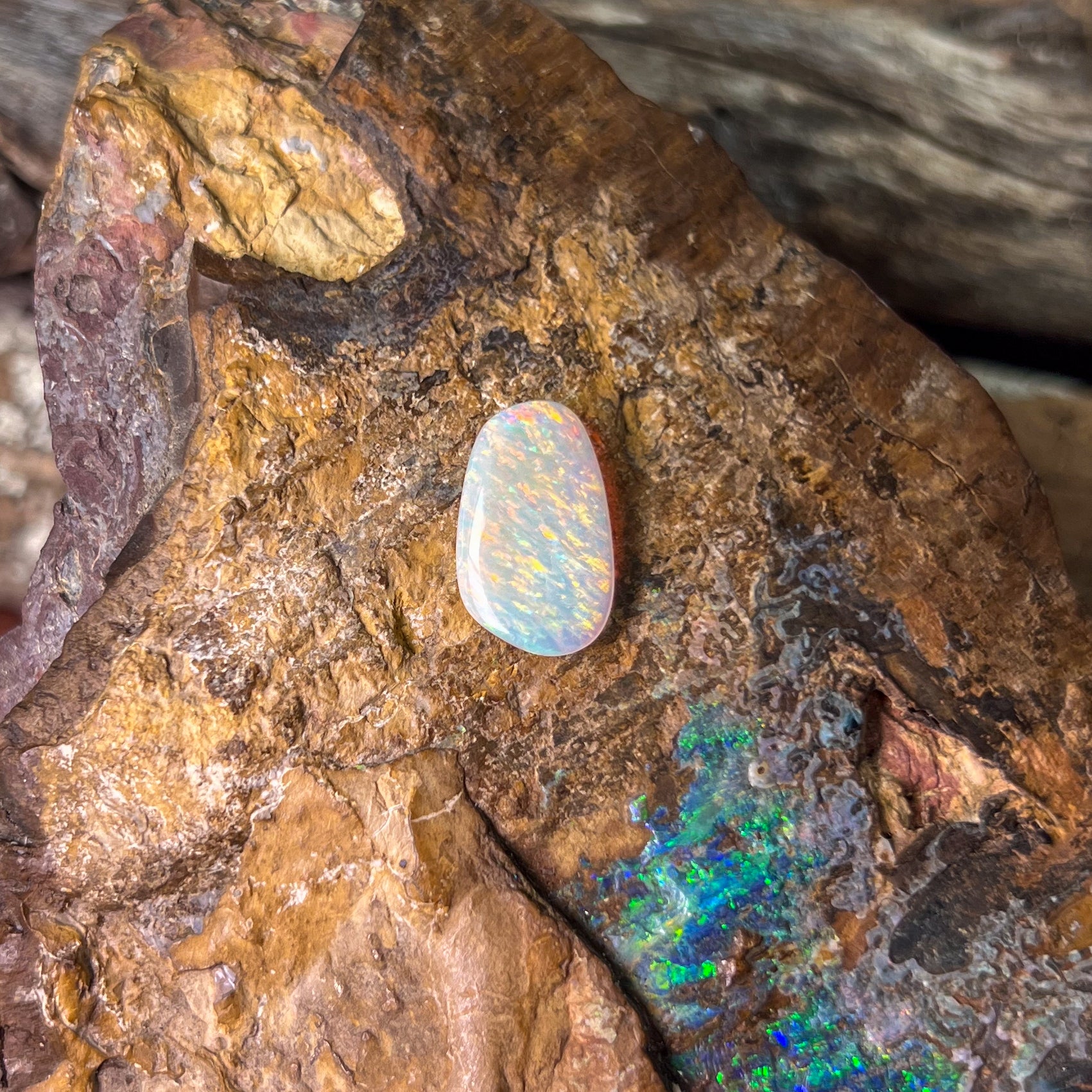 This 2.45ct White Opal boasts a unique red stripe pattern for a one-of-a-kind look. Perfect for those who love to stand out and make a statement.