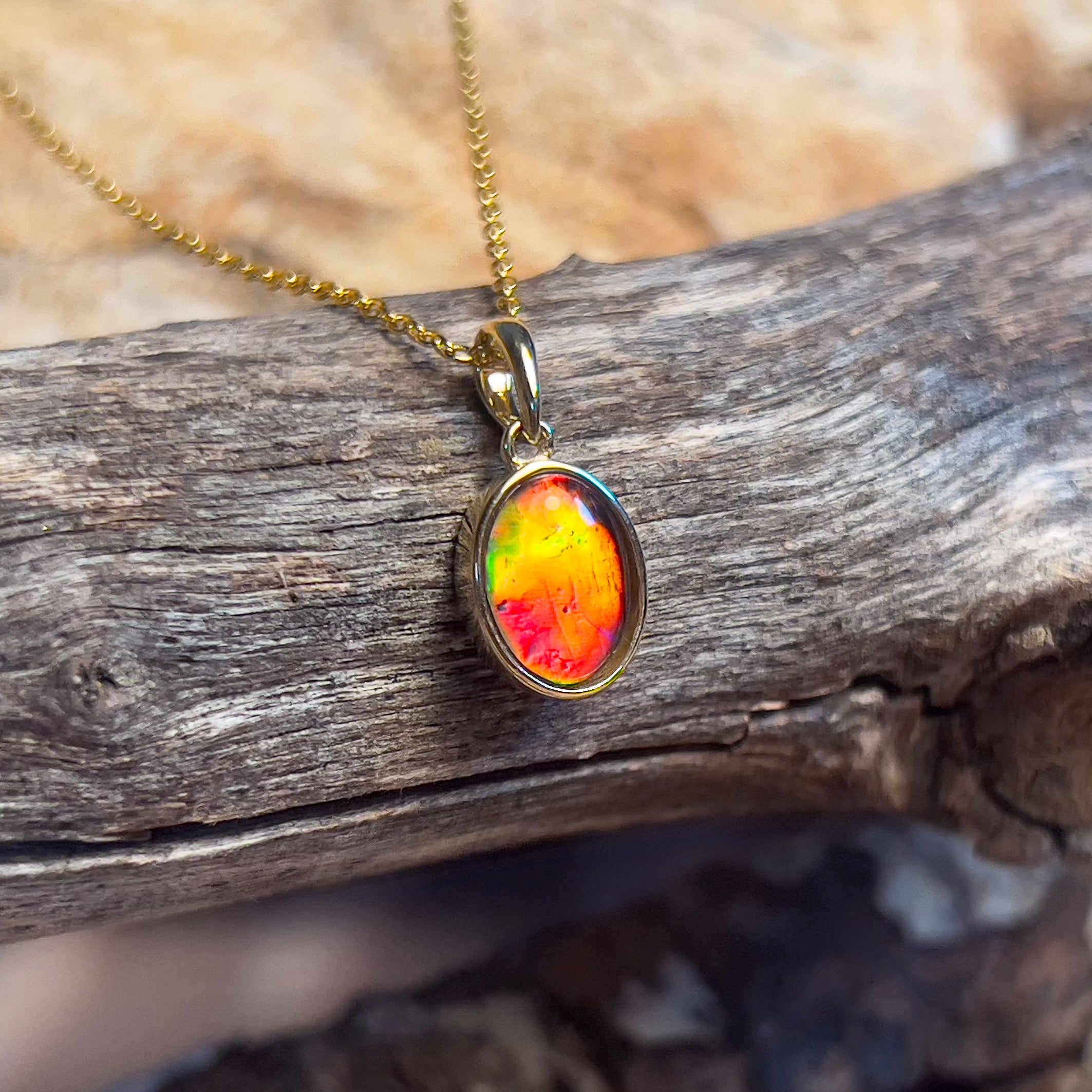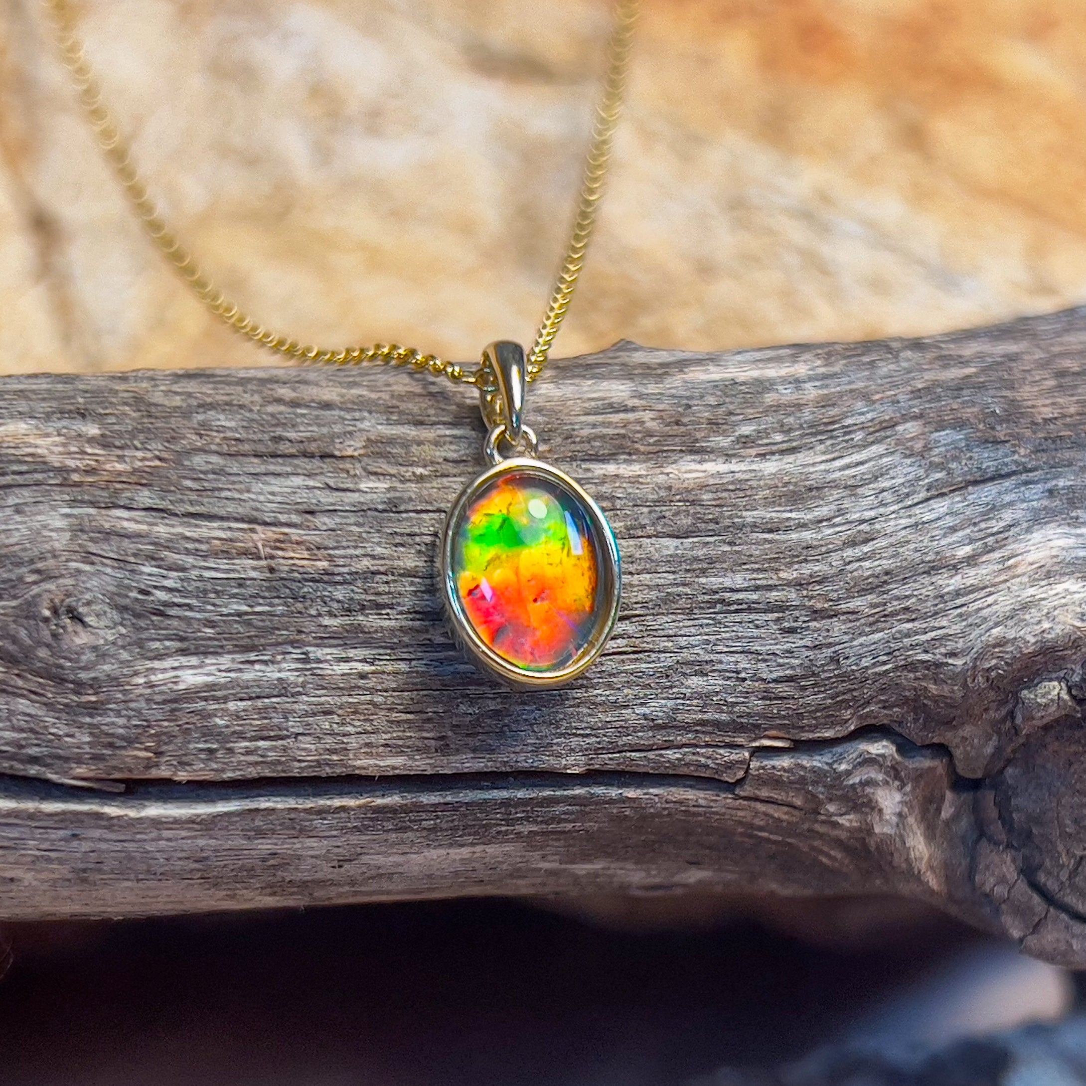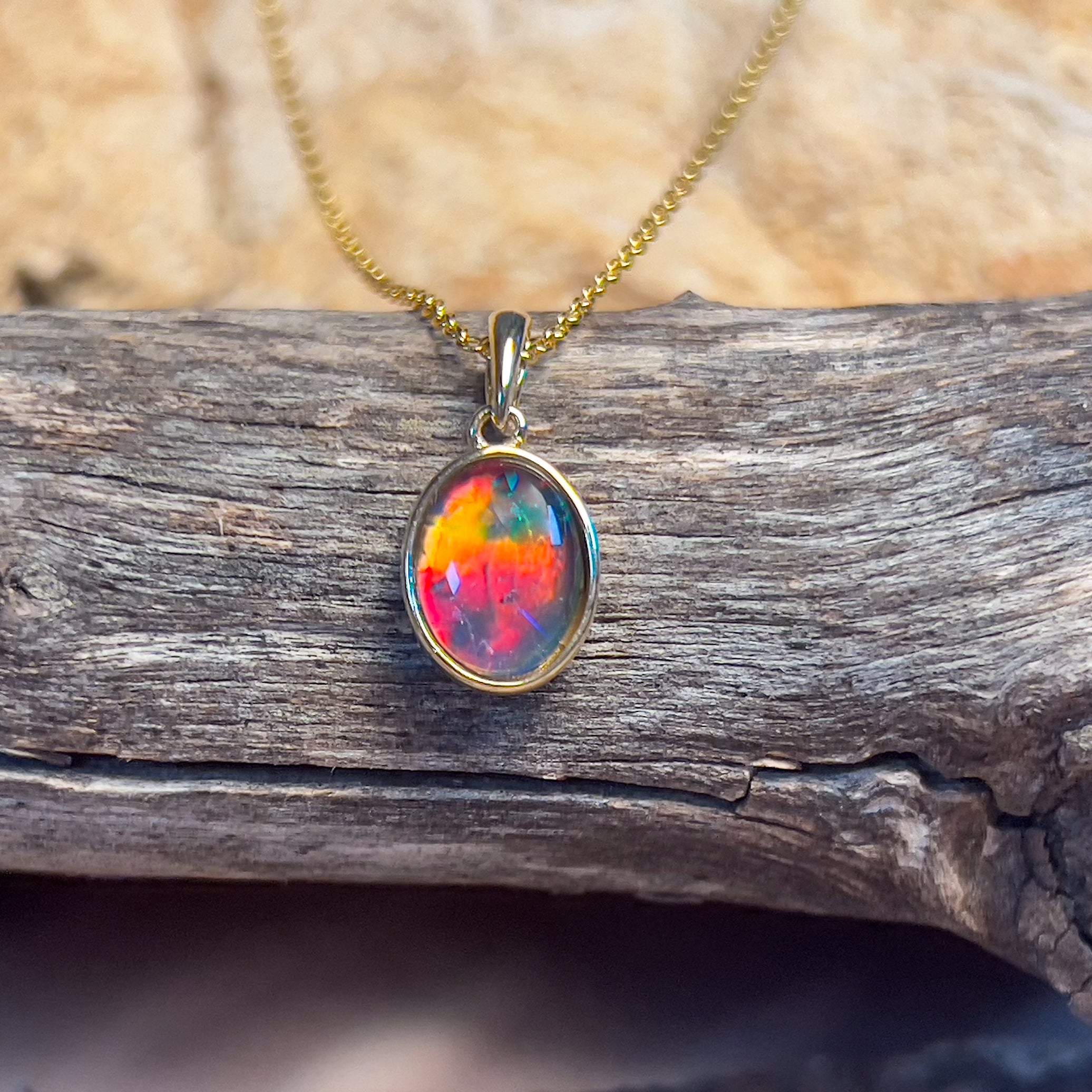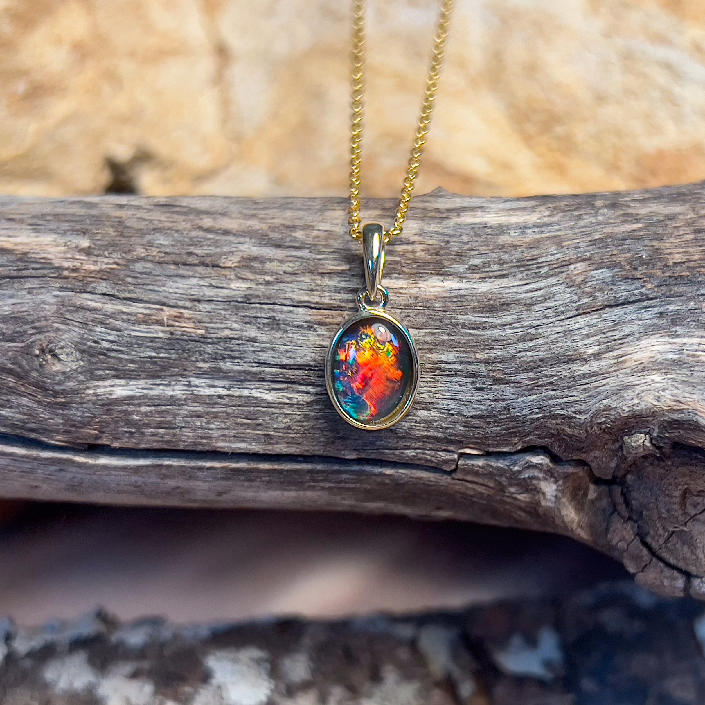 9kt Yellow Gold 9x7mm Opal Triplet bezel set pendant