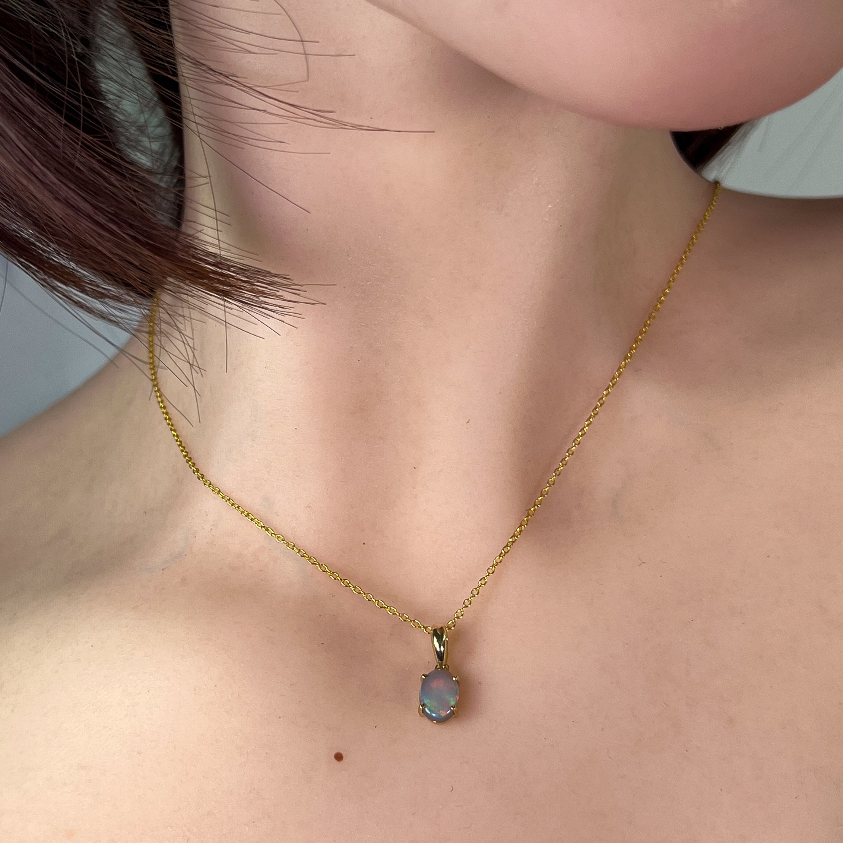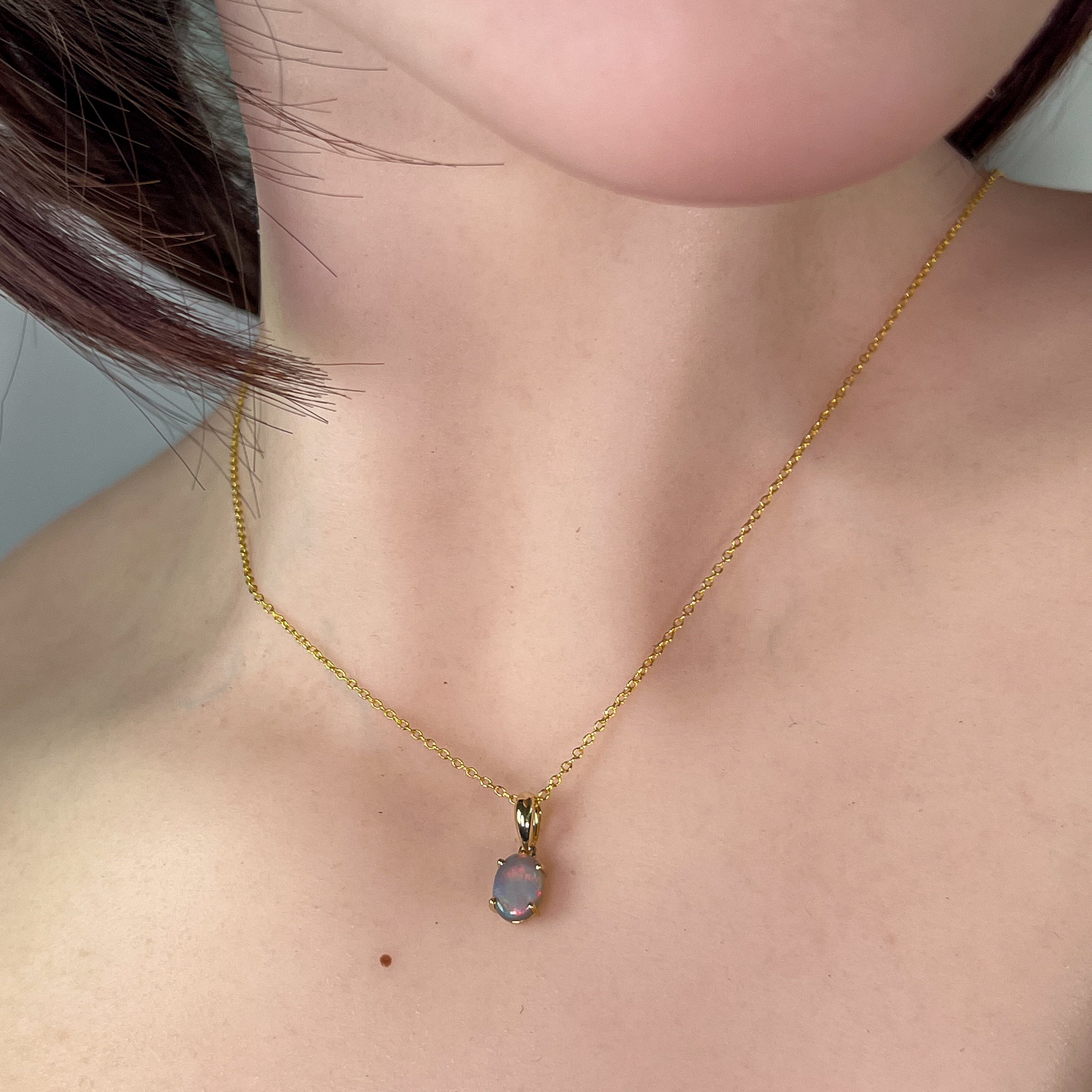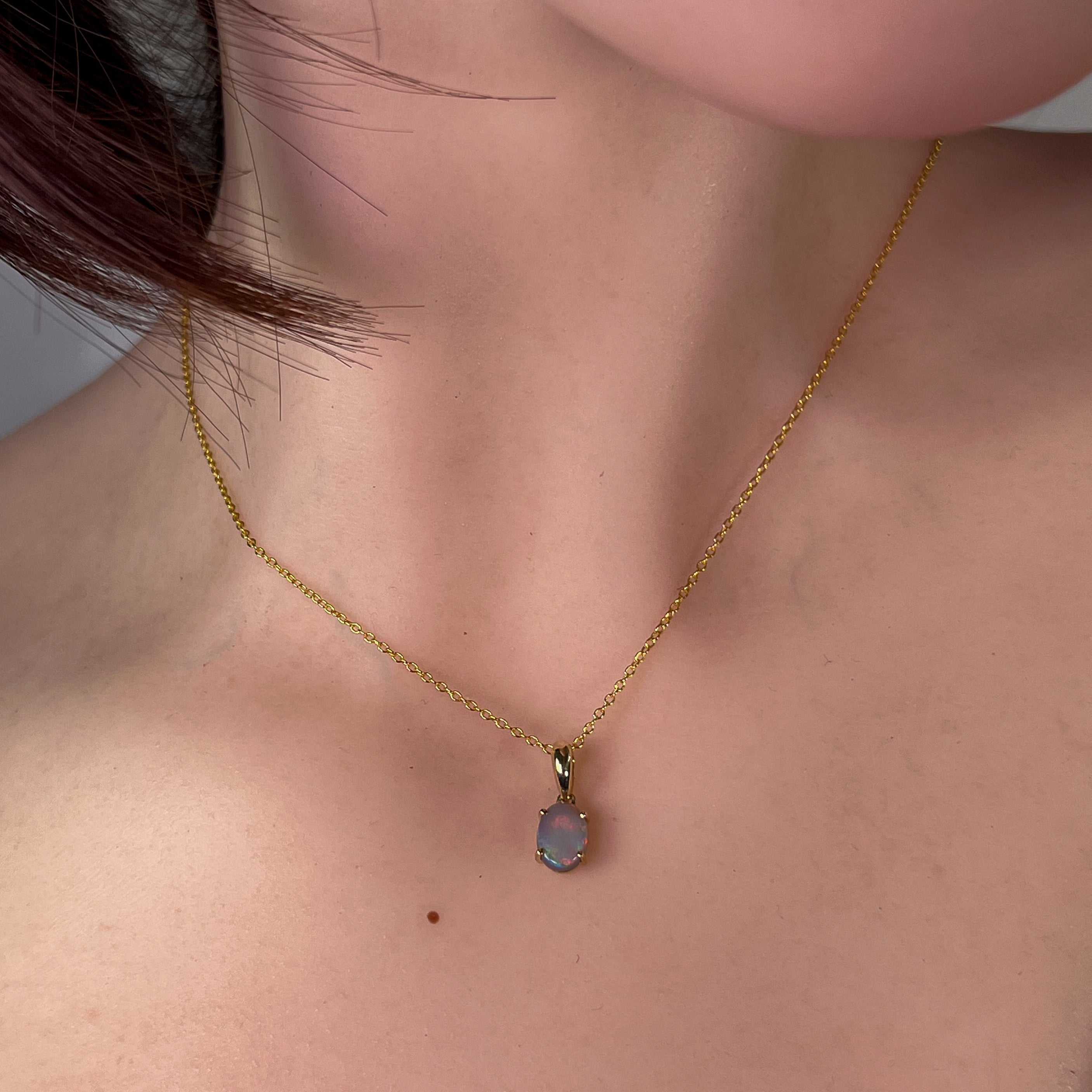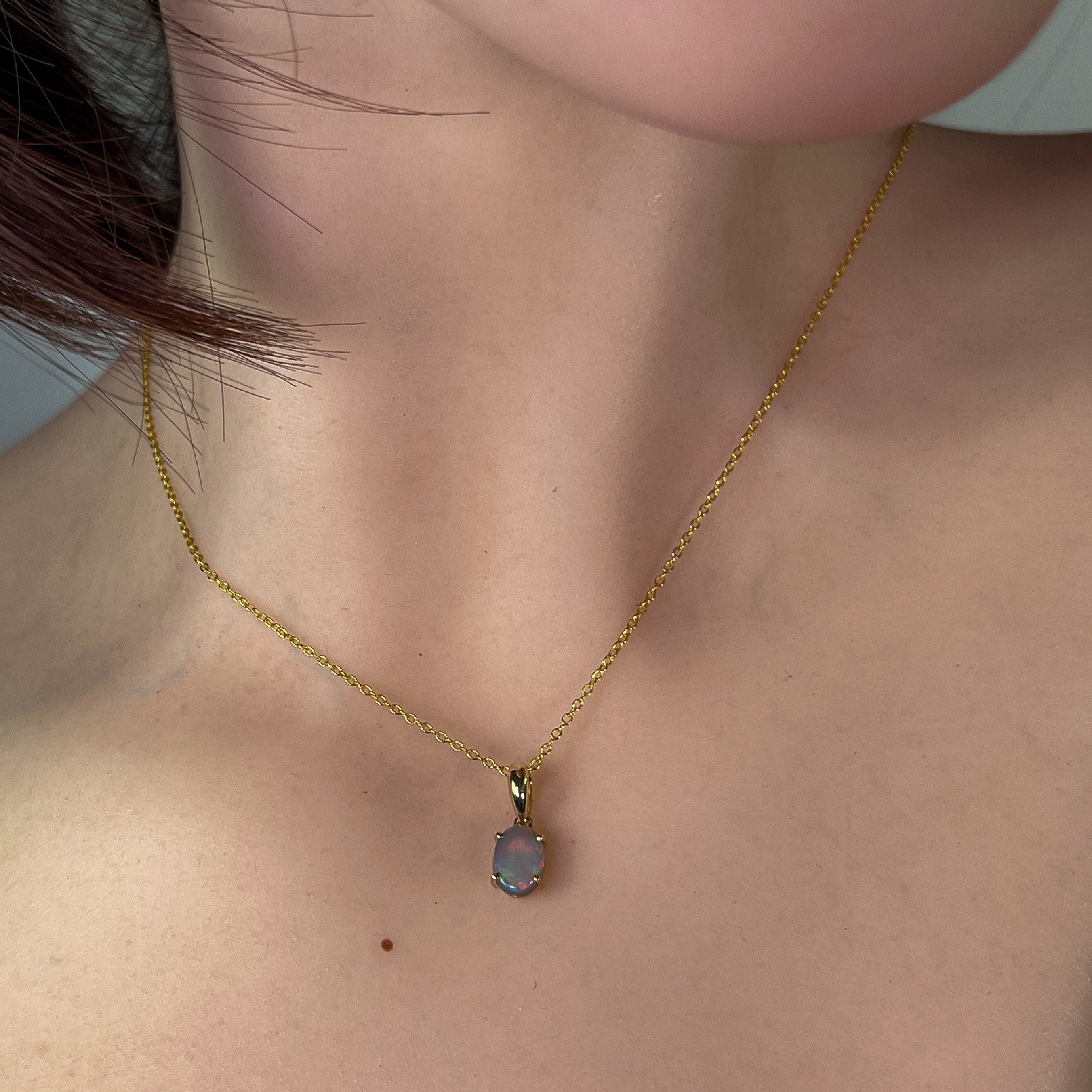 Indulge in the timeless beauty of our 9kt Yellow gold Black Opal 8x6mm claw set pendant. The classic design exudes elegance and sophistication, making it the perfect accessory for any occasion. Add a touch of luxury to your jewelry collection with this stunning necklace.