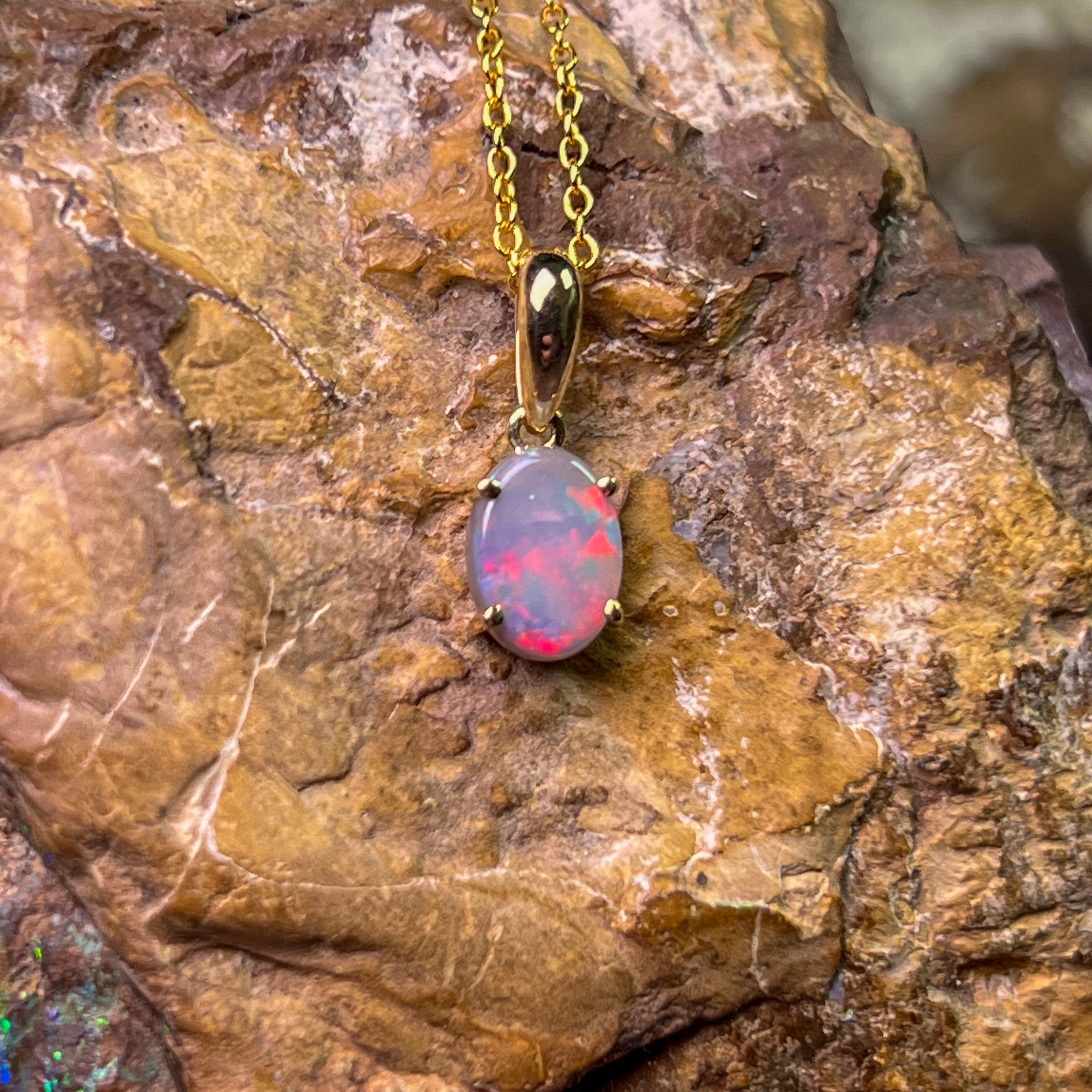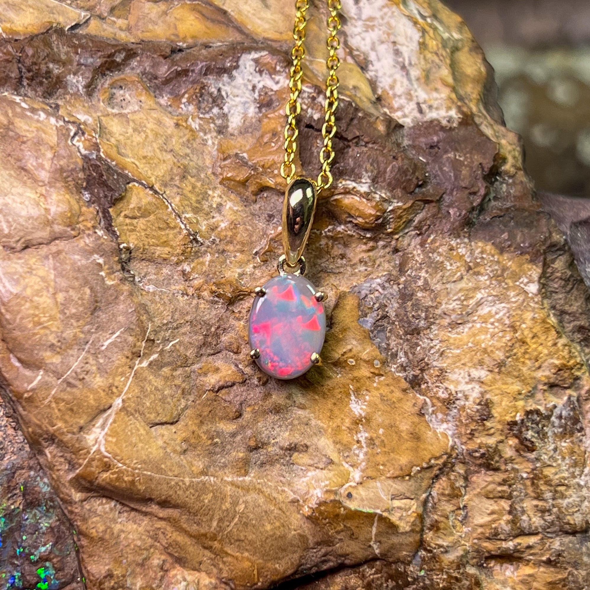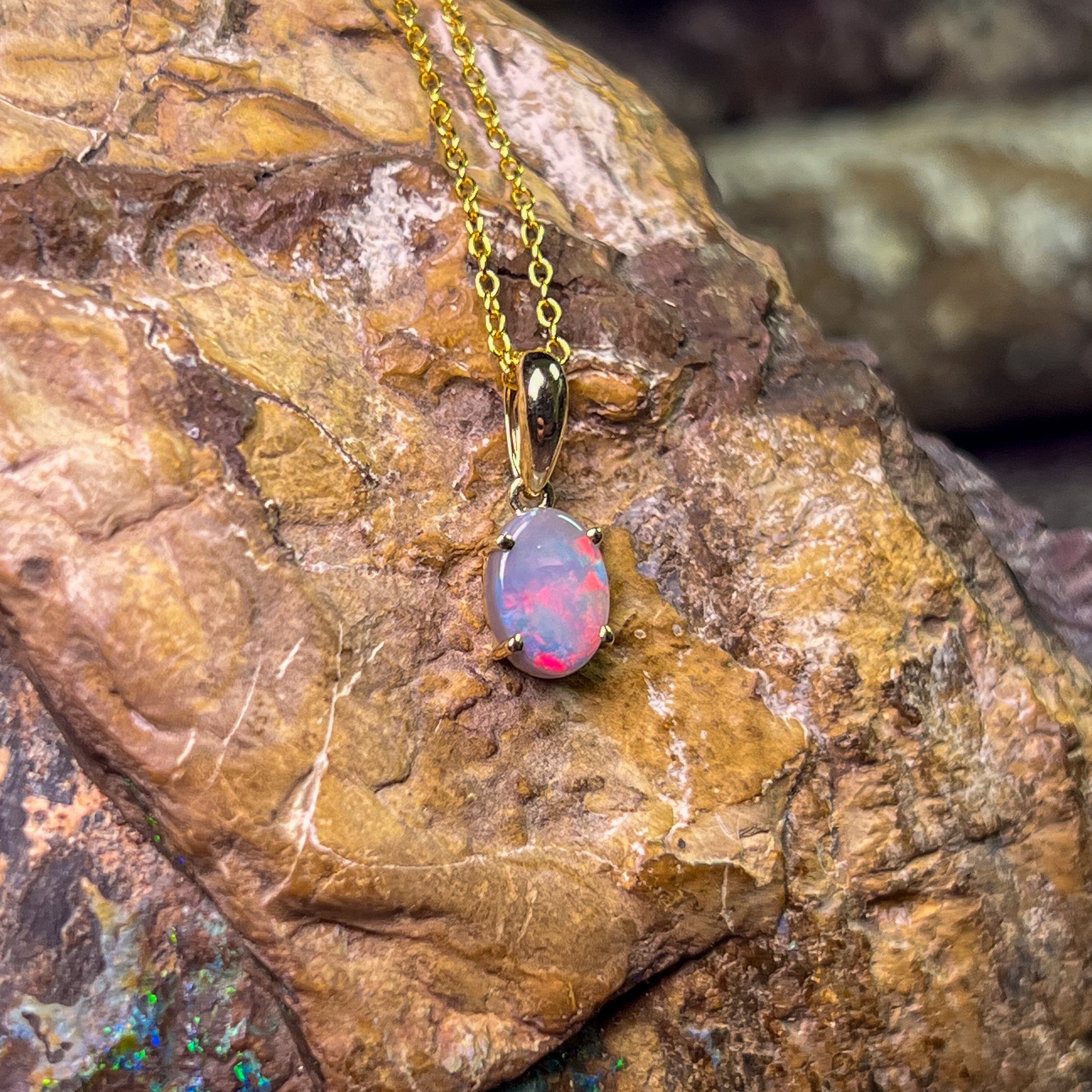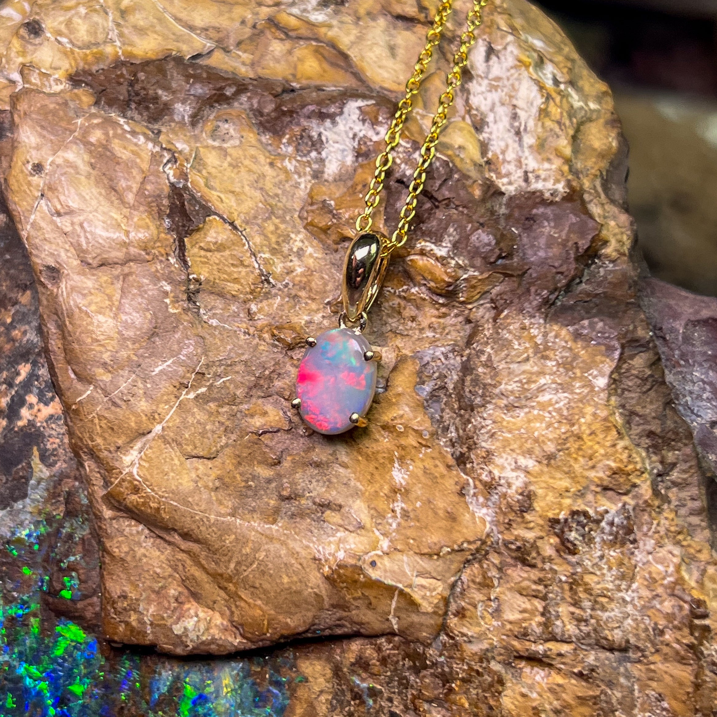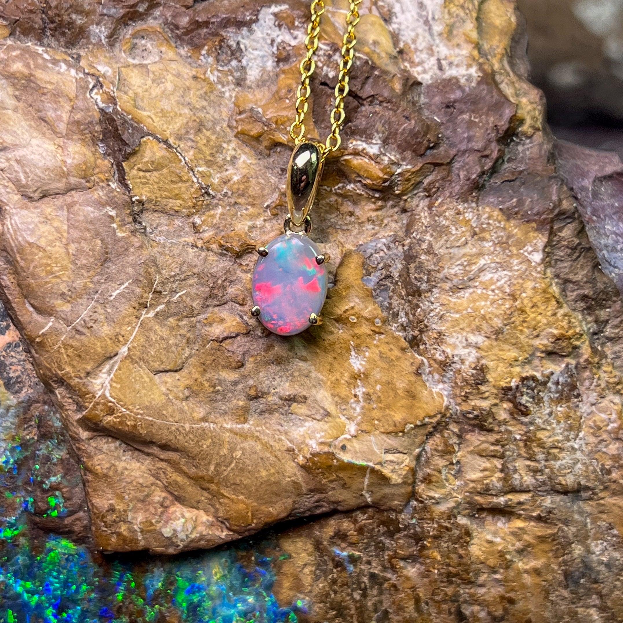 Indulge in the timeless beauty of our 9kt Yellow gold Black Opal 8x6mm claw set pendant. The classic design exudes elegance and sophistication, making it the perfect accessory for any occasion. Add a touch of luxury to your jewelry collection with this stunning necklace.