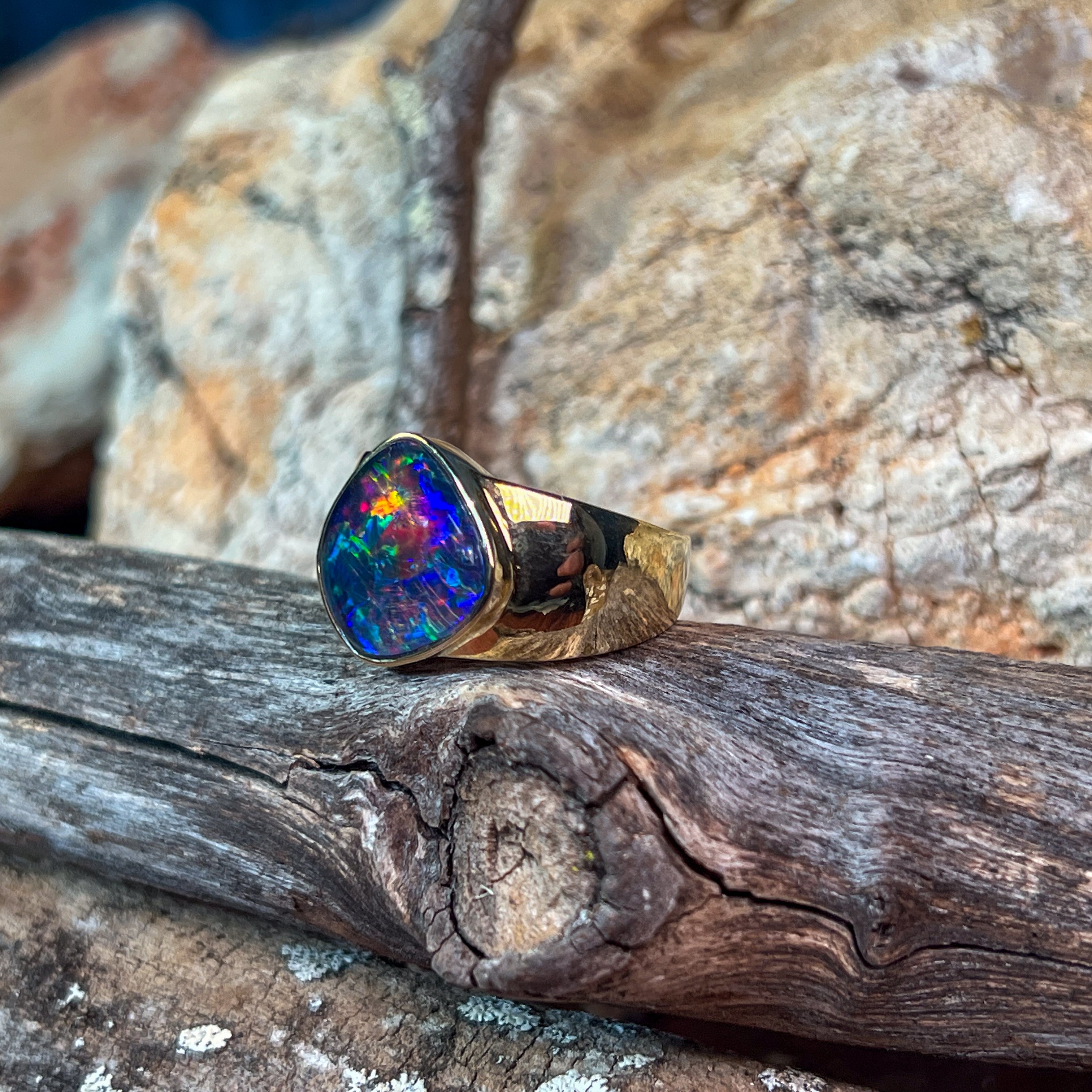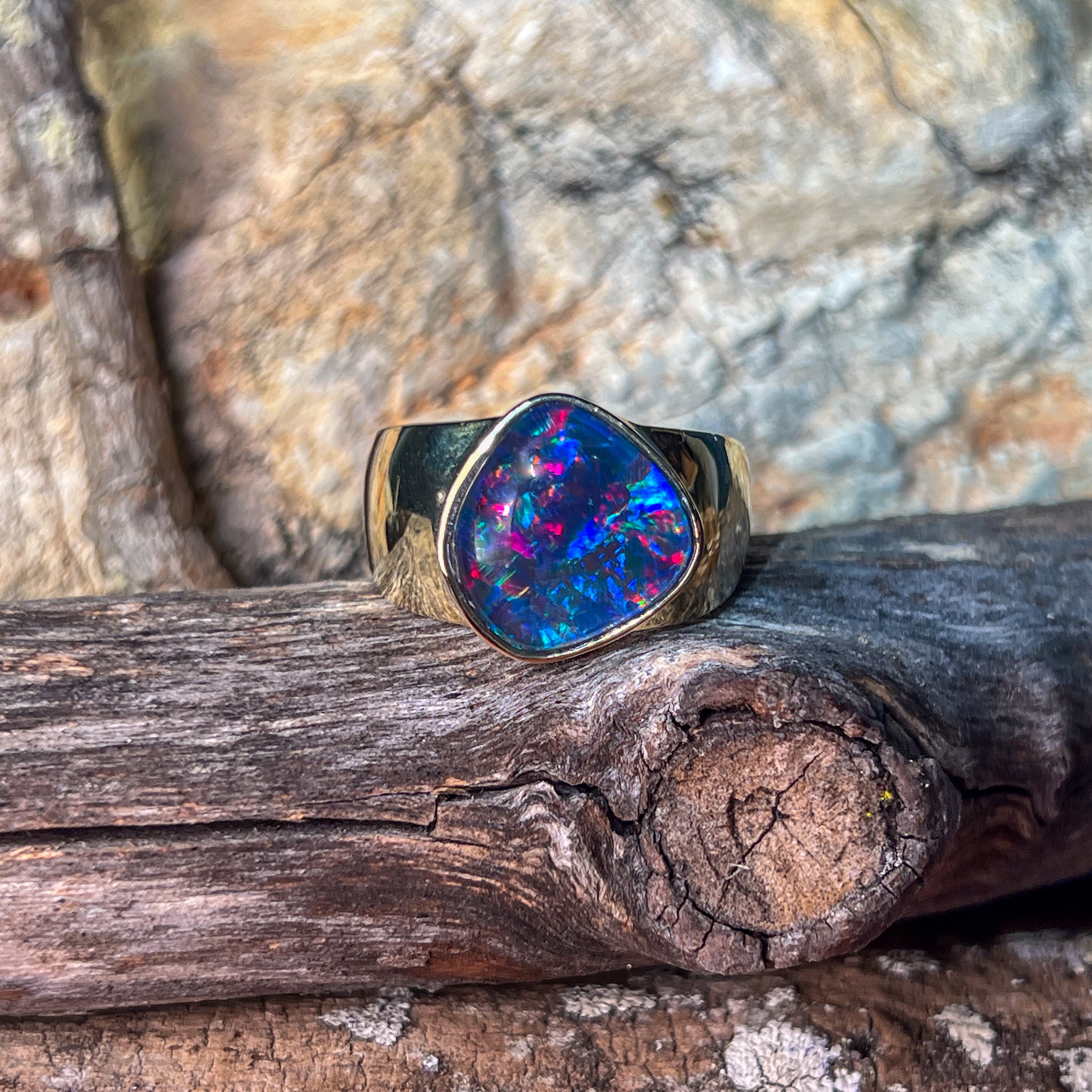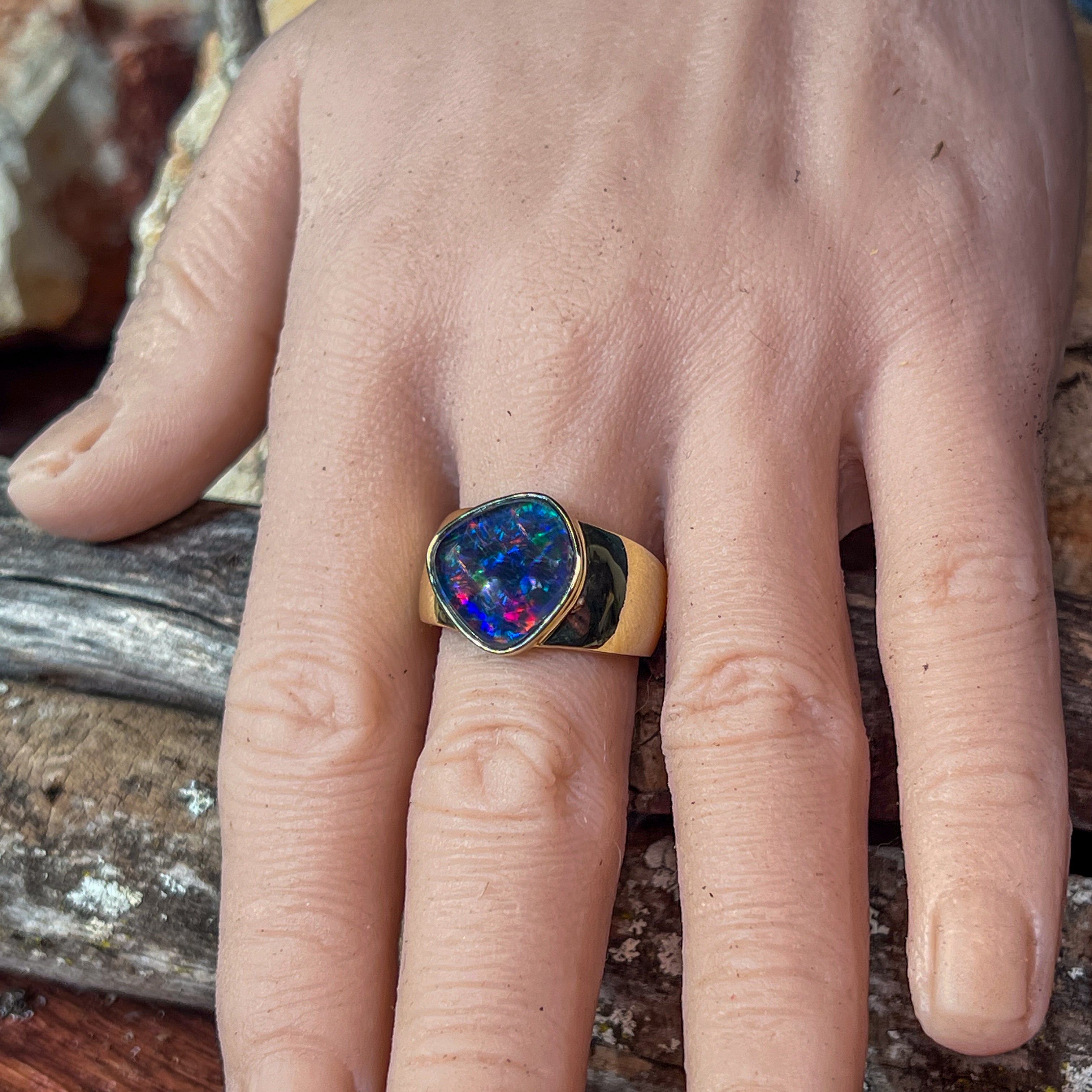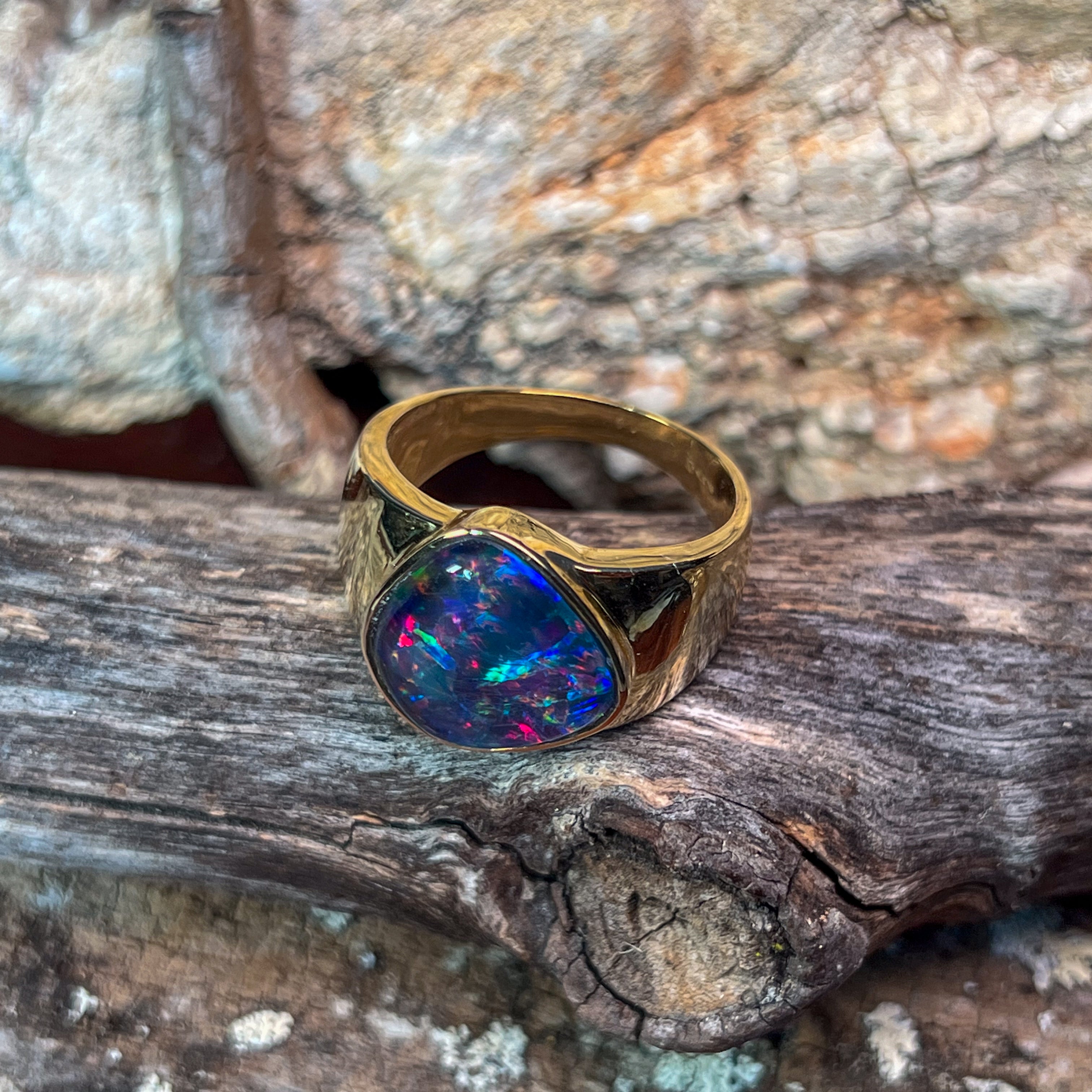 9kt Yellow Gold Freeform Opal triplet mens ring