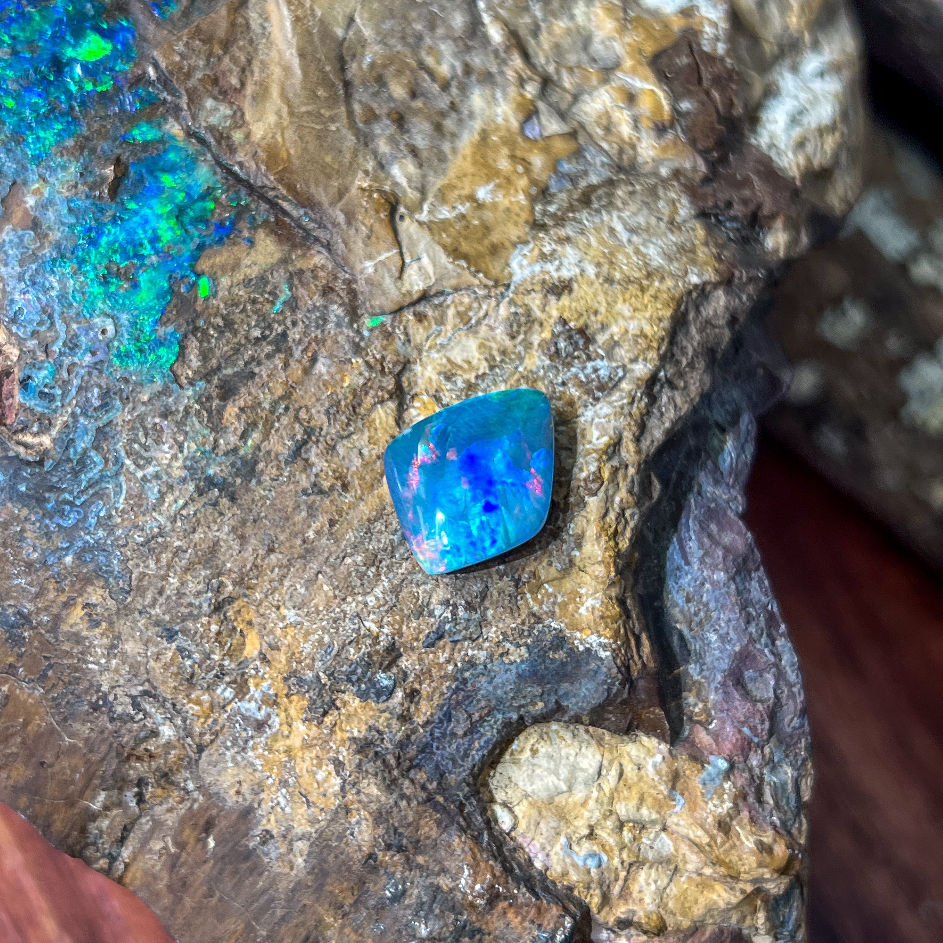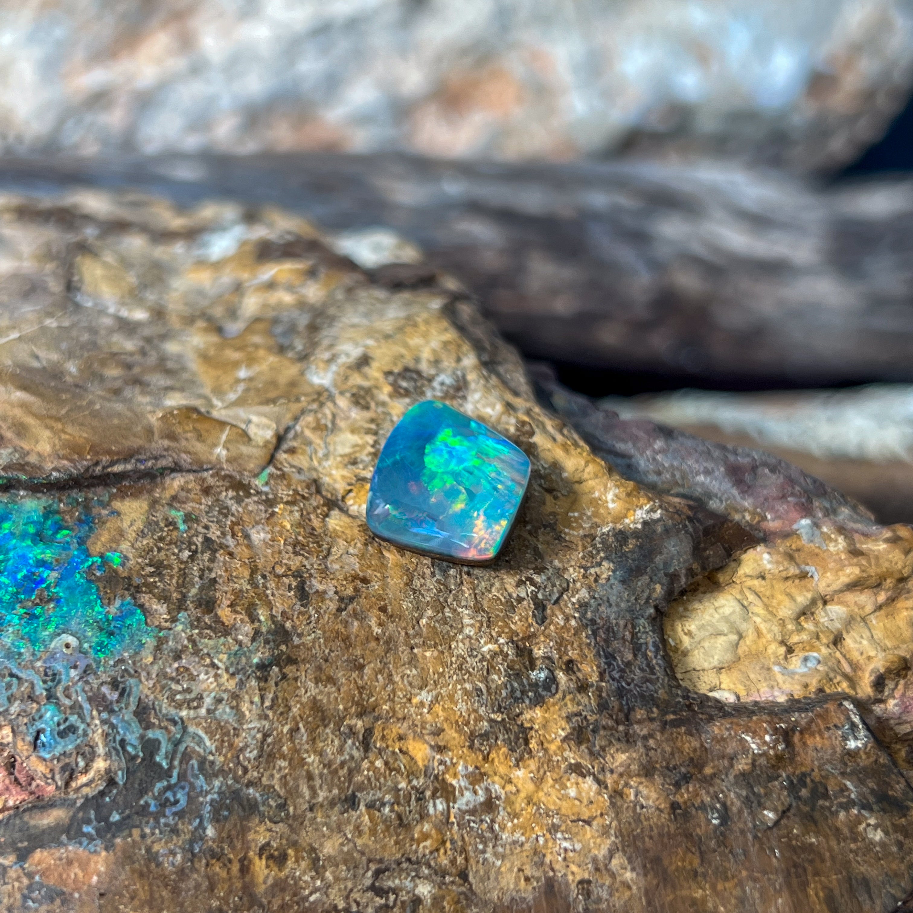 Unleash your creativity with this dazzling Freeform Doublet Opal 3.25ct! Its unique shape and vibrant colors make it the perfect canvas to design a one-of-a-kind jewellery gift for her. Whether you imagine it as a pendant, ring, or earrings, this opal promises to sparkle with personality and charm. Let your playful side shine through and craft a treasure she'll adore forever.