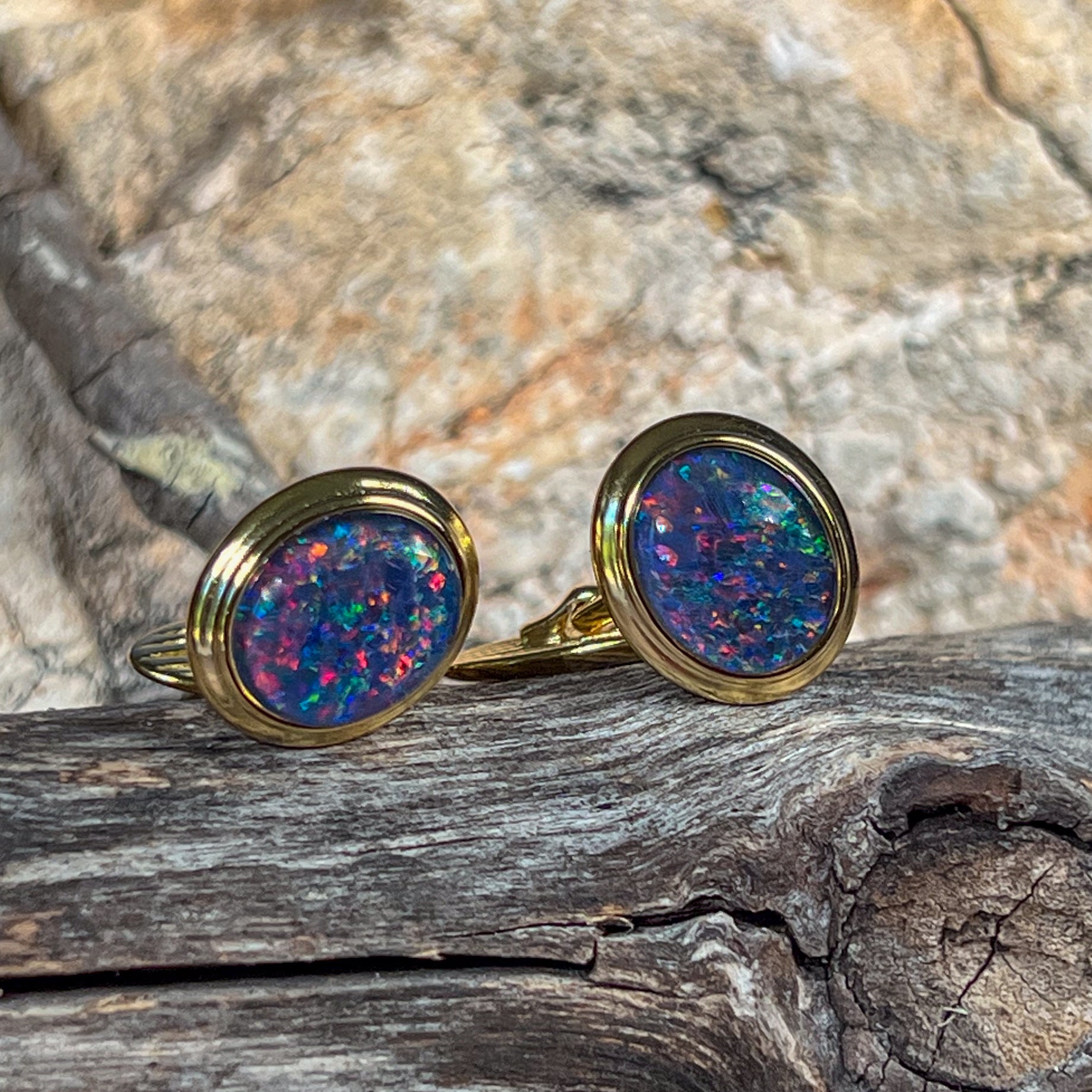 Gold Plated Silver 12x10mm Opal triplet bezel set cufflinks
