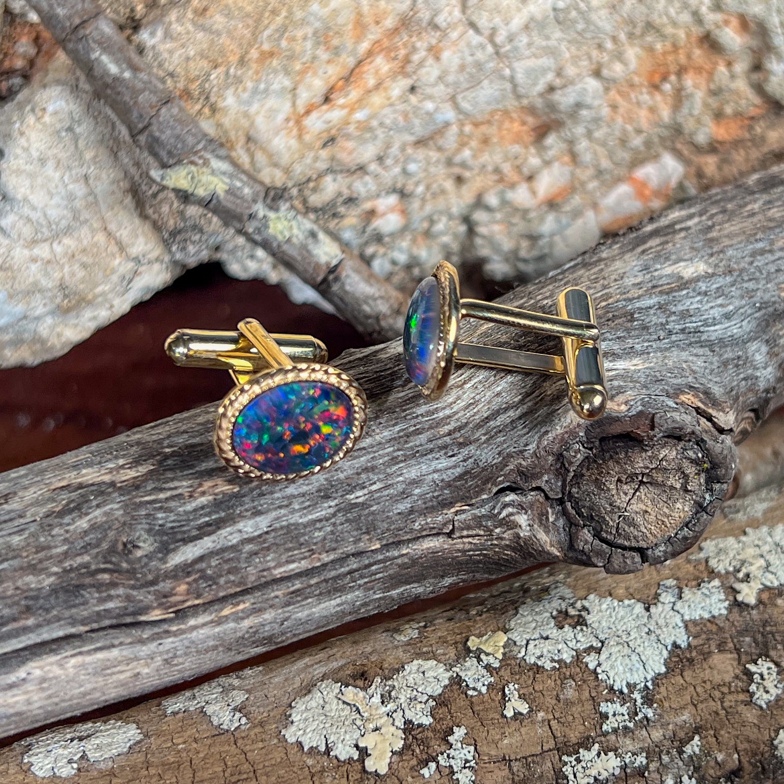 Gold Plated Silver cufflinks with 12x10mm Opal triplets